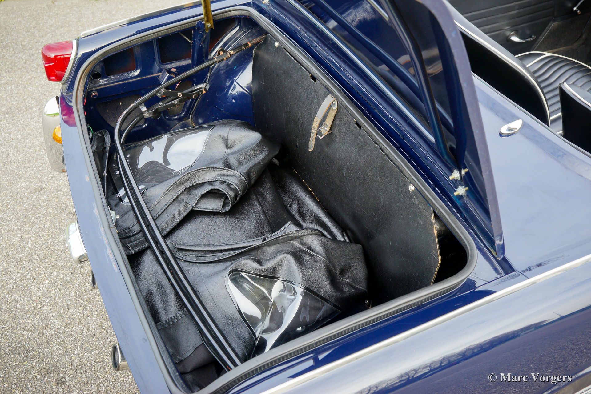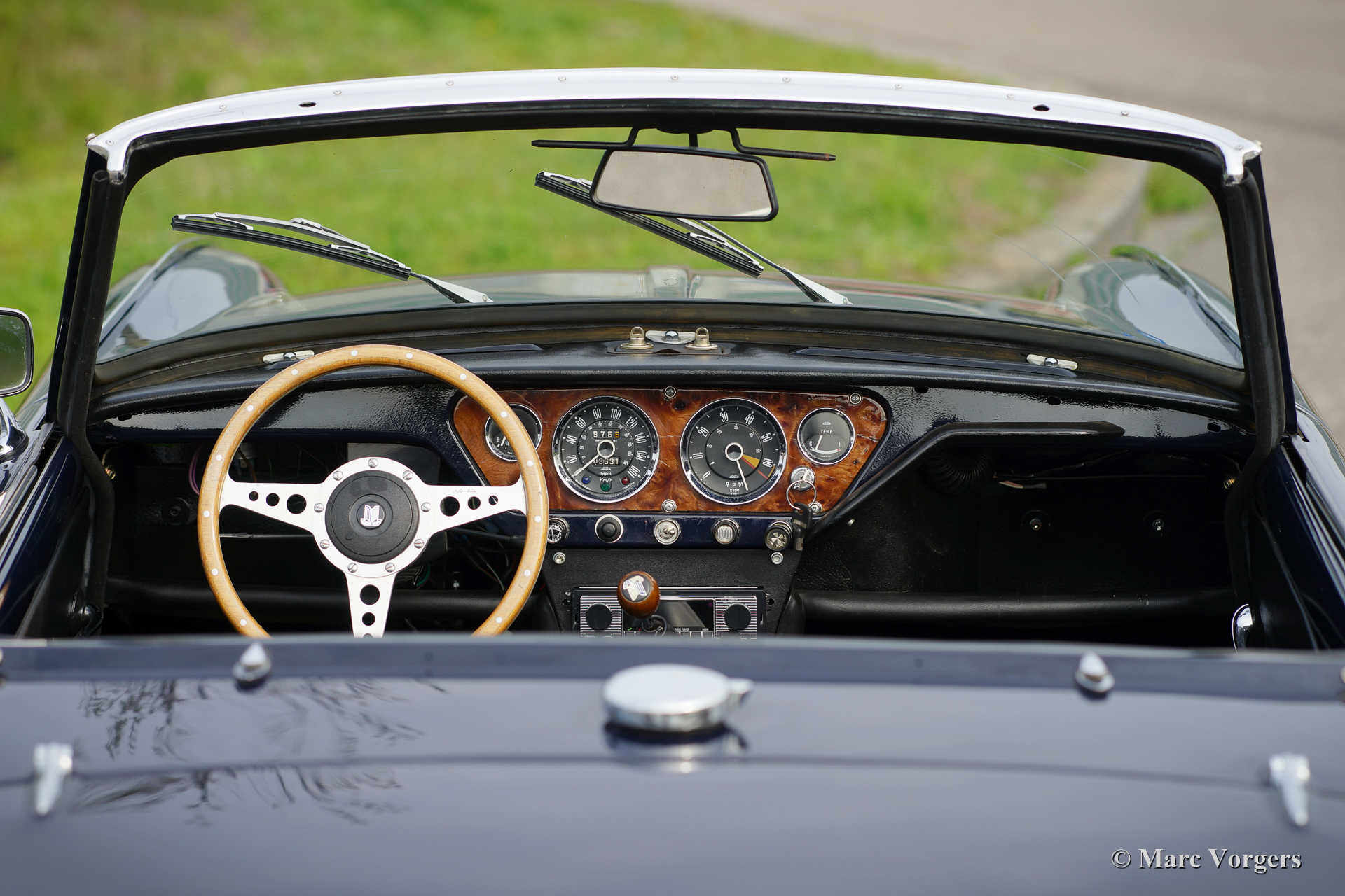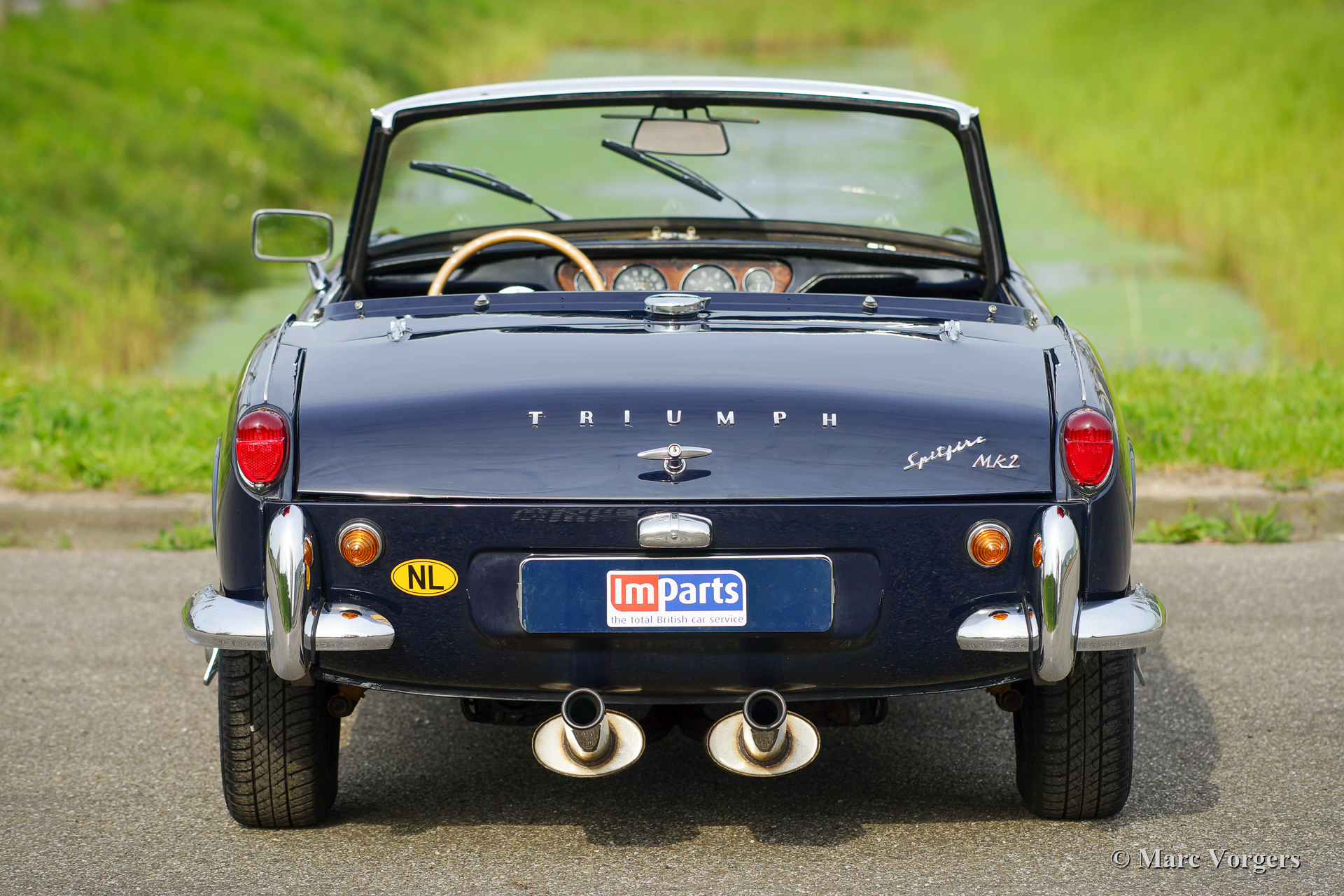 Triumph Spitfire Mk II, jaar 1966. Kleur donkerblauw gecombineerd met een zwartlederen interieur afgewerkt met witte biezen en zwart tapijt. Zwarte vinyl soft-top. Deze prachtige Triumph Spitfire is nieuw verkocht in Nederland. De auto is in het verleden “body-off” gerestaureerd, de auto verkeert in een zeer goede conditie. De Triumph Spitfire biedt veel klassieke, sportieve, en open rijbeleving voor een laag budget met een prachtig uiterlijk! De auto is voorzien van een 1147 cc viercilindermotor met twee S.U.-carburateurs. De motor levert een vermogen van 67 pk wat ruim voldoende is om de sportieve ambities van deze 725 kilogram lichte auto waar te maken. Deze fraaie Spitfire Mk II is voorzien van zilvergelakte spaakwielen en een RVS sportuitlaat die een geweldig motorgeluid laat horen!