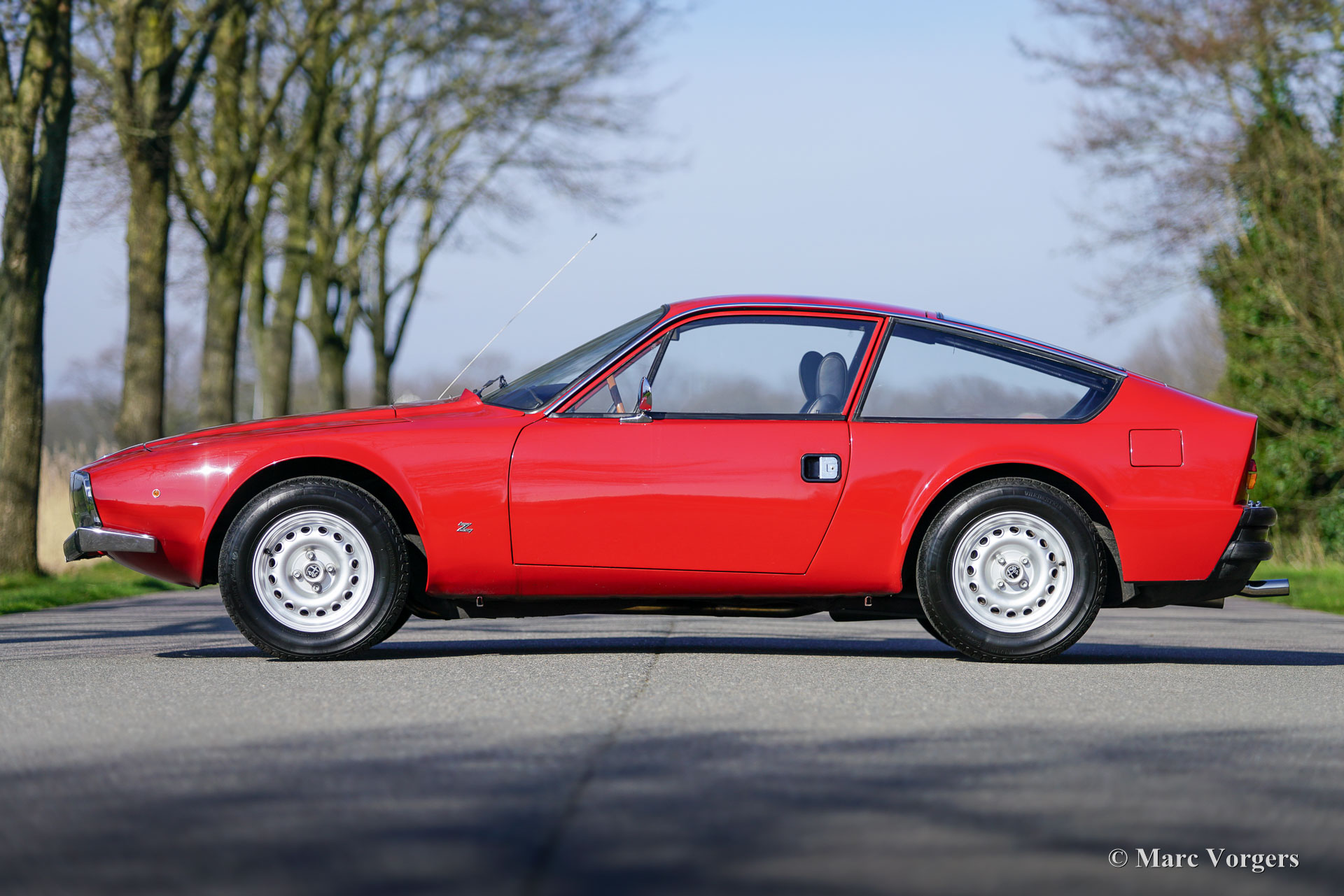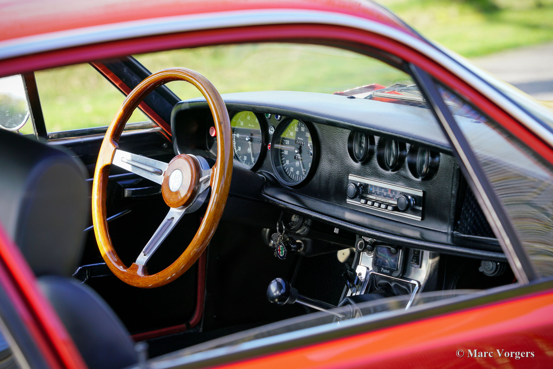 Alfa Romeo GT 1600 Junior Zagato, jaar 1974. Kleur donkerrood gecombineerd met een zwart interieur. Deze prachtige GT 1600 Junior Zagato werd nieuw verkocht in Italië en in 2003 geïmporteerd in Nederland. De auto is in het verleden prachtig gerestaureerd, waarbij alle goede onderdelen bewaard en origineel zijn gebleven. De carrosserie is volledig roestvrij en goed beschermd met wax in de holle ruimtes. Het interieur is origineel met nieuw beklede zwartlederen stoelen en een fraaie periode-correcte Blaupunkt Frankfurt-radio. Mechanisch en technisch is alles up-to-date. Deze Alfa Romeo verkeert in een excellente conditie en de auto rijdt en stuurt uitstekend. De auto is uitgerust met een roestvrijstalen uitlaatsysteem en 15-inch Alfaholics lichtmetalen GTA-velgen met Vredestein Sprint Classic-banden. Deze prachtige GT 1600 Junior Zagato toont alle originele details. De GT 1600 Junior Zagato is een variant op het GT 1300-model dat eveneens gebaseerd is op de 105-serie Alfa Romeo Giulia. Het ontwerp komt uit de pen van Ercole Spada bij Zagato. De GT 1600 is geïntroduceerd op de 54e Auto Show van Turijn in 1972. De Alfa Romeo GT 1600 Junior Zagato is een zeer zeldzame Alfa Romeo, er zijn slechts 402 exemplaren gebouwd in de periode 1972 tot 1975. Dit is een uitstekend exemplaar in een geweldige kleurstelling waarbij alle originele details bewaard zijn gebleven. Een geweldige vondst voor de Alfa Romeo-verzamelaar en -liefhebber.