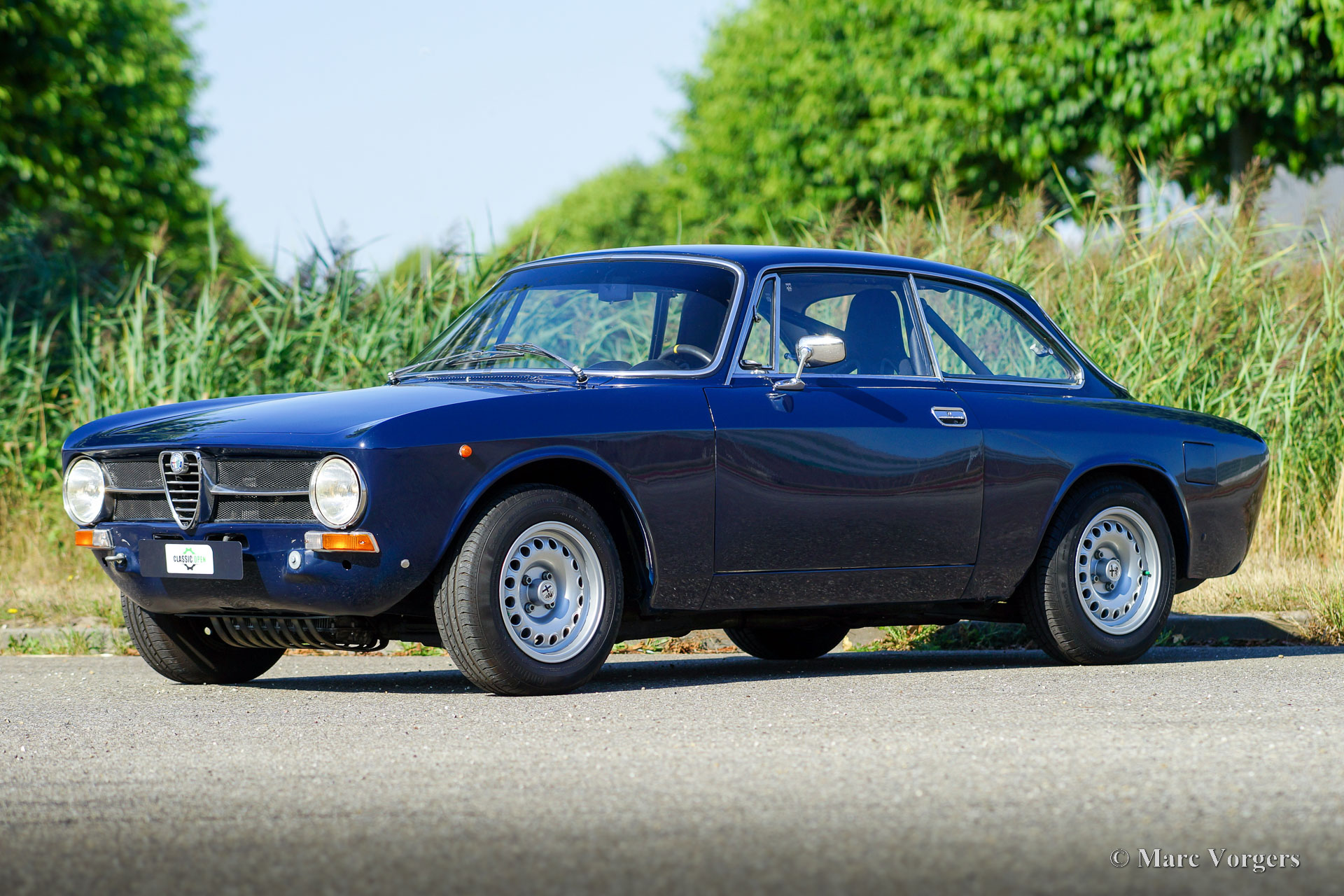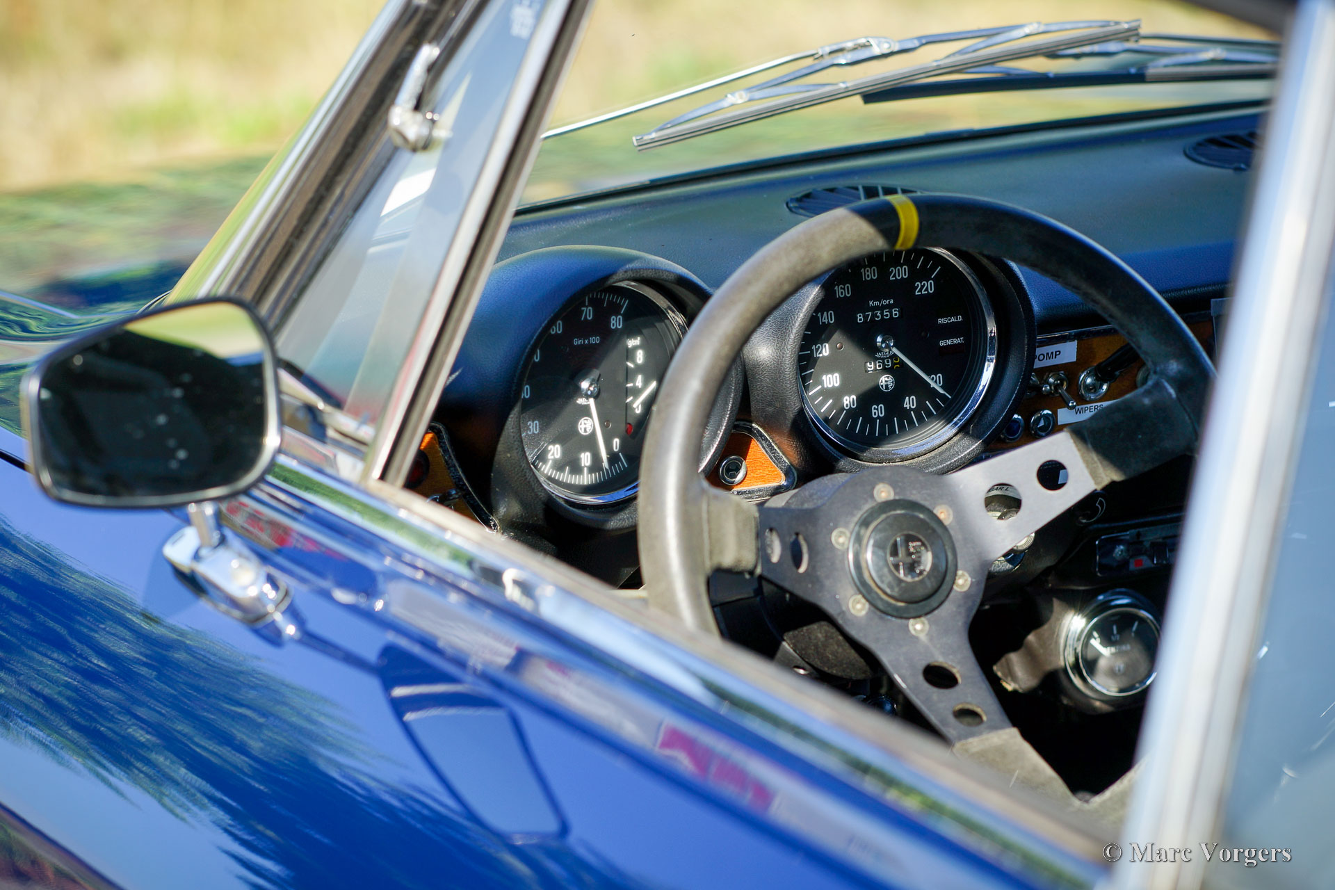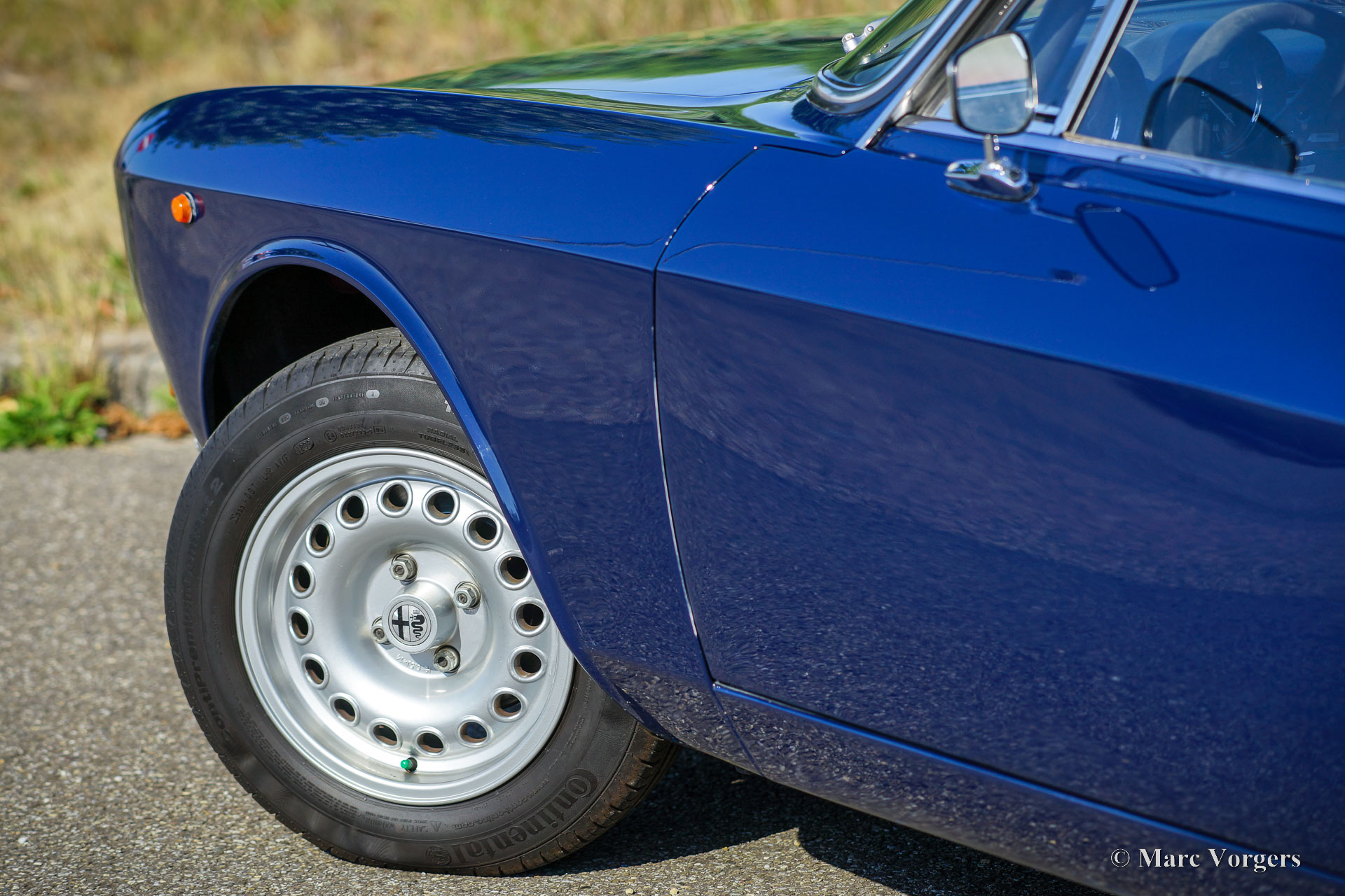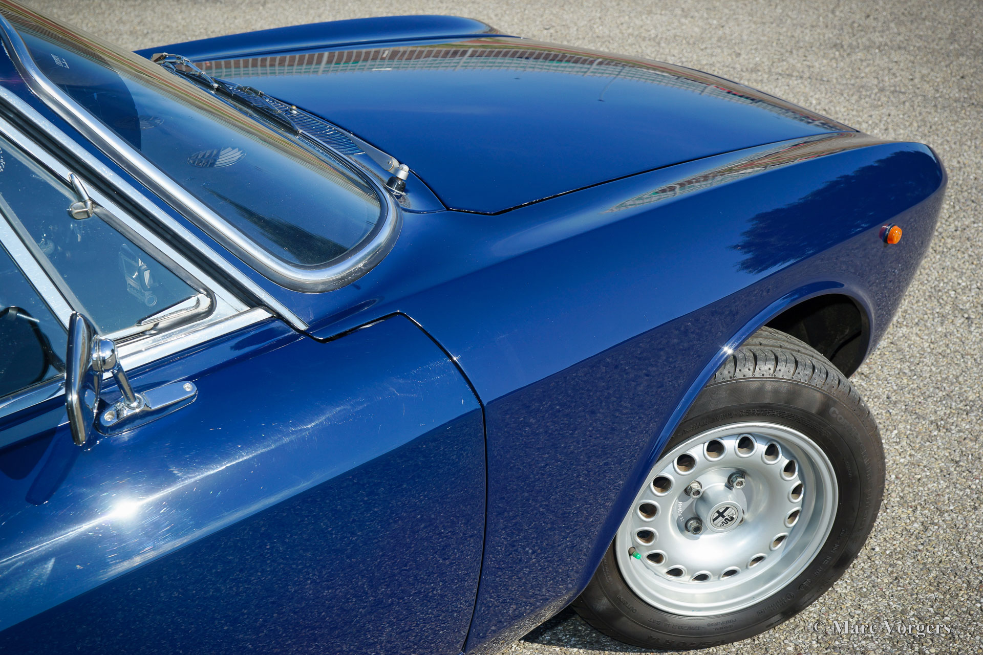 Alfa Romeo GT Junior rallyauto, jaar 1971. Kleur Blue Hollandaise gecombineerd met een zwart interieur. Zwarte Recaro kuipstoelen en zwart tapijt. Deze prachtige Alfa Romeo GT Junior verliet de fabriek met een 1300 cc motor, de motor werd vervangen door een krachtigere en getunede 1750 motor. De Alfa Romeo ‘Nord’ viercilindermotoren waren in de jaren zestig geavanceerde sportmotoren, de motoren waren vervaardigd van aluminium en hadden dubbele bovenliggende nokkenassen. Uitgerust met dubbele dubbele Weber of Dell Orto carburateurs en gekoppeld aan een vijfversnellingsbak waren de Alfa Romeo GT-modellen zeer sportieve rijdersauto's! Deze GT Junior verkeert in een goede en zeer fraaie conditie en de auto is geprepareerd voor historische rally evenementen zoals de Tulpen Rallye en de SLS. Een klassieke auto goed rally prepareren is een dure aangelegenheid. Deze auto is klaar voor elk avontuur! De carrosserie vertoont enige corrosie aan de achterkant van de linker dorpel, dit zal voor aflevering aan de nieuwe eigenaar worden gerepareerd. De auto wordt geleverd met onderhoudshistorie. Mocht u aanvullende wensen hebben, zoals het monteren van extra lampen aan de voorzijde, dan kunnen wij dit voor u verzorgen.