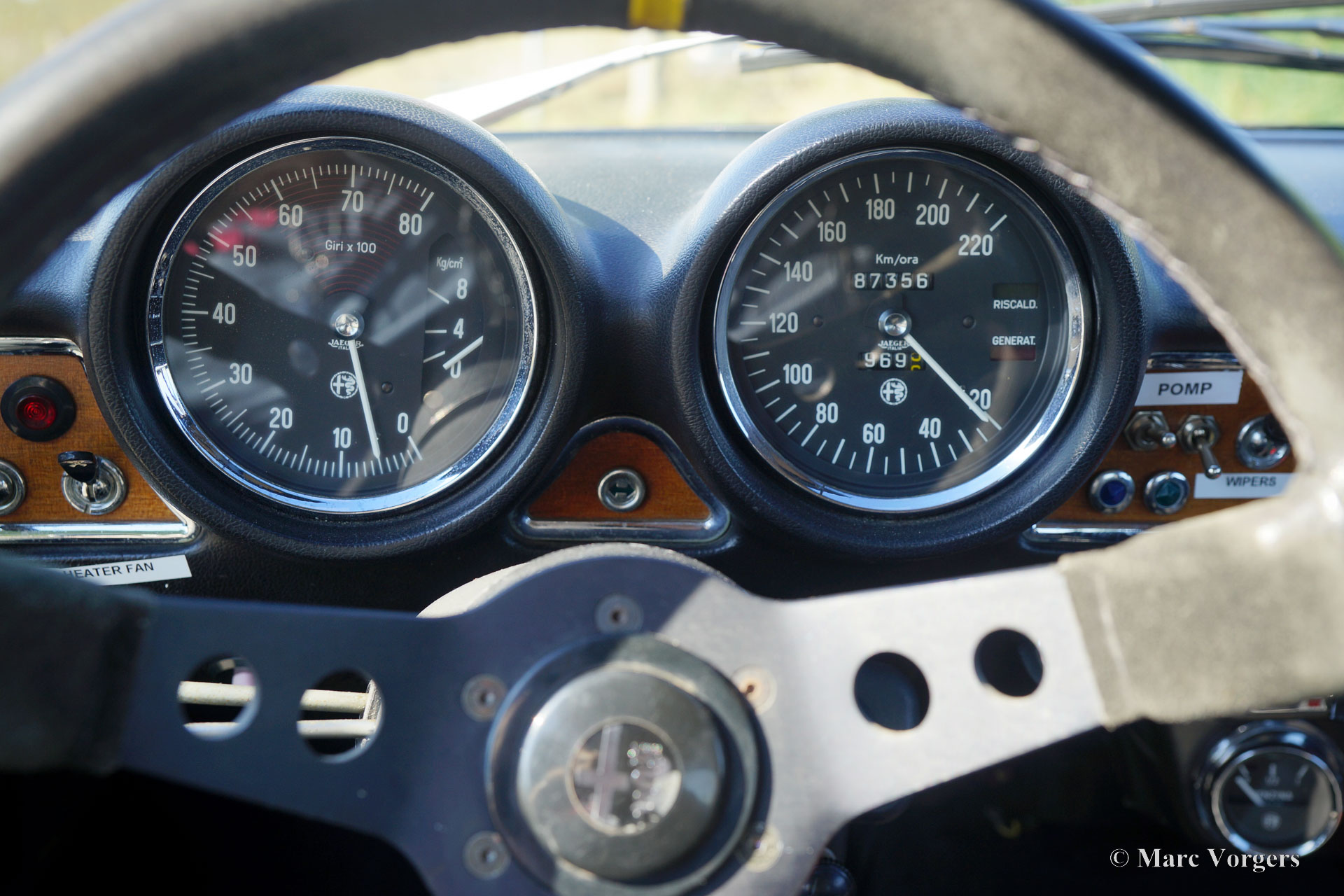 - Getunede Alfa Romeo 1750 cc motor voorzien van Colombo & Bariani nokkenassen en een lichter vliegwiel