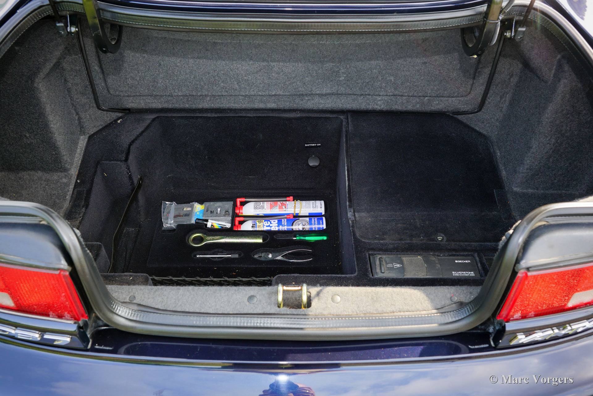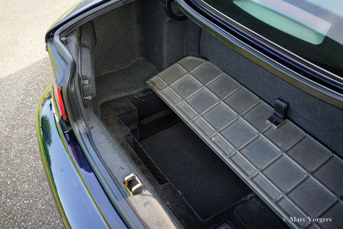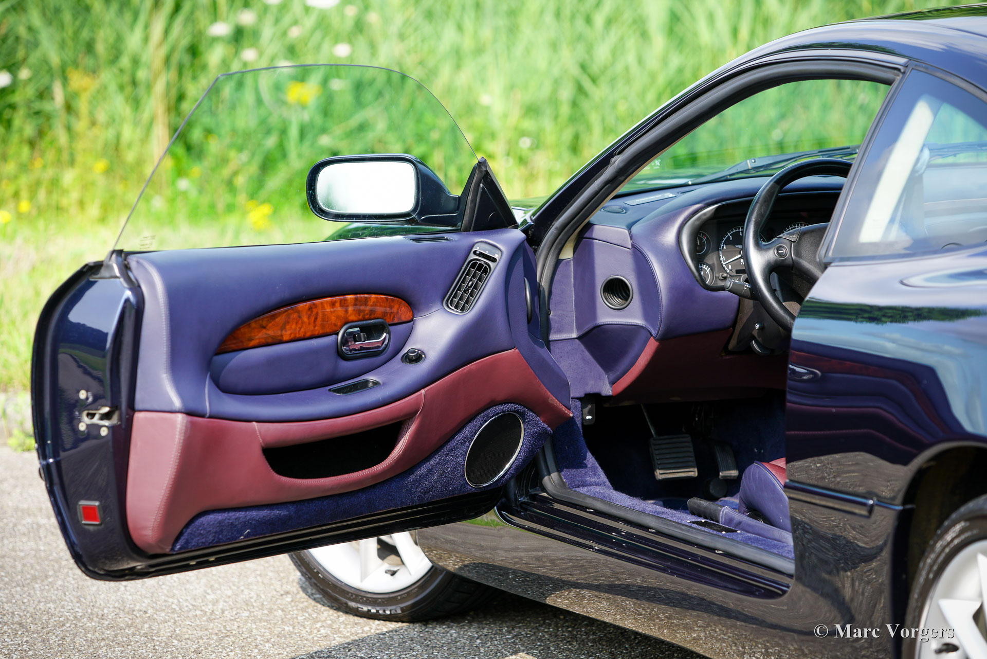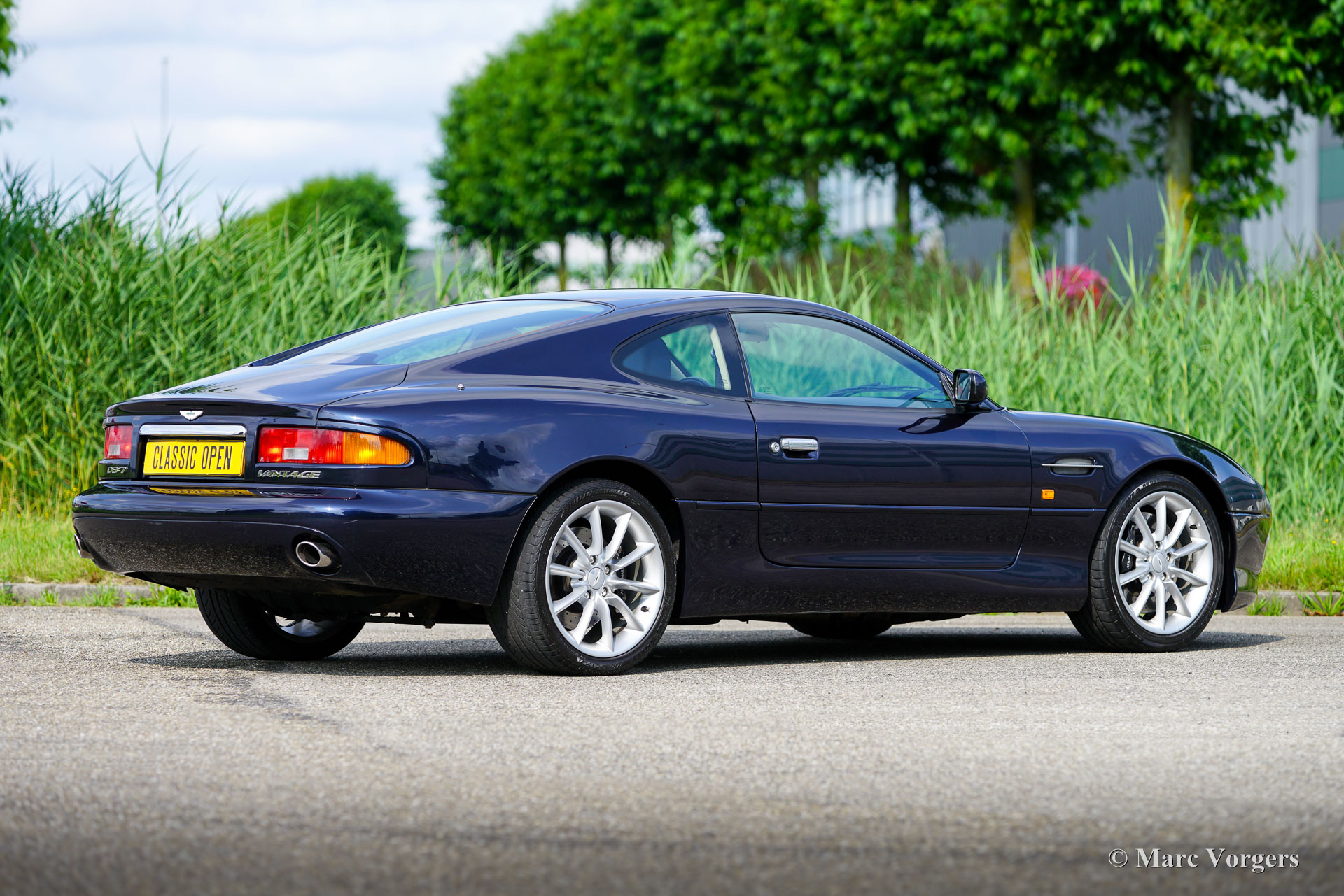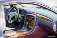 Aston Martin DB7 Vantage Coupe, jaar 2002. Kleur donkerblauw metallic (Antrim Blue) gecombineerd met een two-tone blauw/bordeaux volledig lederen interieur afgewerkt met blauw wollen tapijt. Deze zeldzame en prachtige Aston Martin DB7 Vantage is nieuw verkocht in Nederland. Vanaf nieuw heeft de auto 107.750 kilometer gereden. De onderhoudshistorie is volledig gedocumenteerd en alle originele fabrieksboekjes en extra set sleutels (in zwarte doos!) zijn nog bij de auto. Dit exemplaar verkeert in een uitstekende originele staat en de auto rijdt perfect. De auto vertoont slechts lichte sporen van eerder gebruik, met name wat steenslag op de lak van de voorkant. De machtige 420 pk V12-motor (nummer 02959) is geïnspecteerd door Phil Jefferies volgens het plaatje onder de motorkap. Deze mooie en zeldzame Aston Martin V12 Vantage Coupe is voorzien van vele luxe opties en de auto rolt op prachtige 18-inch wielen met Bridgestone Potenza-banden. De Aston Martin DB7 Vantage Coupe werd in 1999 op de autoshow van Genève gepresenteerd. DB7-ontwerper Ian Callum had de DB7 opnieuw ontworpen met meer geprononceerde zijkanten en een nieuwe voorkant voor de Vantage Coupe. Daarnaast kreeg de auto een nieuwe voor- en achterwielophanging voordat de zeer krachtige nieuwe 5935 cc V12-motor werd gemonteerd. De DB7 Vantage was de eerste Aston Martin met een V12-motor. De DB7 Vantage Coupe is een prachtige rijdersauto en een bijzonder fraai Aston Martin-model! Er zijn 2091 exemplaren gebouwd van 1999 tot 2003. Een prachtige en gewilde verzamelaarsauto. Deze Aston Martin DB7 Vantage Coupe wordt compleet geleverd met een op maat gemaakte Aston Martin-stofhoes met logo.