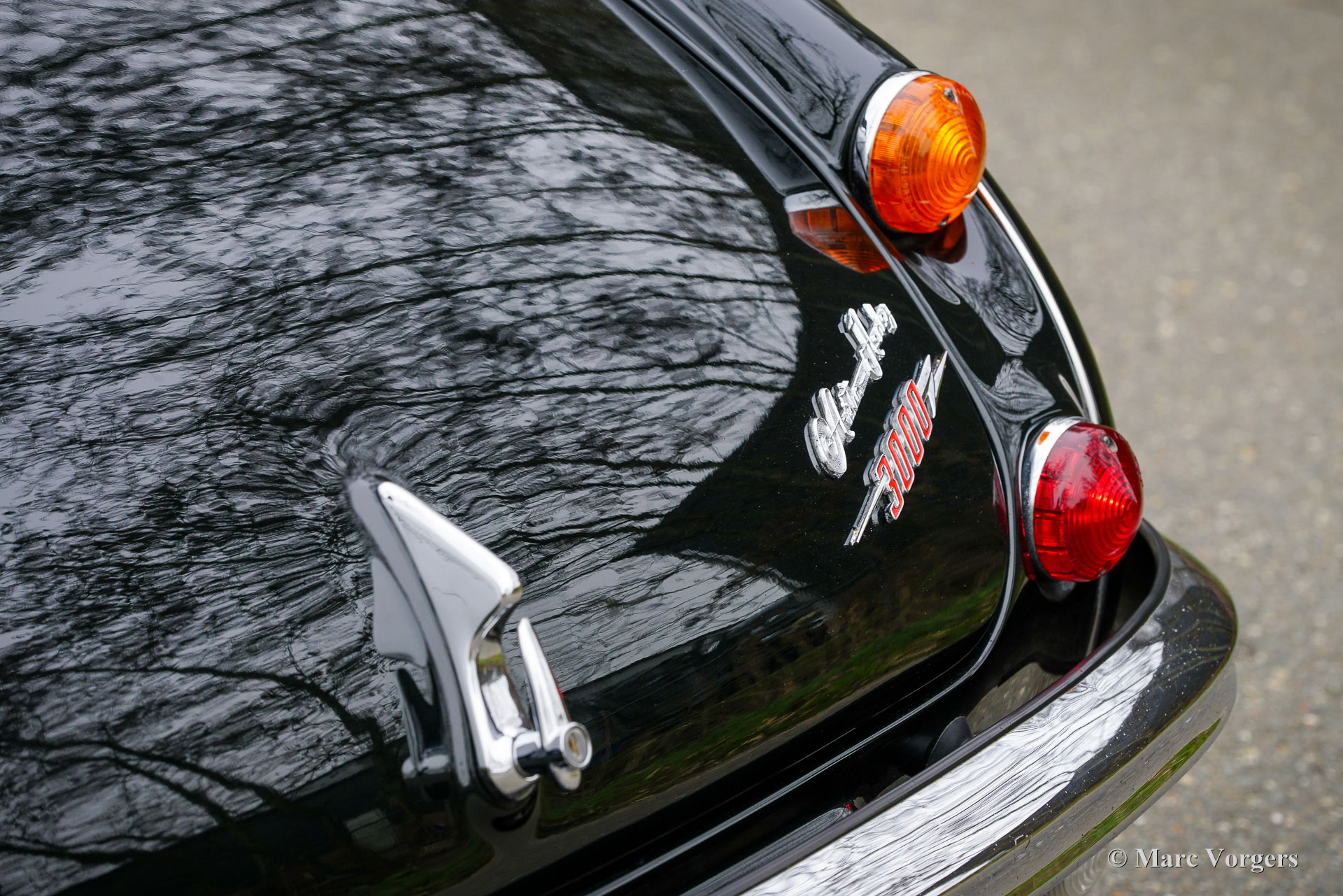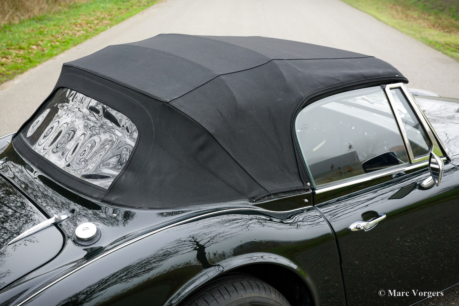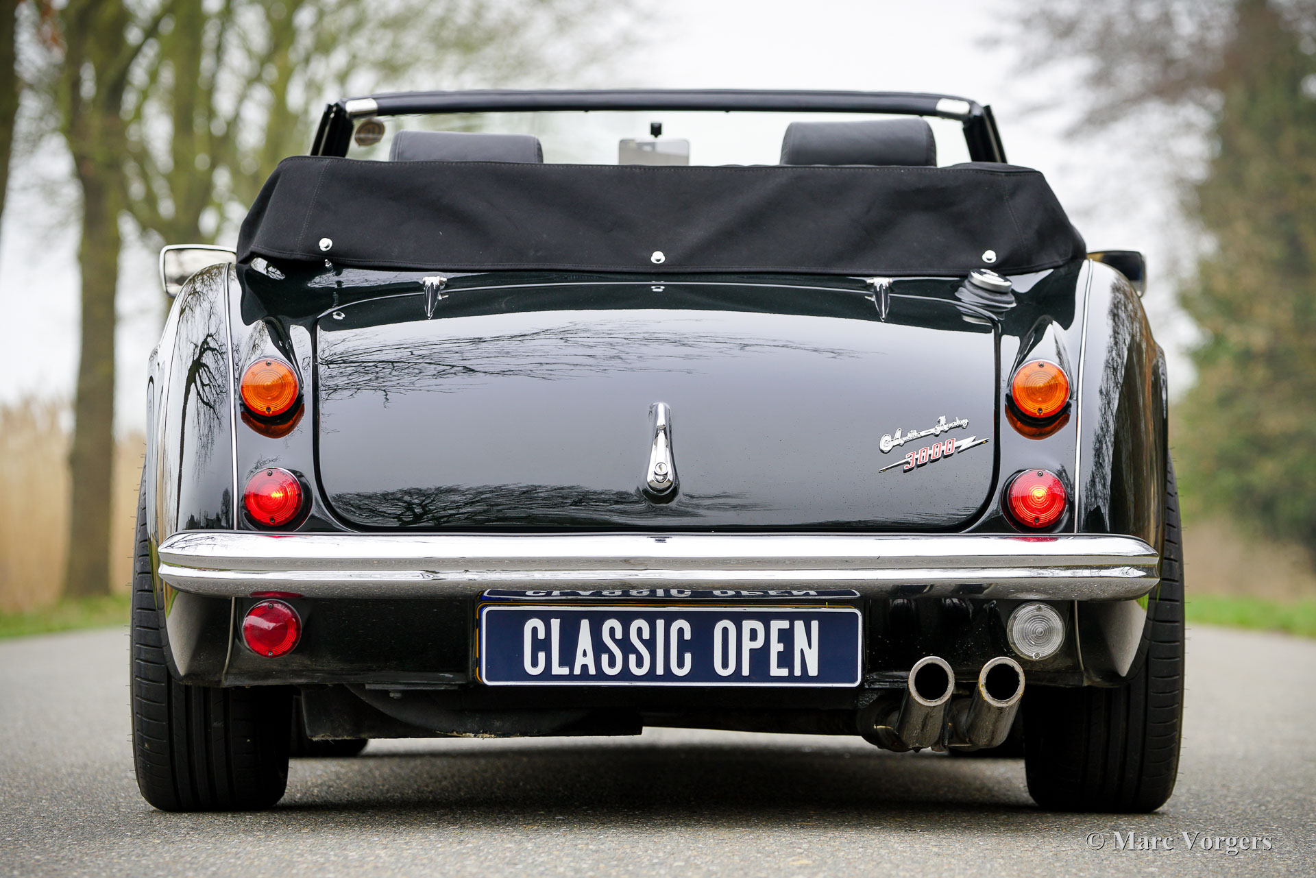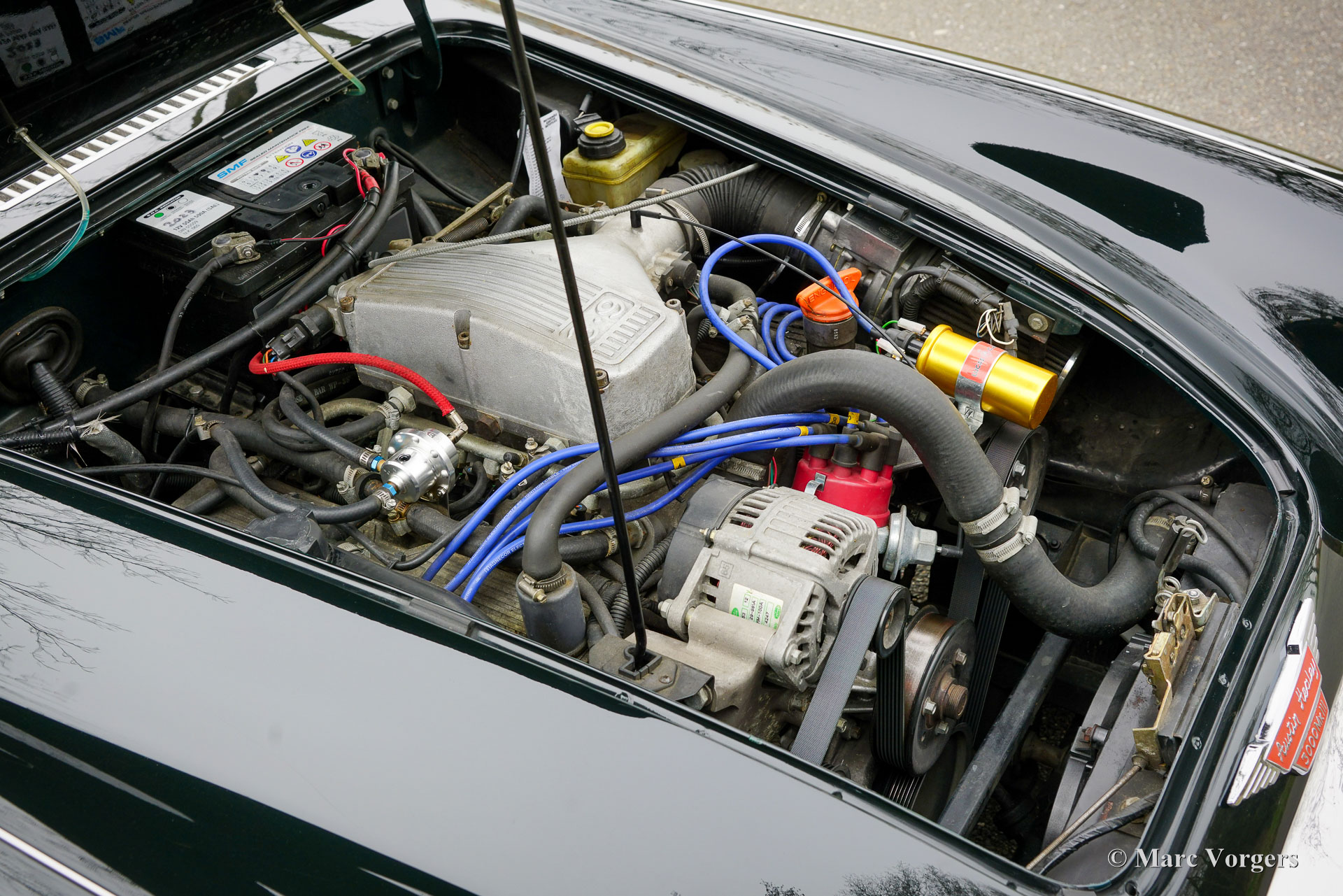 Deze schitterende HMC Mark IV uit 1998, productienummer 0128, chassisnummer SA904943GWGLT0128 en motornummer 47A08805B, is afkomstig van de eerste eigenaar. De carrosserie is uitgevoerd in donker ‘racing green’ (BMW 289), gecombineerd met een zwartlederen interieur en groene vloerbedekking. De eerste eigenaar heeft 58.750 onvergetelijke kilometers afgelegd in deze fantastische sportwagen. De rijervaring is werkelijk uniek. Iedereen die bekend is met de Austin-Healey 3000 uit de jaren 60 zal versteld staan: de HMC Mark IV is een authentieke moderne hergeboorte van dit klassieke icoon. Eenmaal plaatsgenomen valt direct de sportieve luxe van het volledig lederen interieur op, inclusief het dashboard en de deurpanelen. De stoelen bieden uitstekende ondersteuning en de rijpositie is een grote verbetering ten opzichte van het origineel uit de jaren 60. Bij het starten klinkt niet de ‘huil’ van een 3-liter zescilinder, maar het gerommel van een 190 pk sterke 3,9-liter V8 – dezelfde legendarische motor die ook in de Morgan +8 en de TVR S-serie te vinden is. Met een gewicht van 1200 kilogram levert de HMC Mark IV indrukwekkende prestaties. Het forse koppel van 305 Nm is vooral merkbaar wanneer de auto in 6,1 seconden van 0 naar 100 km/u sprint. Dankzij de onafhankelijke wielophanging en schijfremmen op alle vier de wielen stuurt en remt de auto uitzonderlijk goed. Dit prachtige exemplaar is zorgvuldig gestald, onderhouden en vertoont slechts lichte gebruikssporen. Dit is een zeldzame kans om een exclusieve en zeer indrukwekkende HMC Mark IV te bemachtigen.