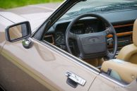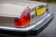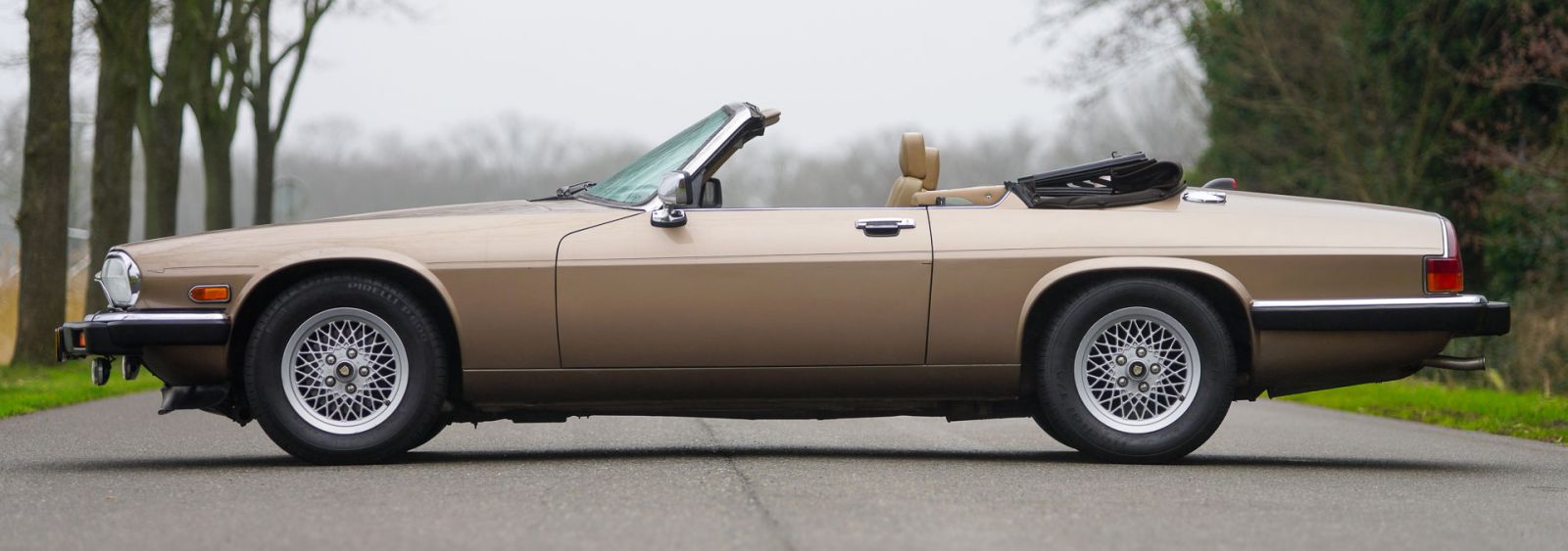 Jaguar XJS V12 Convertible, jaar 1990. Kleur lichtbruin metallic gecombineerd met een beige lederen interieur, bruin tapijt en beige beschermmatten. Donkerbruine mohair cabrioletkap. Deze majestueuze Jaguar XJS Convertible is nieuw verkocht in de VS. Enkele jaren geleden is de auto geïmporteerd in Nederland. Vanaf nieuw heeft de auto slechts 96.000 mijlen gereden. Deze fraaie Jaguar verkeert in een zeer goede staat en is geheel roestvrij! De auto rijdt perfect, de V12-motor loopt soepel en krachtig, de versnellingsbak schakelt zeer goed en de stuurbekrachtiging is een genot. Recentelijk heeft de XJS een uitgebreide onderhoudsbeurt gehad, waarbij onder andere het stuurhuis en de remmen zijn gereviseerd en de kleppen zijn gesteld. Deze Jaguar XJS cabriolet is een zeer originele auto, de auto vertoont lichte sporen van gebruik en het originele interieur is zeer netjes voor zijn leeftijd! De elektrisch-hydraulisch bediende kap werkt feilloos. Deze Jaguar XJS Convertible is een zeer begeerlijke klassieke Gran Turismo met open dak!