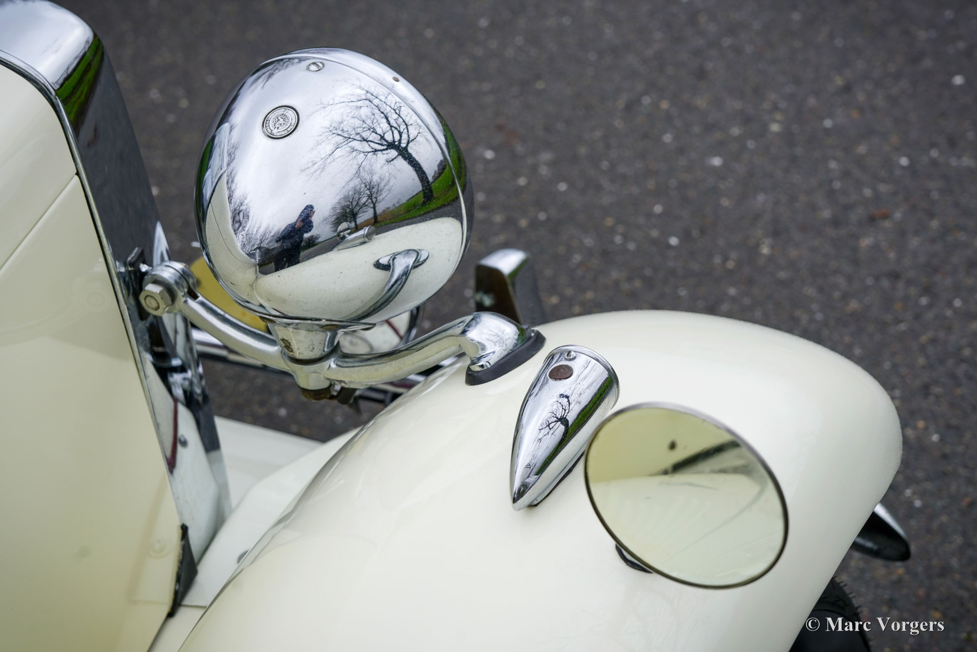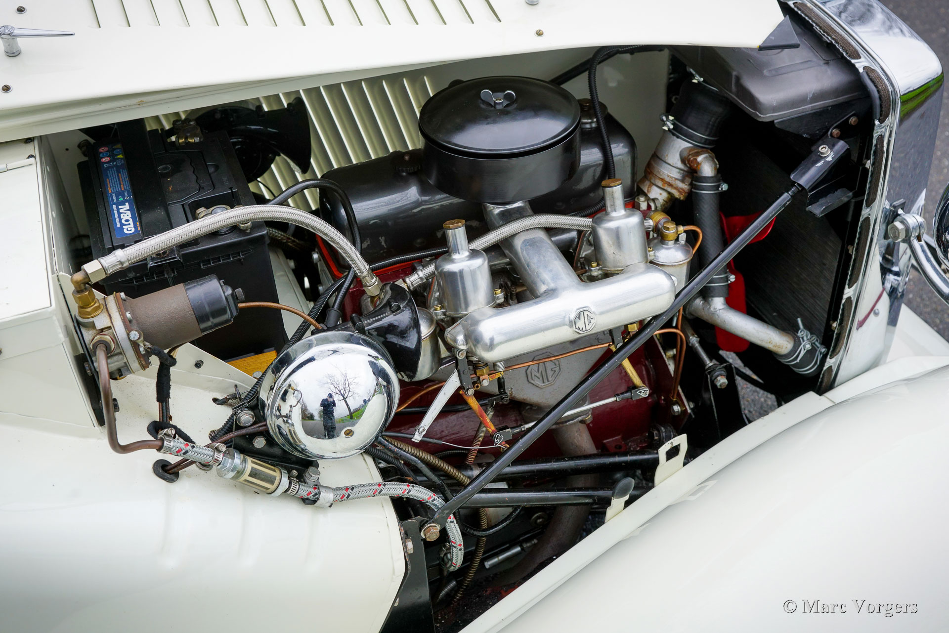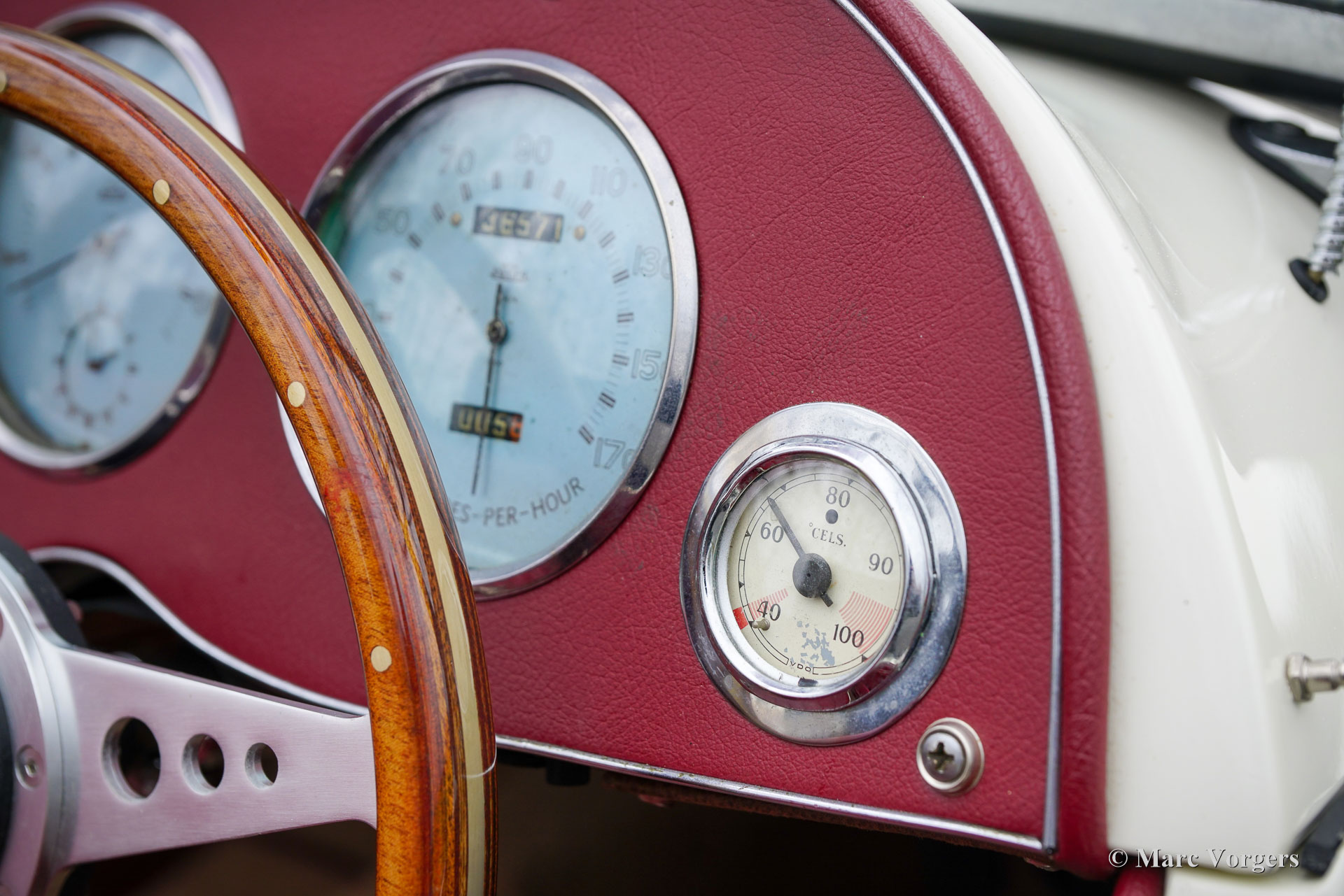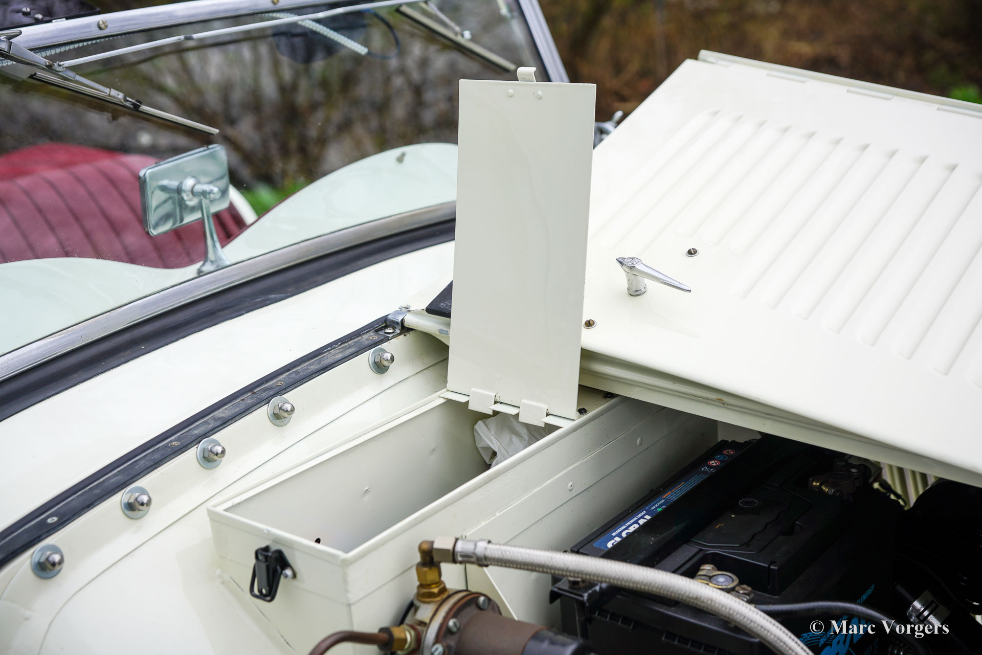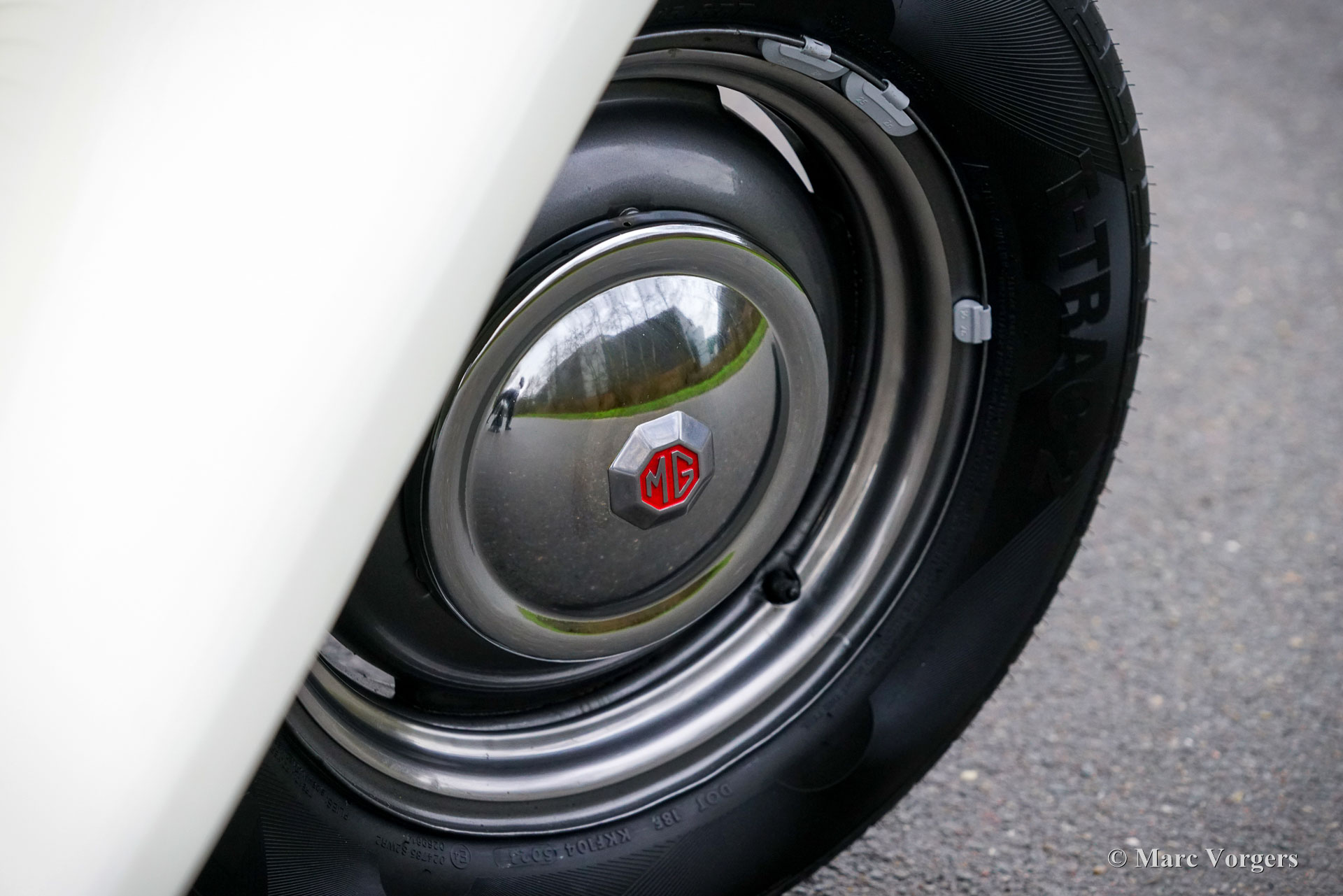 MG TD, jaar 1950. Kleur crème wit (Old English White) gecombineerd met een donkerrood lederen interieur afgewerkt met witte biezen en beige tapijt. Donkerrode mohair kap, zijschermen en tonneau cover. Deze prachtige MG TD met chassisnummer 2169 is nieuw verkocht in Nederland. In de periode 2015 – 2020 is deze prachtige MG TD zorgvuldig gerestaureerd naar oorspronkelijke glorie; de auto ziet eruit en rijdt alsof deze net de MG-fabriek heeft verlaten. Alles is gerestaureerd, opgeknapt en/of vernieuwd. De 1250cc XPAG-motor is gereviseerd wat zorgt voor een soepele en plezierige klassieke rijervaring. Het interieur is voorzien van nieuwe bekleding, een gerestaureerd dashboard en prachtige meters met chromen randen. Sinds de restauratie heeft de auto slechts 2000 kilometer gereden. Een restauratierapport met foto's en facturen is aanwezig. Met zijn prachtig gebogen spatborden, chromen grille en klassieke kleurencombinatie is deze MG TD een klassieke schoonheid. Deze prachtig gerestaureerde MG TD is een geweldige vondst voor MG-verzamelaars en liefhebbers. Foto's van de onderkant zijn op aanvraag beschikbaar. Wij nodigen u uit om deze prachtige MG TD bij ons in de showroom te komen bewonderen en te ervaren tijdens een proefrit.