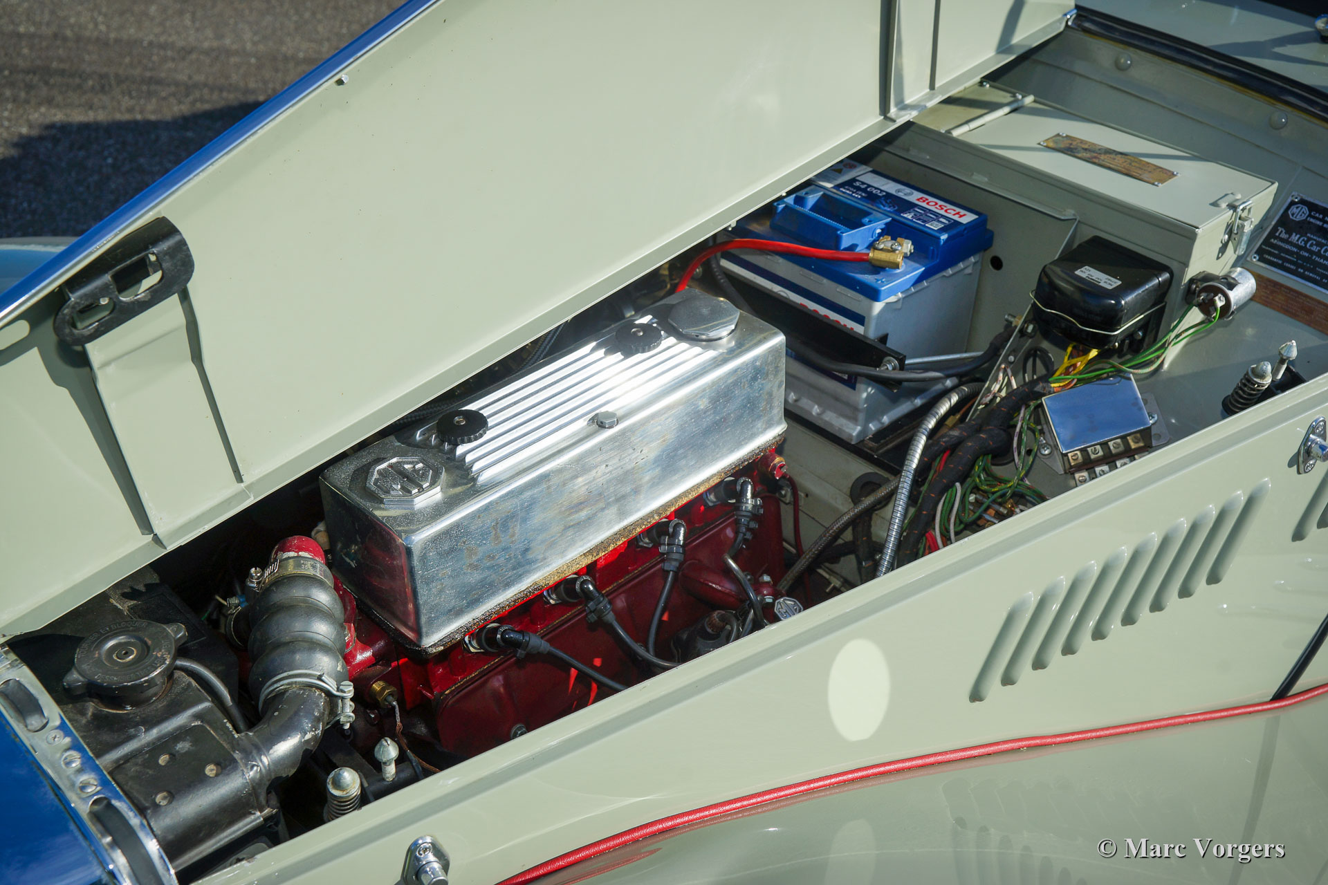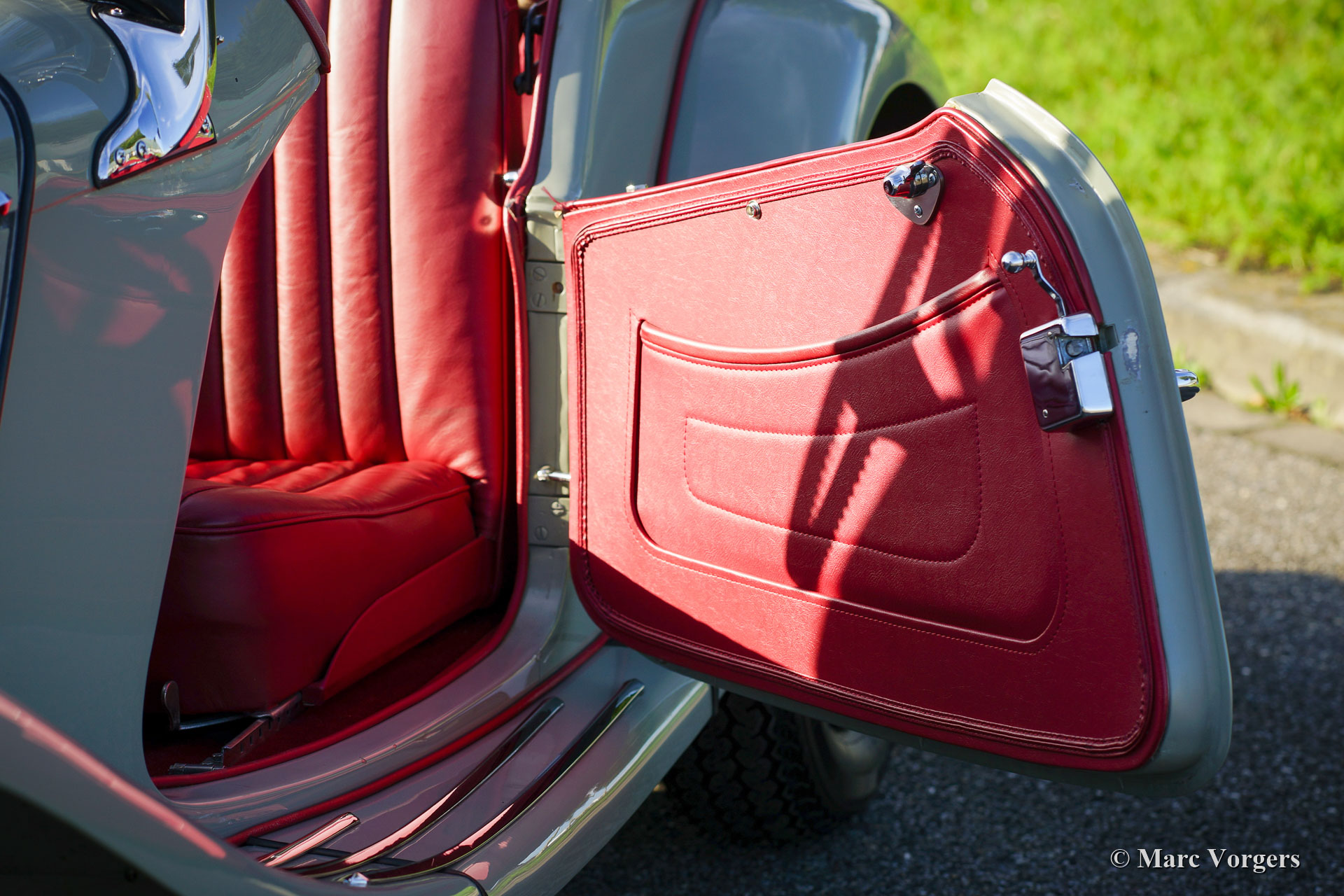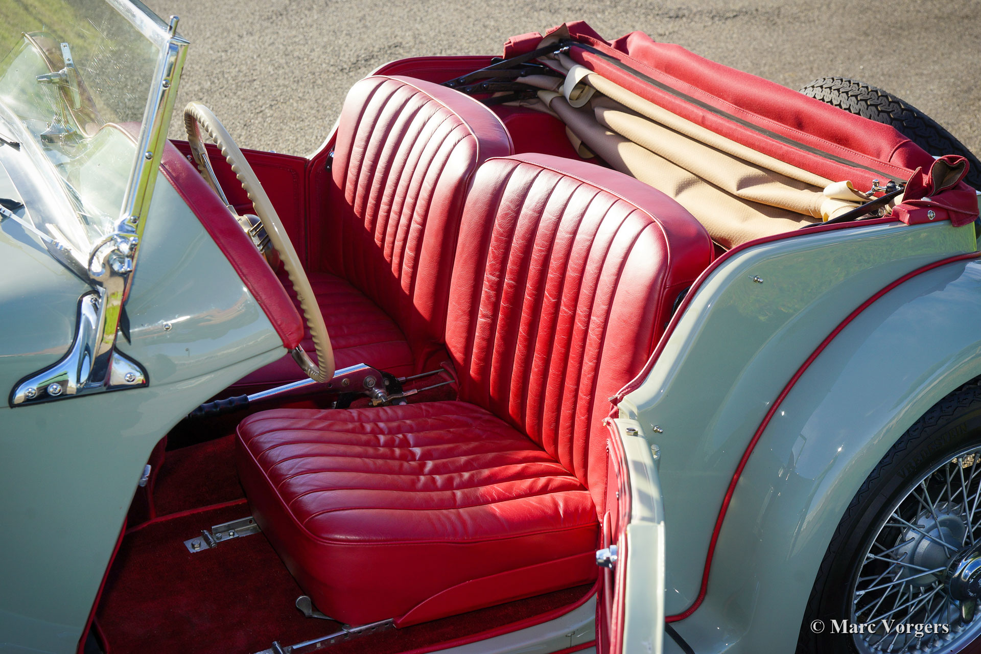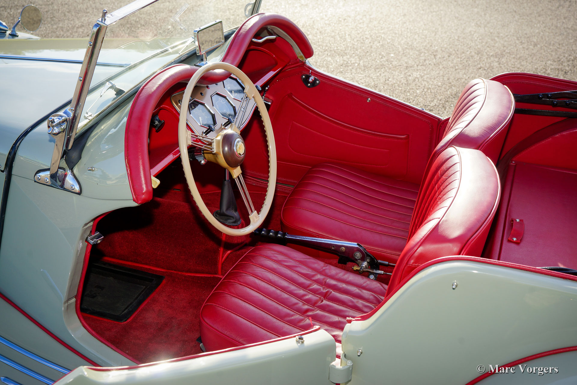 MG TF, jaar 1954. Kleur grijs (Birch Grey) gecombineerd met een roodlederen interieur. Rode mohair soft-top en zijschermen. Deze zeer fraaie MG TF is in het verleden gerestaureerd, de auto verkeert in excellente tot sublieme conditie en de auto rijdt voortreffelijk. De MG TF is de laatste van de legendarische MG ‘T’-serie. Deze auto toont alle originele details. Zeer bijzonder zijn de fantastische achthoekige dashboardmeters en het fantastische uitzicht over de motorkap en de voorspatborden. De MG TF is een geweldige auto om slingerende landwegen in je eigen tempo te verkennen. De open rijbeleving is gewoonweg perfect! Deze MG TF is voorzien van zilvergelakte spaakwielen. Een prachtig exemplaar!