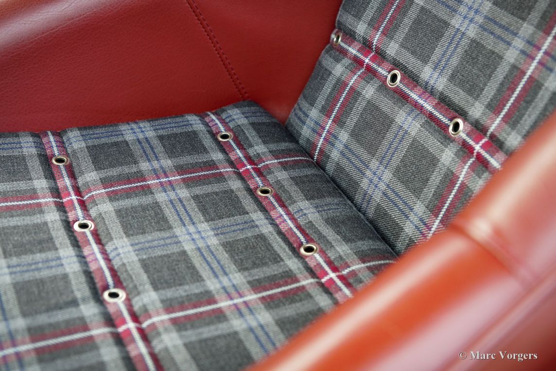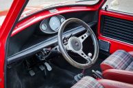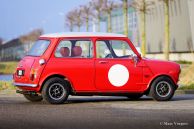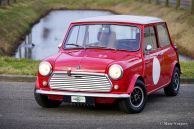 Morris Mini Cooper MK2, jaar 1970. Exterieurkleur tartan rood gecombineerd met een ‘Sky mist’-kleurig dak. Speciaal gemaakt donkerrood/grijs leder/stoffen interieur afgewerkt met zwart tapijt. Deze geweldige Mini Cooper werd geassembleerd in de British Leyland Sebutal-fabriek in Portugal en nieuw verkocht in Portugal. In 2020 is de auto in Nederland geïmporteerd. Deze Morris Mini Cooper is in het verleden gerestaureerd en gereviseerd. De auto is voorzien van een krachtige Cooper S 1275 cc-motor met twee S.U.-carburateurs, elektronische ontsteking en andere upgrades om de Cooper S-specificaties te benaderen. Een rembekrachtiger zorgt dat de remmen het extra vermogen aankunnen. De sportuitlaat produceert een prachtig geluid dat lijkt op de krachtige brul van de succesvolle Mini Coopers die in de jaren 60 zoveel rally's hebben gewonnen. De auto is uitgerust met twee benzinetanks (vandaar de twee snelvuldoppen op de achterste hoeken!), wielkast verbreders, Swift Tune-racespiegels, een carterbeschermer en zeer fraaie “Rose Petal”-lichtmetalen velgen! Deze kleine ‘pocket rocket’ verkeert in een uitstekende staat en de rijervaring is fantastisch! Dit prachtige exemplaar beschikt over een speciaal interieur met prachtige kuipstoelen bekleed met donkerrood leer en grijs geblokte stoffen middenstukken. Historische documentatie is bij de auto aanwezig. De Morris Mini was een revolutie toen deze in 1959 werd geïntroduceerd en de Cooper en Cooper S-modellen bleken sensationele auto's op het circuit en in rallywedstrijden. De Mini werd een icoon van de populaire cultuur van de jaren 60 en wordt beschouwd als een van de meest invloedrijke auto's van de 20e eeuw. Dit is uw kans om een prachtig exemplaar te kopen dat een blijvende glimlach op uw gezicht zal toveren!