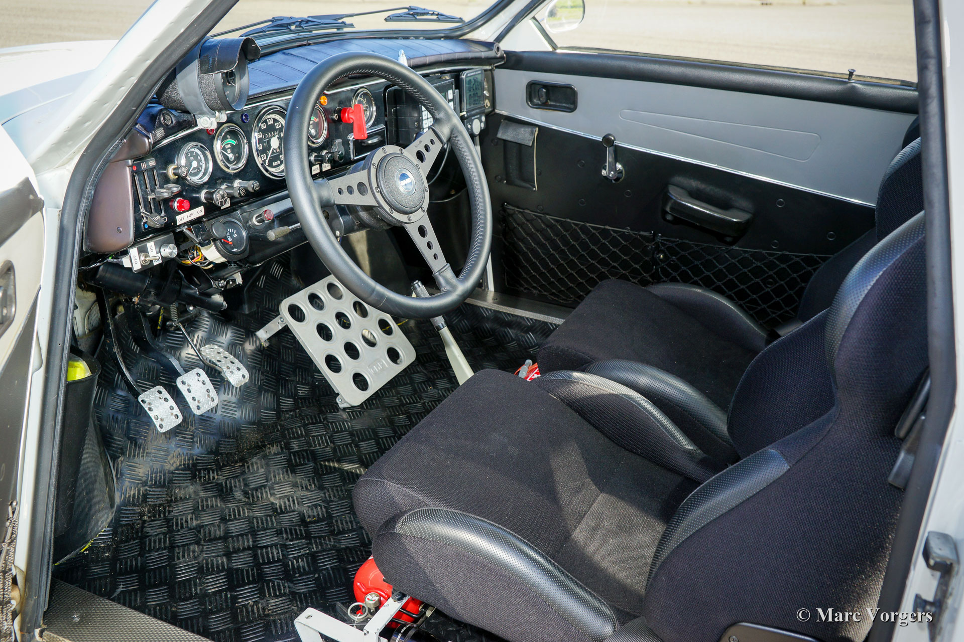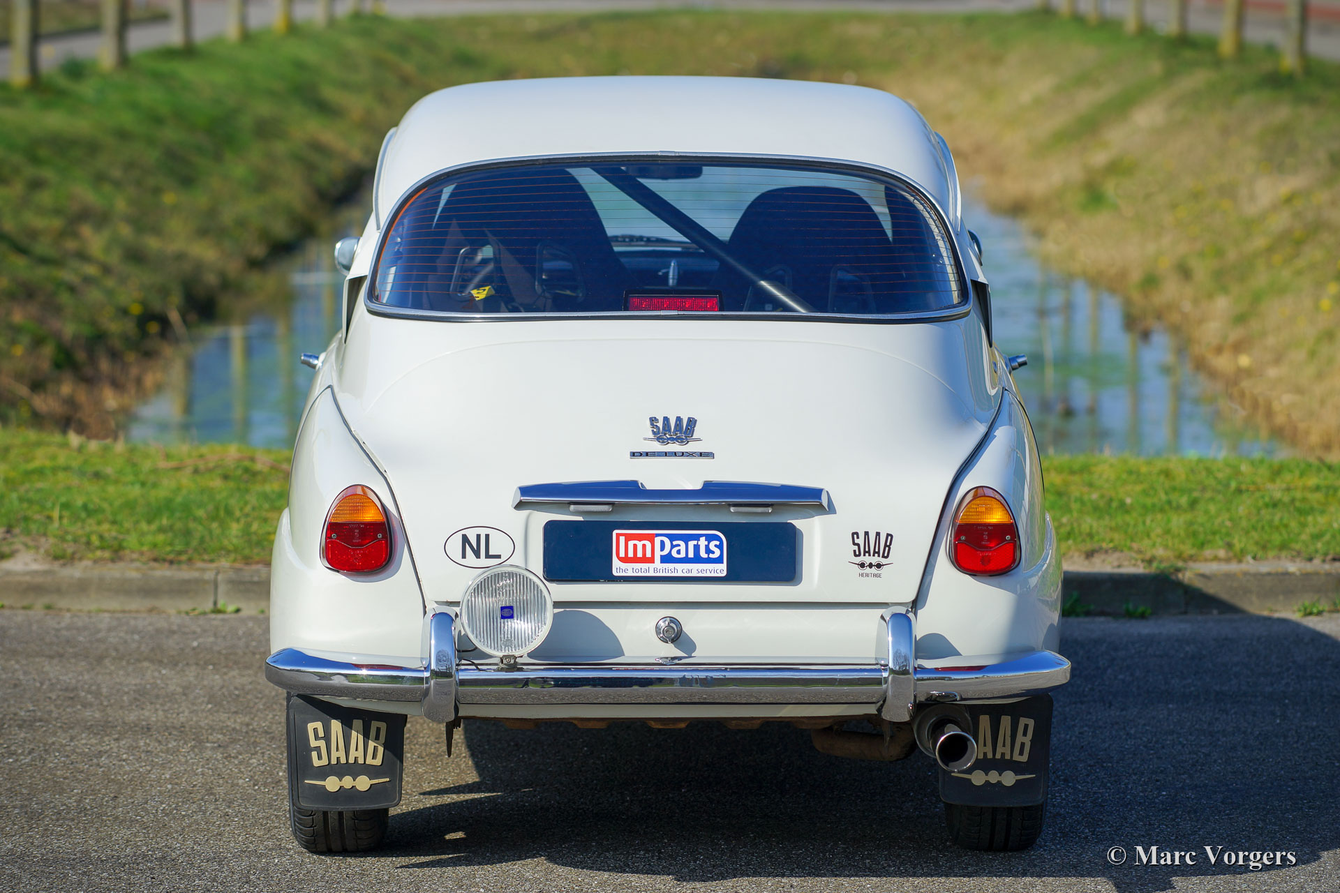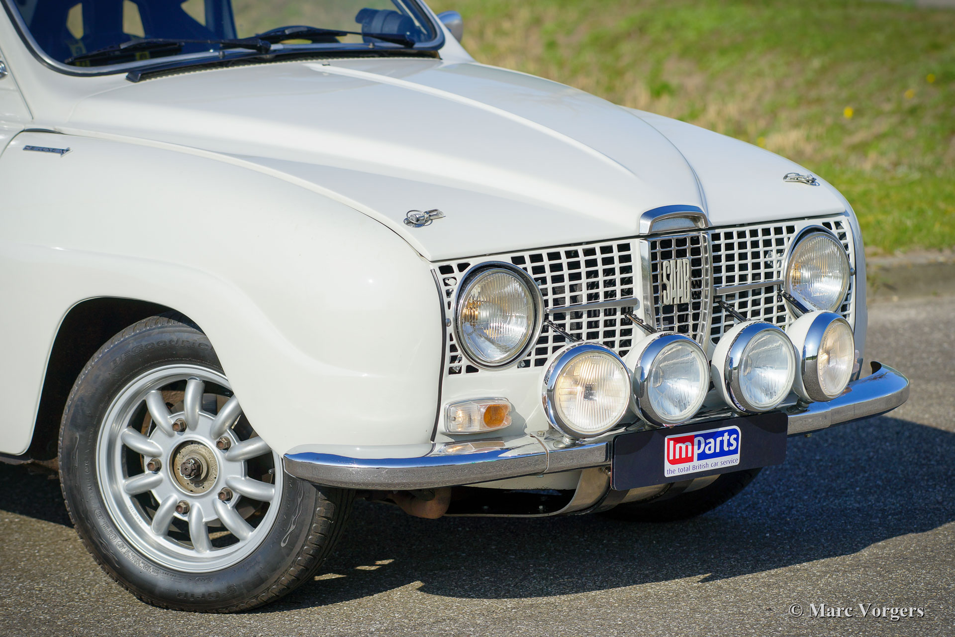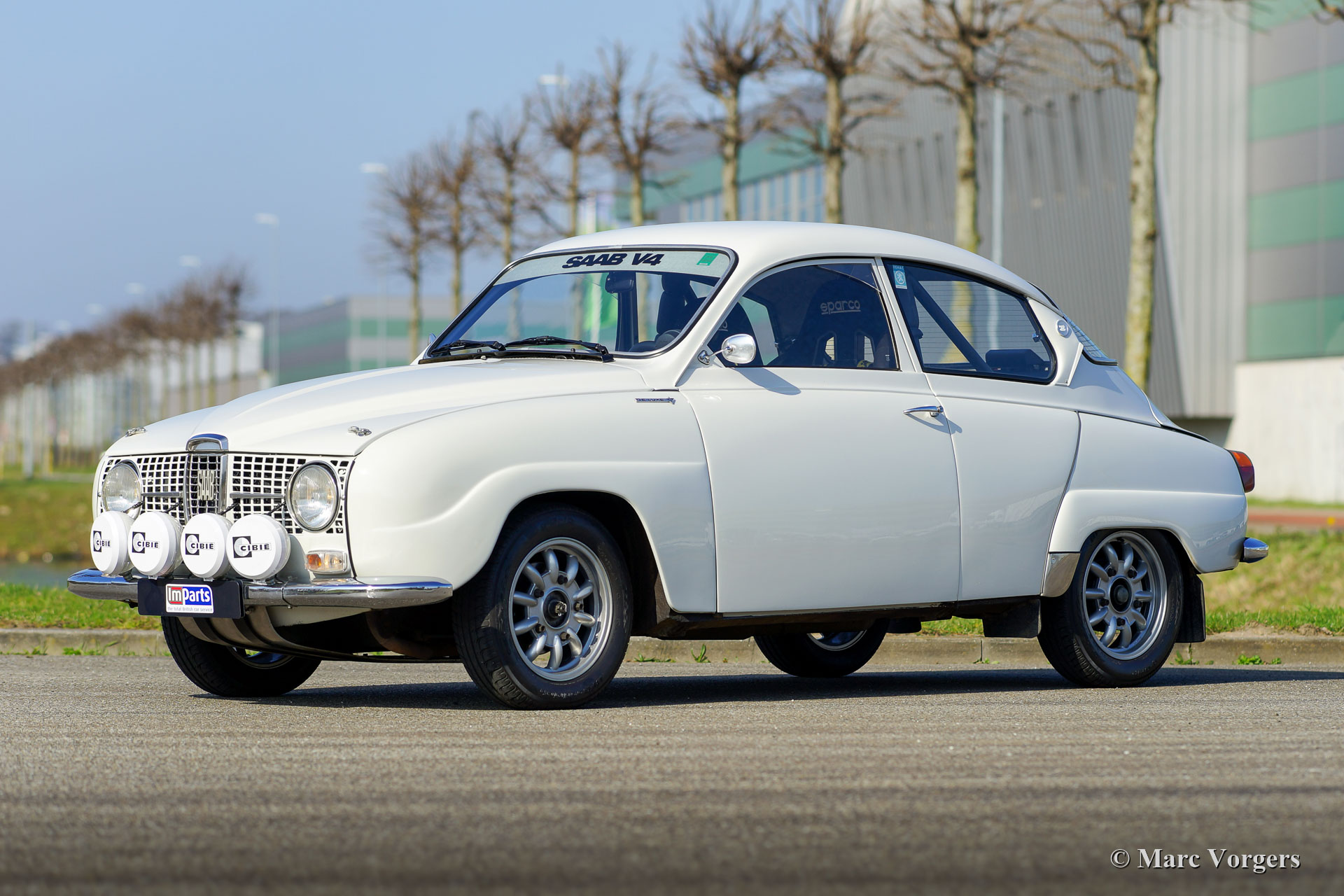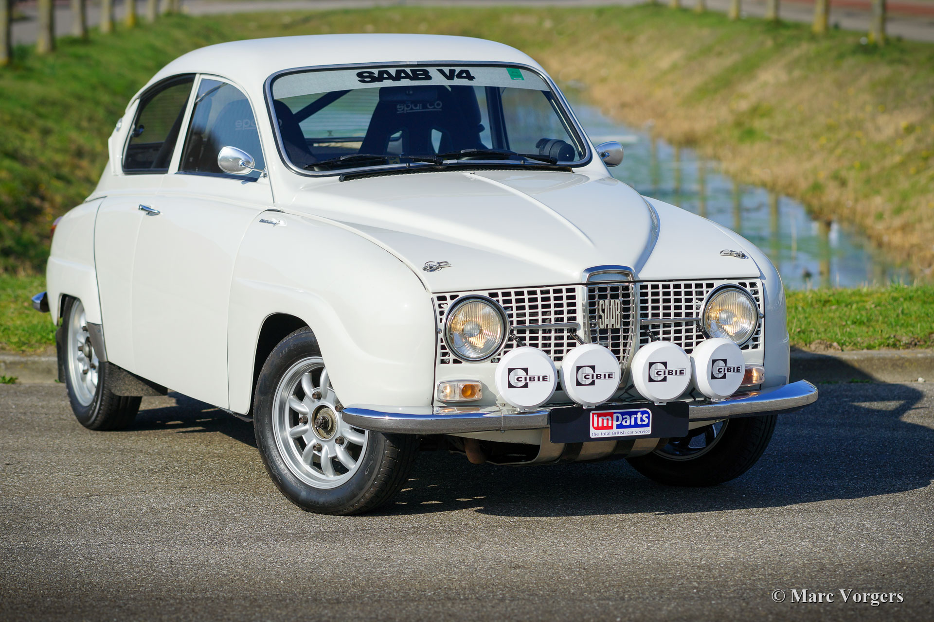 Saab 96 V4 De Luxe rallyauto, bouwjaar 1968, eerste registratie 14 januari 1972 (Nederland). Kleur wit gecombineerd met een zwart rally interieur. Sparco kuipstoelen bekleed met zwarte stof en leer op de verhoogde delen, zwart rubberen tapijt. Deze indrukwekkende Saab V4 is in 2009 fraai opgebouwd, geprepareerd en getuned als een competitieve en betrouwbare historische rallyauto. Het werk is uitgevoerd in opdracht van de huidige eigenaar die de auto koestert sinds 2009. De auto verkeert in zeer goede tot excellente conditie. De Saab heeft ongeveer 20.000 kilometer gereden sinds de afronding van het werk. De eigenaar heeft veel genoten van deze krachtige en snelle Saab tijdens verschillende historische rally-evenementen. Voor en na elk evenement is de auto volledig nagekeken en geserviced, recent heeft de auto uitgebreide service gekregen van een Saab Specialist. De speciaal getunede V4-motor is gebouwd door de firma Sweed Speed Racing (Saab V4-specialist) in Nederland. Hieronder vindt u een lijst met wijzigingen die zijn uitgevoerd aan de motor en aan andere onderdelen van de auto. De motor is nu voorzien van speciale inlaatspruitstukken met twee dubbele Weber-carburateurs. Dit krachtpakket neemt veel ruimte onder de motorkap in beslag. Om de motorkap te openen, moet deze nu volledig worden afgenomen omdat de scharnieren zijn verwijderd. Motorspecificaties: V4-motor, 1770 cc, 130 pk vermogen, 200 Nm koppel. Dit is een perfect geprepareerde Saab 96 V4 De Luxe. De auto is klaar voor elk avontuur in de handen van een nieuwe enthousiaste eigenaar!
