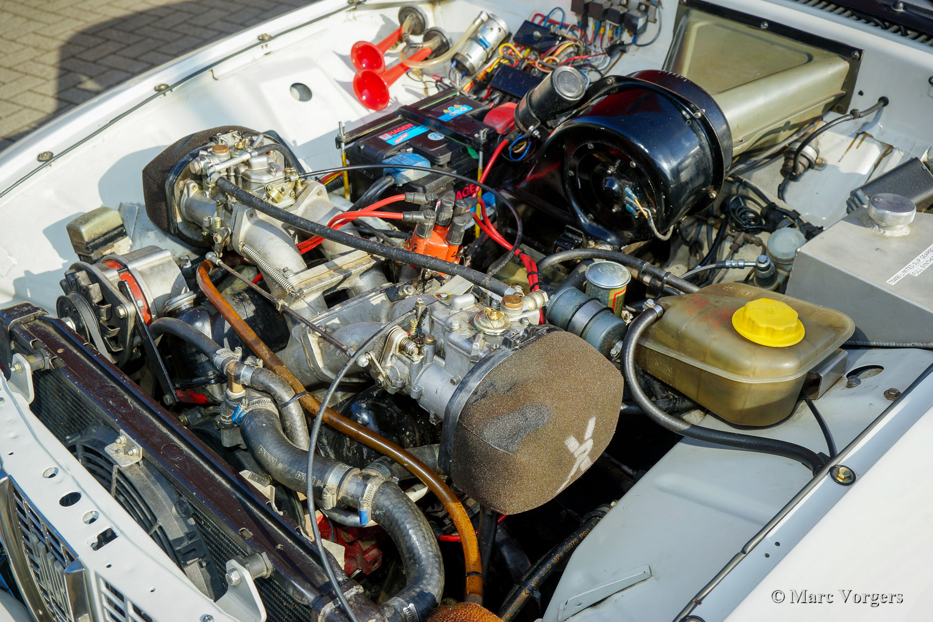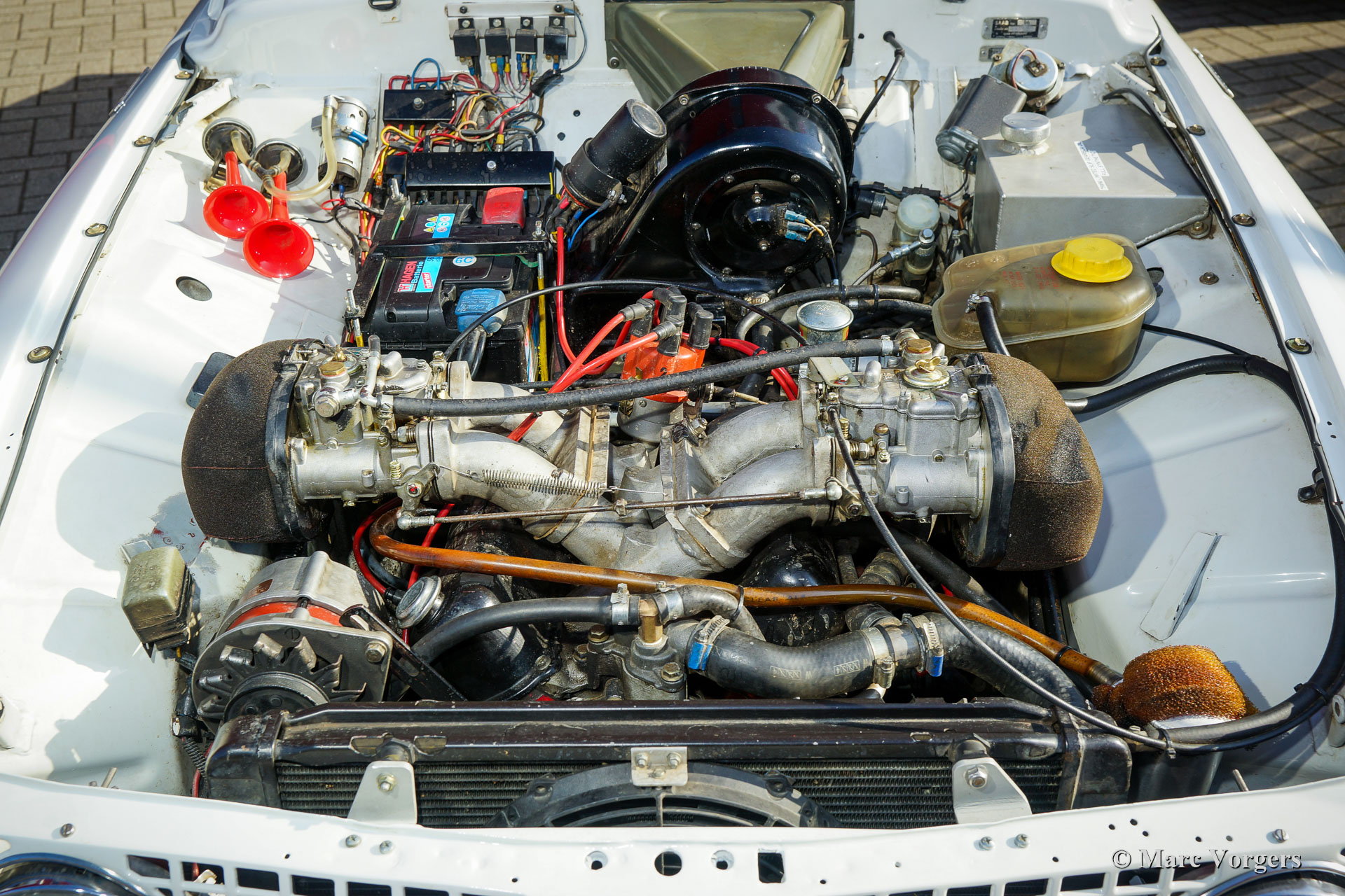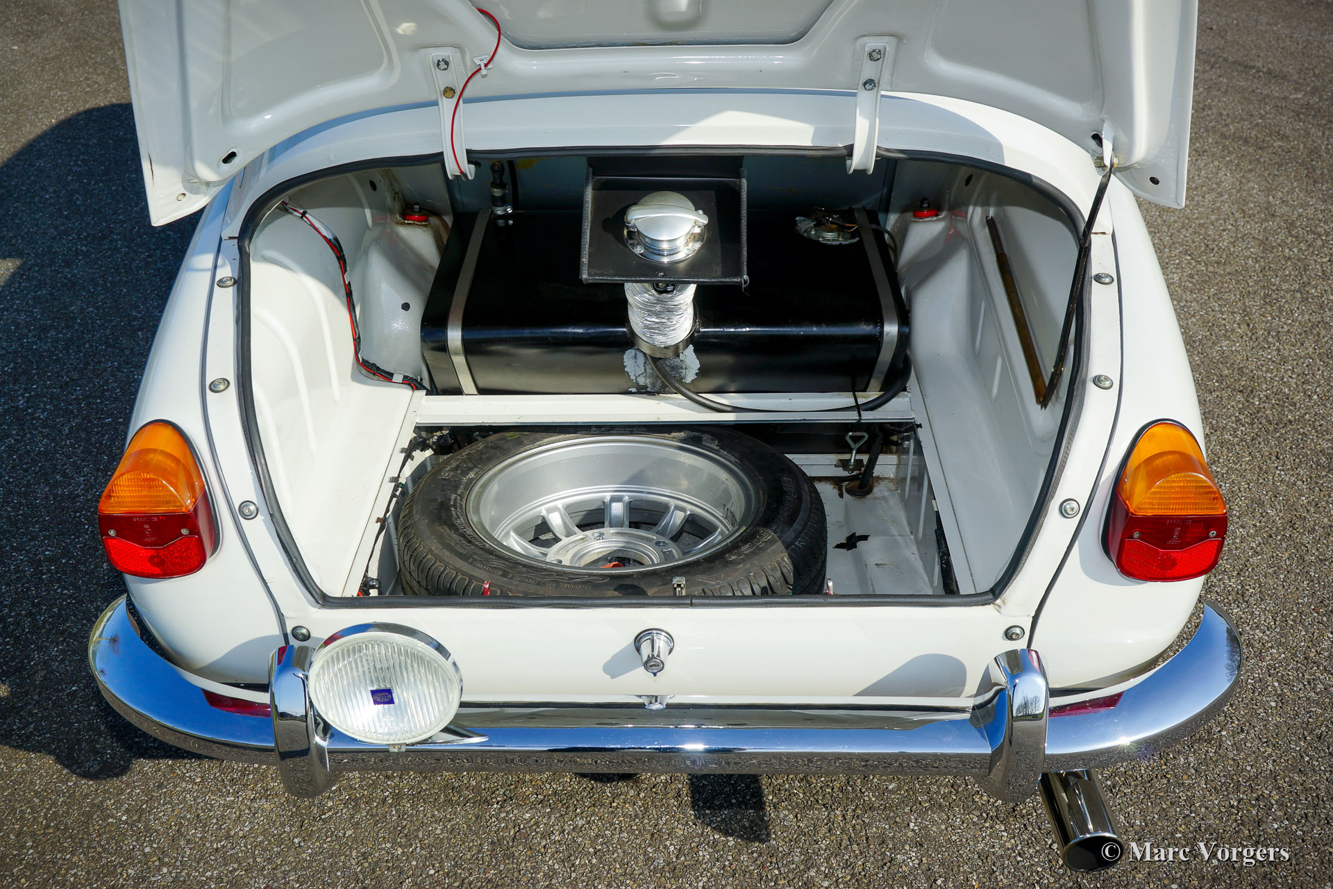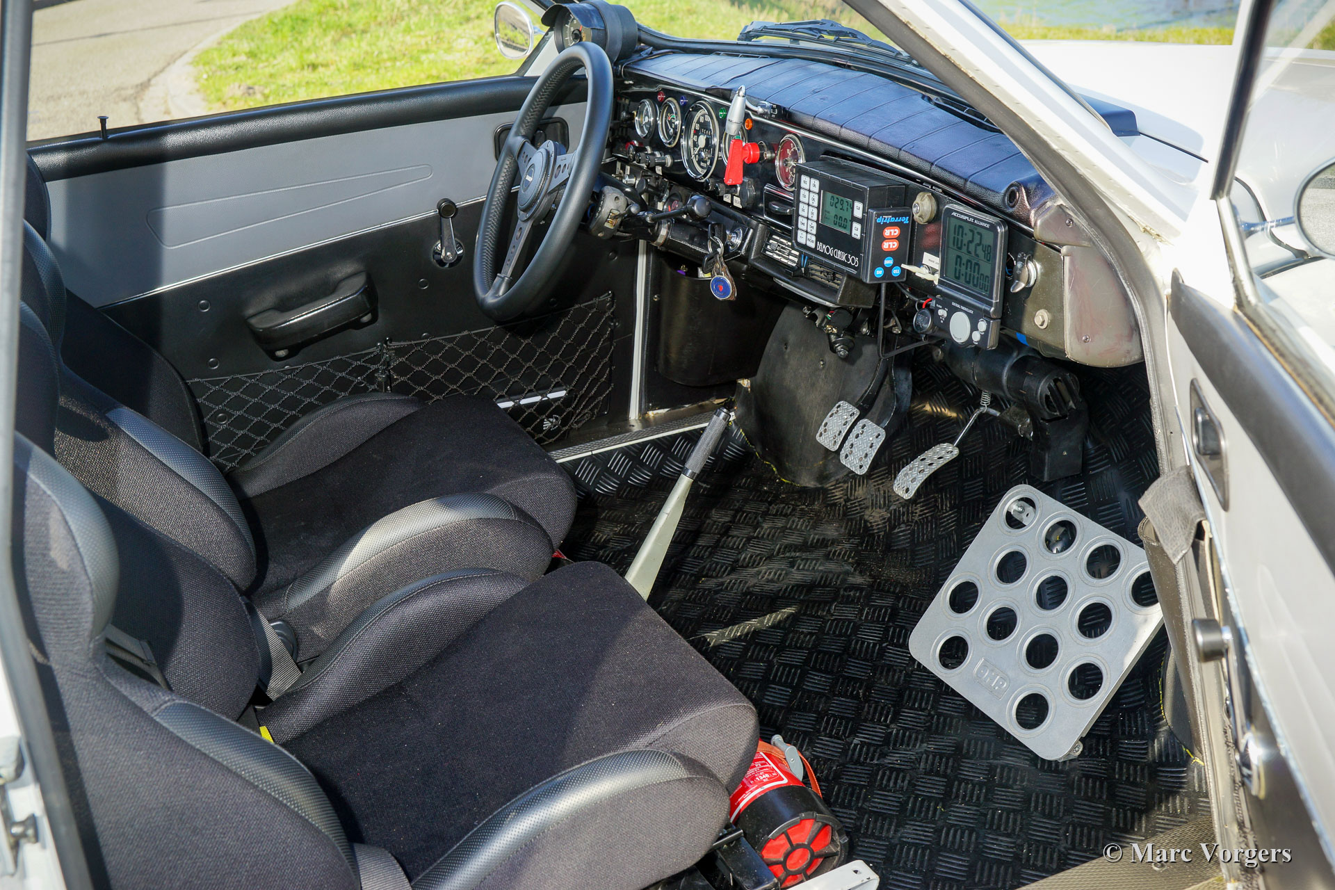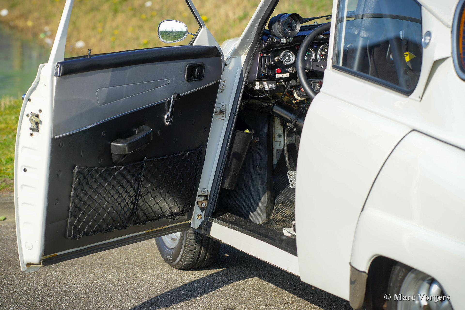 Saab 96 V4 De Luxe rallyauto, bouwjaar 1968, eerste registratie 14 januari 1972 (Nederland). Kleur wit gecombineerd met een zwart rally interieur. Sparco kuipstoelen bekleed met zwarte stof en leer op de verhoogde delen, zwart rubberen tapijt. Deze indrukwekkende Saab V4 is in 2009 fraai opgebouwd, geprepareerd en getuned als een competitieve en betrouwbare historische rallyauto. Het werk is uitgevoerd in opdracht van de huidige eigenaar die de auto koestert sinds 2009. De auto verkeert in zeer goede tot excellente conditie. De Saab heeft ongeveer 20.000 kilometer gereden sinds de afronding van het werk. De eigenaar heeft veel genoten van deze krachtige en snelle Saab tijdens verschillende historische rally-evenementen. Voor en na elk evenement is de auto volledig nagekeken en geserviced, recent heeft de auto uitgebreide service gekregen van een Saab Specialist. De speciaal getunede V4-motor is gebouwd door de firma Sweed Speed Racing (Saab V4-specialist) in Nederland. Hieronder vindt u een lijst met wijzigingen die zijn uitgevoerd aan de motor en aan andere onderdelen van de auto. De motor is nu voorzien van speciale inlaatspruitstukken met twee dubbele Weber-carburateurs. Dit krachtpakket neemt veel ruimte onder de motorkap in beslag. Om de motorkap te openen, moet deze nu volledig worden afgenomen omdat de scharnieren zijn verwijderd. Motorspecificaties: V4-motor, 1770 cc, 130 pk vermogen, 200 Nm koppel. Dit is een perfect geprepareerde Saab 96 V4 De Luxe. De auto is klaar voor elk avontuur in de handen van een nieuwe enthousiaste eigenaar!