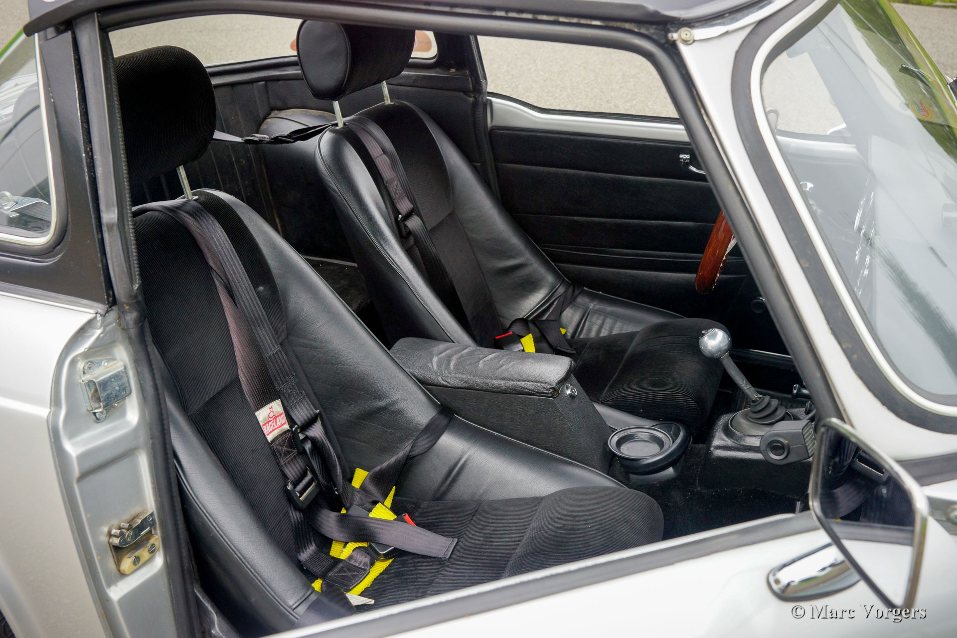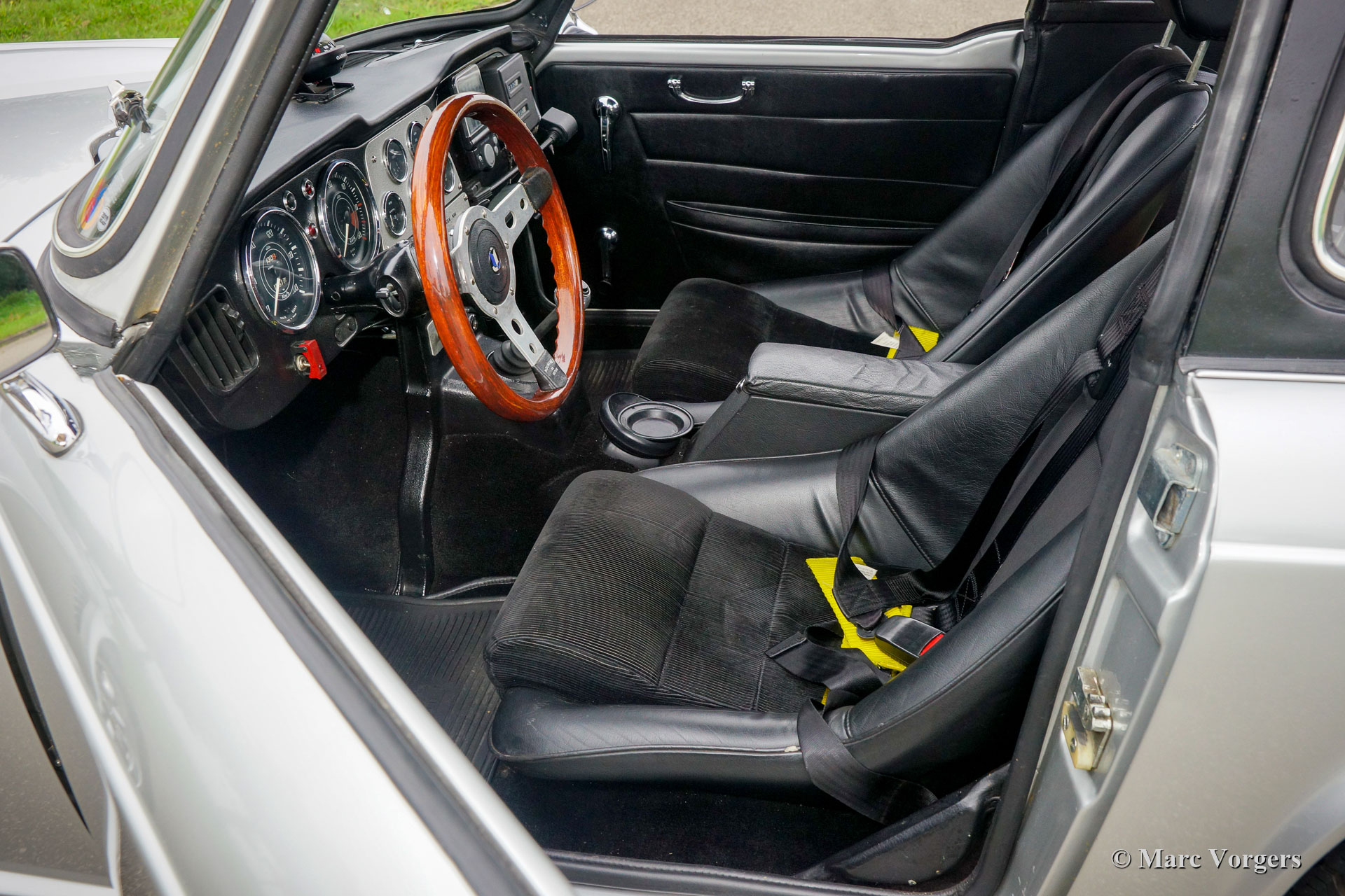 Triumph TR4 rallyauto, jaar 1963. Kleur zilver metallic gecombineerd met een zwart interieur. Deze fantastische Triumph TR4 werd een aantal jaren geleden prachtig gerestaureerd en geprepareerd voor historische rallyevenementen. Deze TR4 verkeert in excellente conditie en de auto rijdt perfect. De auto is uitgerust met een gewilde originele ‘Surrey-top’, het dakpaneel is voorzien van een ‘Union Jack’-embleem. Tijdens de bouw werd de auto uitgerust met een gescheiden remsysteem met rembekrachtiger (Triumph TR6), twee dubbele Weber carburateurs, een wisselstroomdynamo en een elektrische koelventilator. Verder is deze TR4 uitgerust met de volgende rallyaccessoires: Mini-Lite lichtmetalen velgen met 185/70/15 banden, tripmeter, timer, kompas en extra lampen (vér- en breedstralers) aan de voorkant. Deze TR4 voelt zeer robuust aan en de rijervaring is fantastisch! De auto is niet té hard geveerd en de auto stuurt snel en nauwkeurig. Dit is een begeerlijke vroege Triumph TR4 en een geweldige auto om deel te nemen aan historische rallyevenementen!