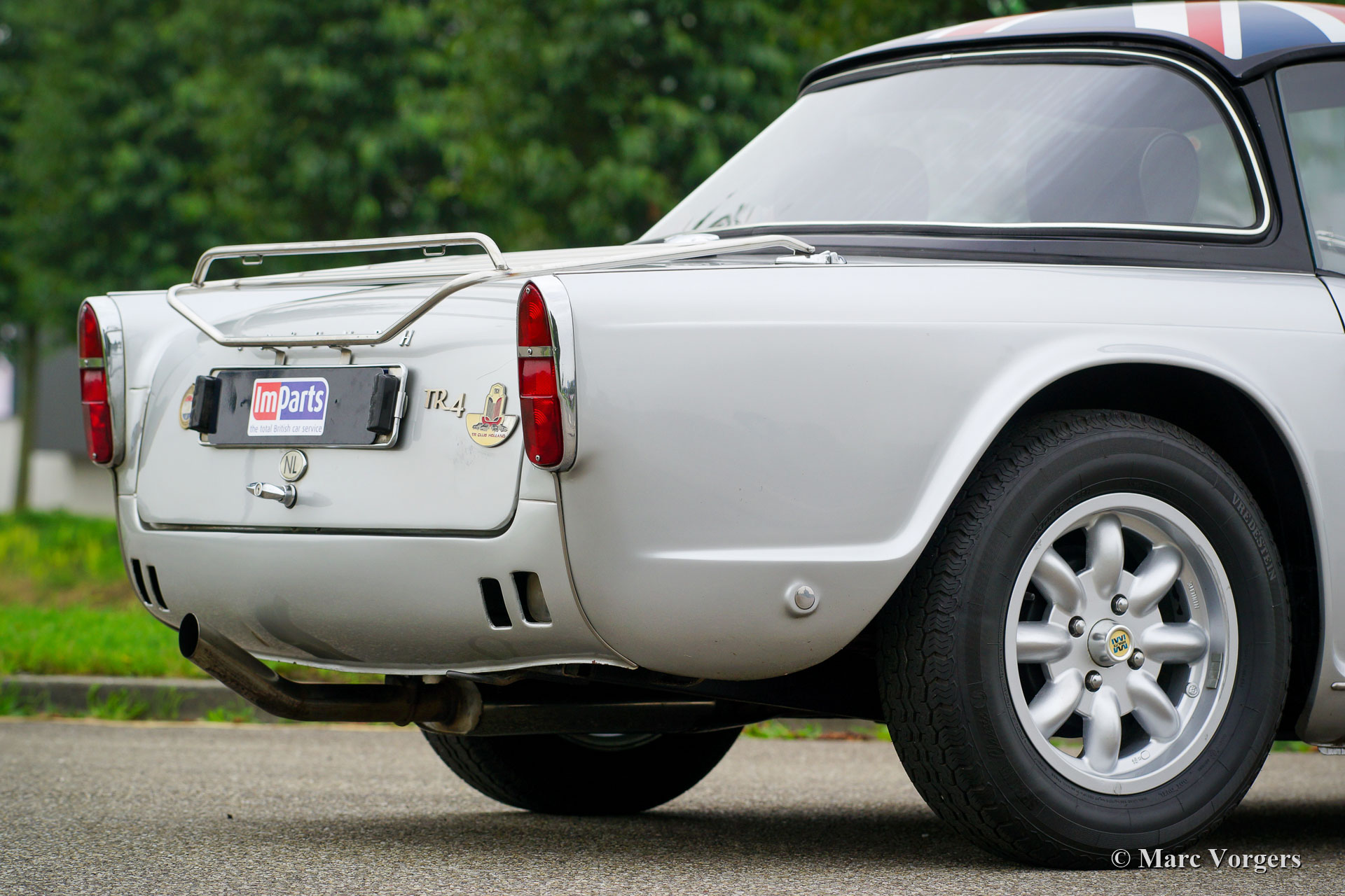 De Triumph TR 4 is de opvolger van de Triumph TR 3. Deze door Michelotti vormgegeven Triumph kwam in 1961 op de markt. De Triumph TR 4is een rasechte roadster zoals deze allen in Engeland gemaakt konden worden, recht door zee, puur en zeer sportief! De TR 4 beschikt over een stevig chassis, onafhankelijke voorwielophanging en een starre as achter. (De IRS versies beschikken over onafhankelijke wielophanging achter). Op de voorwielen zijn schijfremmen gemonteerd en op de achterwielen trommelremmen. Op de motorkap is een fraaie "powerbulge" te zien die plaats biedt aan de twee carburateurs. De TR 4 beschikt over een zeer fraai en overzichtelijk houten dashboard met grote, duidelijk afleesbare klokken dat klassieke sportiviteit ademt. Als accessoire is voor de TR 4 de zeer fraaie "Surrey-top" verkrijgbaar. Deze "Surrey-top" inspireerde Porsche tot het bouwen van haar "Targa" uitvoeringen.