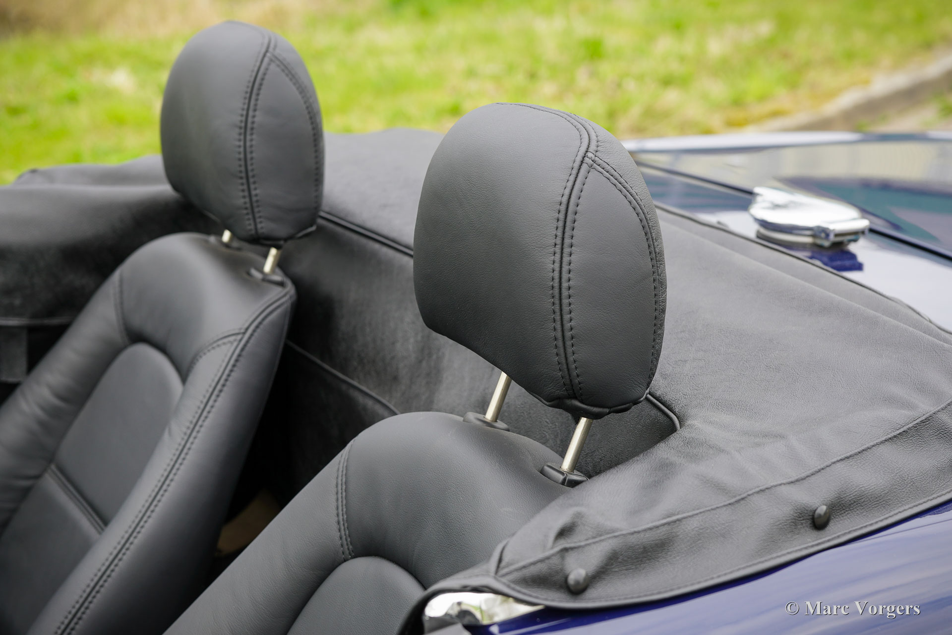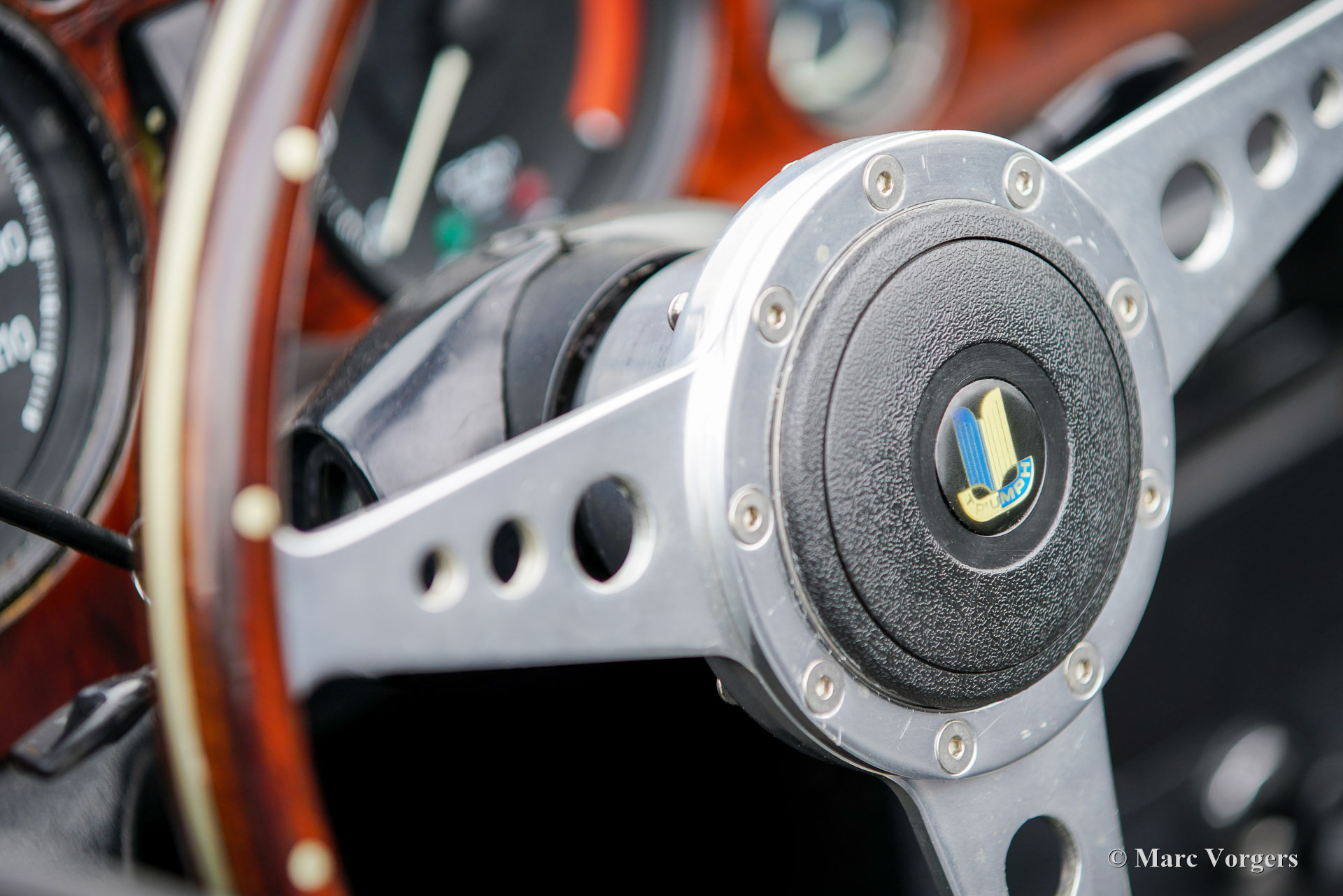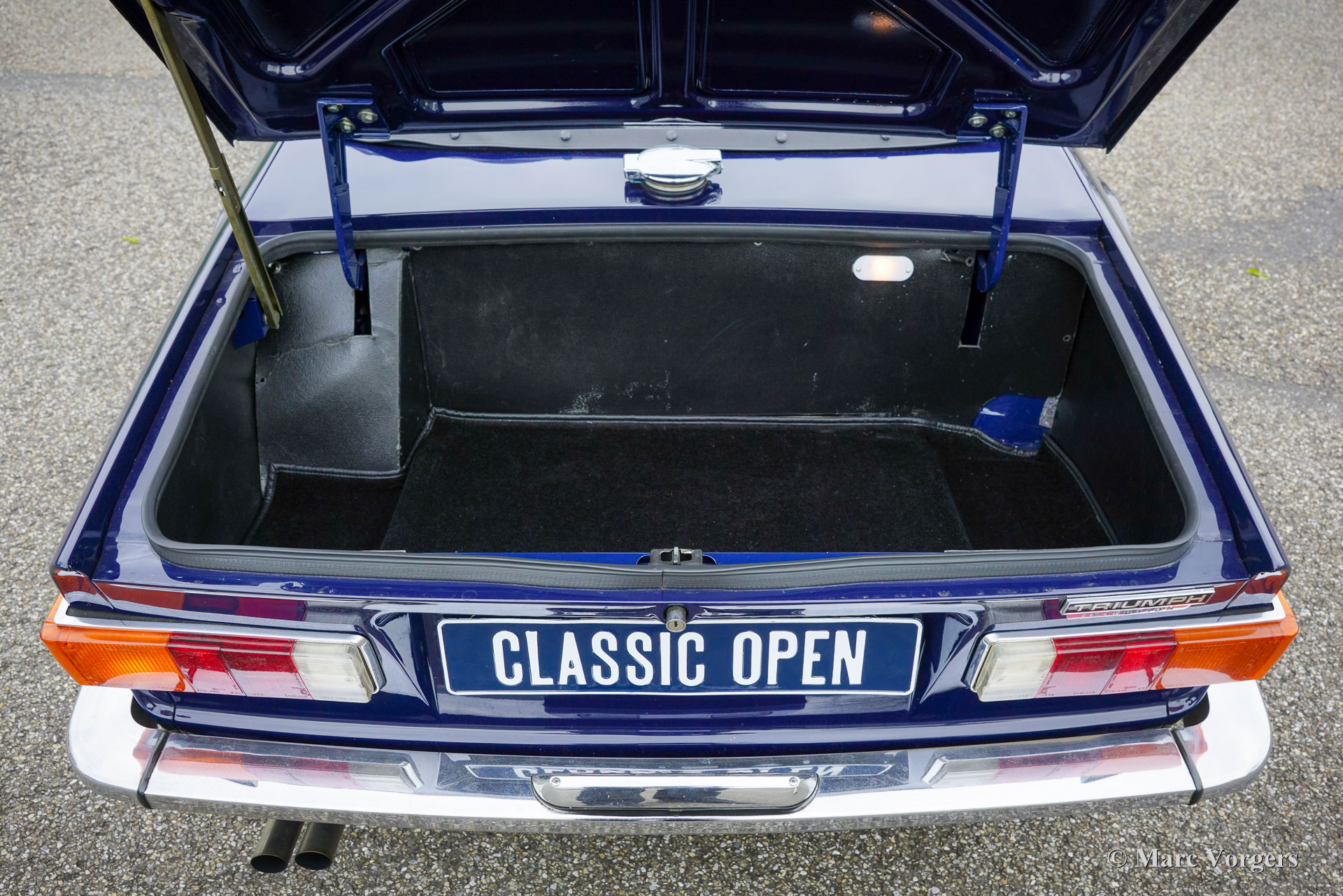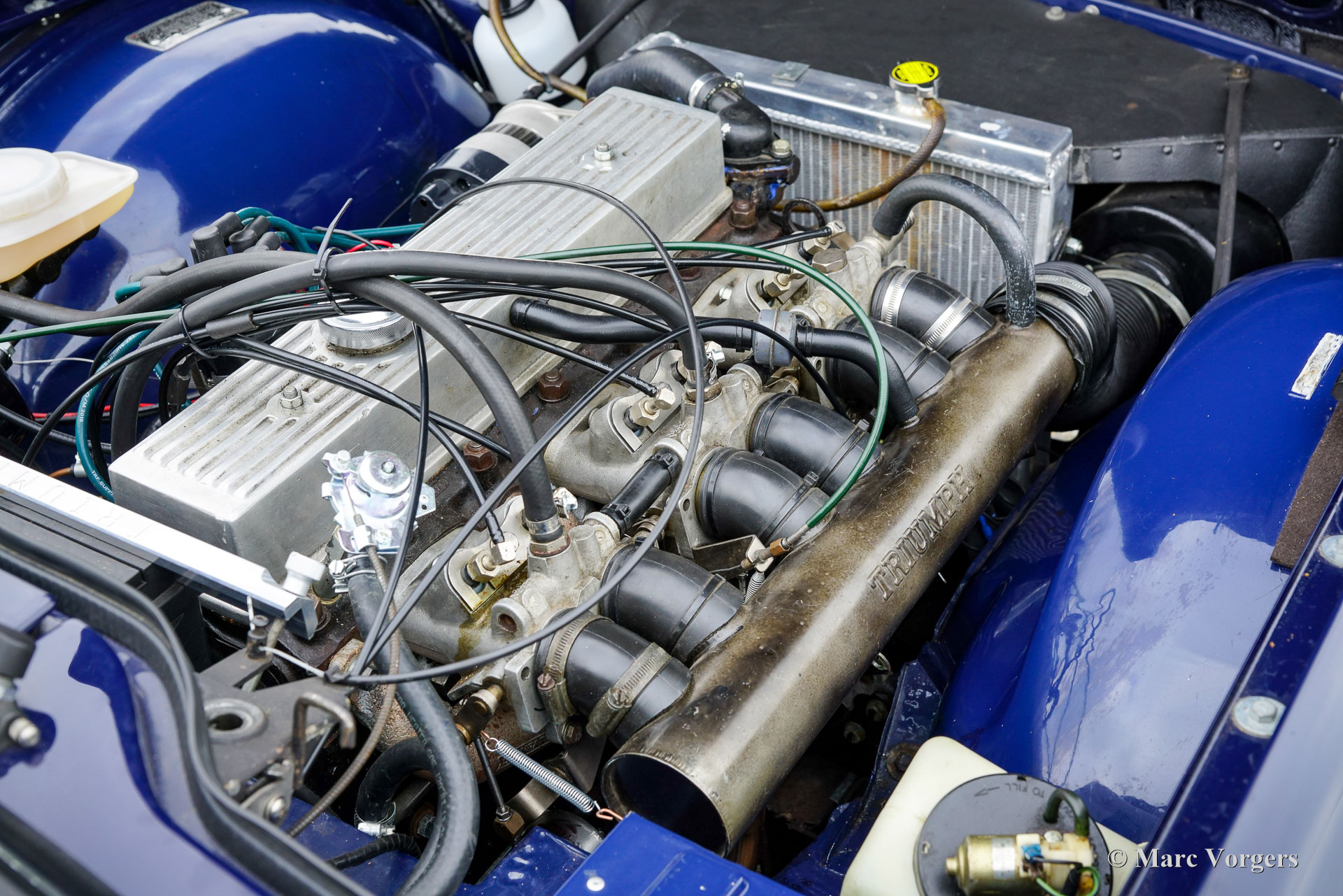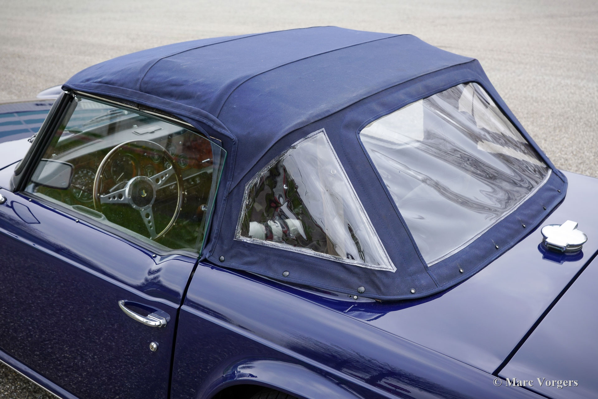 Triumph TR6 PI, jaar 1972. Chassisnummer 1CP53295LP. Exterieur uitgevoerd in donkerblauw, gecombineerd met een zwart interieur met zwarte lederen stoelen en zwarte vloerbedekking. Voorzien van een blauwe mohair soft-top en een zwarte vinyl afdekhoes. Dit is een zeldzame en gewilde Triumph TR6 PI met Europese specificaties, uitgerust met het mechanische Lucas benzine-injectiesysteem. Er werden slechts 5.333 exemplaren met het stuur links van dit type gebouwd, samen met 8.370 exemplaren met het stuur rechts voor de Britse markt. De TR6 PI en de eerdere TR5 - beide met dezelfde 2,5-liter motor en technische basis - zijn de meest opwindende modellen in het Triumph roadster-gamma. De 150 pk sterke zescilindermotor geeft de TR6 PI een uitgesproken sportief karakter, vergezeld van een geweldig uitlaatgeluid. Dit fraaie exemplaar is in het verleden gerestaureerd. De carrosserie is zowel vanbinnen als vanbuiten opnieuw gespoten en het interieur is opnieuw bekleed. De auto heeft aantrekkelijke originele details behouden, zoals de originele stalen velgen met zwarte wieldoppen en de interieurverlichting tussen de stoelen. De auto is voorzien van de volgende opties: overdrive, EZ elektrische stuurbekrachtiging, lederen comfortstoelen met hogere rugleuningen en hoofdsteunen, een dashboard van walnotenhout, twee verchroomde buitenspiegels, een Moto-Lita stuurwiel met houten rand, een aluminium radiator met hoge capaciteit, elektronische ontsteking en een roestvrijstalen uitlaatsysteem. De Triumph TR6 is het populairste model in de TR-reeks, waarbij de PI-versie het meest gewild is. Het is de laatste van de echt stoere Britse roadsters, met een zescilinder-lijnmotor onder een lange motorkap en een lage zitpositie vlak voor de achteras, waardoor de bestuurder een cockpitachtig, bijna gevechtspilootgevoel ervaart. Dit is een prachtige TR6 PI, aangeboden voor de prijs van een carburateurmodel... Deze is moeilijk te weerstaan!