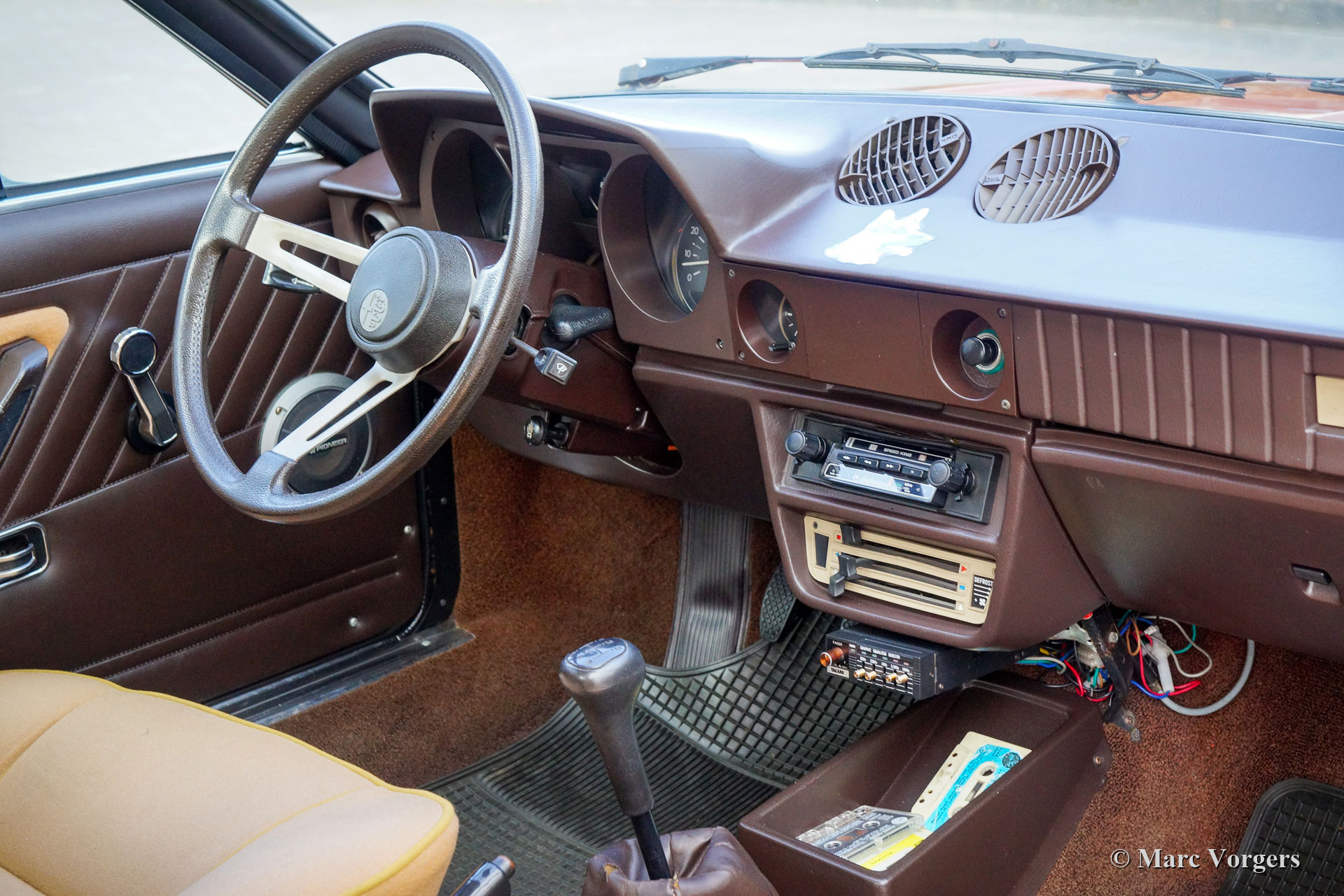 Alfa Romeo Alfasud Sprint Veloce 1.5, jaar 1979. Kleur bruin (Bruno Silento AR 834) gecombineerd met een bruin / okerkleurig interieur. Okergele stoffen stoelen, bruin tapijt en een bruin dashboard. Deze tegenwoordig zeer zeldzame Alfa Romeo Alfasud Sprint werd op 16 november 1979 nieuw geleverd in Zwitserland. Op 26 maart 1981 werd de auto voor het eerst geregistreerd op naam van de heer A. Pocopio. Op 11 juni 1984 werd de auto geëxporteerd naar Italië waar deze in een Siciliaanse autoverzameling belandde. In september 2019 is de Alfa naar Nederland verscheept. Deze Alfasud Sprint Veloce verkeert in een prachtige en volledig originele conditie! Het originele interieur is uitstekend. De perfect roestvrije en keiharde carrosserie vertoont een ondiepe deuk in het linker voorspatbord, en de originele lak is nog in uitzonderlijk goede conditie! De onderkant van de auto toont zijn uitstekende conditie in alle eerlijkheid. De voorste wielkasten deels nieuw gelakt in de originele kleur, evenals kleine delen van de dorpels nabij de wielkasten. Deze Alfasud Sprint mag een echte “survivor” (overlever) worden genoemd in deze zeer goede conditie met slechts lichte sporen van eerder gebruik. Deze auto's worden in onze moderne tijd zelden gezien en zijn echt zeldzaam. Deze prachtige tijdmachine rijdt en stuurt zeer goed, en de boxermotor klinkt geweldig! De auto wordt compleet geleverd met een “Alfa Storico” geboorteakte, nummer AS5611. Dit is een zeldzame kans om een Alfasud Sprint Veloce 1.5 in ongelooflijk goede en super originele conditie te bemachtigen! De auto wordt geleverd met Italiaanse registratie en papieren, deze super originele auto kan naar elk land wereldwijd worden geëxporteerd.