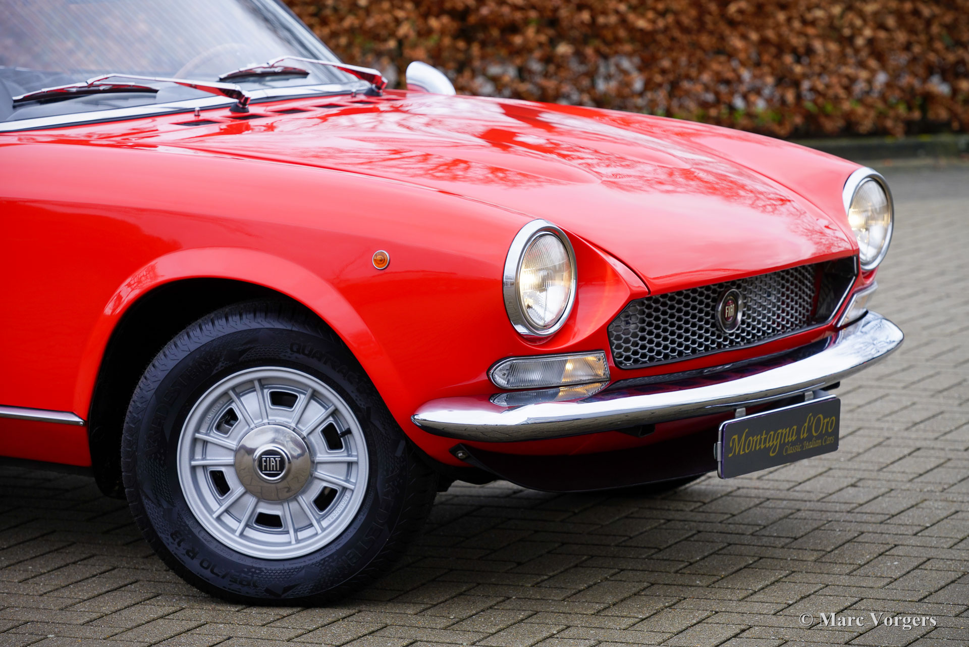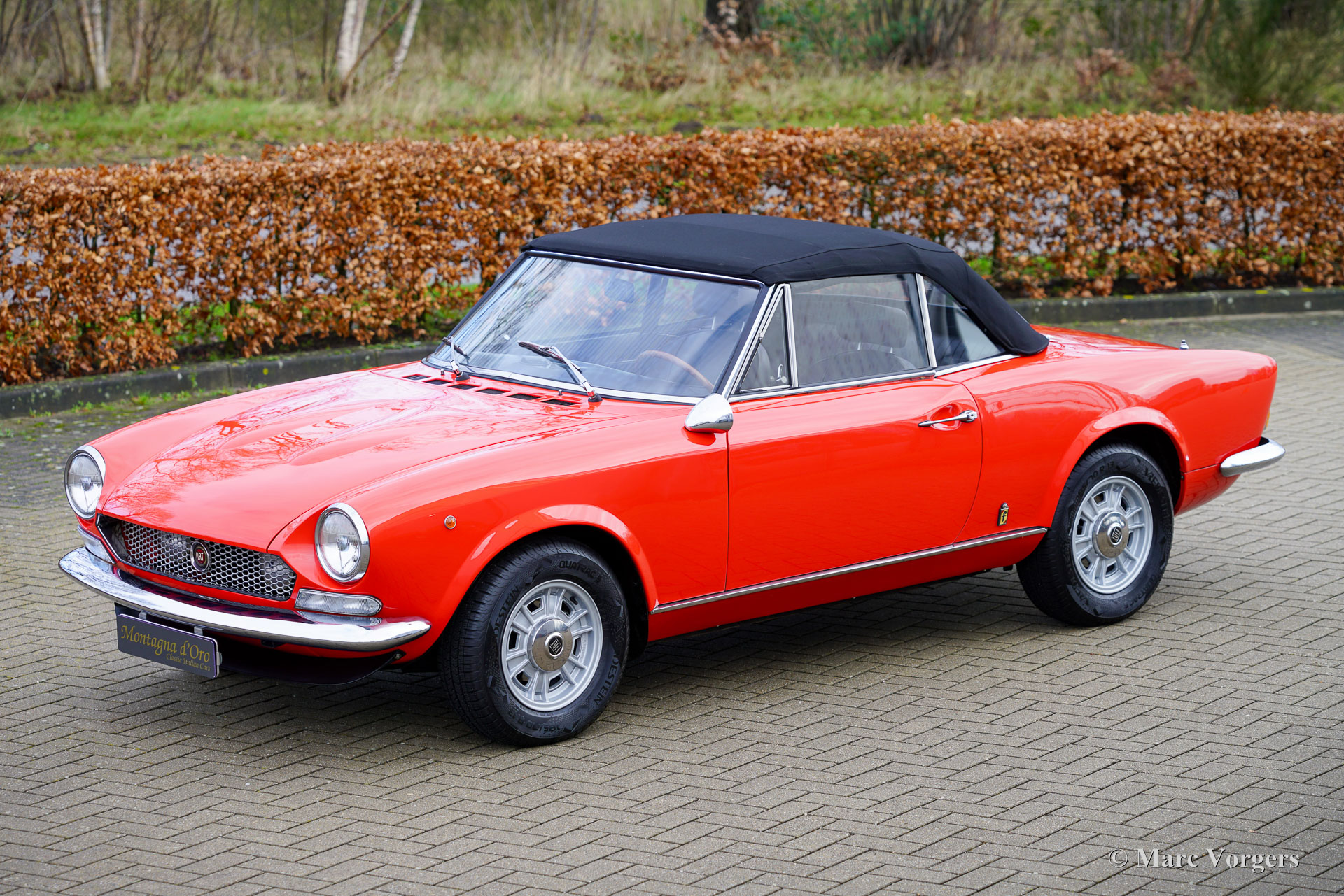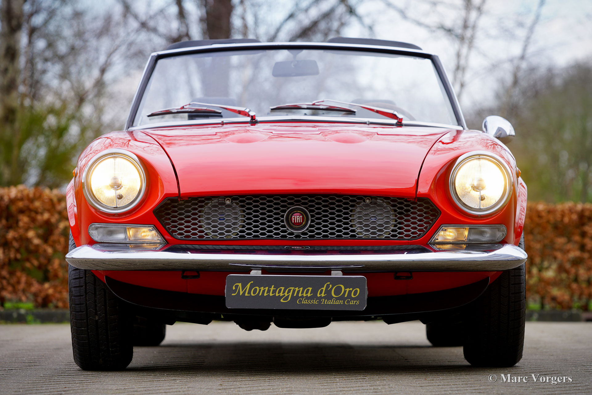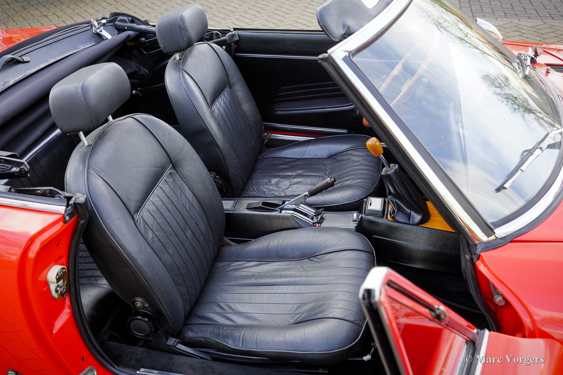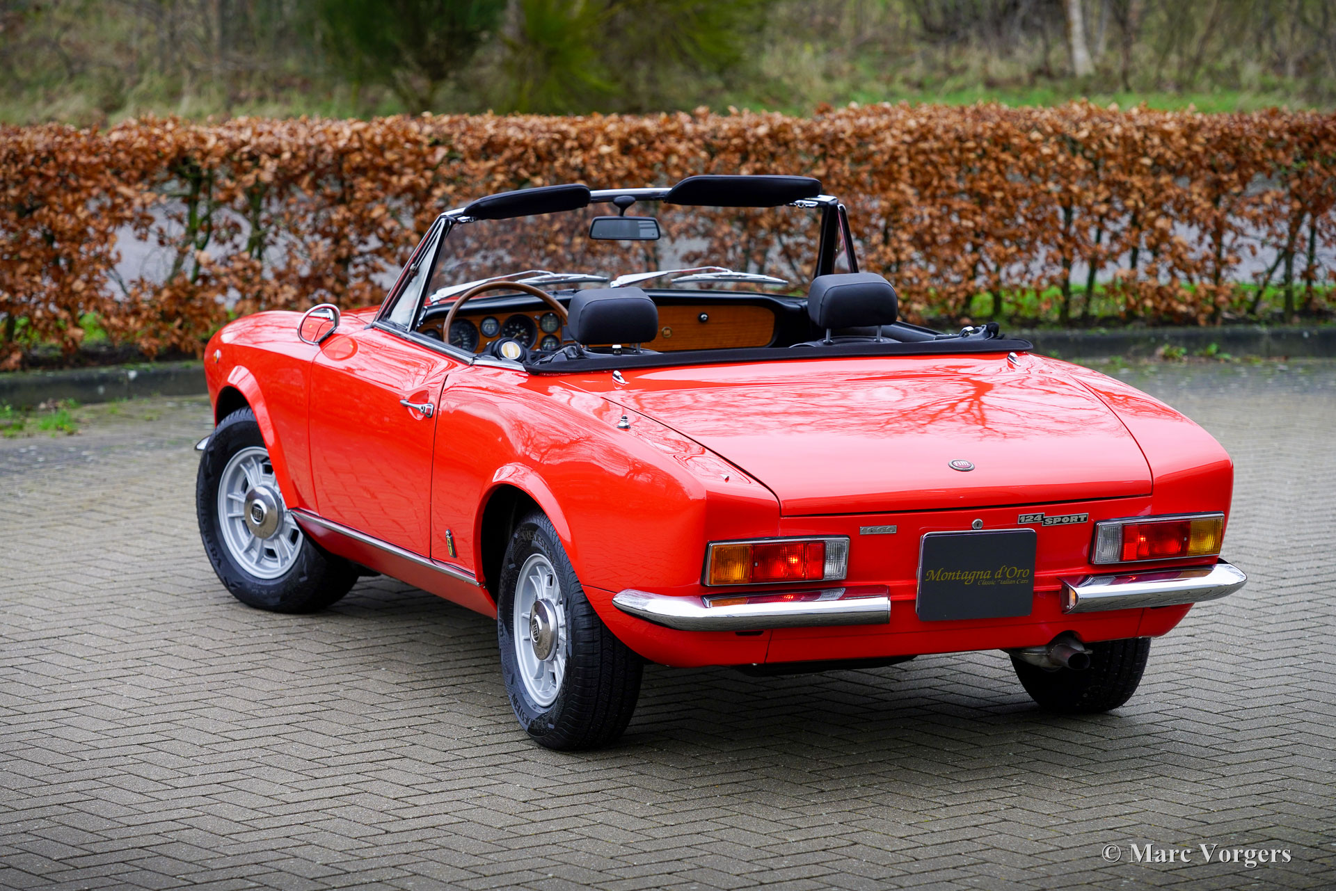 Fiat 124 Sport Spider 1800, jaar 1973. Eerste registratie 3 oktober 1973. Kleur rood gecombineerd met een zwartlederen interieur, zwart tapijt en een zwarte kap. Deze fantastische fiat 124 Sport Spider is nieuw verkocht in Nederland waar de auto nog steeds geregistreerd staat. Vanaf nieuw werd de auto gekoesterd door liefhebbers. Deze prachtige fiat 124 Sport Spider is in het verleden uitgebreid gerestaureerd. De restauratiefacturen bedragen in totaal tussen de 40.000 en 45.000 euro. In de daaropvolgende jaren is er ongeveer € 10.000, - aan de auto uitgegeven aan verdere verbeteringen en onderhoud. Deze Fiat 124 Sport Spider verkeert in een uitstekende staat en de auto rijdt perfect! De kilometerteller staat momenteel op 36.125 kilometer. De auto wordt geleverd met een historiebestand en facturen die een overzicht geven van de restauratie en het onderhoud. De Fiat 124 Sport Spider is een klassieke Italiaanse roadster die werd geproduceerd van 1966 tot 1985. Ontworpen door Pininfarina, staat de Spider bekend om het tijdloze design, wendbare handling en de sportieve prestaties. De 1800 cc motor is voorzien van dubbele bovenliggende nokkenassen, levert 118 pk, en drijft de achterwielen aan via een handgeschakelde 5-versnellingsbak. Het interieur ademt de prachtige sfeer van eind jaren 60 en begin jaren 70 met lederen bekleding, prachtige ronde meters en een stuurwiel met een houten rand. Het zal moeilijk zijn om een beter exemplaar te vinden. De auto is ‘turn-key’ klaar voor de lente en zomer in de handen van een trotse nieuwe eigenaar! Deze prachtige auto kan worden geëxporteerd naar en geregistreerd in elk land ter wereld.