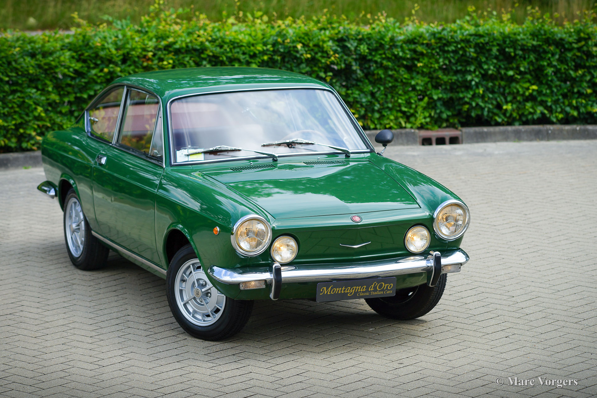 Fiat 850 Sport coupé serie 2, jaar 1971. Kleur groen gecombineerd met een cognac bruin kunstlederen interieur. Deze fantastische Fiat 850 Sport coupé is nieuw verkocht in Italië en recentelijk geïmporteerd naar Nederland (2022). De automobiel verkeert in een goede originele rijdersconditie, met lichte gebruikssporen. De kilometerteller geeft 35697 kilometer aan. Deze Fiat 850 Sport coupé toont fantastische design details en de auto is voorzien van originele lichtmetalen velgen en het originele sportstuur met een houten rand. De rijervaring is voortreffelijk, de achterin gemonteerde viercilindermotor loopt en klinkt perfect en de versnellingsbak schakelt uitstekend. Het uitzicht over het sportieve dashboard met de grote klokken, houtstrips en het prachtige stuur maken dat je verliefd wordt op deze compacte Italiaanse schoonheid!