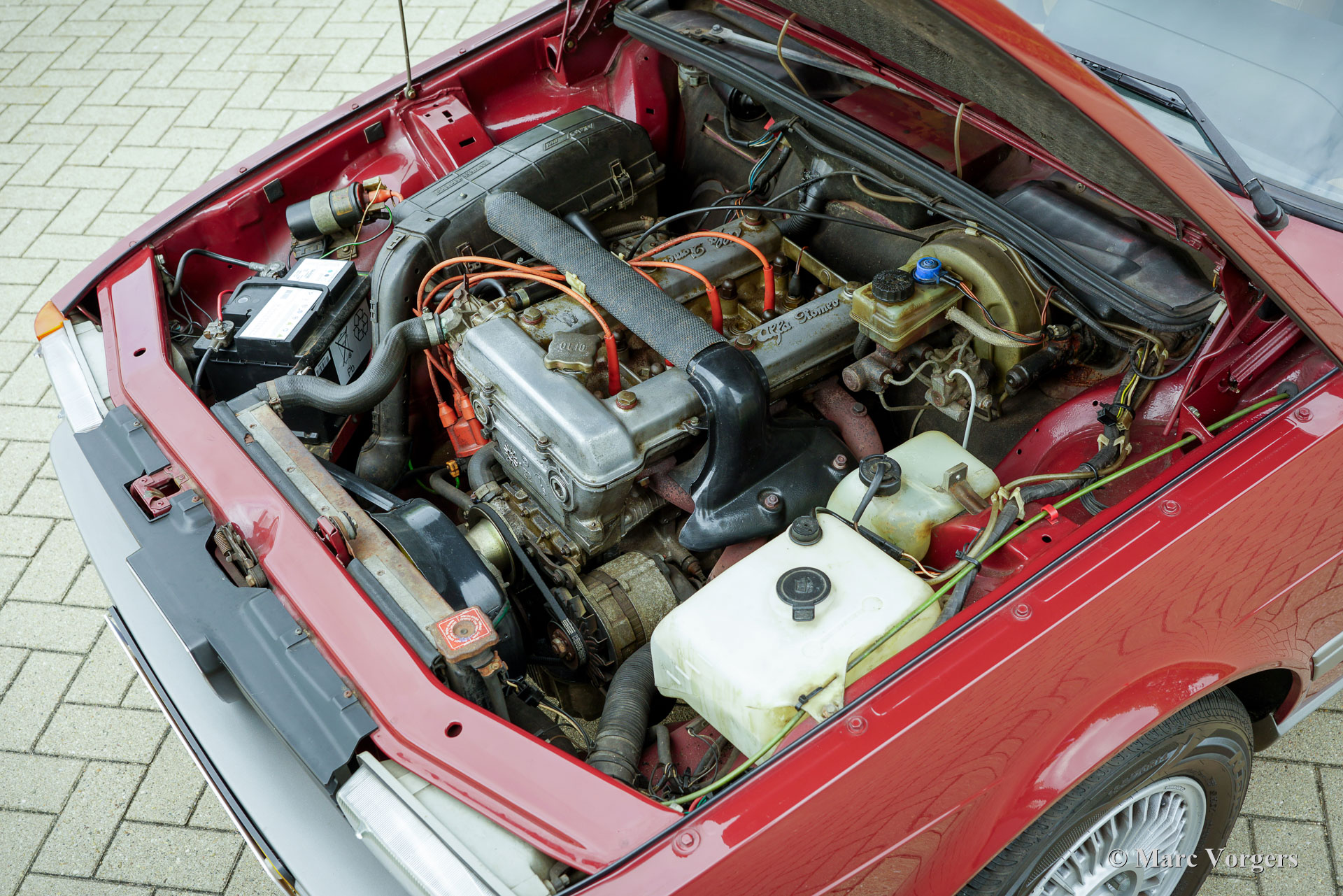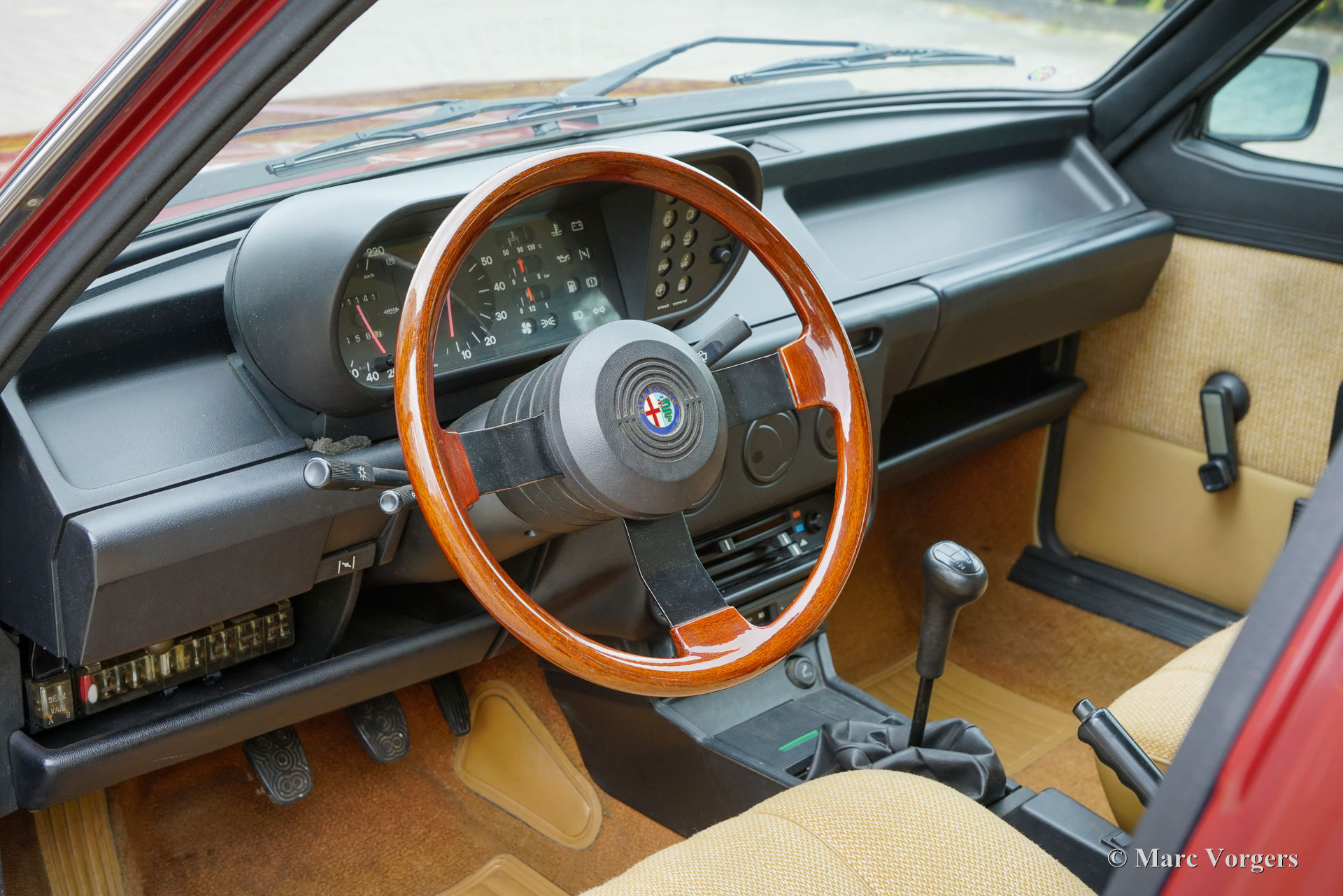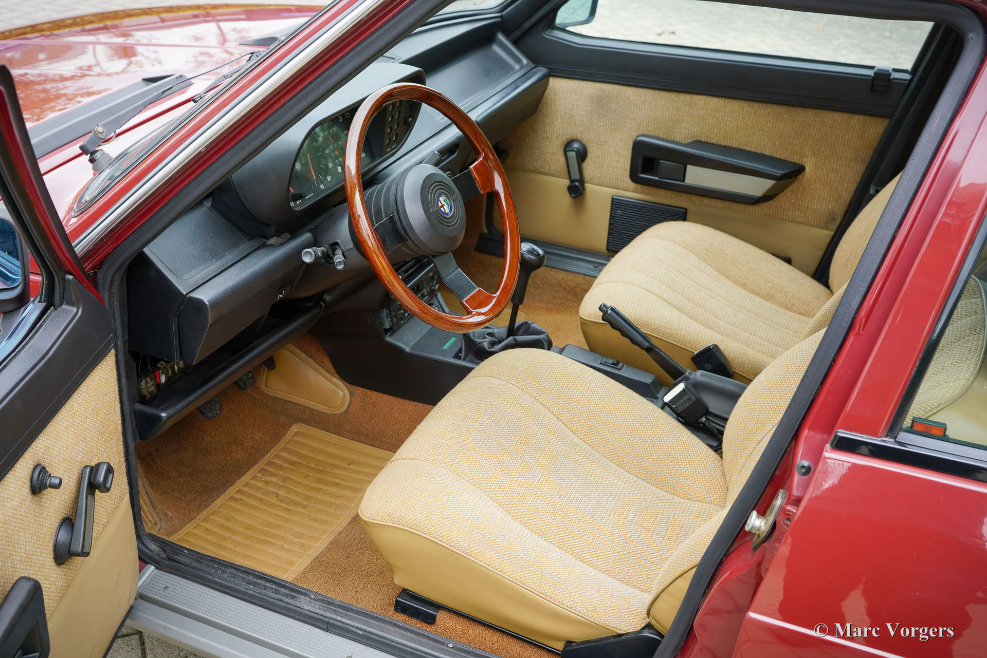 Alfa Romeo Giulietta 1600, jaar 1984. Eerste registratie 24 juli 1984. Chassisnummer ZAR11650000184154, motornummer AR*01600-398700*. Kleur donkerrood (Rosso Veneziano, AR kleurcode AR 537), gecombineerd met een beige stoffen interieur afgewerkt met lichtbruin tapijt. Deze prachtige Alfa Romeo ‘Nuova’ Giulietta is nieuw verkocht in Nederland waar de auto vanaf dag één slechts drie zorgzame eigenaren heeft gekend. Vanaf nieuw heeft de auto 151.142 gereden en de auto is zeer goed onderhouden. Deze Giulietta 1600 verkeert in een zeer goede tot excellente originele conditie! De carrosserie is gaaf, het lakwerk is zeer goed en het interieur vertoont slechts minimale sporen van gebruik. Deze Giulietta is een echte tijdcapsule! De Alfa Romeo ‘Nuova’ Giulietta werd in 1977 geïntroduceerd als opvolger van de Giulia, die toen vijftien jaar in productie was. Technisch gezien was de Giulietta gebaseerd op de iets grotere Alfetta. De Giulietta is een sportieve sedan, zeer begeerd door sportieve en stijlvolle autoliefhebbers uit die tijd. Met een motor met dubbele bovenliggende nokkenassen, schijfremmen rondom, een “transaxle” versnellingsbak met 5 versnellingen die vlak voor de achterwielophanging is geïnstalleerd, een gewichtsverdeling van bijna 50-50%, en de de-Dion-achteras heeft de Giulietta alle kenmerken van een echte sportwagen. Dit exemplaar is een geweldige vondst voor de Alfa Romeo verzamelaar en liefhebber, de auto toont alle originele details en rijdt perfect.