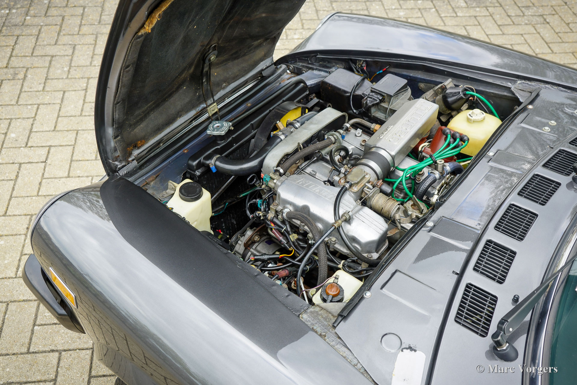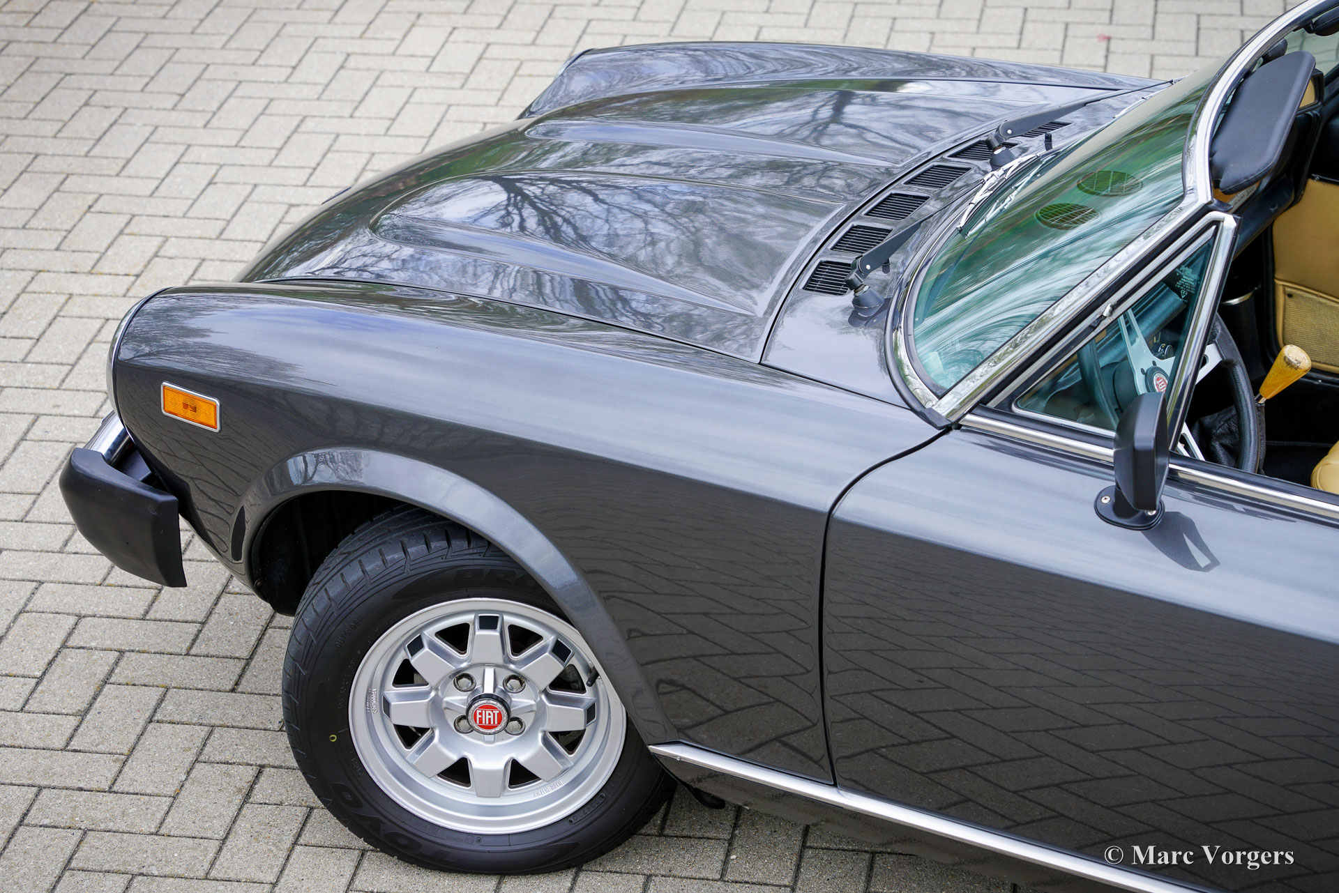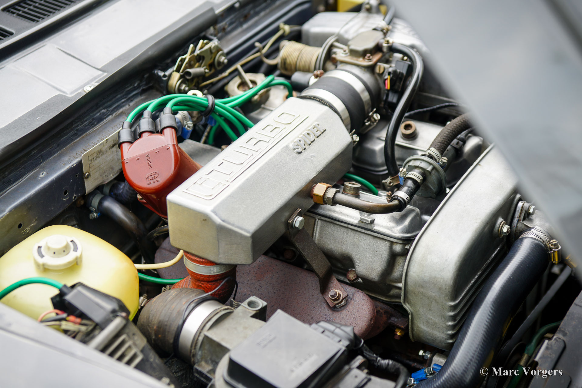 Fiat 124 Spider Turbo, jaar 1982 (eerste registratie 30 juni 1982). Chassisnummer ZFA124CS0*05003232, motornummer 124CS 4371507. Kleur donkergrijs metallic gecombineerd met een beige lederen interieur en zwart tapijt. In Nederland geregistreerd als Fiat 124 Spider 2000 USA, luidt de officiële Amerikaanse benaming Fiat Spider Turbo. De Fiat Spider Turbo was een speciaal model voor de Amerikaanse markt en werd in 1981 gepresenteerd. Volgens de ‘Hagerty Buyers Guide’ zijn er ongeveer 1200 exemplaren gebouwd door Fiat en aangepast door Legend Industries uit New York in 1981 en 1982. De Fiat Spider Turbo werd op de markt gebracht met hulp van de Formule 1-wereldkampioen van 1979 Jody Checkter. Hij prees de auto met de woorden: De Fiat Spider Turbo is de enige cabriolet sportwagen met turbo, een auto die zijn gelijke niet kent. Dit prachtige exemplaar werd in 1994 geïmporteerd uit de USA en wordt sinds 2006 gekoesterd door de huidige eigenaar. De auto werd uitvoerig gerestaureerd en gereviseerd. De carrosserie werd gerestaureerd en nieuw gespoten in de originele kleur, het interieur werd nieuw bekleed en de motor werd gereviseerd. De restauratie is zeer goed uitgevoerd en er is een logboek aanwezig met data en kilometerstanden. Vanaf nieuw heeft de auto 100.453 mijl gereden. Deze zeldzame en zeer begeerlijke Fiat Spider Turbo rijdt en stuurt perfect en is voorzien van, een speciale originele turboboostmeter in het dashboard, Cromodora lichtmetalen wielen en een Pianola AM radio. Een PDF van de officiële Amerikaanse verkoopbrochure is op aanvraag verkrijgbaar via e-mail. Dit betreft een zeer bijzondere Fiat 124 Spider Turbo in excellente conditie, een prachtige en zeldzame vondst voor de Fiat verzamelaar en liefhebber!