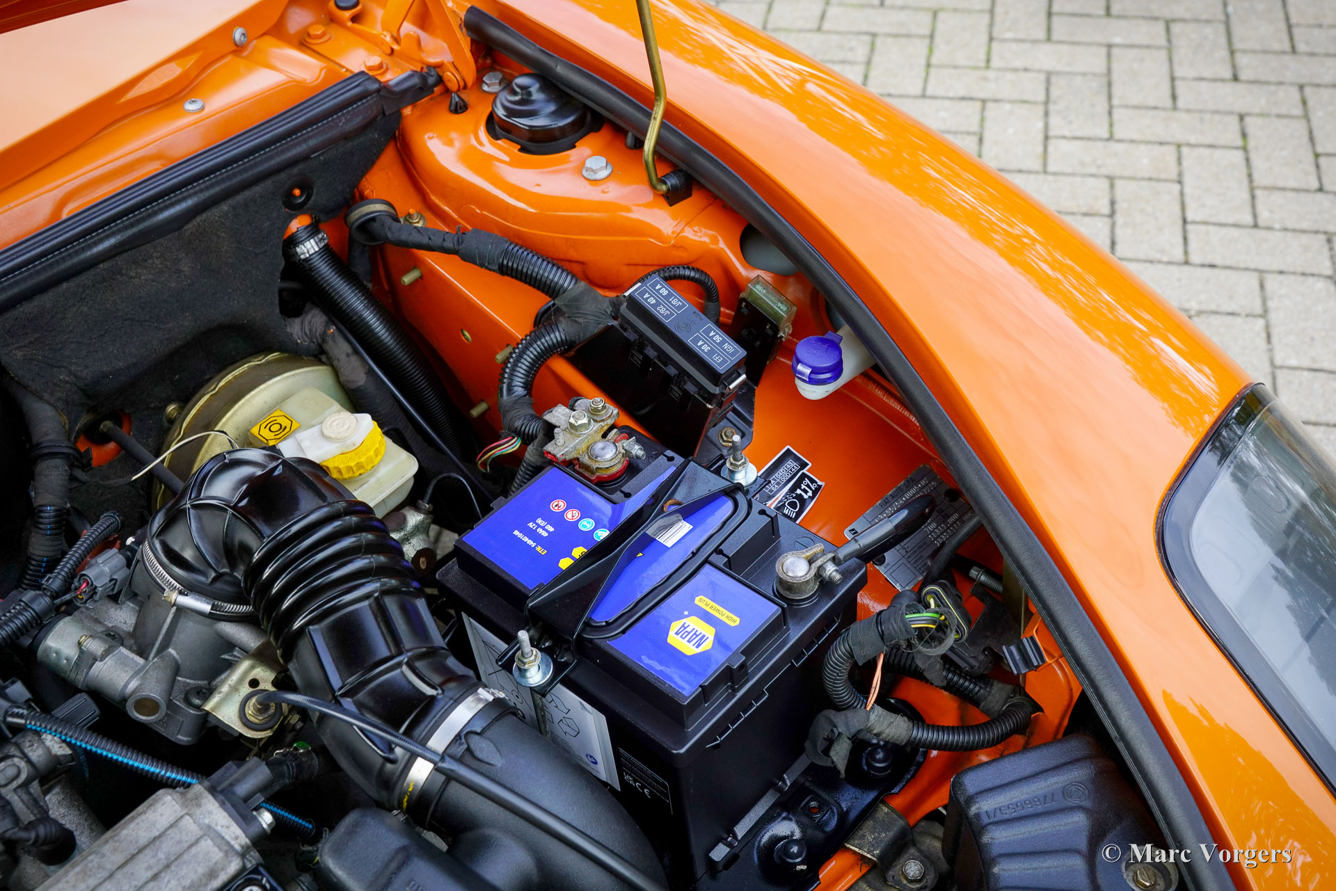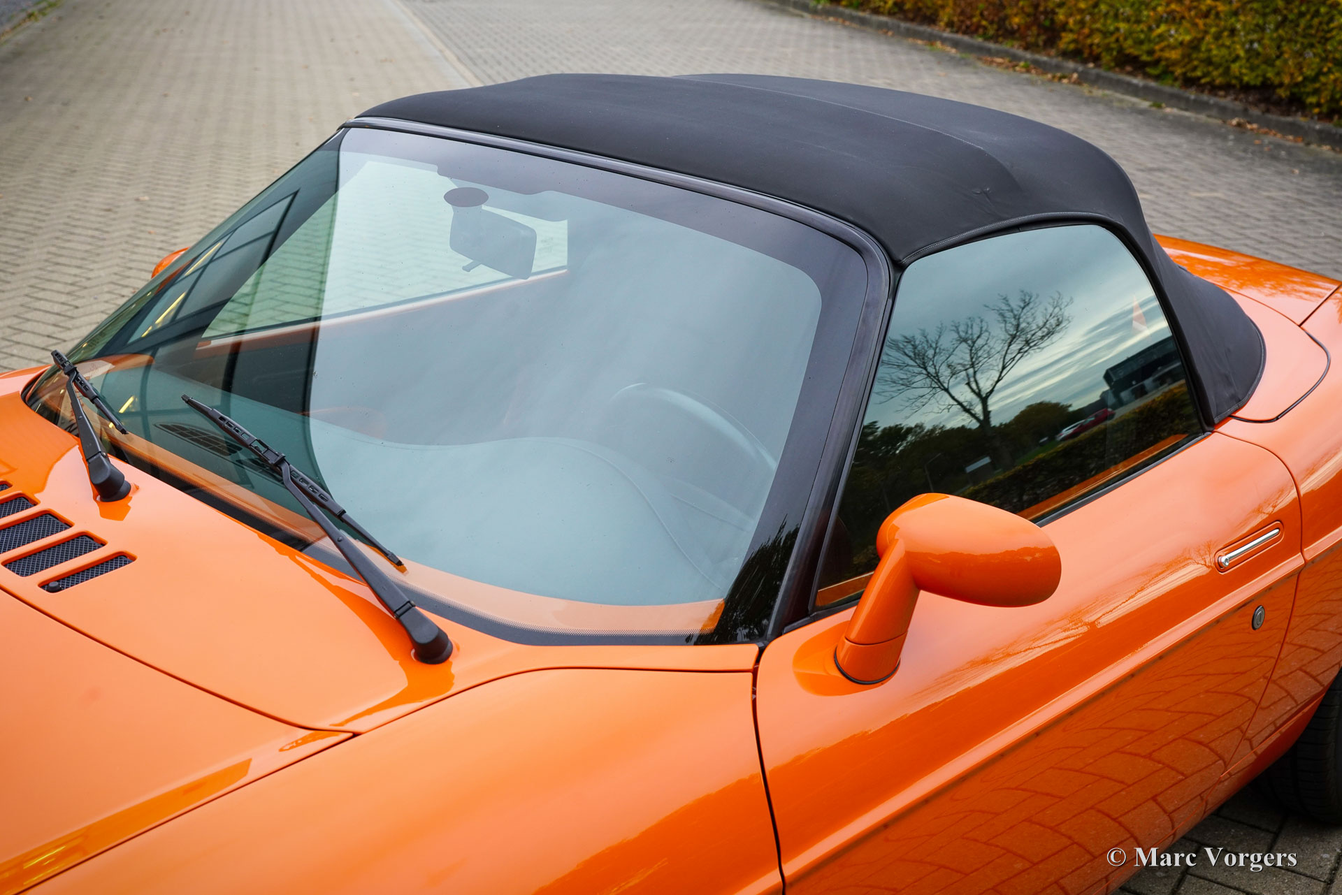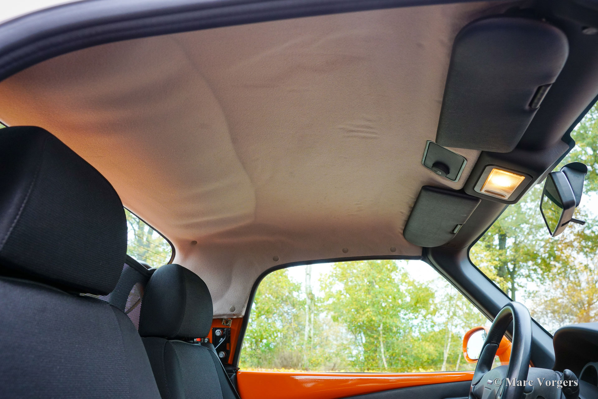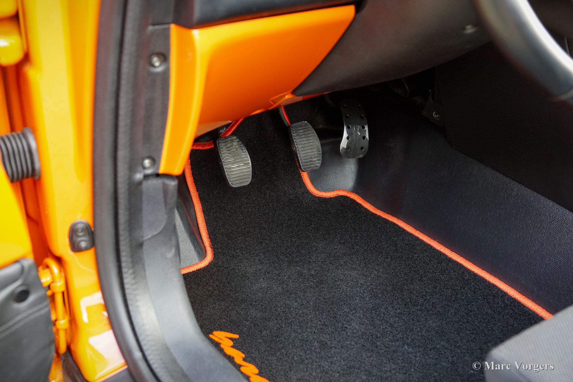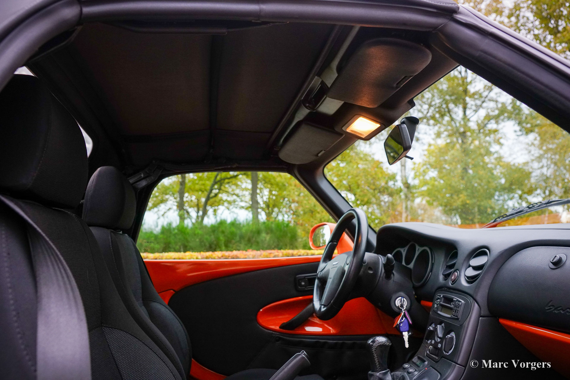 Fiat Barchetta ‘Black Edition’, bouwjaar 2000 (eerste registratie 20 mei 2000). Chassisnummer ZFA183000*00047225*, motornummer 60586932. Carrosseriekleur oranje (Arancio Victoria 570) gecombineerd met een zwart/antraciet stoffen/lederen interieur en zwart tapijt met oranje afwerking. Zwarte vinyl soft-top en een hard-top in carrosseriekleur. Deze prachtige Fiat Barchetta ‘Black Edition’ is nieuw in Nederland verkocht door Autohuis Ede van Wirdum. Vanaf dag één is de auto gekoesterd door drie opeenvolgende eigenaren en de auto heeft 87.574 kilometer gereden. Ontworpen door Andreas Zapatinas bij Fiat’s Centro Stile en geïntroduceerd in 1995, is de Fiat Barchetta een compacte sportieve Italiaanse roadster in de geest van de lichtgewicht Italiaanse sportwagens. De naam Barchetta betekent ‘kleine boot’. De auto is gebaseerd op het Fiat Punto-platform en is uitgerust met een 131 pk sterke 1800 cc viercilindermotor, gekoppeld aan een handgeschakelde vijfversnellingsbak die de voorwielen aandrijft. Deze ‘Black Edition’ auto is voorzien van een speciaal optiepakket bestaande uit contrasterende (zwarte) interieurbekleding op de portieren en matten, zwarte rolbeugels, een zwart frontlogo, lichtmetalen velgen en een geüpgraded Fiat audiosysteem met RDS en cd-speler. Dit prachtige exemplaar is in het verleden professioneel overgespoten; de auto ziet eruit en voelt werkelijk als nieuw! De onderhoudshistorie is volledig bekend en gedocumenteerd. Het onderhoudsboekje is tot aan de laatste onderhoudsbeurt bij 87.062 kilometer stipt ingevuld en afgestempeld. Dit schitterende exemplaar wordt compleet geleverd met een hard-top en een originele Fiat autohoes. Een zeer begeerlijke ‘modern classic’!