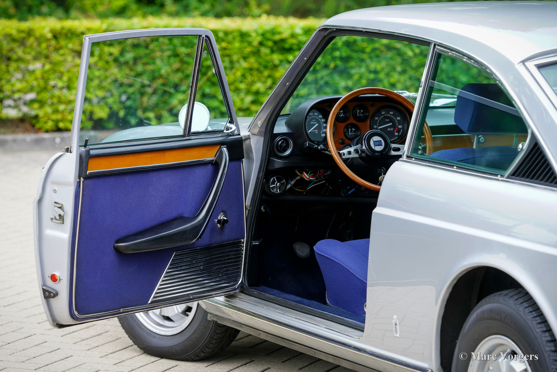 Lancia 2000 HF Coupé, jaar 1973. Carrosserie uitgevoerd in zilver metallic (Grigio Metallizzato) gecombineerd met een donkerblauw stoffen interieur. Deze prachtige Lancia 2000 HF Coupé verkeert in excellente conditie! De auto ziet eruit en voelt aan als een perfect onderhouden en minutieus onderhouden origineel exemplaar! De kilometerteller staat op slechts 96.464 kilometer. De Lancia 2000 is de opvolger van de Flavia 2000. Het originele, zeer stijlvolle ontwerp van de Pininfarina Lancia Flavia Coupé werd op enkele details hertekend. Het Lancia-logo werd verplaatst van de motorkap naar de grille en de radiatorgrille werd nu afgewerkt in matzwart met een elegante chromen afwerking. Een belangrijke verbetering was de introductie van een vijfversnellingsbak. In de HF-variant werden prestatieverbeteringen geïntroduceerd, zoals de implementatie van een elektronisch Bosch-injectiesysteem en een geavanceerd remsysteem (het zogenaamde Superduplex-systeem) dat zorgde voor efficiënt remmen, zelfs bij een storing op een van de circuits. Met deze technische innovaties en een gelimiteerde productie van 1.229 exemplaren is de Lancia 2000 HF Coupé een zeldzame en exclusieve klassieker. De watergekoelde 1.991 cc viercilinder boxermotor met benzine-injectie levert 125 pk en stelt de auto in staat een topsnelheid van 190 km/u te bereiken: uitstekende prestaties voor een auto uit begin jaren 70! Dit prachtige exemplaar is zeer goed gedocumenteerd met historische documenten en (onderhoud)facturen. Bij 94.285 kilometer werd de motor gereviseerd en bij 95.660 kilometer werd het remsysteem volledig gereviseerd. Beide revisies samen hebben ongeveer € 10.000 gekost. Deze uitzonderlijke Lancia 2000 HF Coupé is een droom voor verzamelaars en een geweldige vondst voor de Lancia-liefhebber. De auto wordt compleet geleverd met twee sets sleutels.