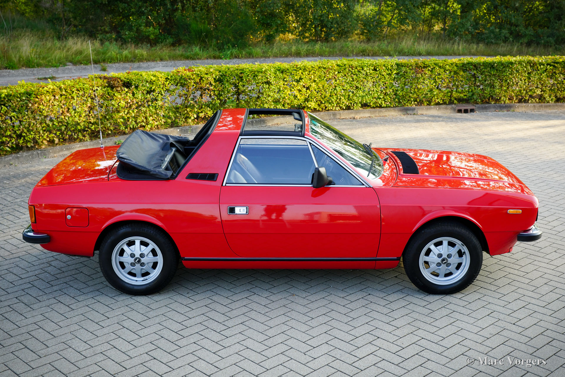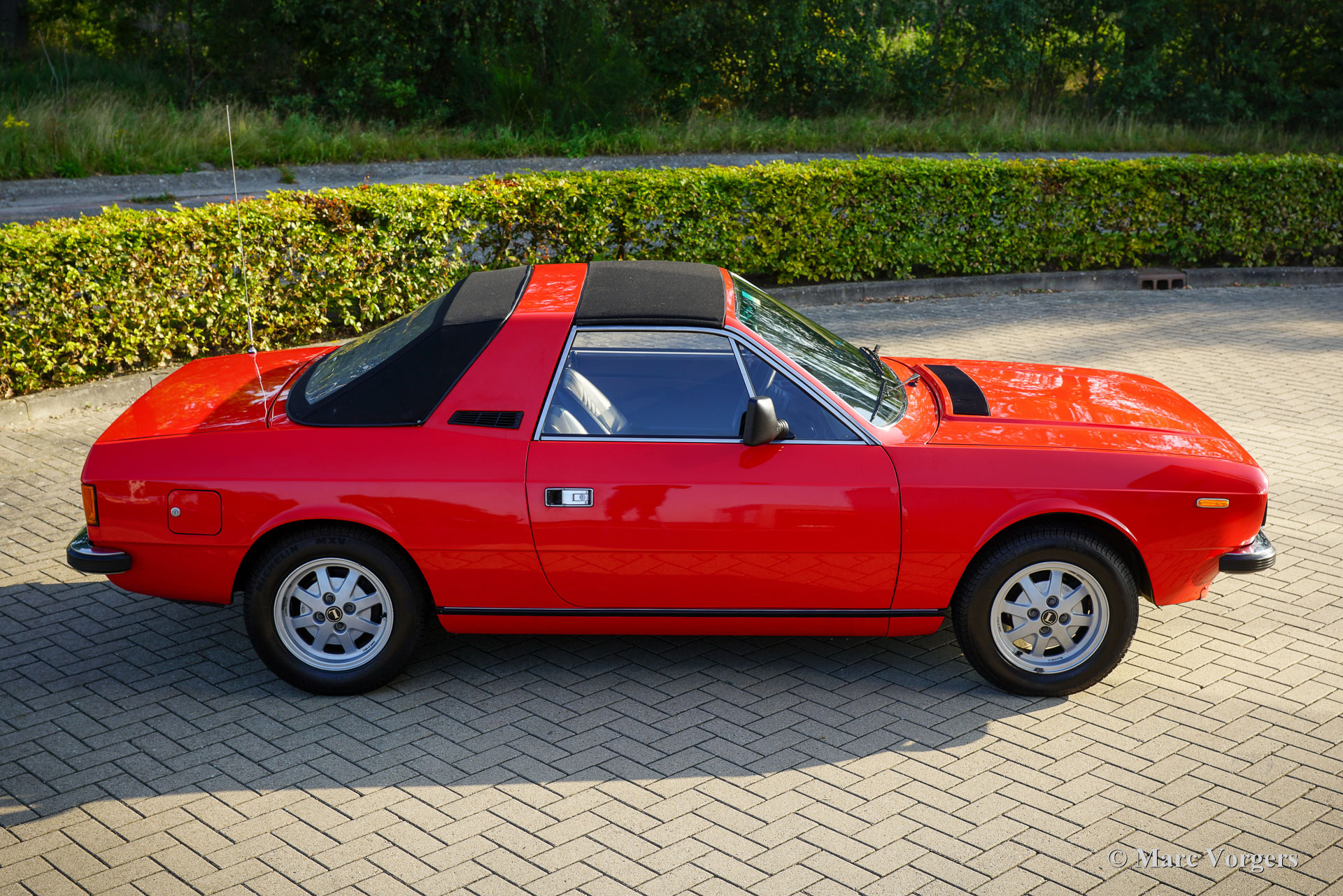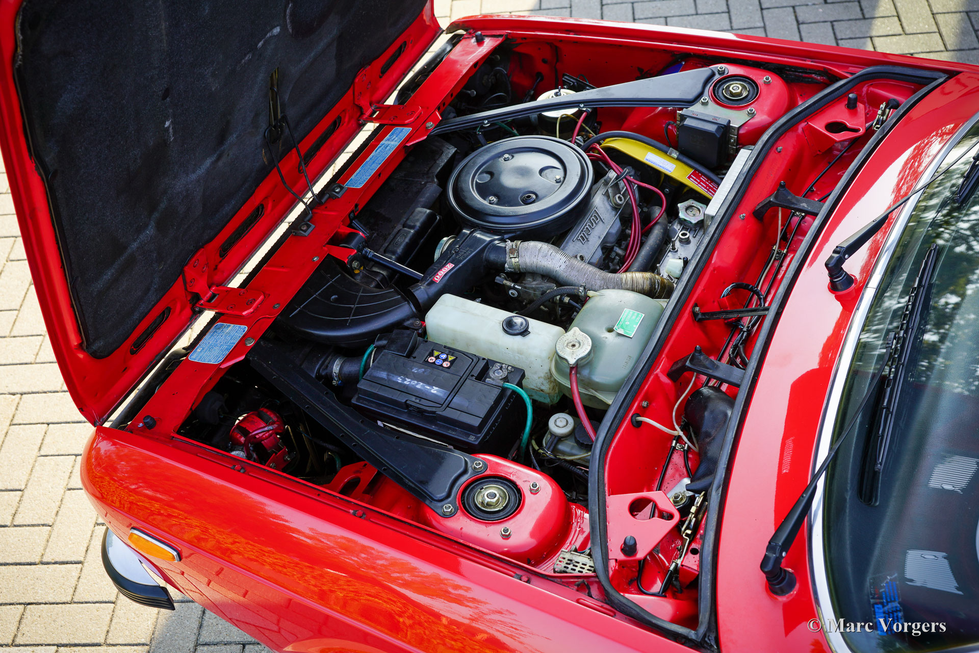 Lancia Beta 2000 Spider, jaar 1980. Kleur rood (Rosso Corsa) gecombineerd met een zwart kunstleren interieur en zwart tapijt. Zwart dak en zwarte ‘soft window’ kap. Deze prachtige Lancia Beta 2000 Spider uit de 3e serie werd nieuw in Nederland verkocht door ‘Autobedrijf De Vlasroot’ in Valkenswaard. De eerste registratie vond plaats op 28 maart 1980. De auto heeft vanaf nieuw drie zorgzame eigenaren gekend en de kilometerteller geeft 60.270 kilometer aan. Deze prachtige Lancia verkeert in een geheel originele en uitmuntende staat! Recent heeft de auto een uitgebreide onderhoudsbeurt gehad; Er werd een nieuwe distributieriem gemonteerd, het koelsysteem werd gereviseerd met een nieuwe pomp en een nieuwe radiateurkern. Ook zijn de schijfremmen geslepen en zijn er nieuwe remblokken gemonteerd. De Lancia Beta Spider is ontworpen door PininFarina en gebouwd door Zagato. In de VS heette de auto Lancia Zagato. Het productieproces was zeer complex en Lancia heeft waarschijnlijk nooit winst gemaakt op de exclusieve, met de hand gebouwde Spider. De carrosserieën van de Beta Coupés werden naar Zagato gestuurd voor de ‘onthoofding’, vervolgens teruggestuurd naar Lancia voor roestwering, vervolgens opnieuw naar Zagato voor lakwerk, interieur en bekleding, en terug naar Lancia voor de installatie van de motor, versnellingsbak en eindmontage. Het serie 3-model werd in 1978 geïntroduceerd met een nieuwe grille, een nieuw ontworpen dashboard en nieuwe interieurmaterialen. Er zijn slechts 5046 exemplaren van het serie 3 tweelitermodel gebouwd. De Lancia Beta Spider is tegenwoordig een zeldzame verschijning, en dit is een prachtig TOP exemplaar!