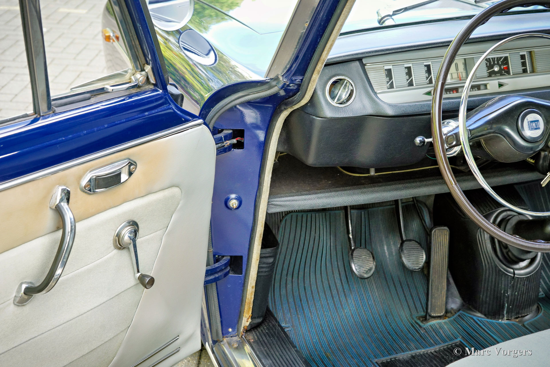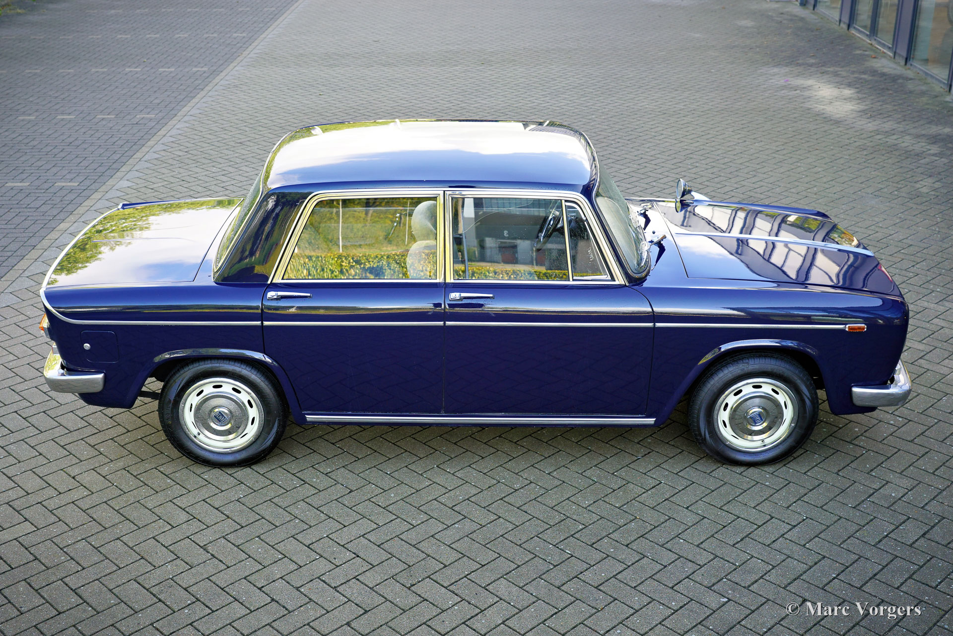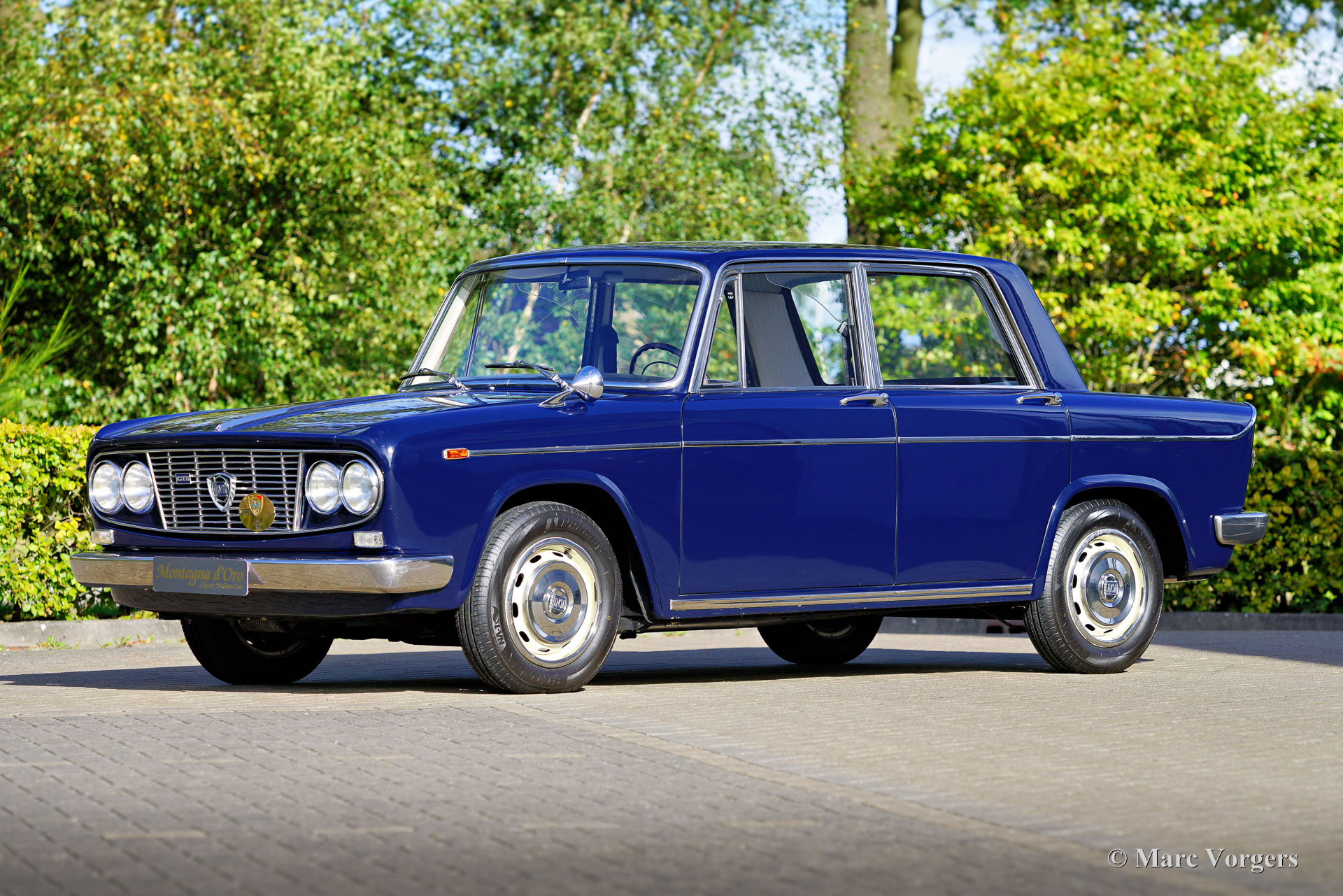 Lancia Fulvia Berlina GTE, jaar 1969 (eerste registratie 23 juni 1969). Kleur donkerblauw gecombineerd met een lichtgrijs stoffen interieur en speciale zwart/blauwe beschermende rubberen vloermatten. Deze stijlvolle Lancia Fulvia Berlina GTE werd nieuw verkocht aan de heer Gaetano Scalfarri die woonde in Vibo Valentia, Calabrië, Zuid-Italië. De Fulvia Berlina werd ontworpen door Antonio Fessia, als vervanging voor de Lancia Appia. Het algemene technische ontwerp van de Fulvia was identiek aan dat van de Flavia, met als grote uitzondering de motor. De Flavia had een viercilinder boxermotor en de Fulvia een V4-motor. In november 1968 werd het sportieve GTE-model gepresenteerd op de autoshow van Turijn. De GTE werd uitgerust met de 1298 cc motor van de Coupé Rally 1.3 die de topsnelheid op 162 km/u bracht. Verder werd de Fulvia Berline GTE uitgerust met een remkrachtverdeler op de achteras. Deze Fulvia Berlina uit de eerste serie verkeert in een zeer goede tot uitstekende originele staat. De kilometerteller geeft thans 24.845 kilometer aan. De carrosserie is in het verleden prachtig overgespoten in de originele kleur, het interieur verkeert in een onberispelijke originele staat! Onlangs heeft de auto een uitgebreide servicebeurt gehad en zijn de remmen gereviseerd (inclusief vernieuwing van de remleidingen en de hoofdremcilinder), facturen met een totaal van ruim €4000,- zijn aanwezig. Van de Lancia Fulvia Berlina GTE zijn slechts 10.386 exemplaren gebouwd. Dit is een prachtig juweeltje voor de Lancia liefhebber en verzamelaar.
