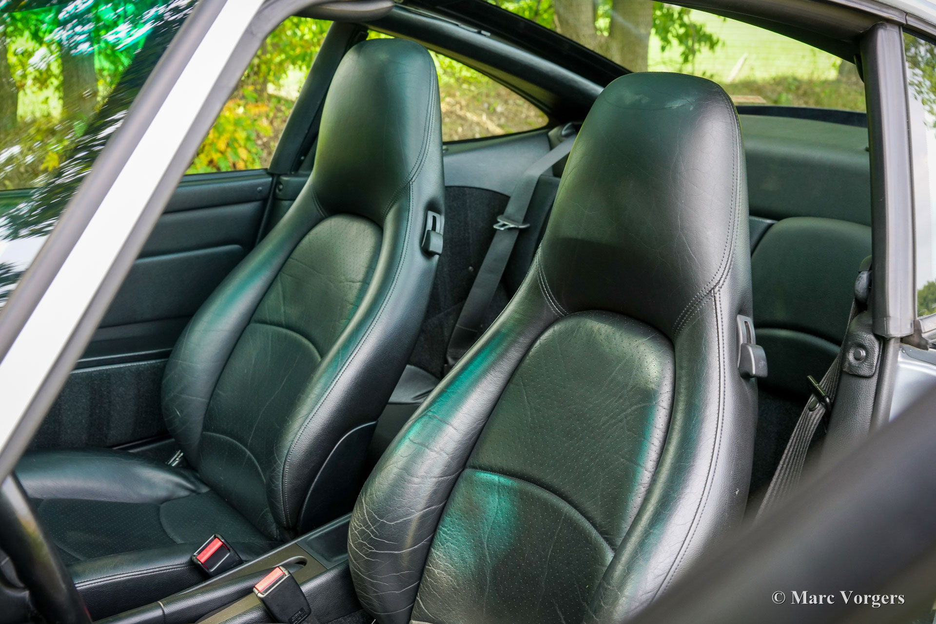 Porsche 911 (type 993) Carrera Targa, jaar 1996. Chassisnummer WP0ZZZ99ZTS381259. Uitgevoerd in de originele kleur zilver metallic gecombineerd met een zwartlederen interieur verkeert deze prachtige Porsche 911 Targa uit 1996 in een sublieme en volledig originele staat! De 911 van de 993-modelreeks is de laatste luchtgekoelde Porsche 911 en daarom zeer gewild bij liefhebbers en verzamelaars. Dit exemplaar werd nieuw verkocht in Tokio, Japan, en door Porsche-vertegenwoordiger Mitsuwa Motors aan de eerste eigenaar verkocht. De auto werd voor het eerst geregistreerd op 8 juli 1996. Het Japanse onderhoudsboekje is ingevuld van oktober 1997 tot november 2005 (7649 tot 35885 kilometer). In een tweede boekje worden de jaarlijkse onderhoudsbeurten tot 2014 vermeld (in het Japans). Japanse onderhoudsfacturen zijn aanwezig van 2009 tot en met 2015 (kilometerstand 44332 kilometer). De facturen zijn allemaal gericht aan dezelfde Japanse eigenaar. In april 2020 is deze prachtige Porsche 911 geïmporteerd naar Nederland. In juni 2020 heeft de auto een uitgebreide servicebeurt gehad bij Porsche Centrum Twente met een kilometerstand van 45794. Een keuringsrapport en factuur zijn aanwezig. De volgende reguliere onderhoudsbeurt was in juni 2024 met een kilometerstand van 64623. In het voorjaar van 2025 is de 911 Targa naar Lapaire Autospa gebracht voor een volledige ‘detailing’ van de carrosserie en het interieur. De laatste Apk-keuring was in augustus 2025 bij een kilometerstand van 64698 kilometer. Deze fantastische, luchtgekoelde Porsche 911 (993) Targa verkeert in een sublieme en optisch bijna nieuwstaat! De auto rijdt en stuurt perfect! Het elektrische glazen Targa-dak met het grote schuifpaneel zorgt voor een heerlijke open rijervaring. In gesloten toestand houdt een elektrisch bedienbaar zwart raamgordijn het indien gewenst buiten. De auto wordt geleverd met het originele Japanse onderhoudsboekje en handleidingen, een Nederlands onderhouds-/serviceboekje en een handleiding voor het geïnstalleerde Porsche CDC-3 stereosysteem met cd-wisselaar. Deze Porsche 911 Carrera Targa is een prachtig exemplaar met een lage kilometerstand. Een volledig originele auto die zowel de veeleisende Porsche-liefhebber als -verzamelaar zal aanspreken.