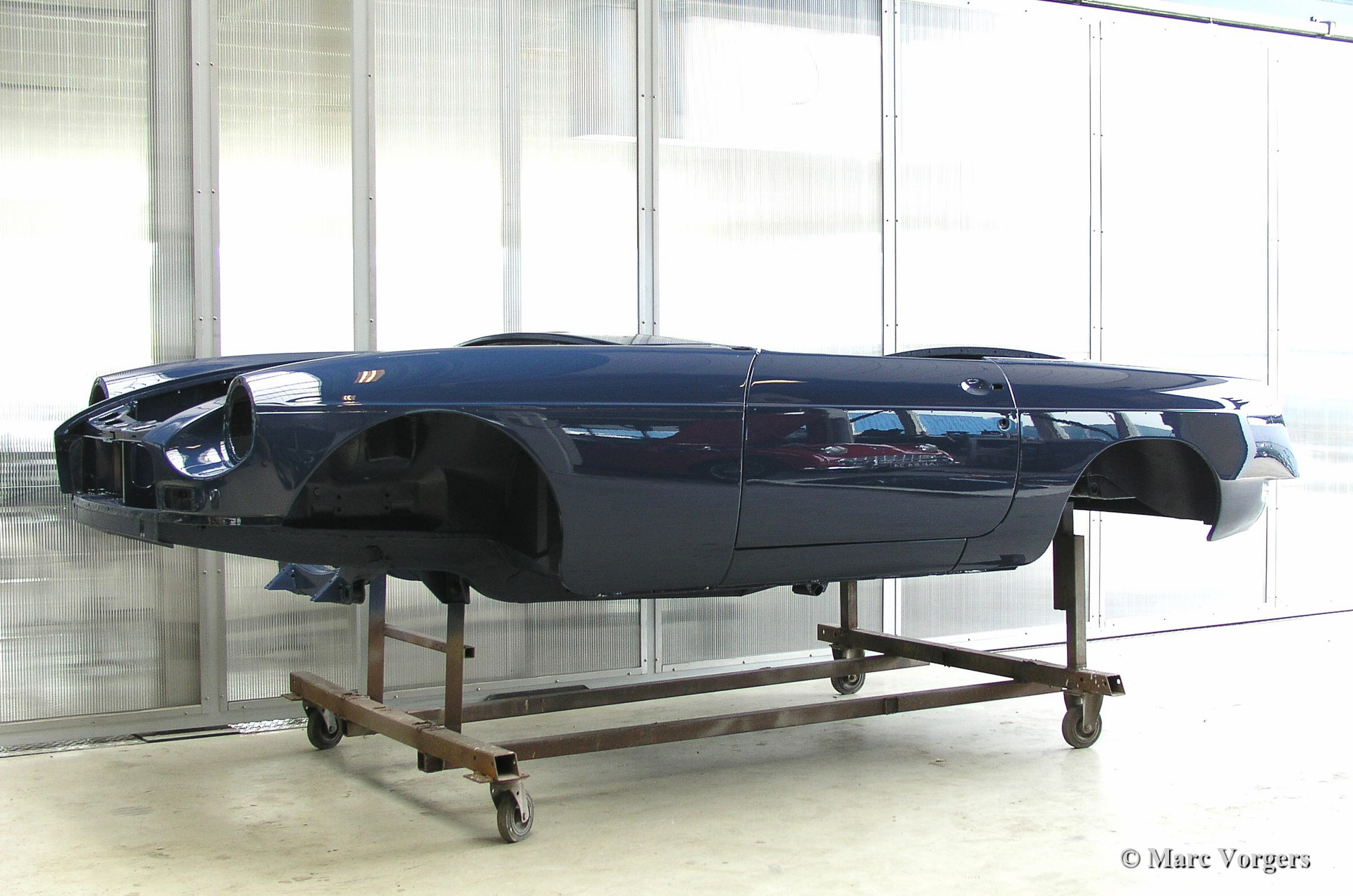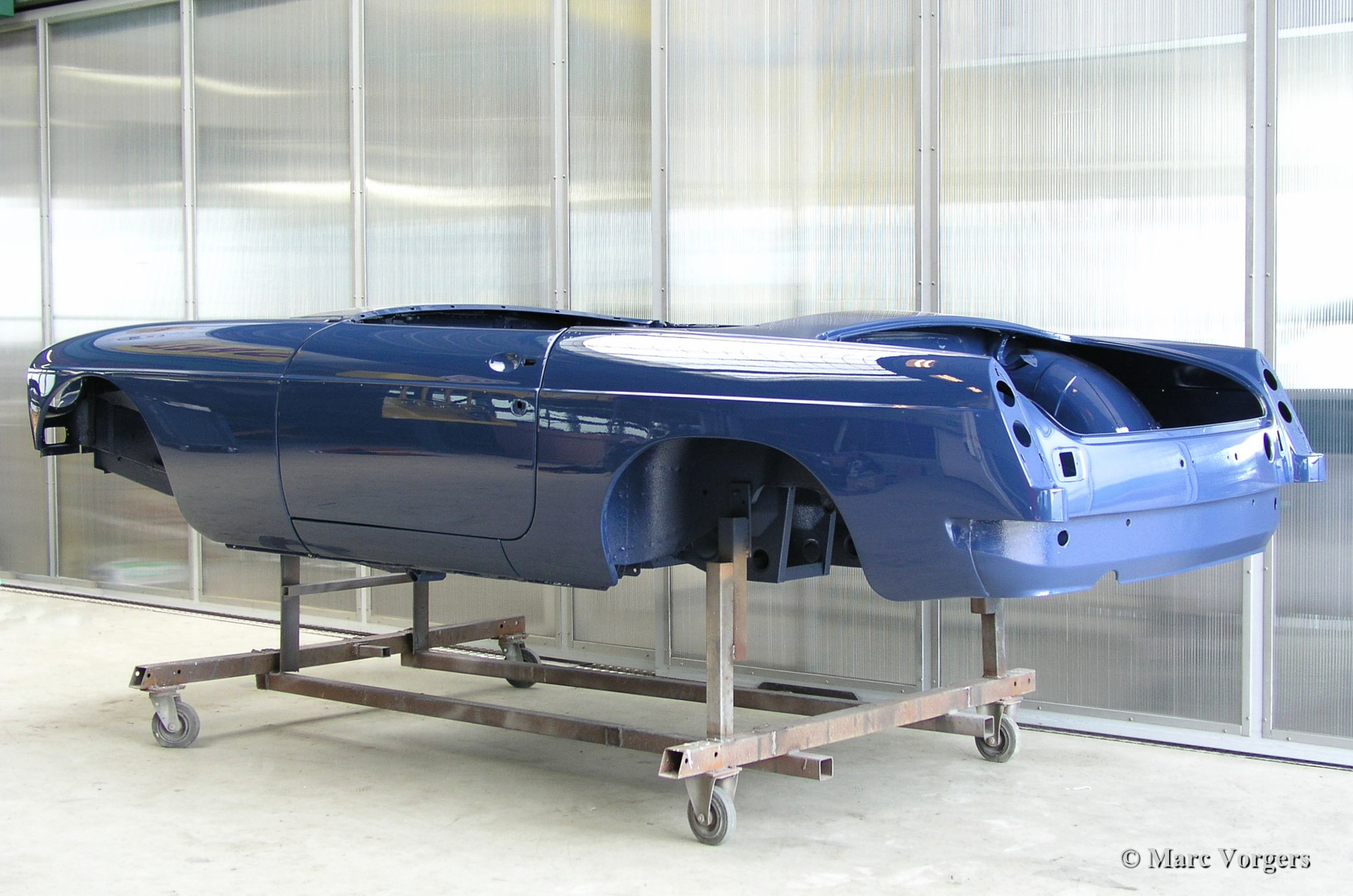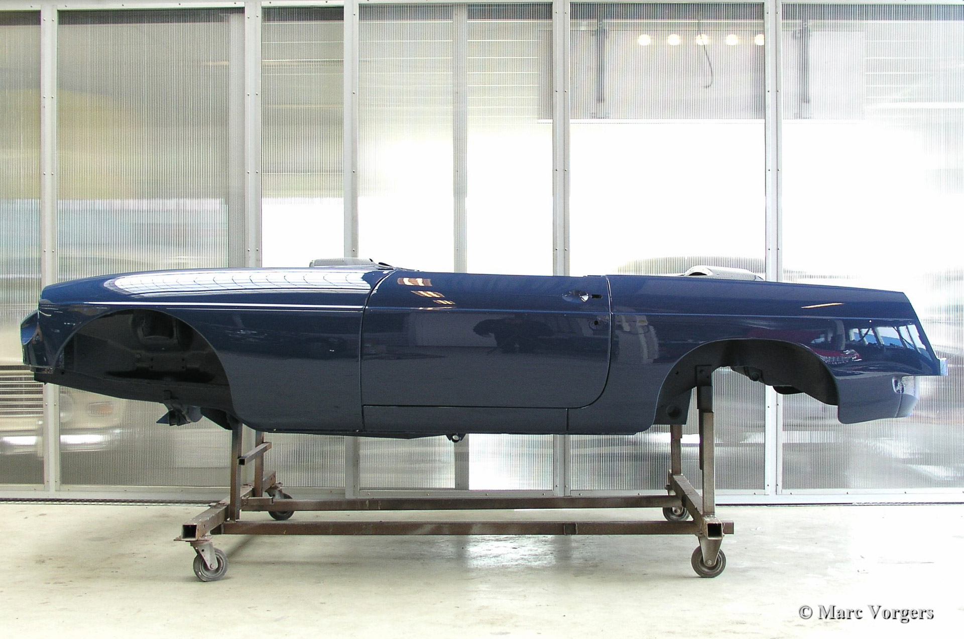Deze MG MGC roadster body werd perfect gerestaureerd naar concoursstaat. De automobiel werd volledig gedemonteerd. Aansluitend werd de lak verwijderd en de werd body gestraald. Een beschermende epoxylaag werd aangebracht waarna het plaatwerk werd gerestaureerd. Daarna werd de body geschuurd en gegrond met epoxyprimer. Aansluitend werd er een compleet meerlagen laksysteem aangebracht in de originele kleur 'mineral Blue'. Het resultaat is als glas en dat zonder 'toppen'!