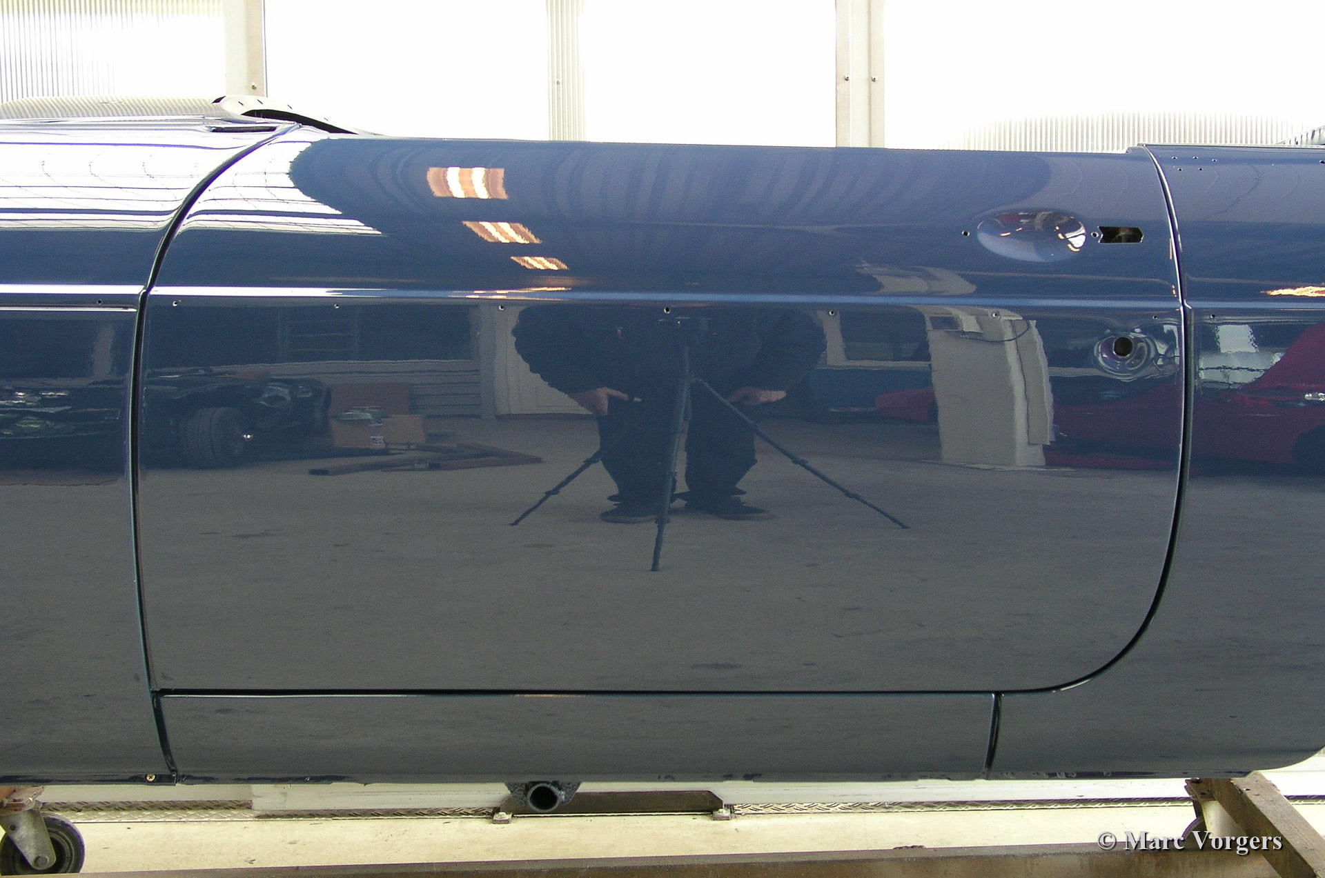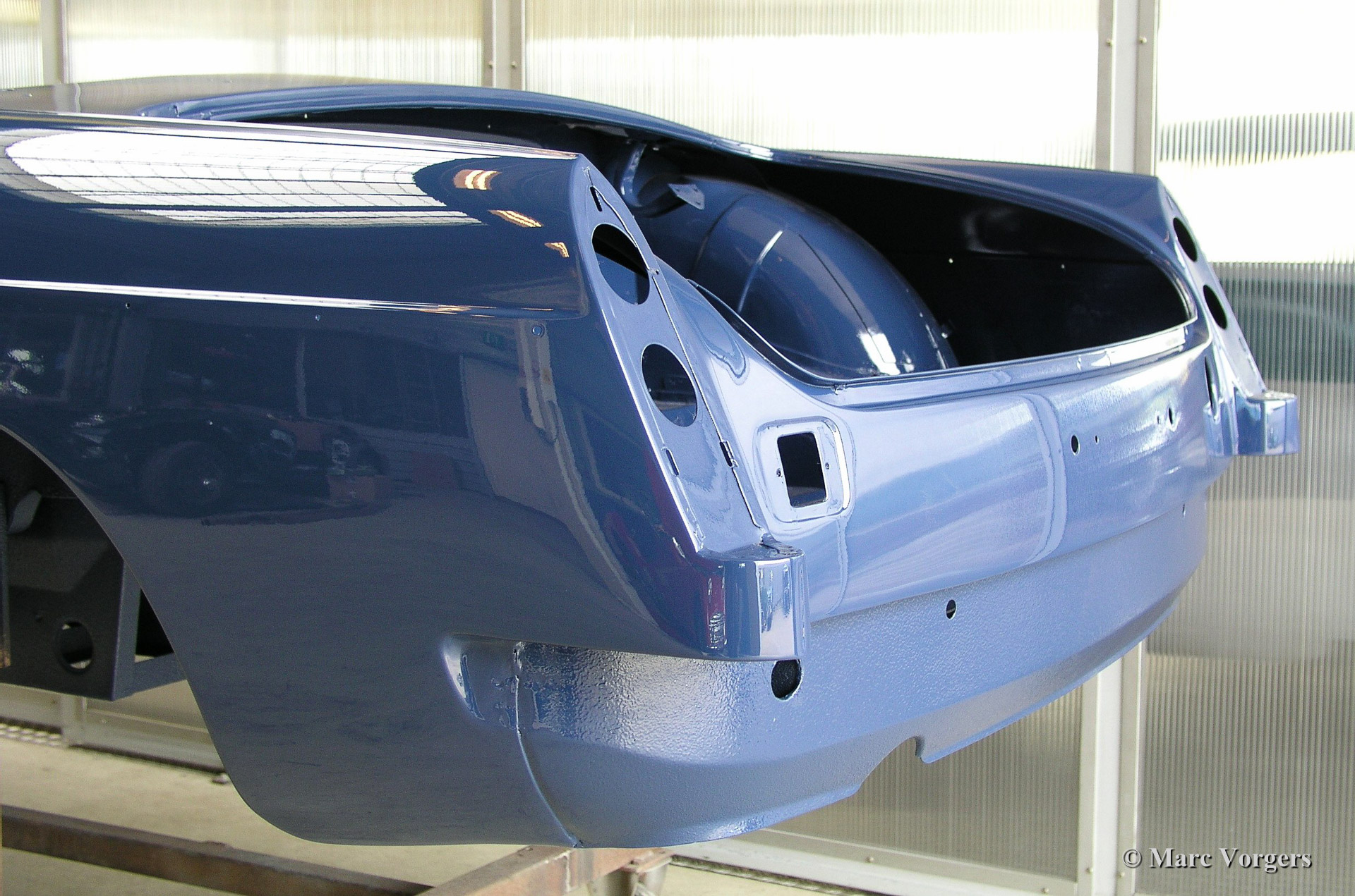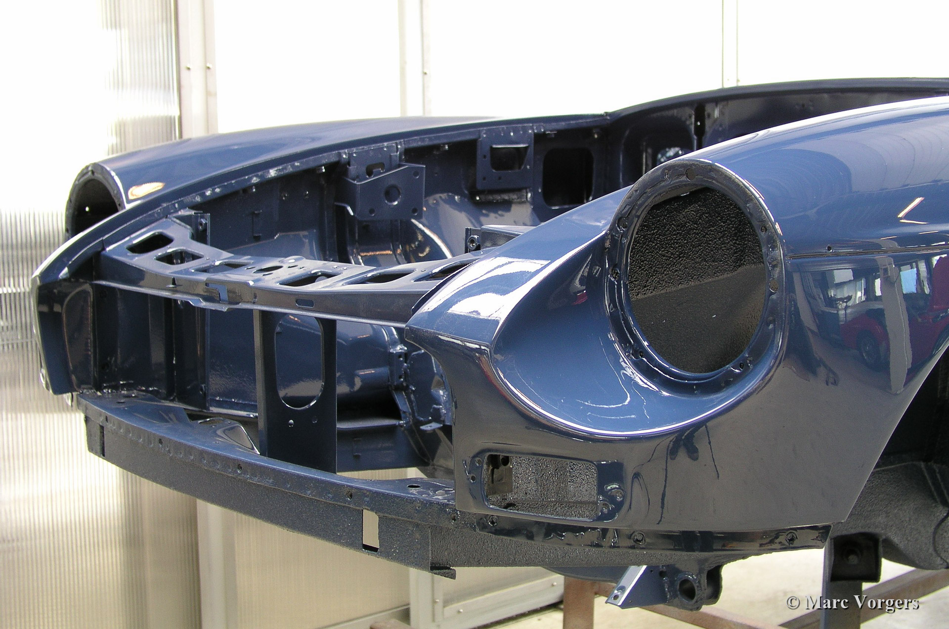 Deze MG MGC roadster body werd perfect gerestaureerd naar concoursstaat. De automobiel werd volledig gedemonteerd. Aansluitend werd de lak verwijderd en de werd body gestraald. Een beschermende epoxylaag werd aangebracht waarna het plaatwerk werd gerestaureerd. Daarna werd de body geschuurd en gegrond met epoxyprimer. Aansluitend werd er een compleet meerlagen laksysteem aangebracht in de originele kleur 'mineral Blue'. Het resultaat is als glas en dat zonder 'toppen'!