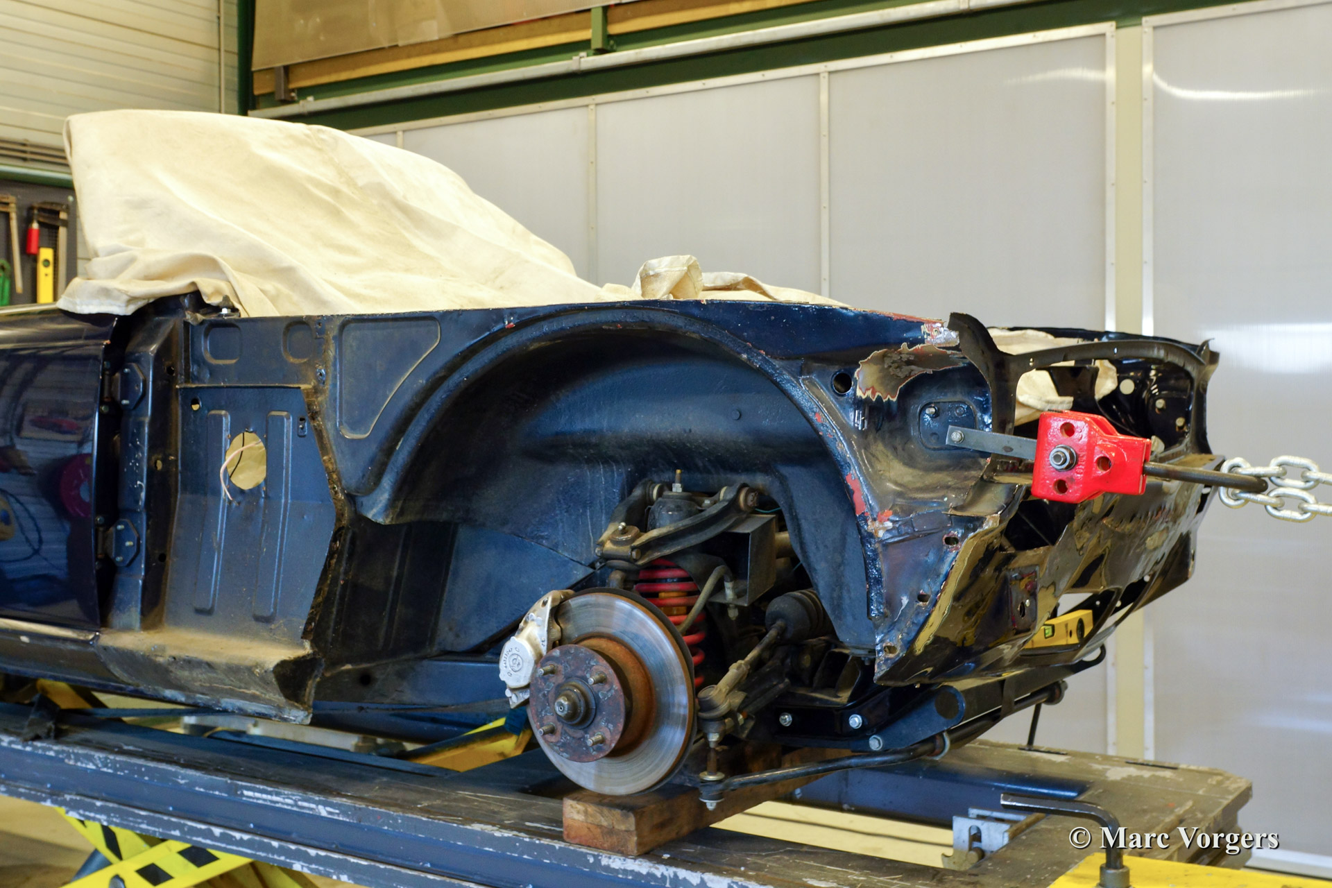 Bijgaand een voorbeeld van de restauratie en reparatiekwaliteiten die men aantreft bij onze restaurateurs. Hier ziet u een Triumph TR 6 die betrokken was bij een aanrijding. De voorzijde is rechtgetrokken in de richtbank en vervolgens volledig en perfect hersteld. Geen spoortje van de schade kan teruggevonden worden.