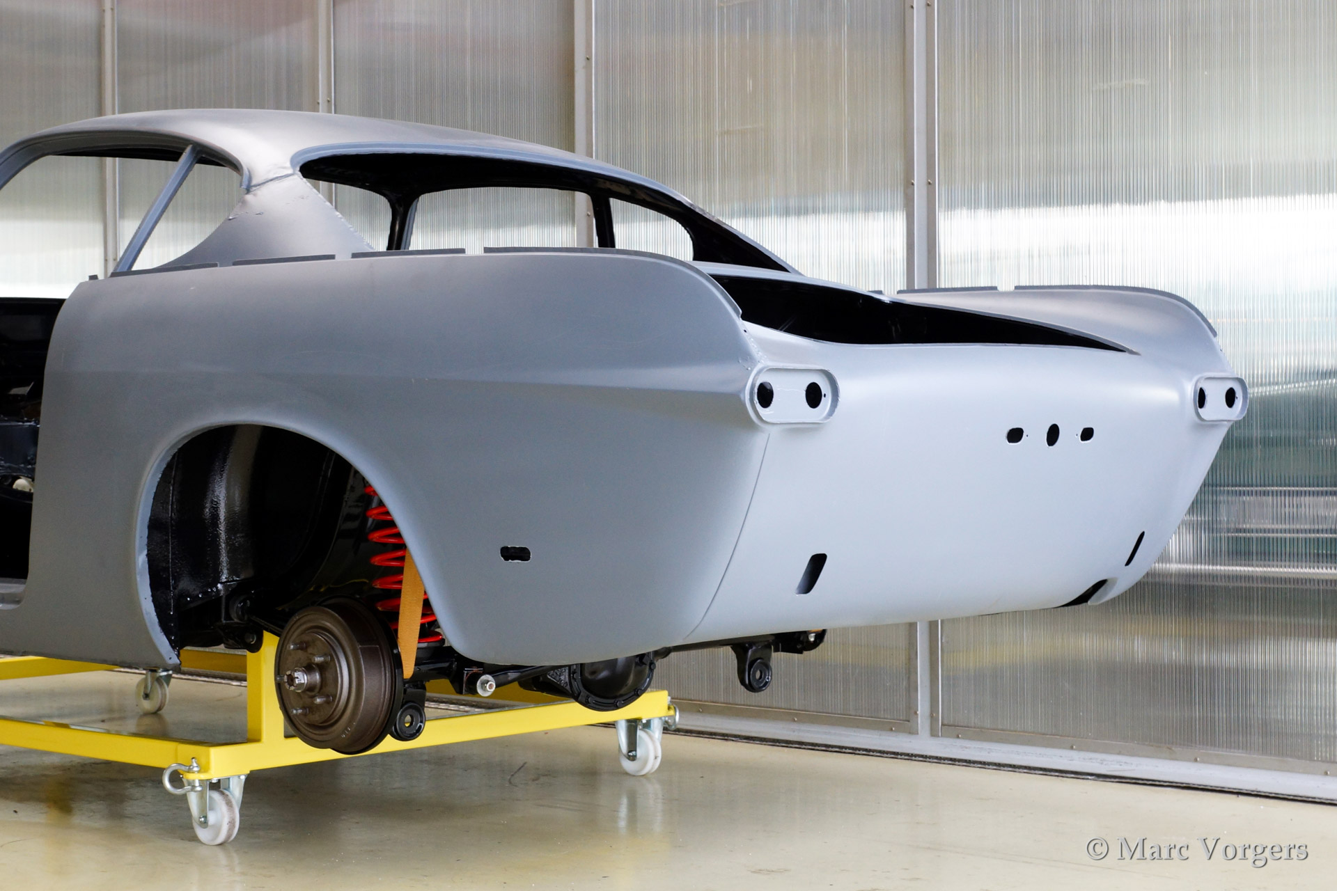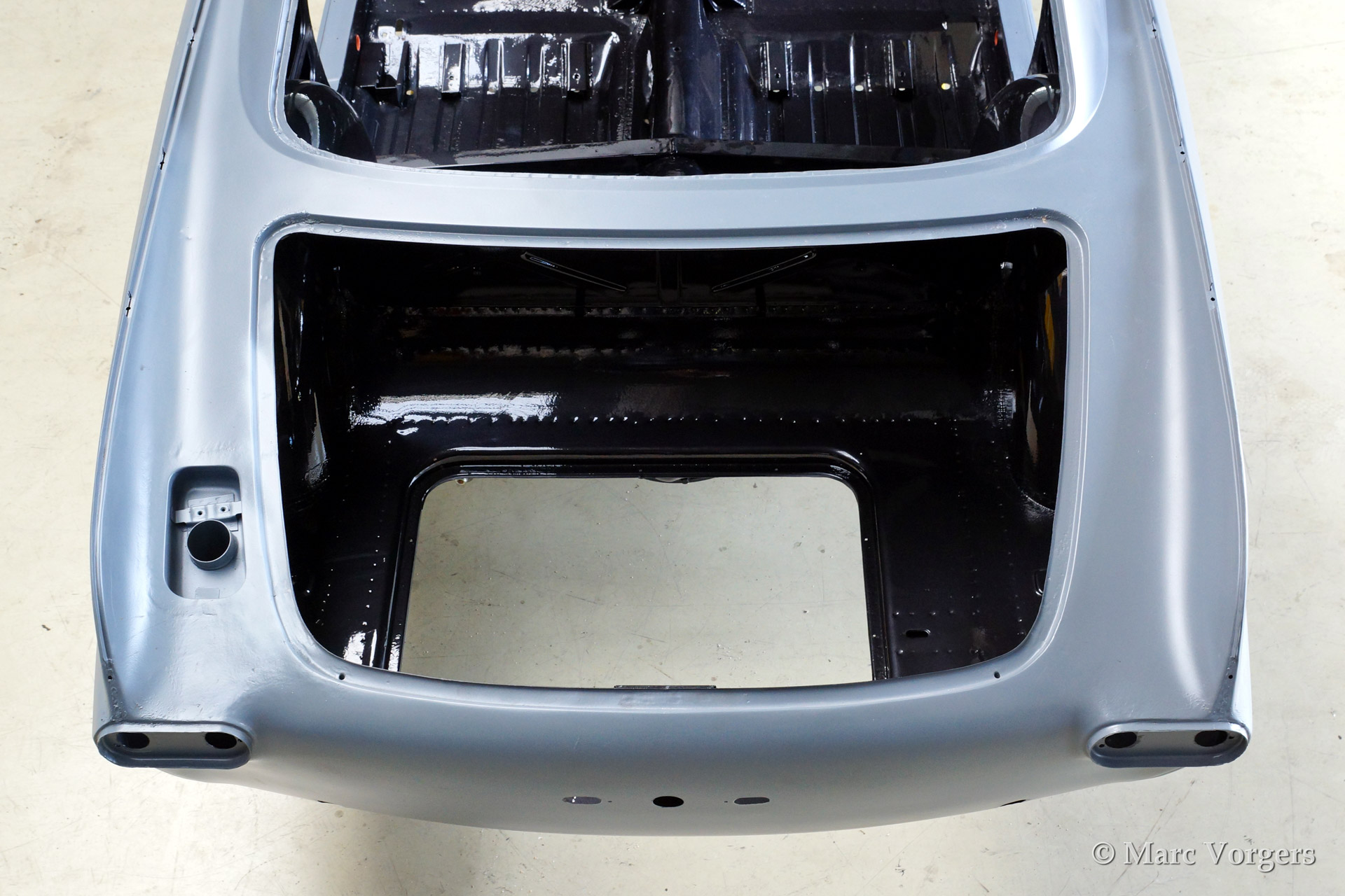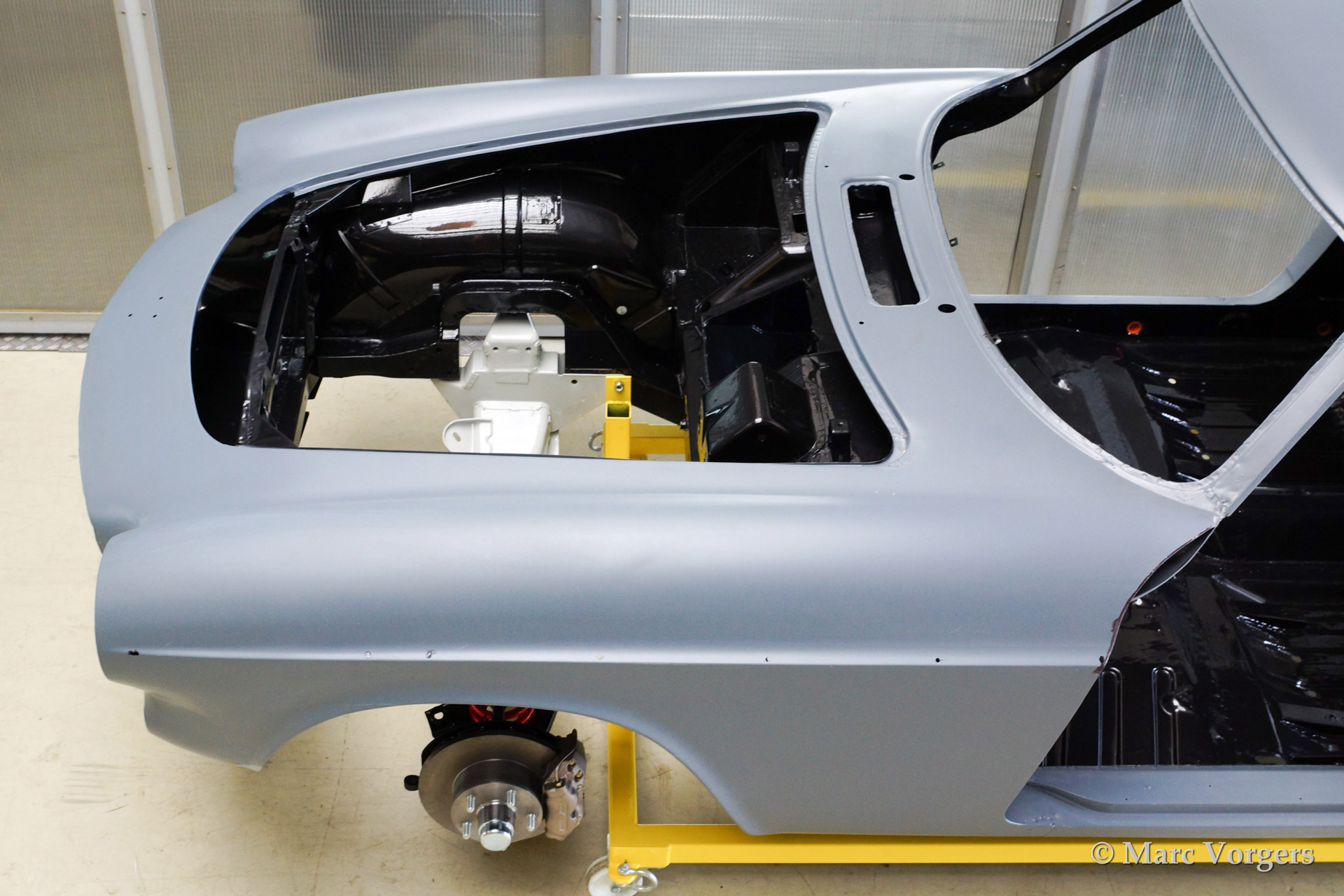 Volvo P1800 S volledige restauratie. De volvo werd volledig gestript en ontlakt. Daarna werd er een epoxycoating op het blanke metaal aangebracht. Het plaatwerk werd uitvoerig gerestaureerd. Daarna werd de carrosserie geschuurd en met Epoxy gegrond. De zeer strakke body werd verder gladgemaakt en gegrond. De binnenkant is gespoten in de kleur antraciet metallic.