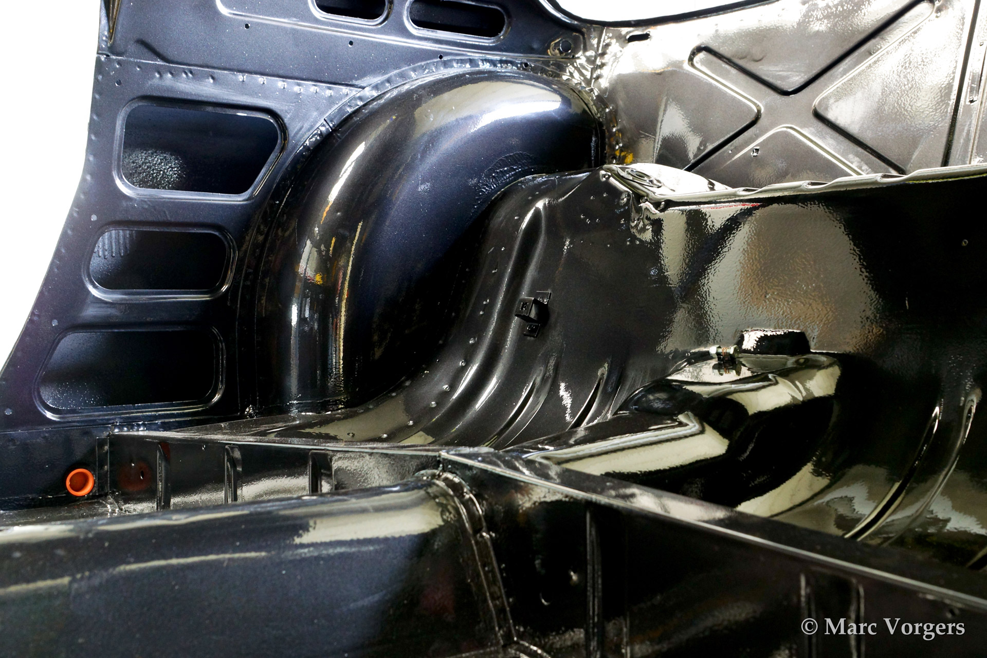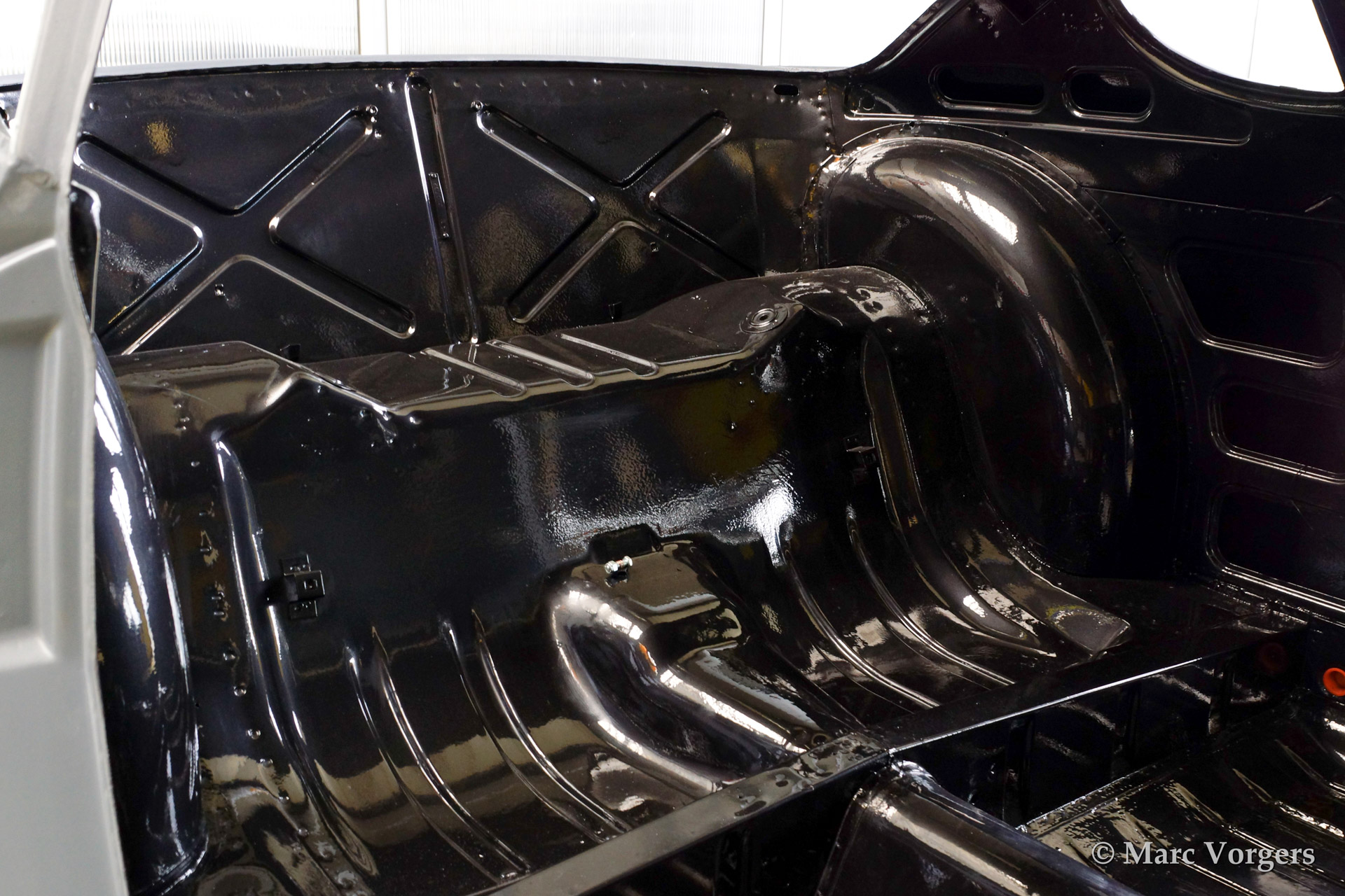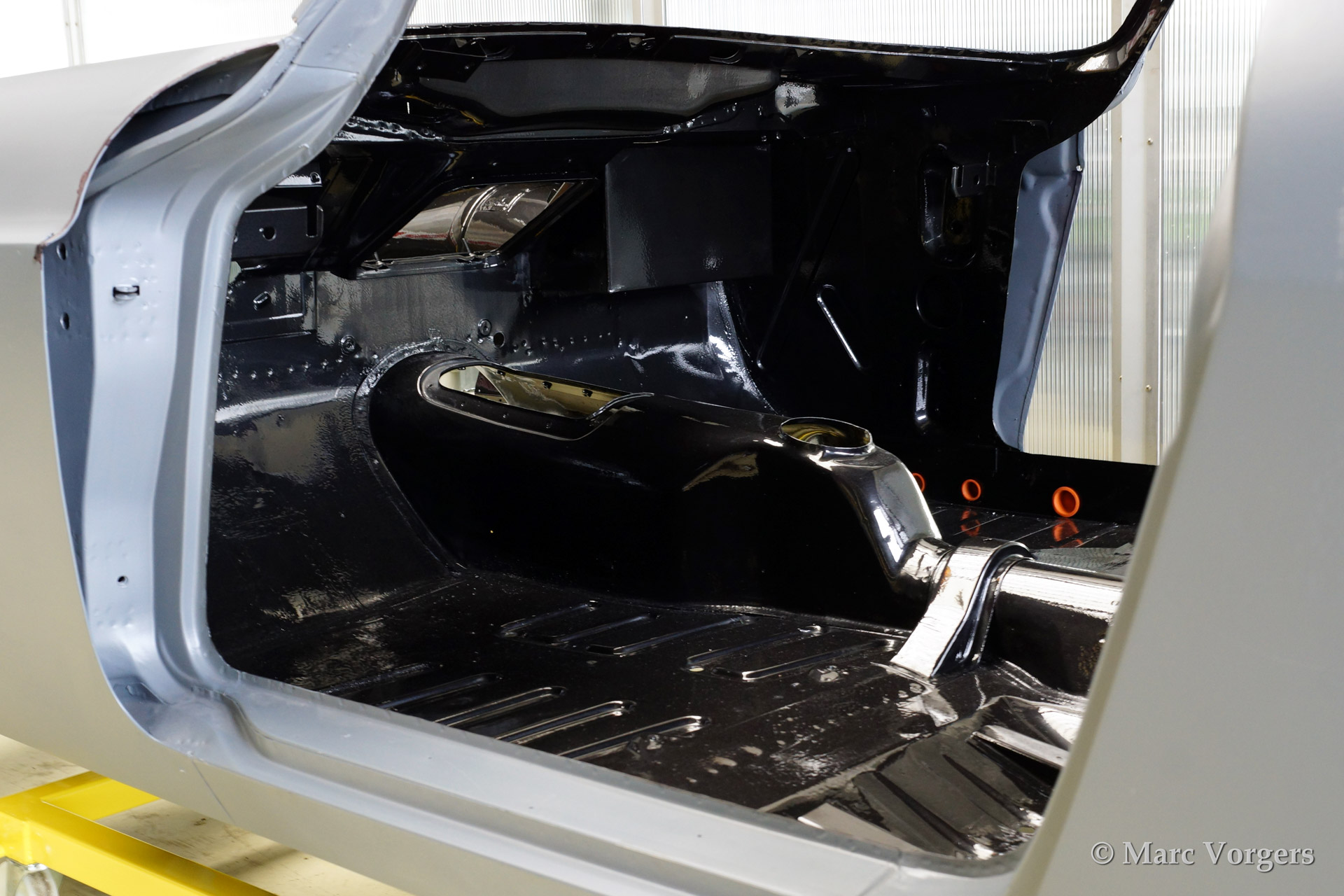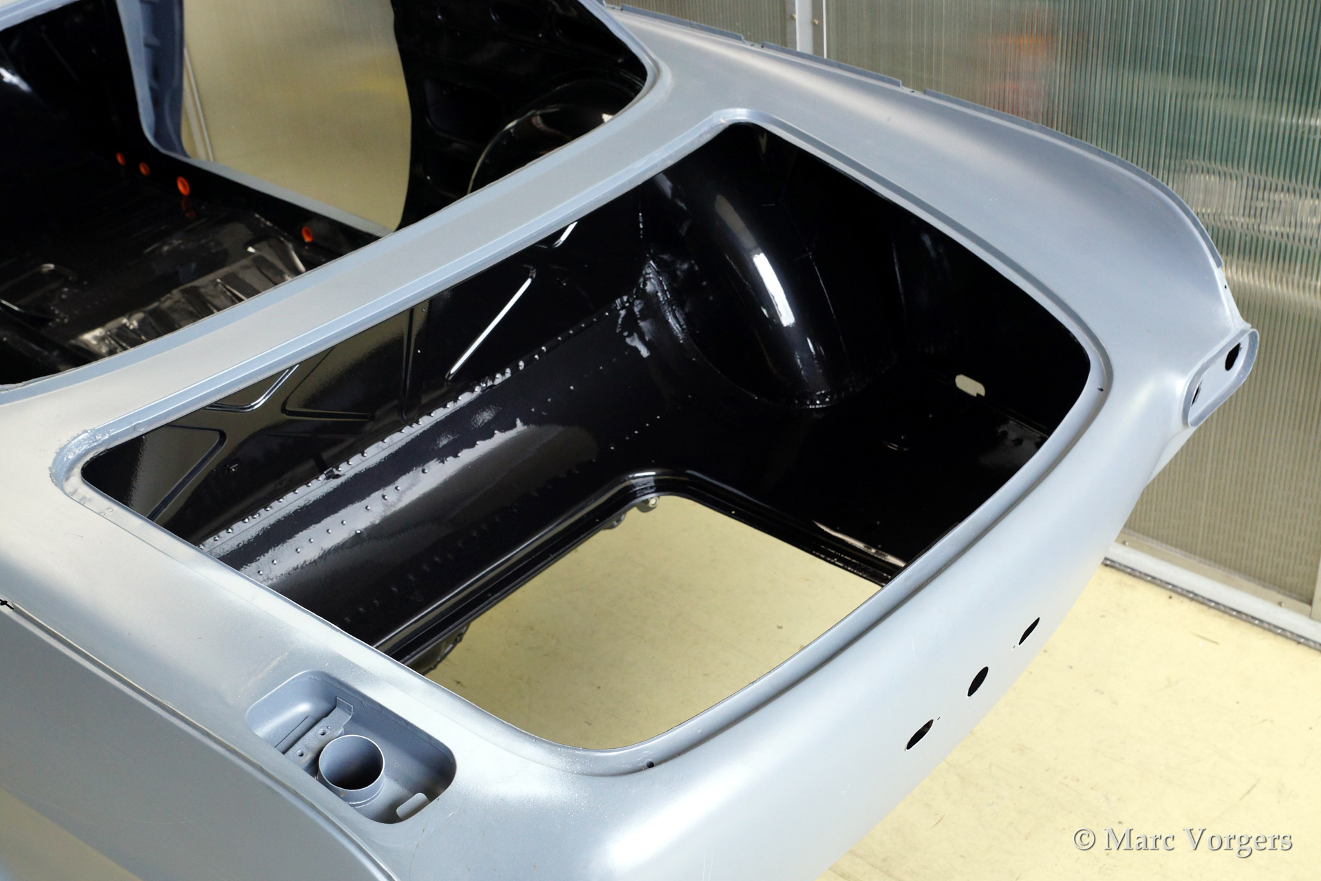 Volvo P1800 S volledige restauratie. De volvo werd volledig gestript en ontlakt. Daarna werd er een epoxycoating op het blanke metaal aangebracht. Het plaatwerk werd uitvoerig gerestaureerd. Daarna werd de carrosserie geschuurd en met Epoxy gegrond. De zeer strakke body werd verder gladgemaakt en gegrond. De binnenkant is gespoten in de kleur antraciet metallic.