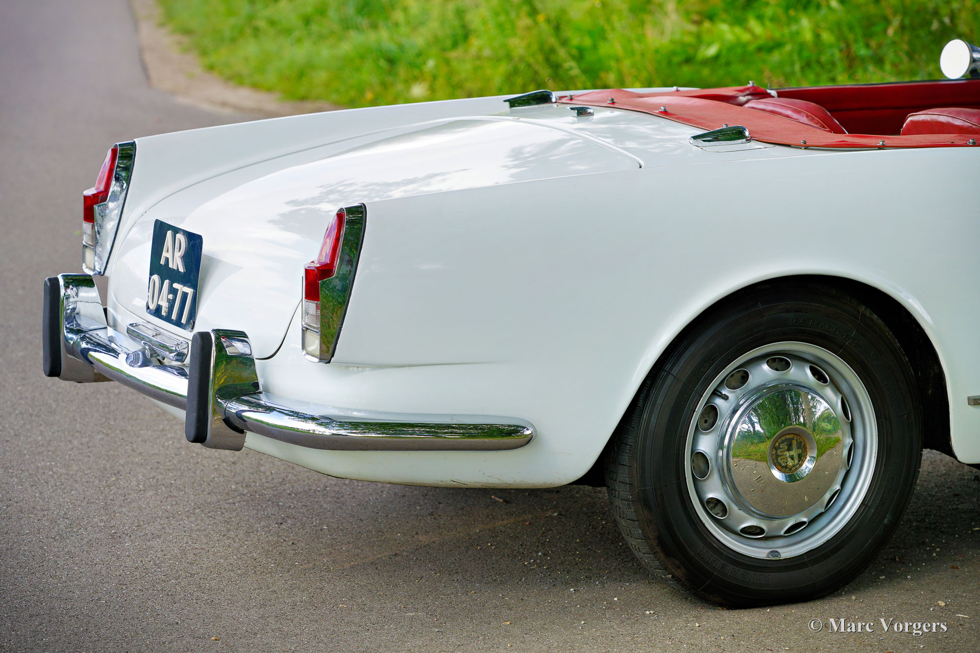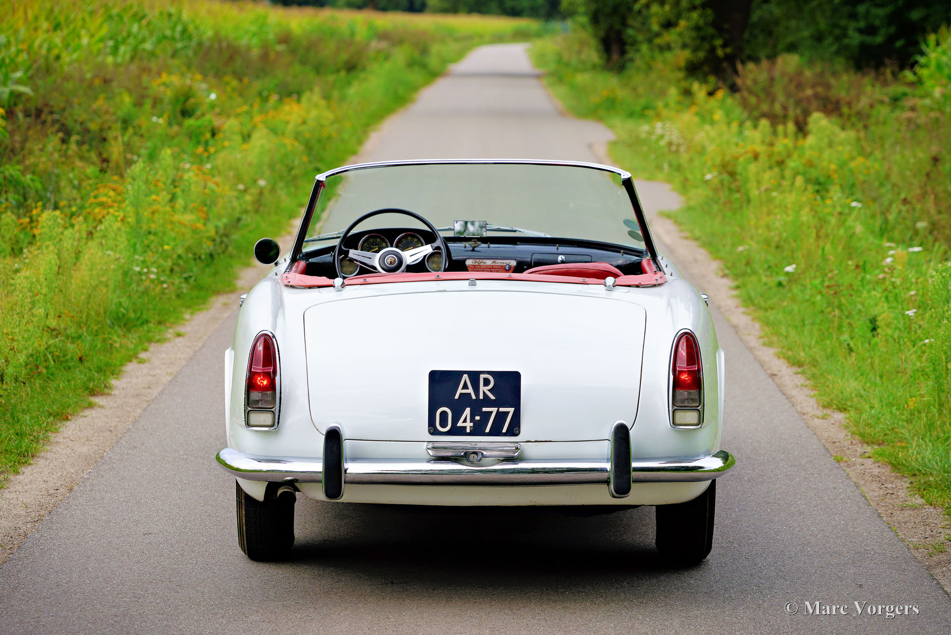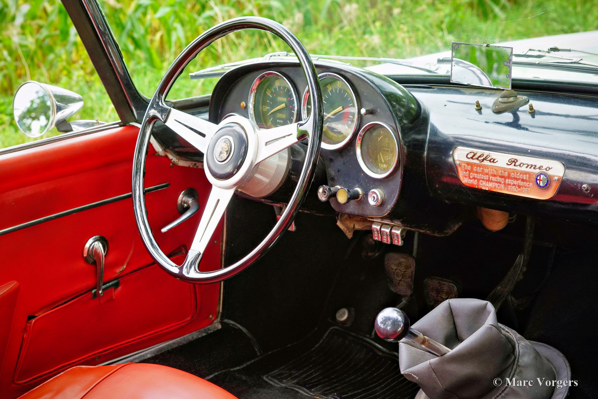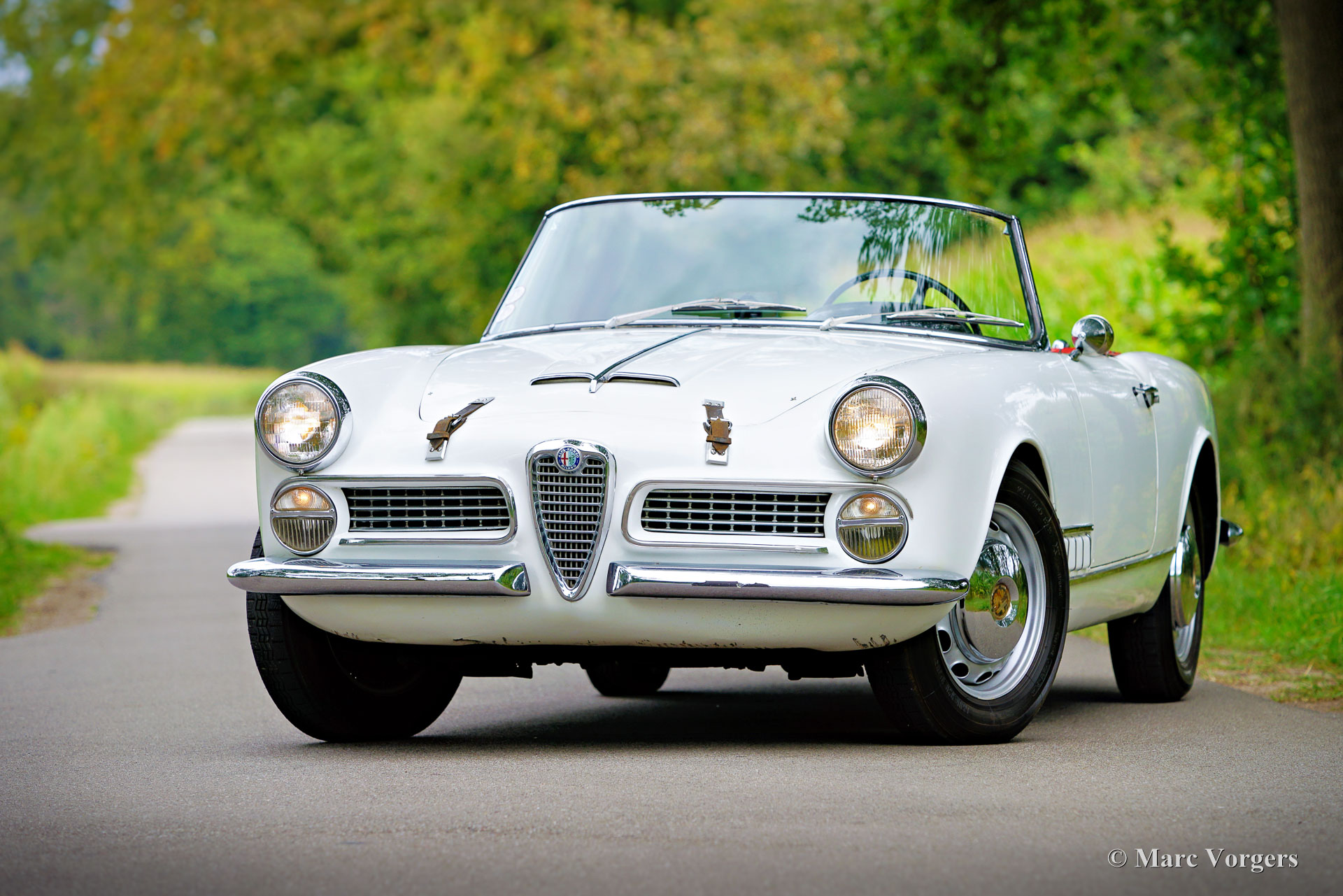 Alfa Romeo 2000 Touring Spider, jaar 1959. (Eerste registratie 28 februari 1959.) Kleur wit gecombineerd met een rood kunstlederen interieur en zwart tapijt. Deze stijlvolle Alfa Romeo 2000 Touring Spider werd nieuw verkocht in de VS aan een Italiaan die in Florida woonde. Deze eigenaar nam de Alfa Romeo op een gegeven moment mee naar Italië. De Italiaan had de auto vijftig jaar in zijn bezit voordat de Alfa Romeo in 2009 werd verkocht aan de huidige Nederlandse eigenaar. De auto werd naar Nederland gehaald en in 2010 geregistreerd voor gebruik op de weg. De Alfa Romeo Spider stond opgesteld in een Alfa Romeo collectie en werd in de periode 2012-2019 jaarlijks naar de Schloss Dyck Classic Days gereden (Bedburdyck, in Noordrijn-Westfalen, Duitsland). Deze Alfa Romeo 2000 Touring Spider is een echte ‘survivor’. De auto is zeer origineel en er is in de loop van de jaren niet veel aan gedaan. De auto is lang geleden een keer overgespoten en in Nederland is de originele motor vervangen door een andere motor van hetzelfde type. De originele motor is inmiddels geheel gereviseerd en kan los bij de auto gekocht worden (vraagprijs € 10.000, -). Deze Alfa Romeo Touring 2000 Spider verkeert in een redelijke conditie, het is een rijdende projectauto. De auto rijdt en is legaal voor gebruik op de openbare weg in Nederland (50+ geen APK-plicht). Onlangs zijn er wat scheuren in de stoelen gerepareerd (de stoelen hebben nieuw schuim nodig), is de auto weer rijdend gemaakt en zijn de remmen gangbaar gemaakt (na vijf jaar stilstand). Deze Alfa Romeo Touring 2000 Spider kan bescheiden worden opgeknapt/gereviseerd en als ‘survivor’ worden gereden, of de auto kan gedeeltelijk/volledig worden gerestaureerd. De keuze is aan een nieuwe eigenaar en Alfa Romeo liefhebber!