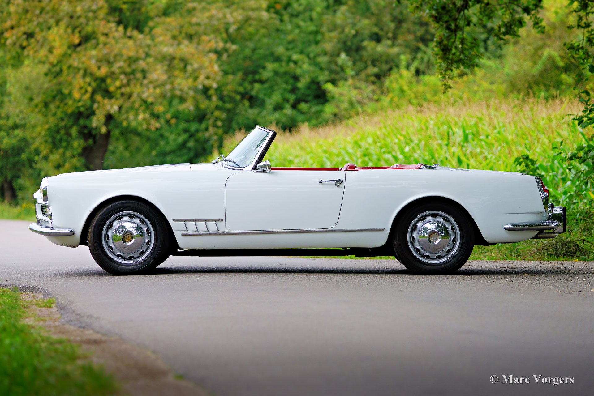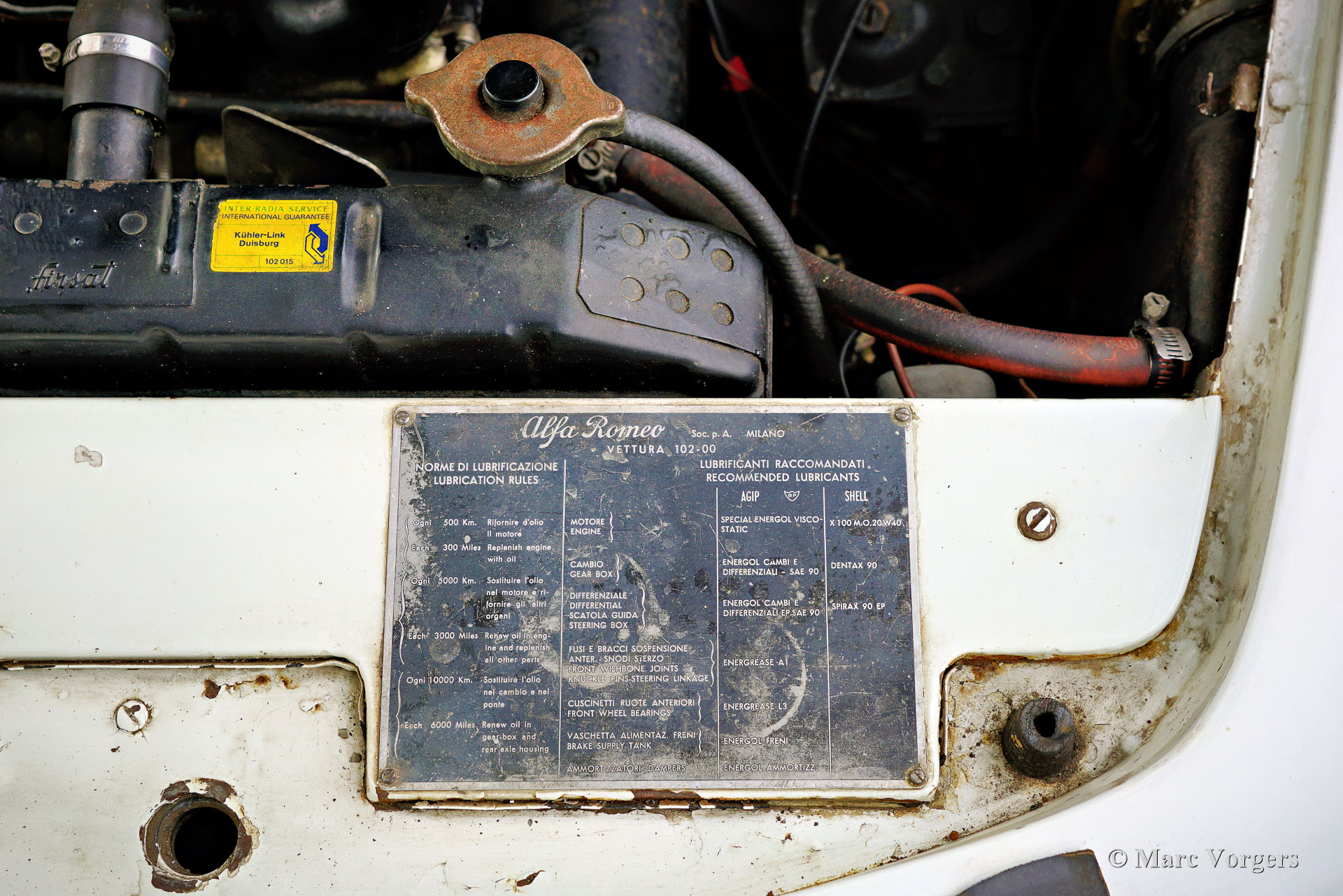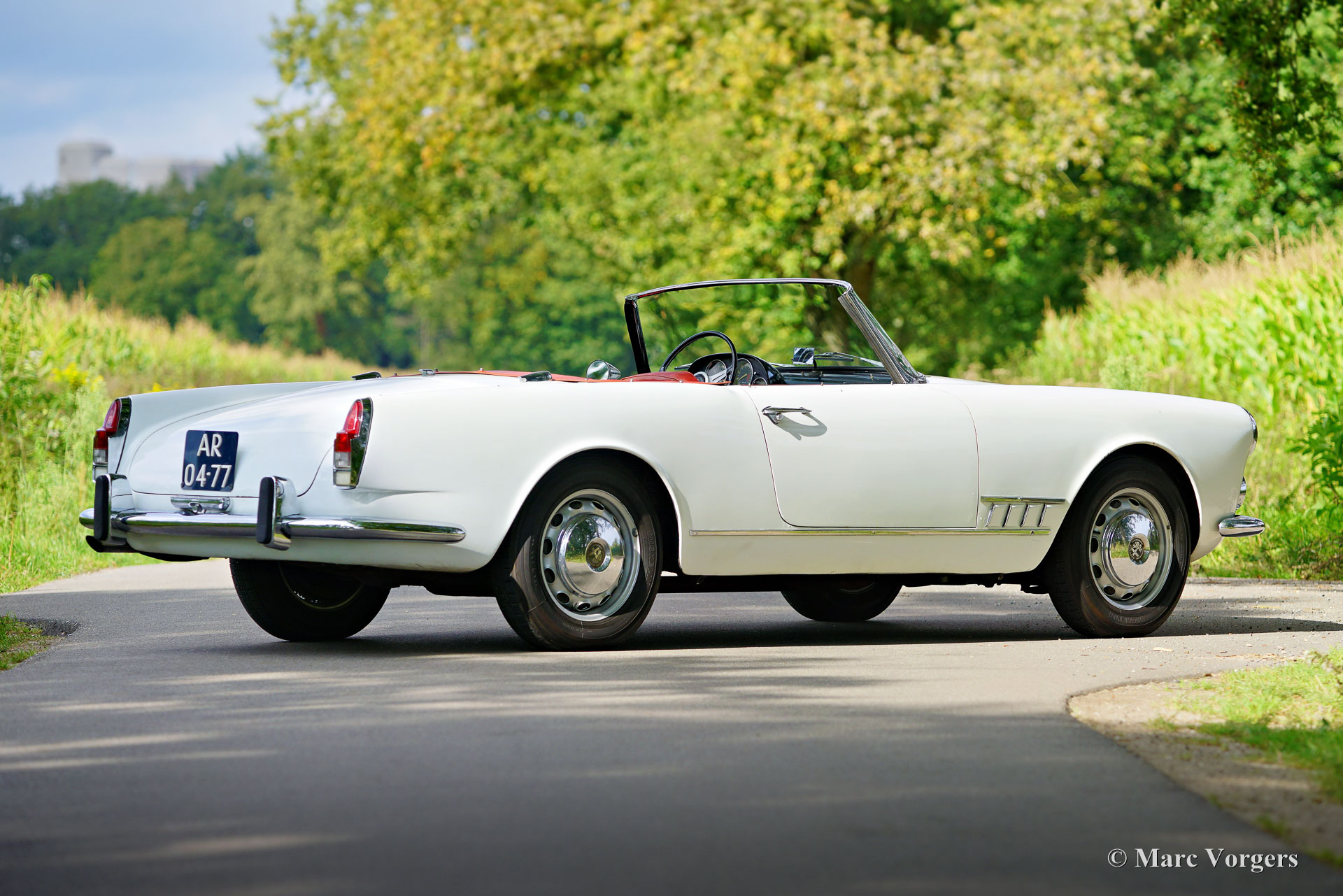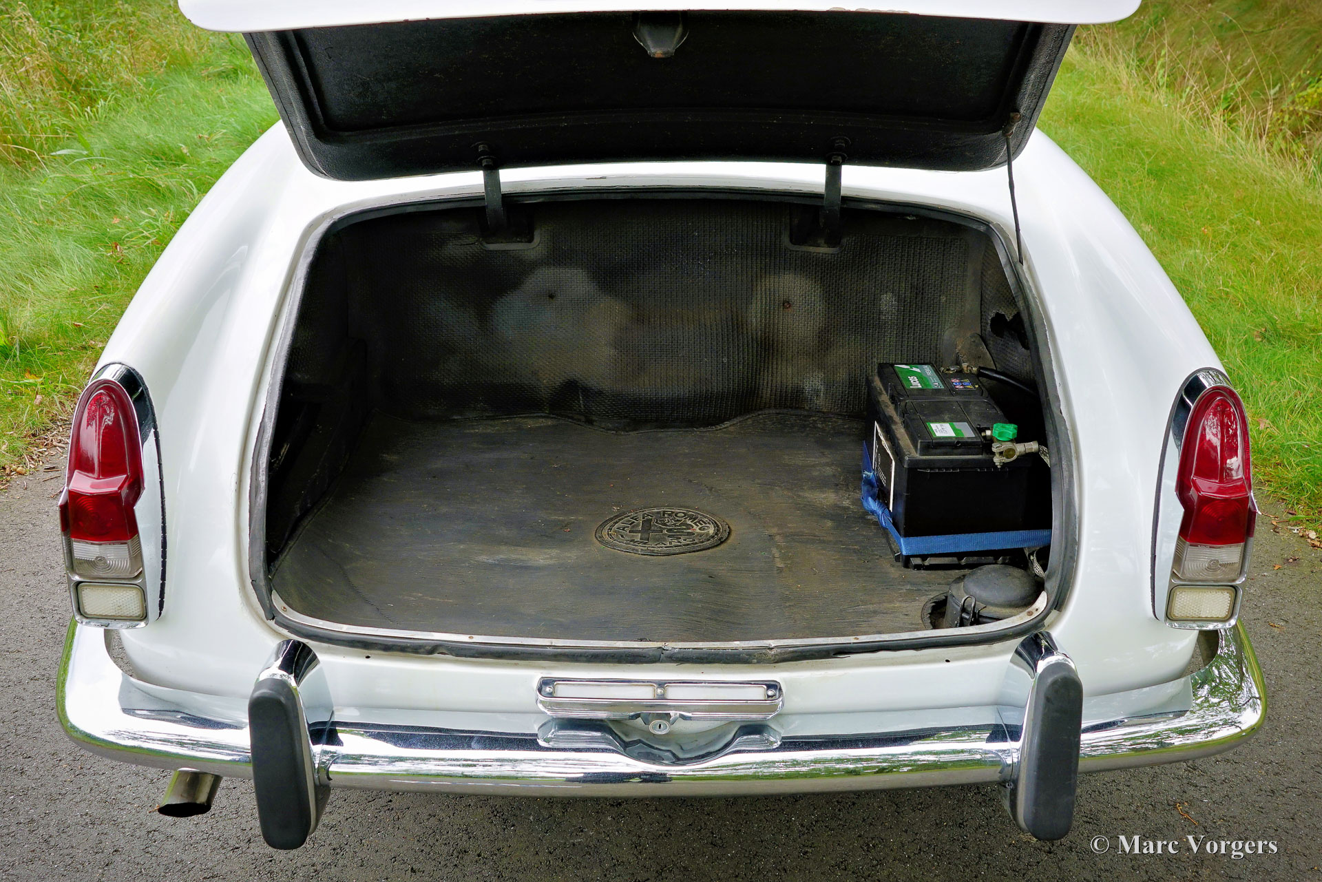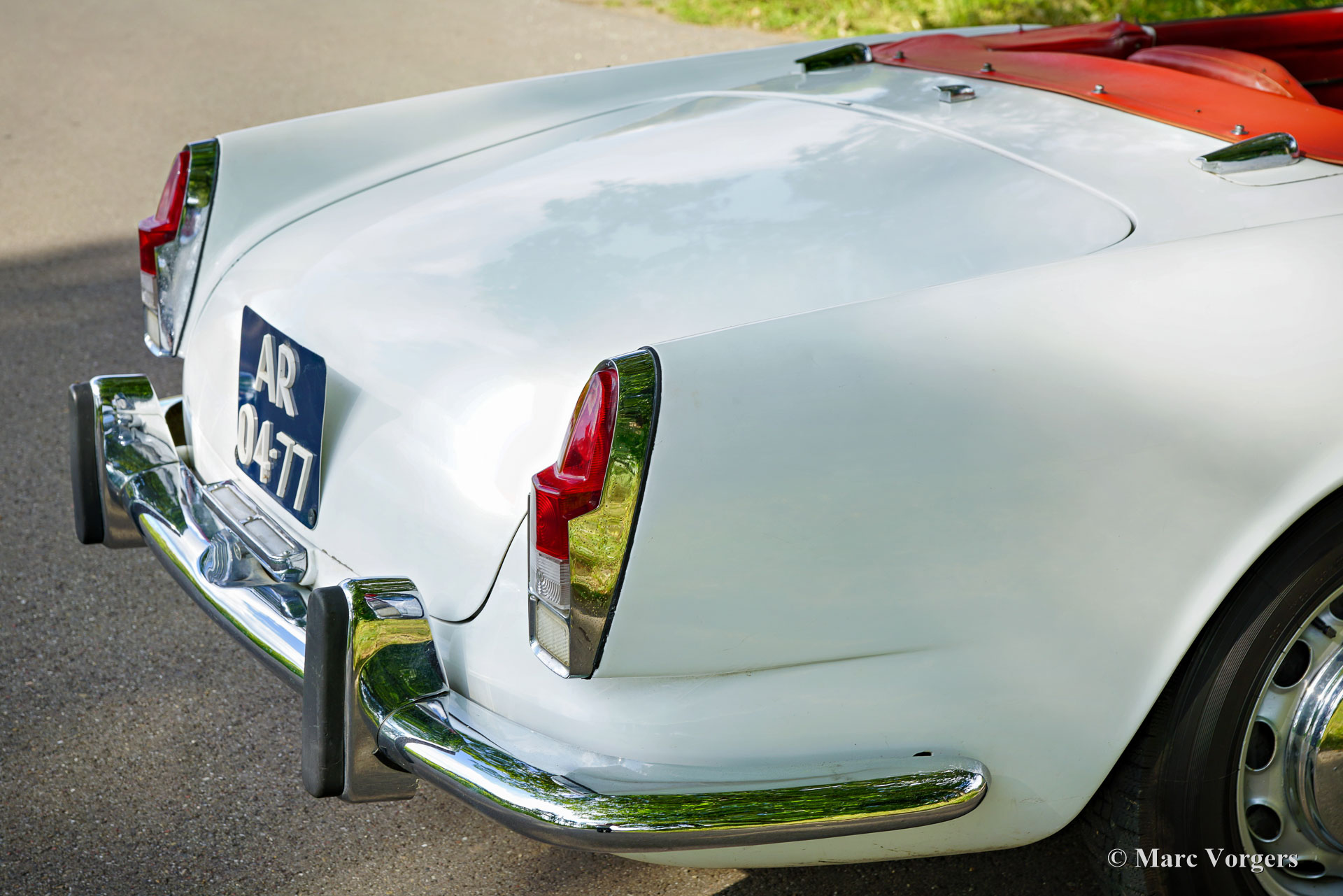 Alfa Romeo 2000 Touring Spider, jaar 1959. (Eerste registratie 28 februari 1959.) Kleur wit gecombineerd met een rood kunstlederen interieur en zwart tapijt. Deze stijlvolle Alfa Romeo 2000 Touring Spider werd nieuw verkocht in de VS aan een Italiaan die in Florida woonde. Deze eigenaar nam de Alfa Romeo op een gegeven moment mee naar Italië. De Italiaan had de auto vijftig jaar in zijn bezit voordat de Alfa Romeo in 2009 werd verkocht aan de huidige Nederlandse eigenaar. De auto werd naar Nederland gehaald en in 2010 geregistreerd voor gebruik op de weg. De Alfa Romeo Spider stond opgesteld in een Alfa Romeo collectie en werd in de periode 2012-2019 jaarlijks naar de Schloss Dyck Classic Days gereden (Bedburdyck, in Noordrijn-Westfalen, Duitsland). Deze Alfa Romeo 2000 Touring Spider is een echte ‘survivor’. De auto is zeer origineel en er is in de loop van de jaren niet veel aan gedaan. De auto is lang geleden een keer overgespoten en in Nederland is de originele motor vervangen door een andere motor van hetzelfde type. De originele motor is inmiddels geheel gereviseerd en kan los bij de auto gekocht worden (vraagprijs € 10.000, -). Deze Alfa Romeo Touring 2000 Spider verkeert in een redelijke conditie, het is een rijdende projectauto. De auto rijdt en is legaal voor gebruik op de openbare weg in Nederland (50+ geen APK-plicht). Onlangs zijn er wat scheuren in de stoelen gerepareerd (de stoelen hebben nieuw schuim nodig), is de auto weer rijdend gemaakt en zijn de remmen gangbaar gemaakt (na vijf jaar stilstand). Deze Alfa Romeo Touring 2000 Spider kan bescheiden worden opgeknapt/gereviseerd en als ‘survivor’ worden gereden, of de auto kan gedeeltelijk/volledig worden gerestaureerd. De keuze is aan een nieuwe eigenaar en Alfa Romeo liefhebber!