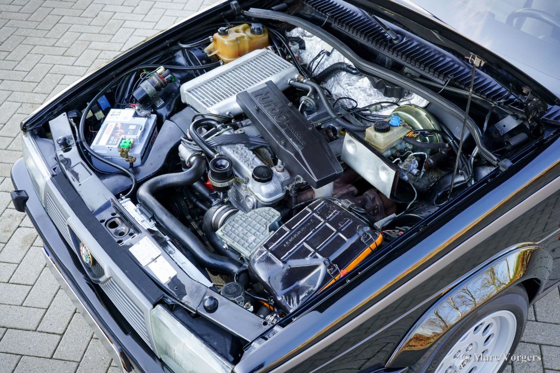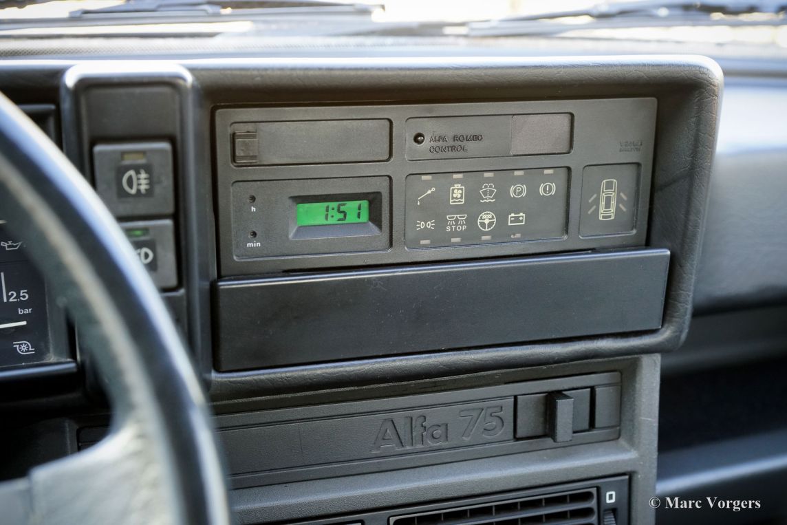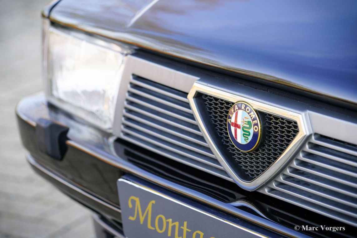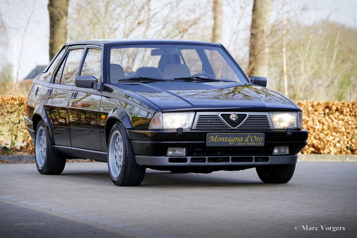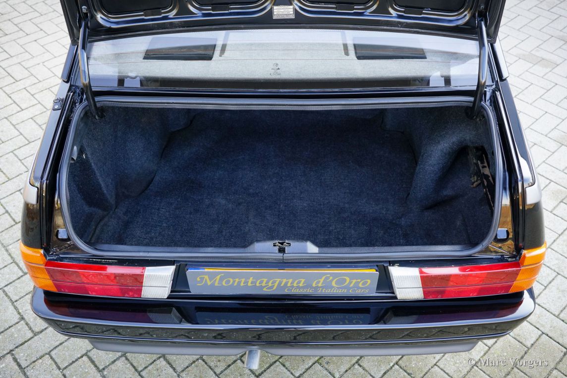 Alfa Romeo 75 1.8 Turbo, jaar 1986 (eerste registratie 1 januari 1986). Chassisnummer ZAR162B1000050918. Exterieur uitgevoerd in zwart (Nero AR 913) gecombineerd met een interieur in zwart, donkergrijs en lichtgrijs. De zo goed als nieuwe stoelen zijn bekleed met geruite stof (zeer lichtgrijs en donkergrijs) met donkergrijze lederen accenten op de zijsteunen van de voorstoelen. Deze schitterende Alfa Romeo 75 Turbo werd nieuw verkocht in Italië. Een zeer bijzondere optie is de af fabriek gemonteerde airconditioning! Enkele jaren geleden werd deze prachtige auto gerestaureerd en gereviseerd door het gerenommeerde Museo Fratelli Cozzi in Legnano, een voorstad van Milaan. Zij hebben de motor en de versnellingsbak gereviseerd en een prachtig nieuw interieur gemonteerd! In 2024 werd de auto geïmporteerd naar Nederland. Recentelijk is de lak geperfectioneerd en voorzien van een Labocosmetica glascoating, en zijn er nieuwe originele Ronal lichtmetalen velgen gemonteerd. Onderhoudsfacturen zijn aanwezig. Om deze zeldzame 75 Turbo verder te perfectioneren, hebben we originele nieuwe achterlichten en een reflectorbalk aangeschaft, die binnenkort gemonteerd zullen worden. Deze fantastische Alfa Romeo 75 1.8 Turbo heeft vanaf nieuw slechts 101.511 kilometer gereden. De auto verkeert in een verbluffende, bijna perfecte staat en rijdt als een nieuwe auto! Het zal moeilijk zijn om een ander exemplaar in deze onberispelijke conditie te vinden! De exacte productiecijfers van de Alfa Romeo 75 1.8 Turbo zijn niet bekend, maar Alfa Romeo moest minstens 5000 auto's bouwen om te voldoen aan de FIA-homologatie voor Groep A-toerwagens. Onder de motorkap bevindt zich de 1800 cc viercilinder-lijnmotor, met een Garrett T3-turbocompressor en intercooler, die 155 pk en 226 Nm koppel levert. De turbo gaf de 75 destijds vlotte prestaties, waaronder een topsnelheid van 210 km/u en een acceleratie van 0-100 km/u in 7,6 seconden (en dat is nog steeds heel rap met de zachte fluit van de Turbo in je oren!). Deze cijfers plaatsten de 75 Turbo stevig in de top van de compacte executive auto's van zijn tijd. Dit is uw kans om een Alfa Romeo 75 1.8 Turbo in bijna perfecte staat te bemachtigen, afkomstig van het gerenommeerde Museo Fratelli Cozzi!