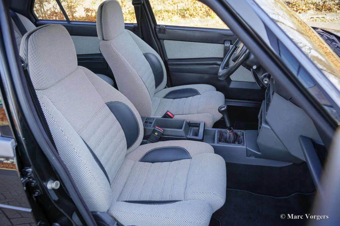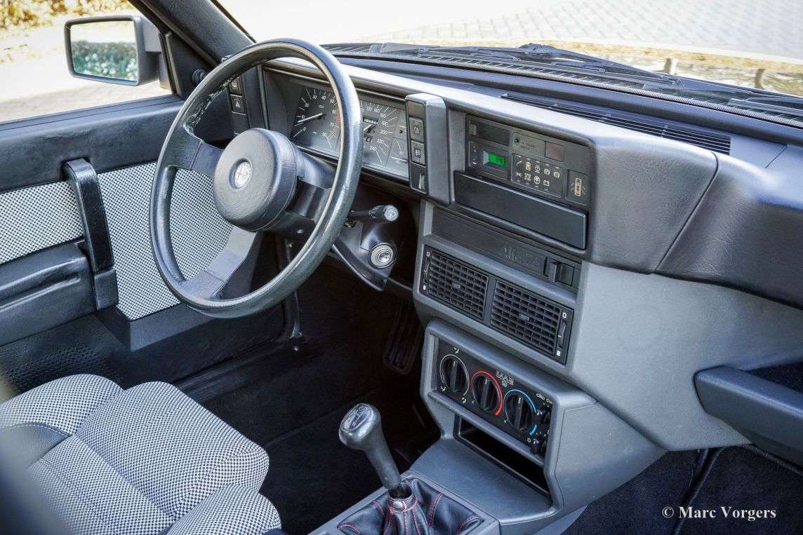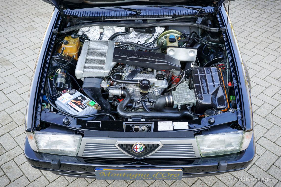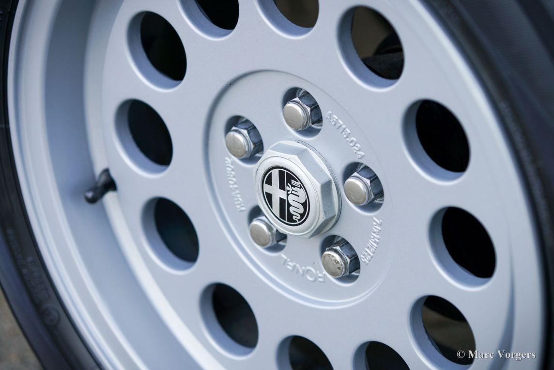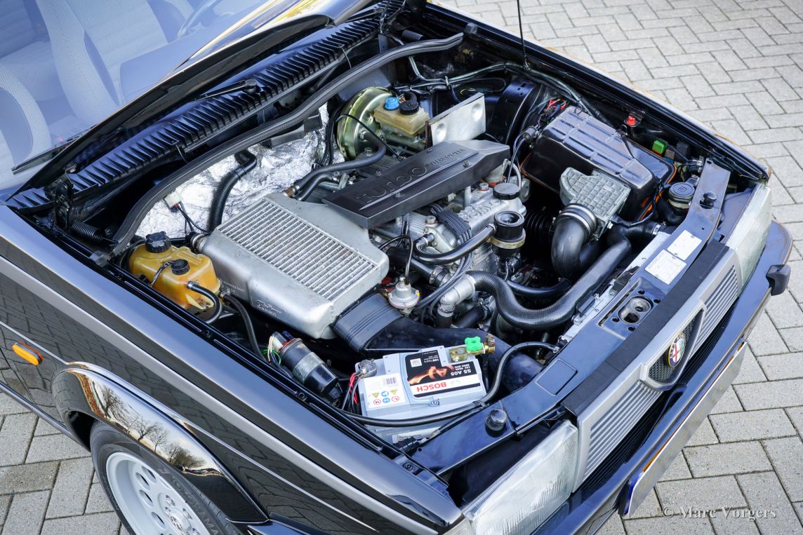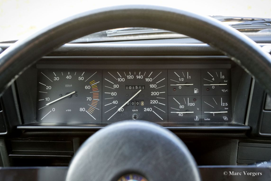 Alfa Romeo 75 1.8 Turbo, jaar 1986 (eerste registratie 1 januari 1986). Chassisnummer ZAR162B1000050918. Exterieur uitgevoerd in zwart (Nero AR 913) gecombineerd met een interieur in zwart, donkergrijs en lichtgrijs. De zo goed als nieuwe stoelen zijn bekleed met geruite stof (zeer lichtgrijs en donkergrijs) met donkergrijze lederen accenten op de zijsteunen van de voorstoelen. Deze schitterende Alfa Romeo 75 Turbo werd nieuw verkocht in Italië. Een zeer bijzondere optie is de af fabriek gemonteerde airconditioning! Enkele jaren geleden werd deze prachtige auto gerestaureerd en gereviseerd door het gerenommeerde Museo Fratelli Cozzi in Legnano, een voorstad van Milaan. Zij hebben de motor en de versnellingsbak gereviseerd en een prachtig nieuw interieur gemonteerd! In 2024 werd de auto geïmporteerd naar Nederland. Recentelijk is de lak geperfectioneerd en voorzien van een Labocosmetica glascoating, en zijn er nieuwe originele Ronal lichtmetalen velgen gemonteerd. Onderhoudsfacturen zijn aanwezig. Om deze zeldzame 75 Turbo verder te perfectioneren, hebben we originele nieuwe achterlichten en een reflectorbalk aangeschaft, die binnenkort gemonteerd zullen worden. Deze fantastische Alfa Romeo 75 1.8 Turbo heeft vanaf nieuw slechts 101.511 kilometer gereden. De auto verkeert in een verbluffende, bijna perfecte staat en rijdt als een nieuwe auto! Het zal moeilijk zijn om een ander exemplaar in deze onberispelijke conditie te vinden! De exacte productiecijfers van de Alfa Romeo 75 1.8 Turbo zijn niet bekend, maar Alfa Romeo moest minstens 5000 auto's bouwen om te voldoen aan de FIA-homologatie voor Groep A-toerwagens. Onder de motorkap bevindt zich de 1800 cc viercilinder-lijnmotor, met een Garrett T3-turbocompressor en intercooler, die 155 pk en 226 Nm koppel levert. De turbo gaf de 75 destijds vlotte prestaties, waaronder een topsnelheid van 210 km/u en een acceleratie van 0-100 km/u in 7,6 seconden (en dat is nog steeds heel rap met de zachte fluit van de Turbo in je oren!). Deze cijfers plaatsten de 75 Turbo stevig in de top van de compacte executive auto's van zijn tijd. Dit is uw kans om een Alfa Romeo 75 1.8 Turbo in bijna perfecte staat te bemachtigen, afkomstig van het gerenommeerde Museo Fratelli Cozzi!