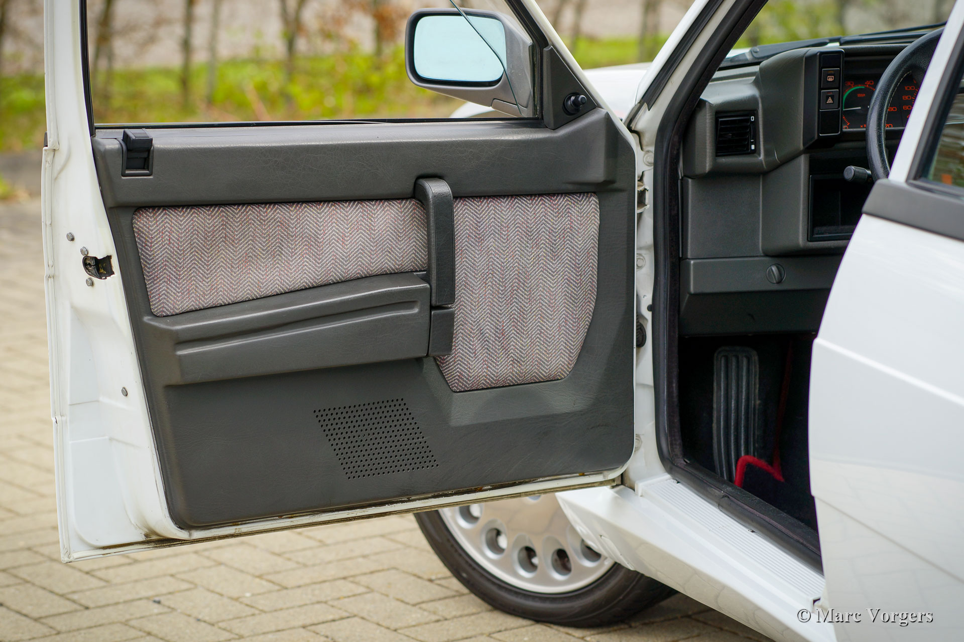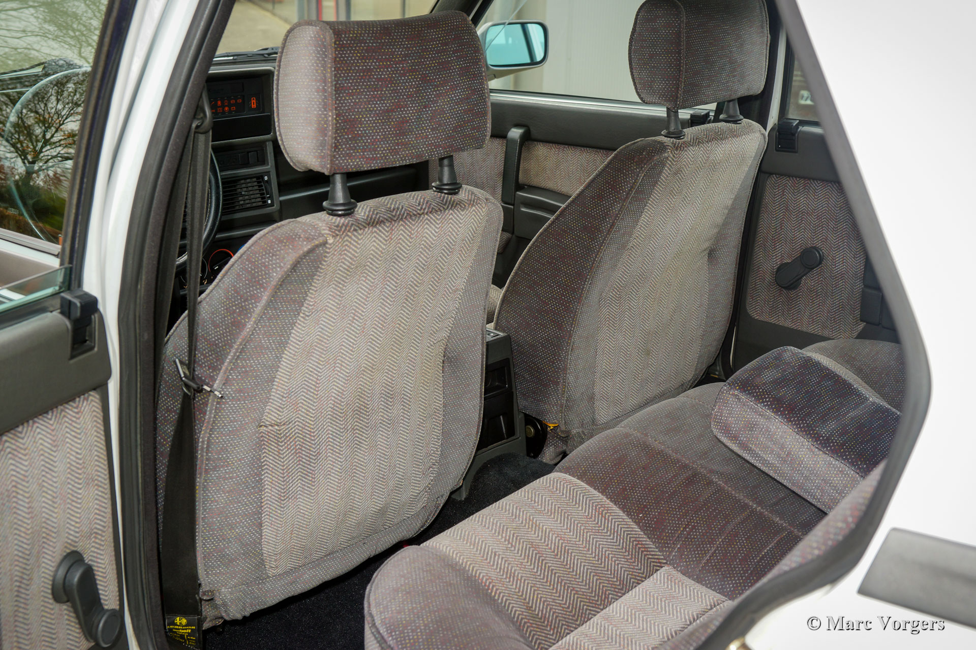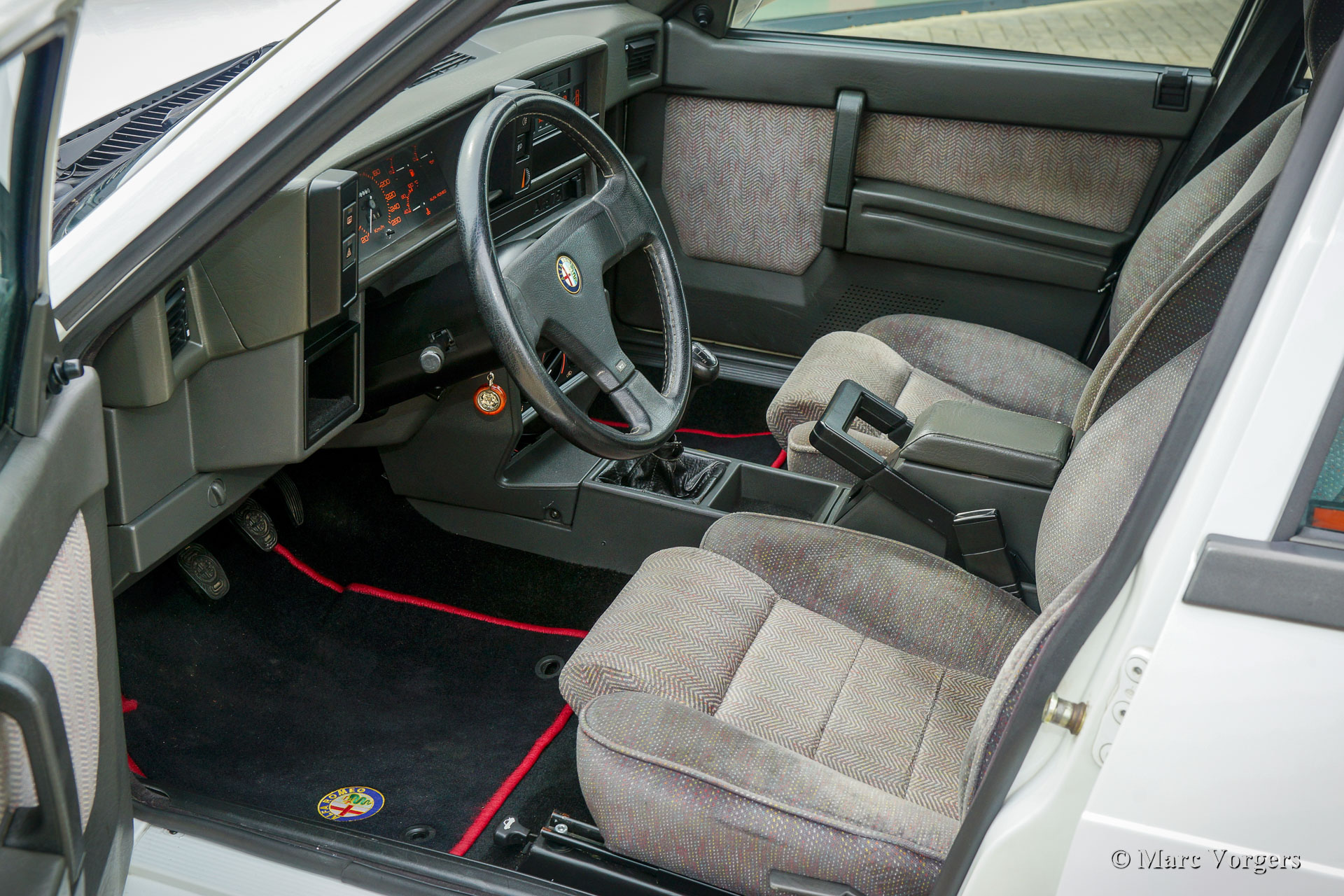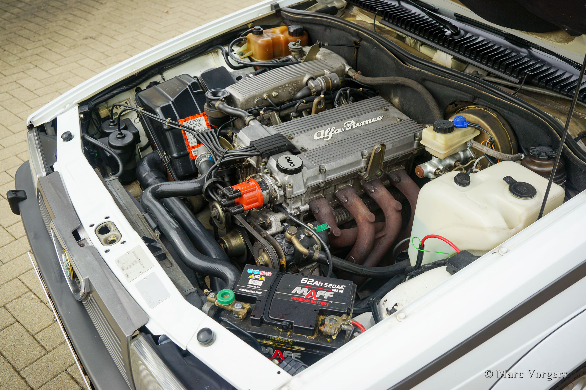 Alfa Romeo 75 2.0 Twin Spark, jaar 1988 (eerste registratie 3-2-1988). Kleur wit (Bianco Freddo Pastello AR024). Deze fantastische Alfa Romeo 75 werd nieuw verkocht in Italië. De Alfa Romeo is nu geregistreerd in Nederland en de auto heeft vanaf nieuw 132.084 kilometer gereden. Deze Alfa Romeo 75 wordt compleet geleverd met historie, servicefacturen en de originele boekjes. De automobiel verkeert in een zeer goede tot excellente originele conditie en de auto rijdt en stuurt perfect! De carrosserie en lak zien er prachtig uit, het interieur vertoont slechts lichte gebruikssporen. De auto rijdt nog beter dan een standaard Alfa 75 2.0 twin Spark, de ophanging werd opgewaardeerd met Koni schokdempers en een Bilstein stabilisatorstang. Net als zijn voorganger, de Alfetta, beschikt de Alfa Romeo 75 over een "transaxle" -versnellingsbak die vlak voor de achterwielophanging is gemonteerd, waardoor een gewichtsverdeling van bijna 50-50 ontstaat. Deze prachtige Alfa 75 is voorzien van heel erg fraaie 16 inch Alfa Romeo Speedline wielen!