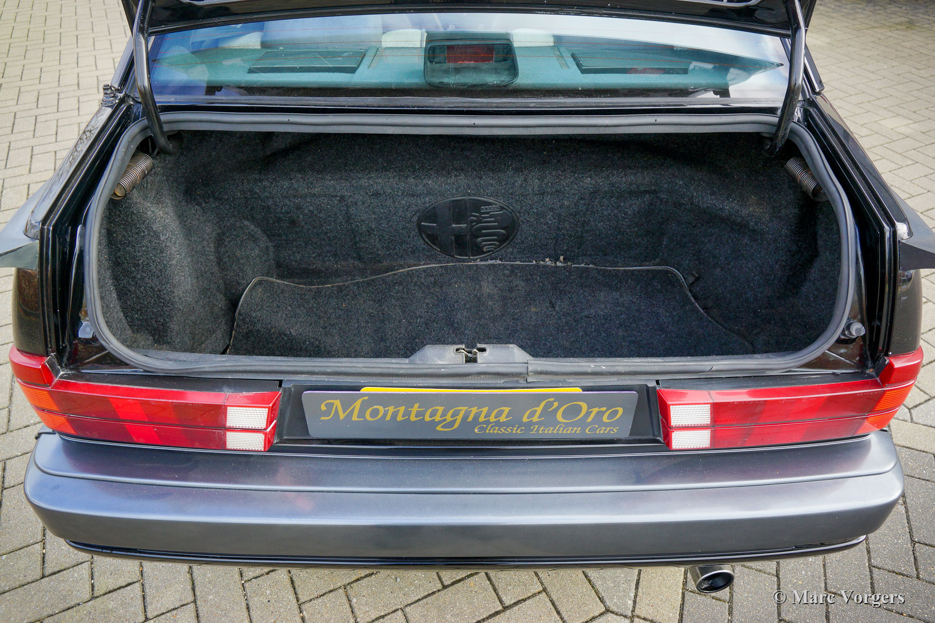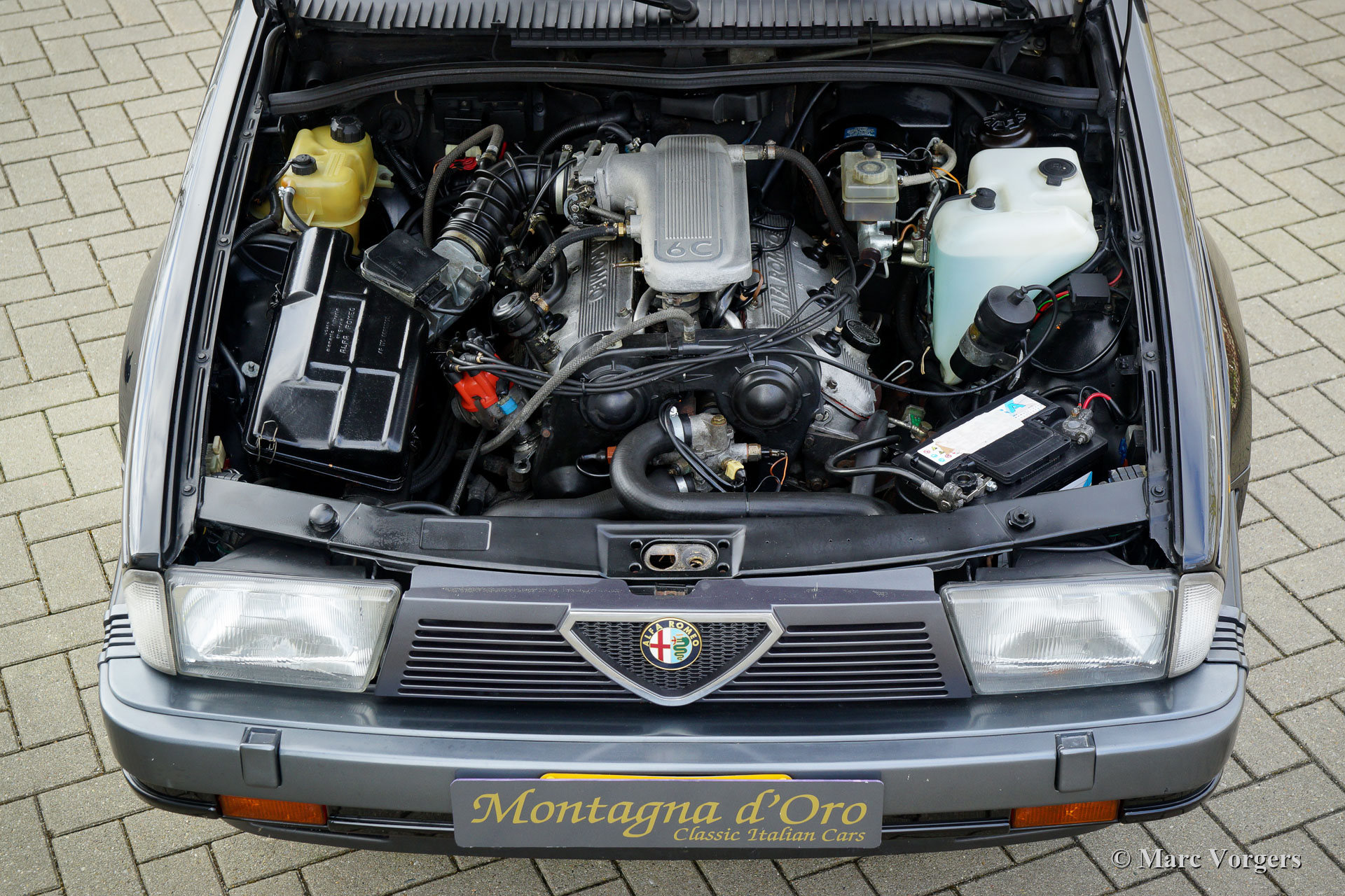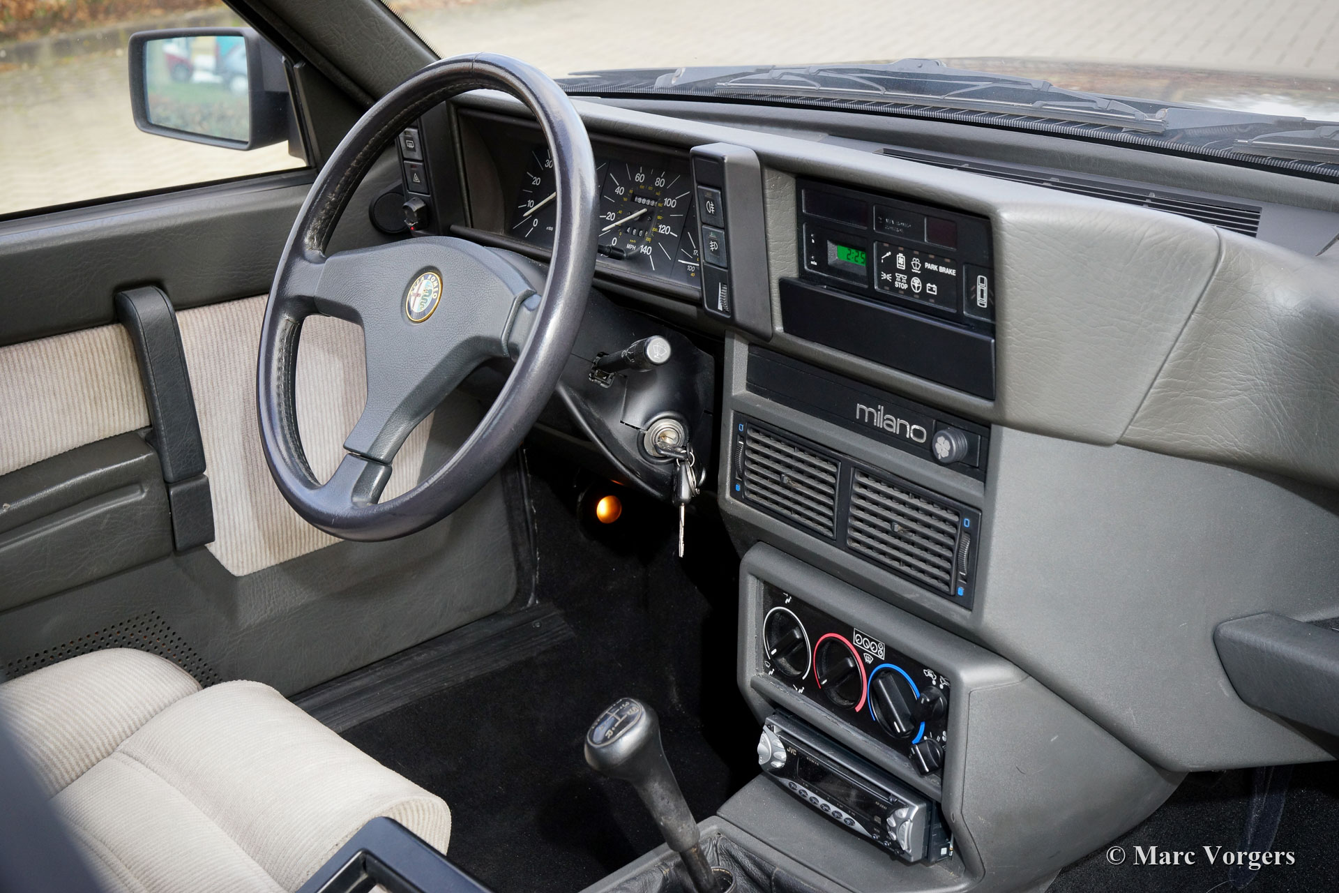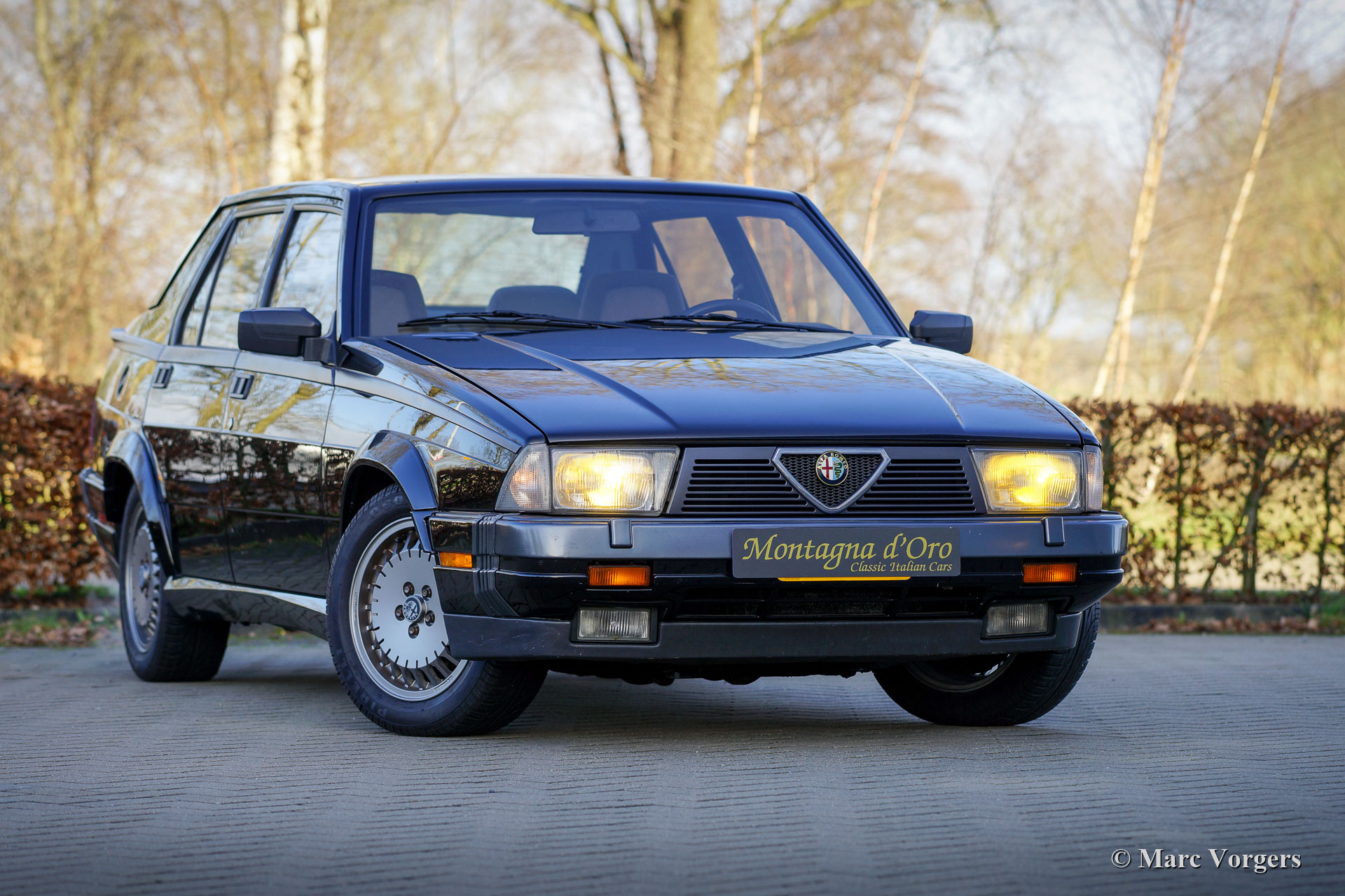 Alfa Romeo 75 2.5 V6 Milano, bouwjaar 1986. Kleur zwart (Nero 601 Doppio Strato) gecombineerd met een grijs/zwart stoffen interieur. De Alfa Romeo 75 Milano werd alleen op de Amerikaanse markt verkocht. De Milano onderscheidt zich van Europese modellen door de speciale bumpers en de standaarduitrusting van luxe opties zoals elektrisch bedienbare ramen rondom en airconditioning. De Milano was van 1986 tot 1989 op de Amerikaanse markt verkrijgbaar. De Milano was leverbaar met een 2,5 of een 3,0 liter V6-motor. Dit fantastische exemplaar werd verkocht door D. Spernak 'Fuzzy' van Auto Palace in Pittsburgh (Pennsylvania) en geregistreerd in de USA op 18 september 1986. De auto werd in 1989 naar Nederland geëxporteerd. In Nederland werd deze Alfa Romeo gekoesterd door echte liefhebbers, en de auto heeft vanaf nieuw 130.333 mijl gereden. Deze Alfa 75 Milano verkeert in een zeer goede en super originele staat met slechts lichte gebruikssporen. Deze Alfa 75 Milano toont alle originele details en de auto rijdt uitstekend. De 2,5 liter V6-motor is een waar genot, en het motorgeluid is indrukwekkend! Deze fantastische Alfa Romeo 75 Milano wordt compleet geleverd met alle originele boekjes, inclusief een ingevuld en afgestempeld onderhoudsboekje. Dit is een prachtig en super origineel exemplaar voor de Alfa Romeo liefhebber!
