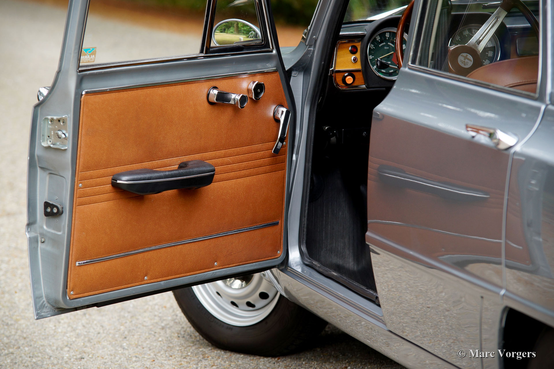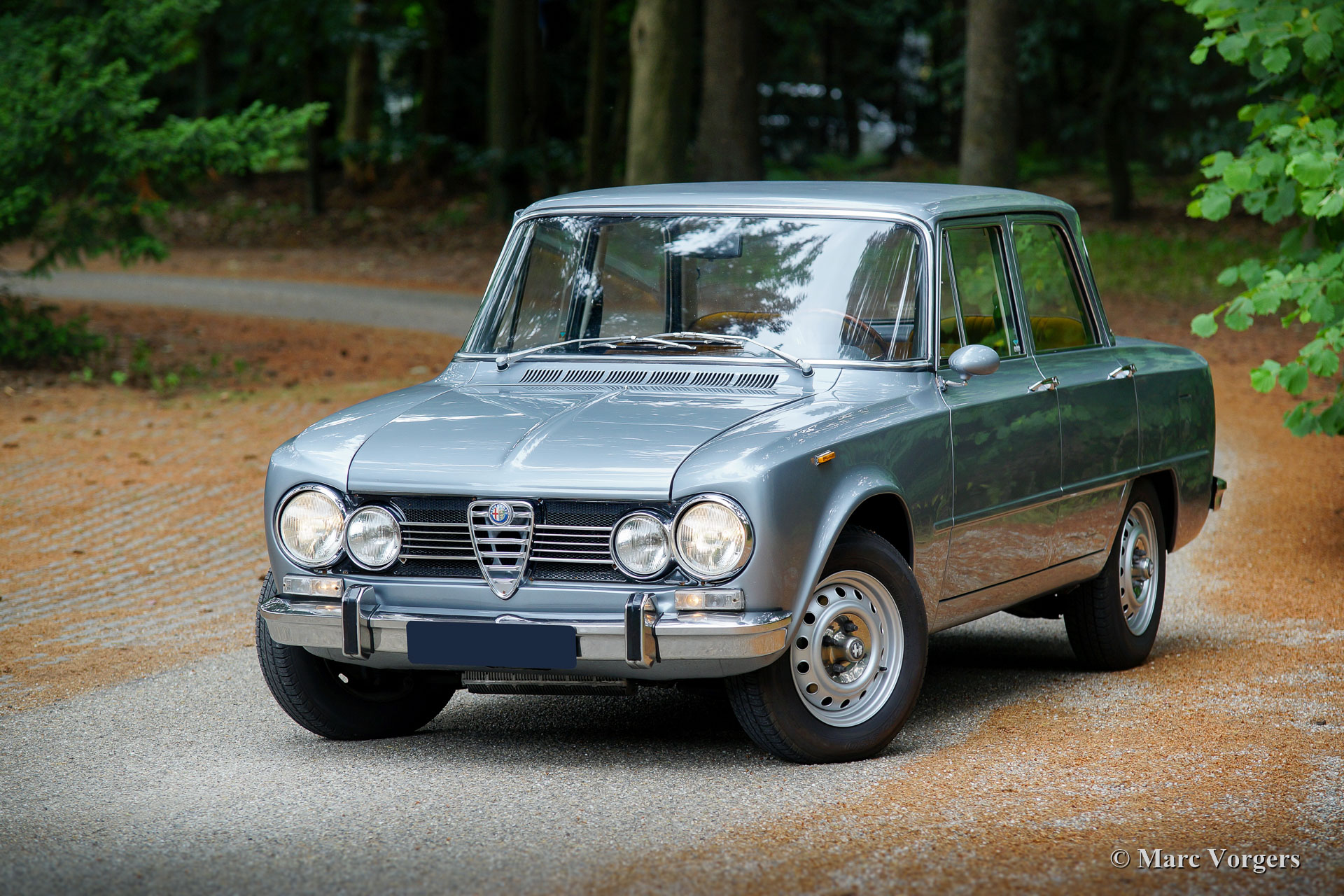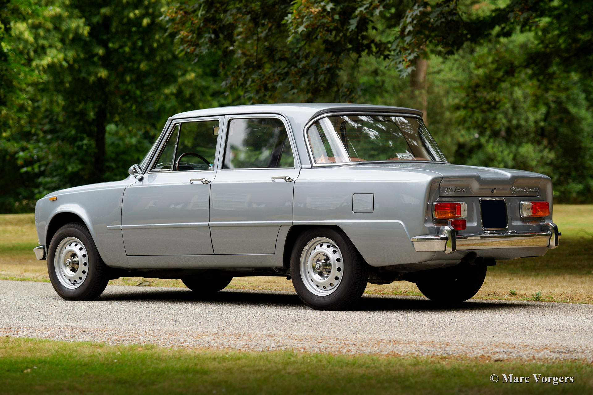 Alfa Romeo Giulia 1300 Super, jaar 1972. Kleur grijs metallic met een cognac kunstleren/ stoffen interieur. Deze fantastische Alfa Romeo Giulia Super werd nieuw verkocht in Italië, waar de auto slechts één eigenaar heeft gekend. In 1997 werd de auto in Nederland geïmporteerd, waar deze 21 jaar lang werd gekoesterd door één eigenaar. Deze Alfa Romeo verkeert in excellente staat en de auto rijdt perfect. Direct na aankomst in Nederland werd de auto gerestaureerd. In 2002 werd de motor gereviseerd. In 2015 werd de auto volledig nieuw gespoten. Foto's van de restauratie in 1997/1998 zijn aanwezig evenals alle facturen die een prachtig inzicht geven in de onderhoudsgeschiedenis. Ook zijn er taxatierapporten aanwezig en een artikel over deze auto in een Engels klassieker magazine.