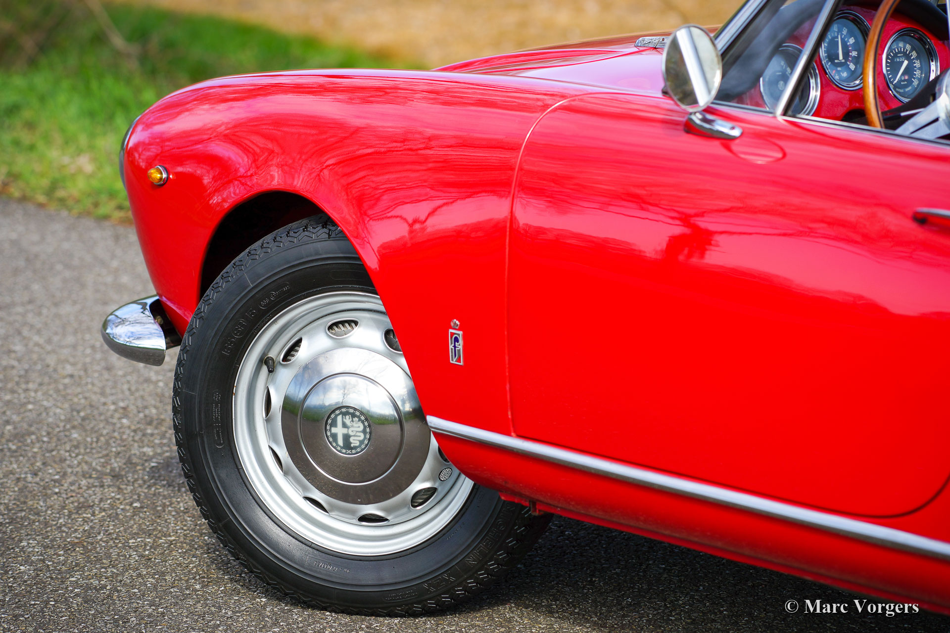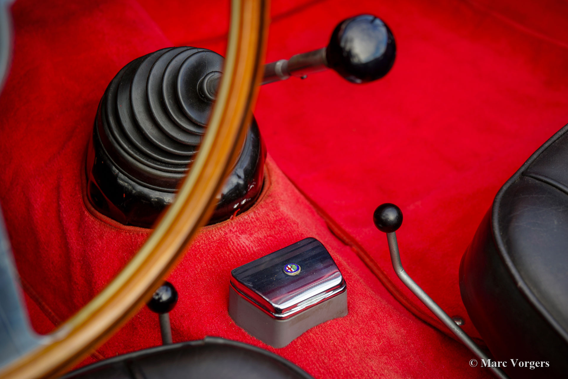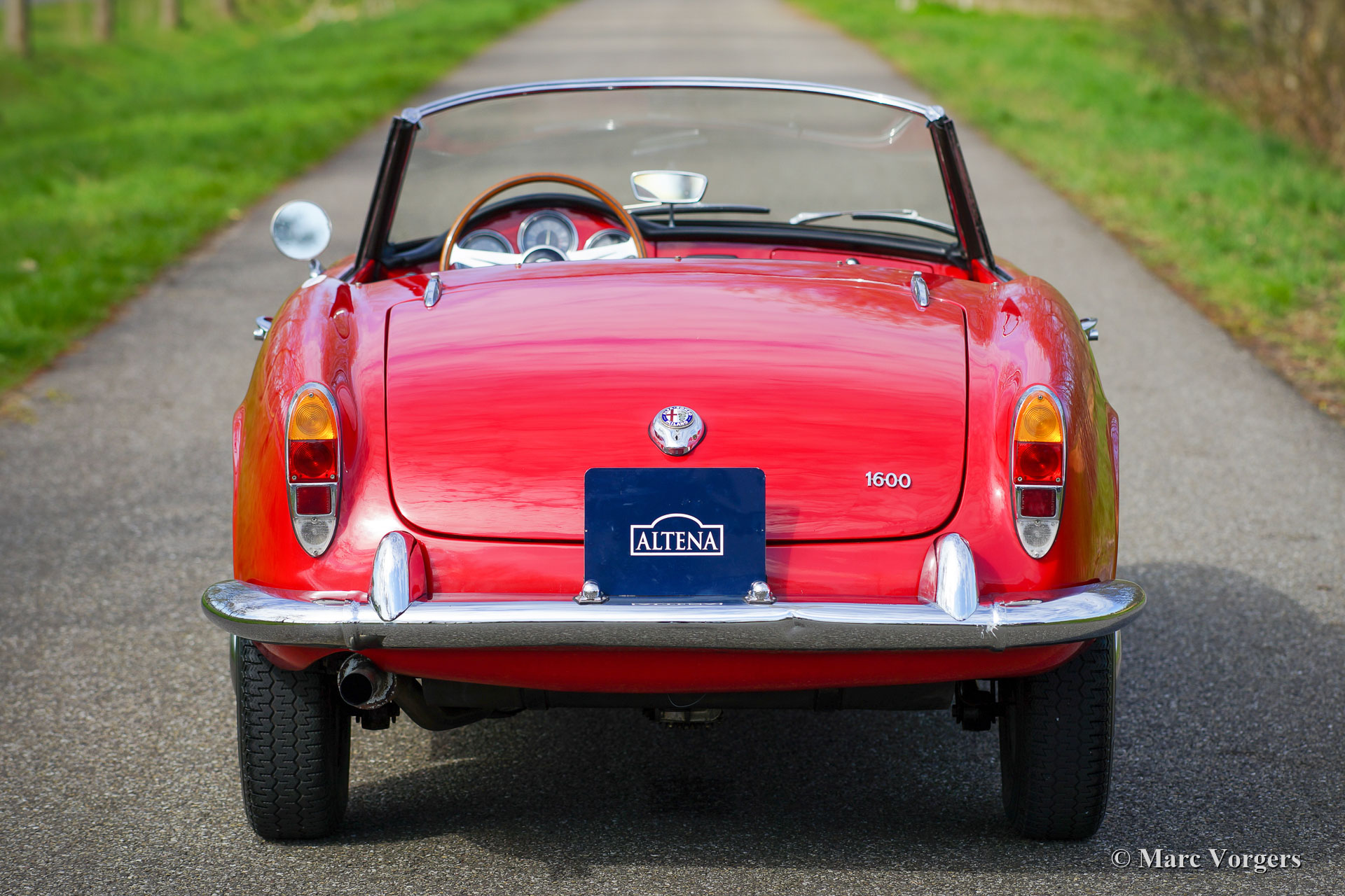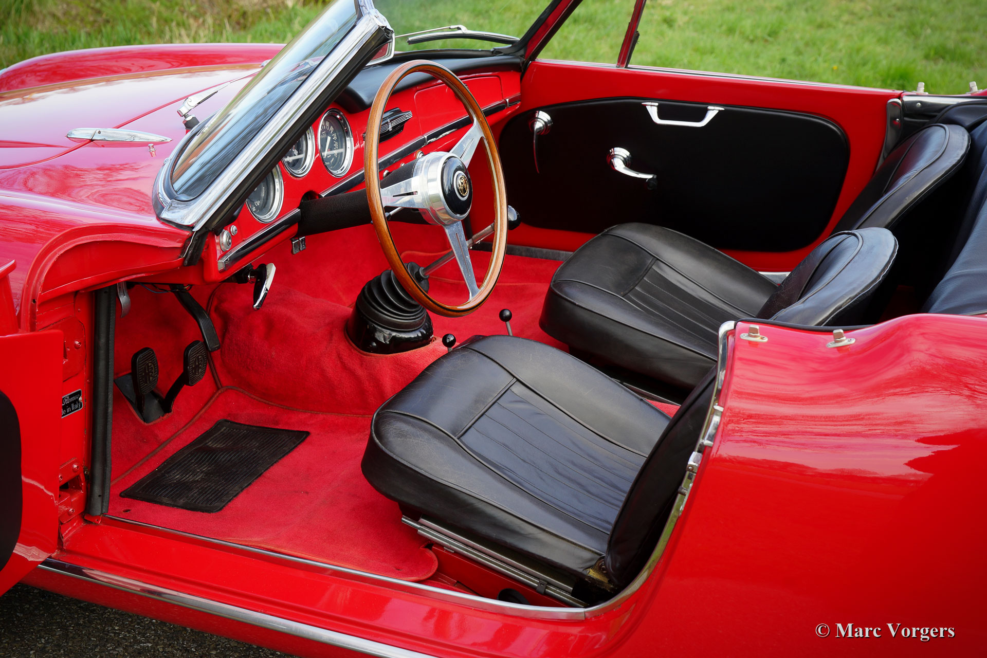 Alfa Romeo Giulia 1600 Spider, jaar 1963. Kleur rood gecombineerd met een zwartlederen interieur en rood tapijt. Zwarte mohair soft-top. Deze prachtige door PininFarina ontworpen Alfa Romeo Giulia 1600 Spider werd nieuw verkocht in Florida en heeft achtereenvolgens enkele decennia in Colorado doorgebracht. In 2000 werd de auto naar Europa geëxporteerd. Een vorige eigenaar was Patrick Ayoub die ontwerper was voor BMW en Volkswagen. Deze prachtige Giulia Spider is in het verleden uitvoerig gerestaureerd in de VS. De Alfa verkeert in goede conditie toont alle originele details. De carrosserie en lak vertonen enige sporen van gebruik en ouderdom, de onderzijde is geheel in carrosseriekleur uitgevoerd. Het interieur is in zeer goede en prachtige conditie, evenals de schone en mooi gedetailleerde motorruimte. De auto wordt geleverd met een goed historisch dossier en onderhoudsfacturen. Deze prachtige Alfa Romeo Giulia Spider is het meest gezochte model met de krachtige 1600 cc viercilindermotor met dubbele bovenliggende nokkenassen. De compacte carrosserie en het lichte onderstel in combinatie met de 1600 cc motor en de handgeschakelde 5-versnellingsbak vormen een sportief totaalpakket voor de geïnspireerde rijder!