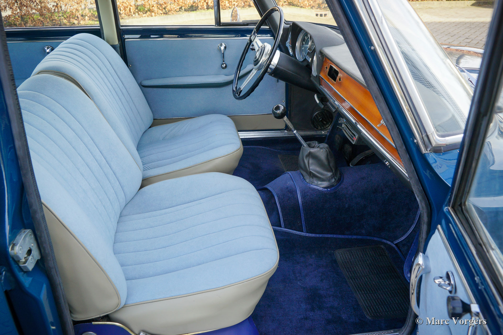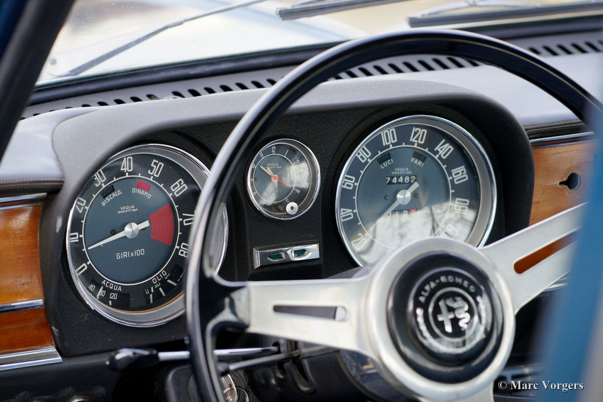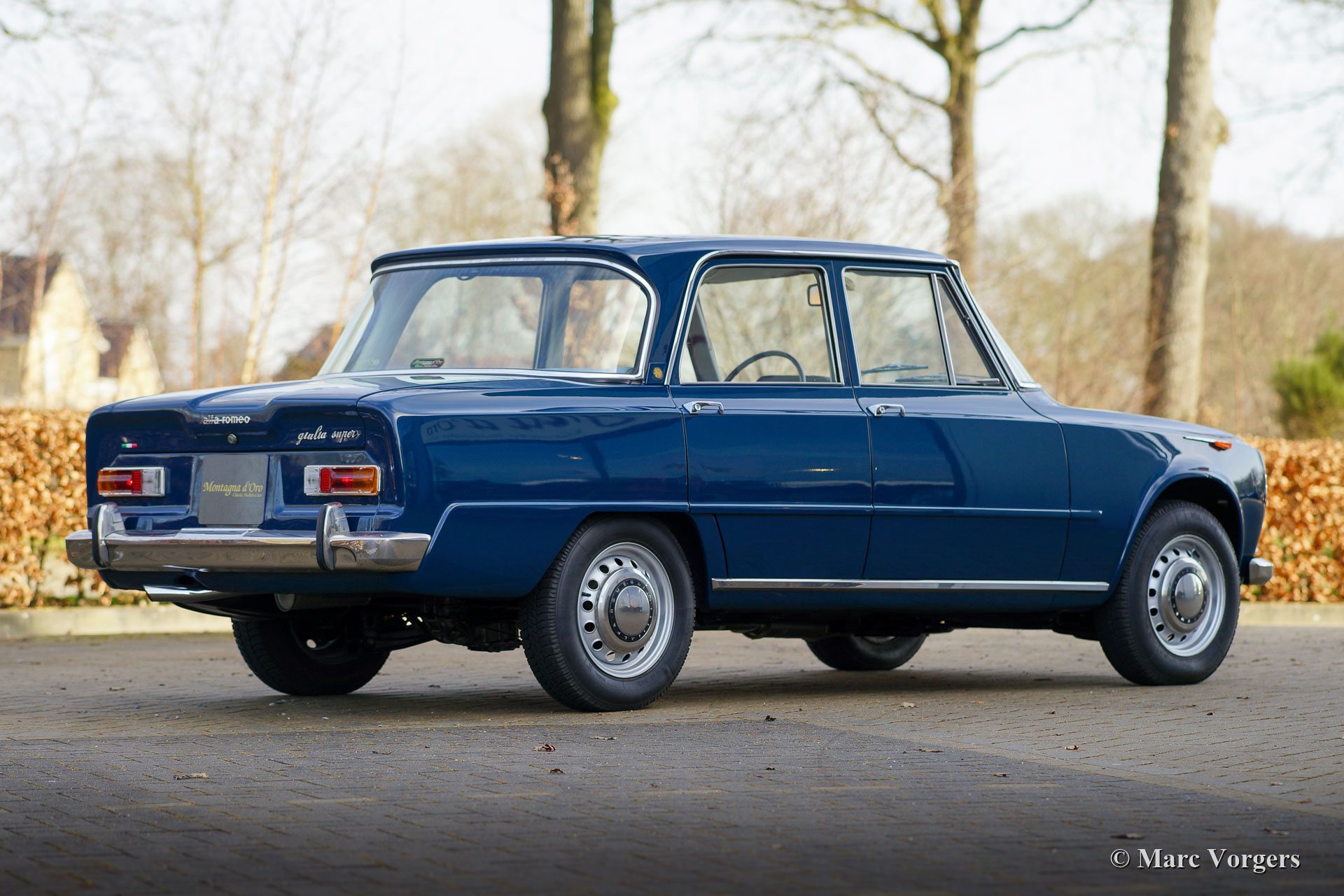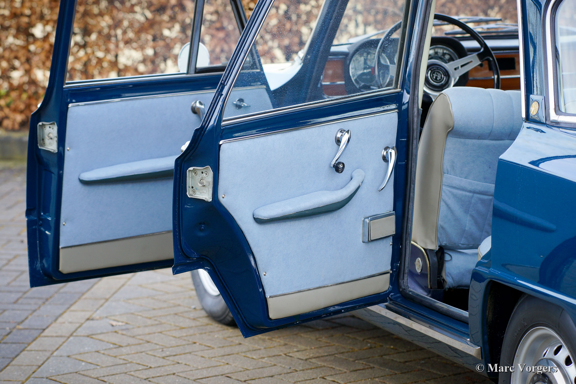 Alfa Romeo Giulia 1600 Super ‘Bollino Oro’, jaar 1966. Kleur blauw (Bluetta AR327). Interieur met lichtblauwe stof/ lichtgrijze vinyl stoelen en deurpanelen gecombineerd met donkerblauw tapijt. Deze prachtige Alfa Romeo Giulia Super ‘Bollino Oro’ werd nieuw verkocht in Italië, de eerste eigenaar was de heer Giorgio Villefranca. De Giulia 1600 Super met het 'Bollino Oro'-uitrustingspakket is het meest gewilde Giulia sedan-model. De auto is voorzien van een roestvrijstalen grille, roestvrijstalen dorpelafwerking en het 'Bollino Oro'-embleem op de' C-stijl '. Deze prachtige Giulia 1600 Super verkeert in een nooit gerestaureerde, zeer originele en excellente conditie, de auto toont alle originele details. Er ontbreekt enkel een stuk bekleding in de kofferbak. Het originele interieur vertoont minimale gebruikssporen wat na 55 jaar zeer bijzonder is! De lichtblauwe stoffen stoelbekleding en deurpanelen zien er bijna als nieuw uit. De carrosserie vertoont een prachtige passing van de plaatdelen en het lakwerk is uitstekend. De onderzijde en de motorruimte zijn schoon en mooi gedetailleerd. De auto is onlangs geïmporteerd uit Italië, de auto is nog voorzien van een Italiaans kenteken. De kilometerteller geeft slechts 74.482 kilometer aan, wat als origineel wordt beschouwd gezien de superieure originaliteit van de auto en de zeer lichte gebruikssporen in het interieur. Onlangs is de auto mechanisch uitgebreid gereviseerd, de gereviseerde motor moet nog ingereden worden! Verder is het onderstel volledig onder handen genomen met nieuwe schokbrekers, veren en andere onderdelen om het rijgedrag en de wegligging te optimaliseren. Ook is de benzinetank vernieuwd. Dit is een zeer gezochte Alfa Romeo Giulia 1600 Super ‘Bollino Oro’ in excellente conditie, een auto voor de echte Alfa Romeo liefhebber en / of verzamelaar.