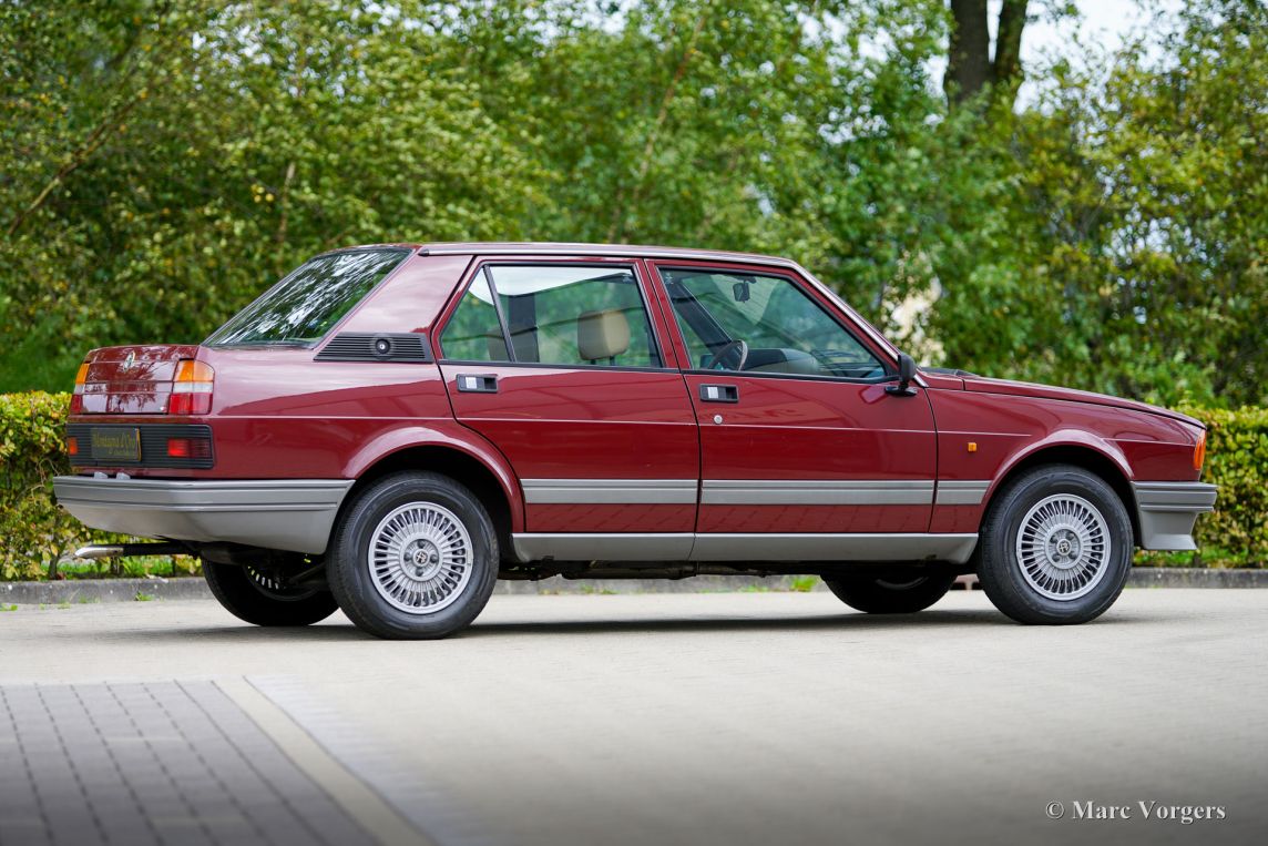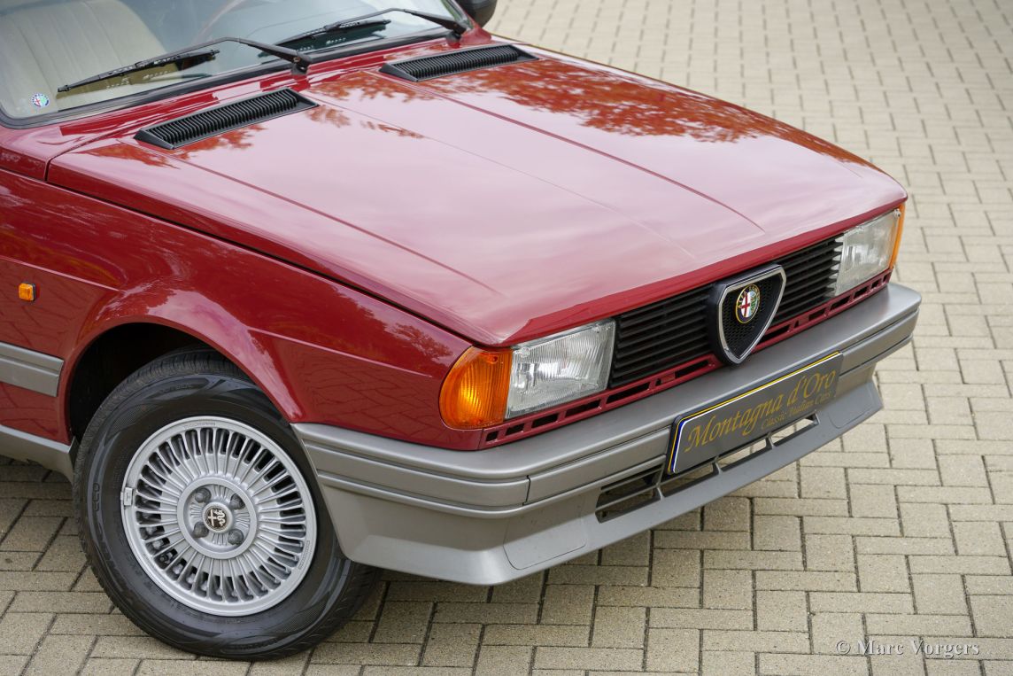 Alfa Romeo Giulietta 1600, jaar 1984. Eerste registratie 24 juli 1984. Chassisnummer ZAR11650000184154, motornummer AR*01600-398700*. Kleur donkerrood (Rosso Veneziano, AR kleurcode AR 537), gecombineerd met een beige stoffen interieur afgewerkt met lichtbruin tapijt. Deze prachtige Alfa Romeo ‘Nuova’ Giulietta is nieuw verkocht in Nederland waar de auto vanaf dag één slechts drie zorgzame eigenaren heeft gekend. Vanaf nieuw heeft de auto 151.142 gereden en de auto is zeer goed onderhouden. Deze Giulietta 1600 verkeert in een zeer goede tot excellente originele conditie! De carrosserie is gaaf, het lakwerk is zeer goed en het interieur vertoont slechts minimale sporen van gebruik. Deze Giulietta is een echte tijdcapsule! De Alfa Romeo ‘Nuova’ Giulietta werd in 1977 geïntroduceerd als opvolger van de Giulia, die toen vijftien jaar in productie was. Technisch gezien was de Giulietta gebaseerd op de iets grotere Alfetta. De Giulietta is een sportieve sedan, zeer begeerd door sportieve en stijlvolle autoliefhebbers uit die tijd. Met een motor met dubbele bovenliggende nokkenassen, schijfremmen rondom, een “transaxle” versnellingsbak met 5 versnellingen die vlak voor de achterwielophanging is geïnstalleerd, een gewichtsverdeling van bijna 50-50%, en de de-Dion-achteras heeft de Giulietta alle kenmerken van een echte sportwagen. Dit exemplaar is een geweldige vondst voor de Alfa Romeo verzamelaar en liefhebber, de auto toont alle originele details en rijdt perfect.