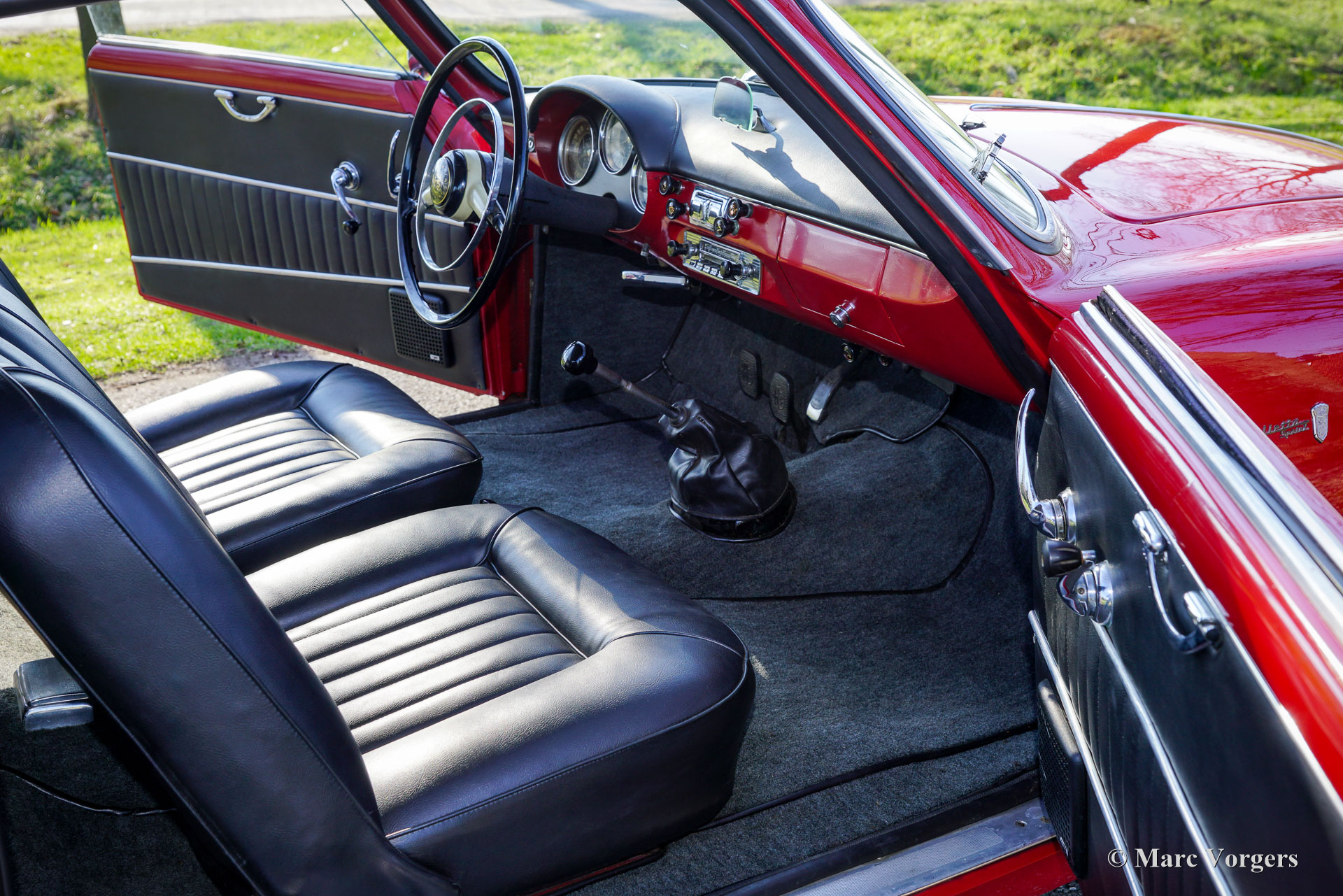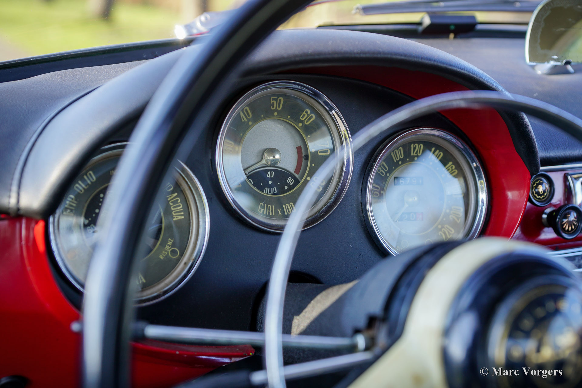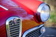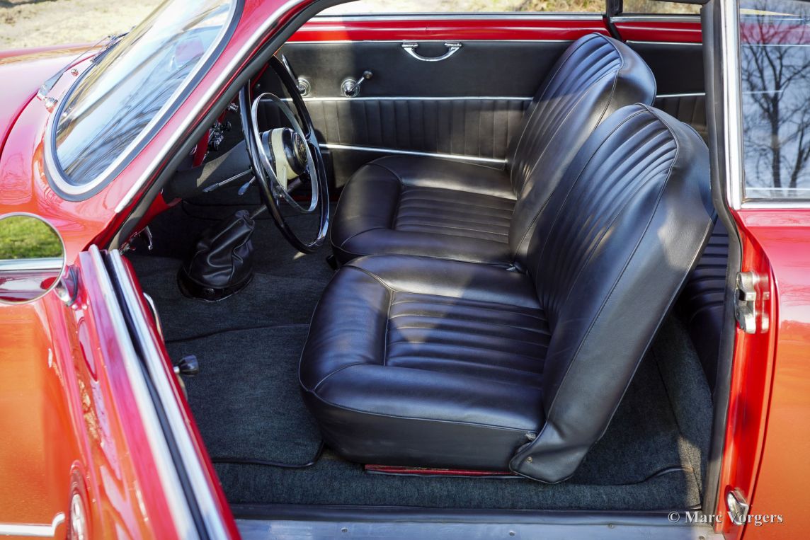 Alfa Romeo Giulietta Sprint, jaar 1960. Rode exterieurkleur gecombineerd met een zwart kunstleren interieur en donkergrijs tapijt. Deze prachtige Alfa Romeo Giulietta Sprint werd nieuw verkocht in Italië, het originele Italiaanse registratiecertificaat is nog bij de auto. Deze fantastische Alfa Romeo verkeert in een prachtige en super originele staat! De auto is nooit gerestaureerd, alleen zeer goed onderhouden en geliefd door de vorige eigenaren. De auto is in het verleden perfect opnieuw gespoten in de originele rode kleur en het interieur is in het verleden voorzien van nieuwe bekleding. De carrosseriepanelen tonen een perfecte pasvorm en prachtige strakke lijnen. Het chroom en de roestvrijstalen carrosserie details zijn in een zeer goede staat. Het geweldige klassieke interieur toont alle originele details. Het is een genot om in de auto te rijden en te kijken naar het fantastische stuurwiel, de prachtige meters en de klassieke Blaupunkt Köln radio. De viercilinder 1300 cc ‘twin-cam’ motor draait gretig en de 4-versnellingsbak schakelt soepel en precies. De rijervaring en indrukken zijn fantastisch; U hoort en voelt de jaren 50 en 60 ‘vibe’ rijdend en genietend in deze prachtige tijdcapsule! De auto toont alle originele details, is voorzien van 155/15 Pirelli banden en wordt geleverd met de originele krik. Deze Alfa Romeo Giulietta is een prachtig exemplaar in zeer goede tot uitstekende originele staat; Een geweldige vondst voor de Alfa Romeo verzamelaar/liefhebber!