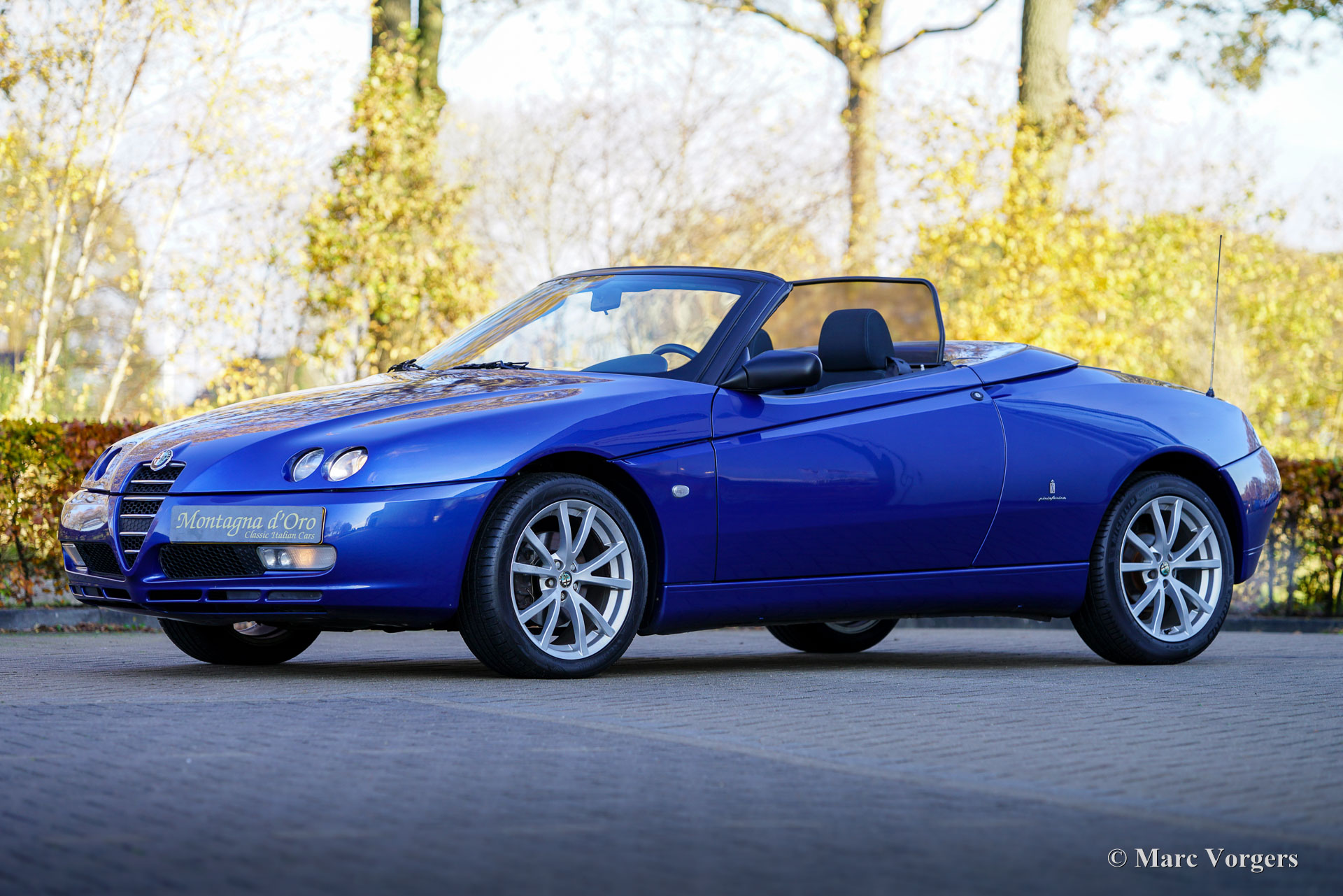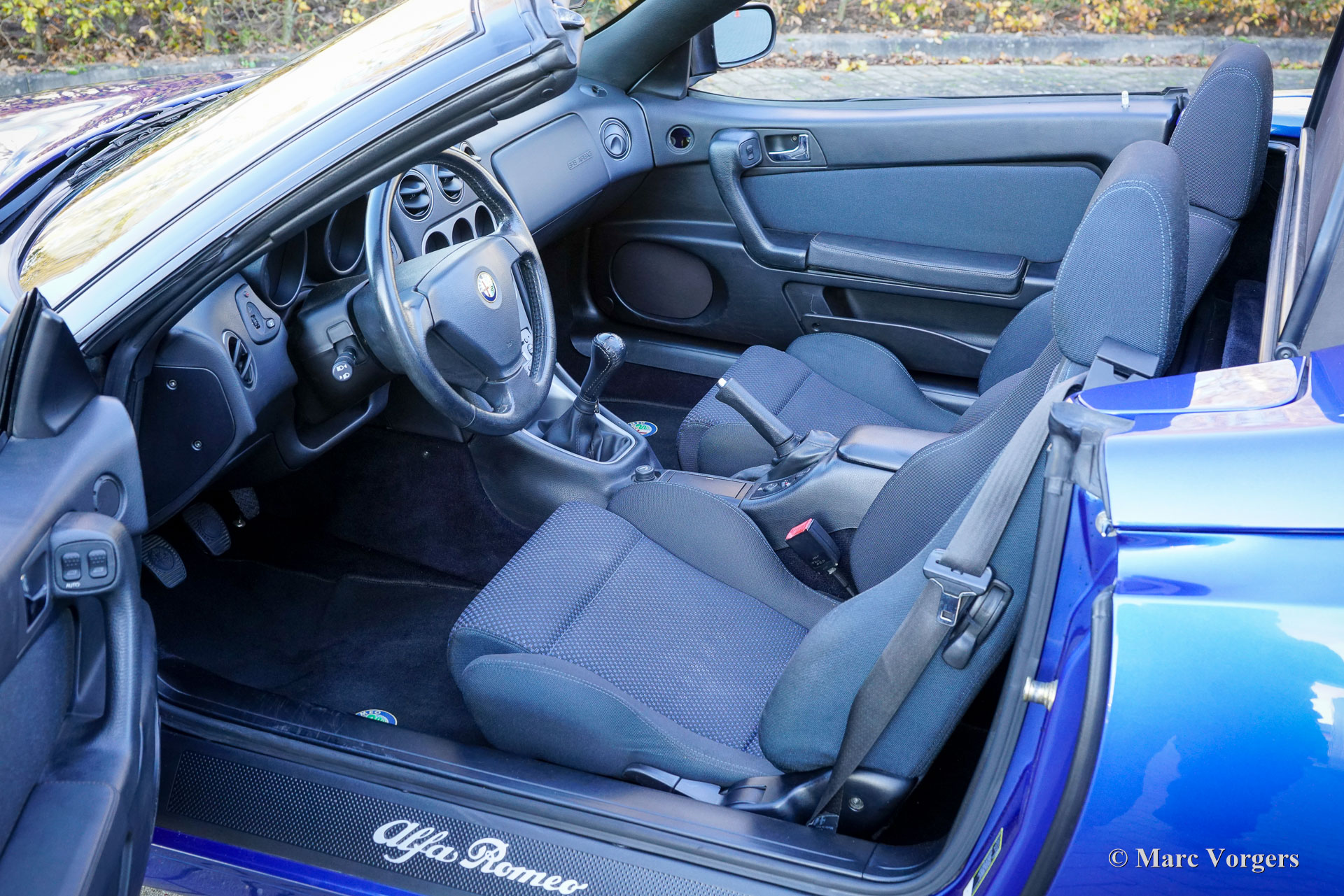 Alfa Romeo Spider 2.0 JTS, jaar 2005. Kleur blauw metallic (Blu Reims, Alfa Romeo code 254/A) gecombineerd met een antraciet met blauw stoffen interieur. Deze prachtige Alfa Spider werd nieuw verkocht in Italië. In november 2006 is de auto door de eerste Nederlandse eigenaar in Nederland geïmporteerd. In 2015 heeft de auto een nieuwe eigenaar gevonden die de auto tot op de dag van vandaag heeft gekoesterd. In 2018 zijn bij 64.789 kilometer de distributieriem en waterpomp vernieuwd. In 2023 heeft de auto bij 79.996 kilometer een volledige onderhoudsbeurt gehad waarbij de distributieriem ook weer is vernieuwd. Momenteel staat de kilometerteller op 85.758 kilometer. Deze prachtige alfa Romeo Spider verkeert in een zeer goede tot excellente originele staat en de auto rijdt perfect. De carrosserie is puntgaaf, het interieur vertoont zeer lichte sporen van gebruik en de stoffen kap is nog origineel en in behoorlijk goede staat.