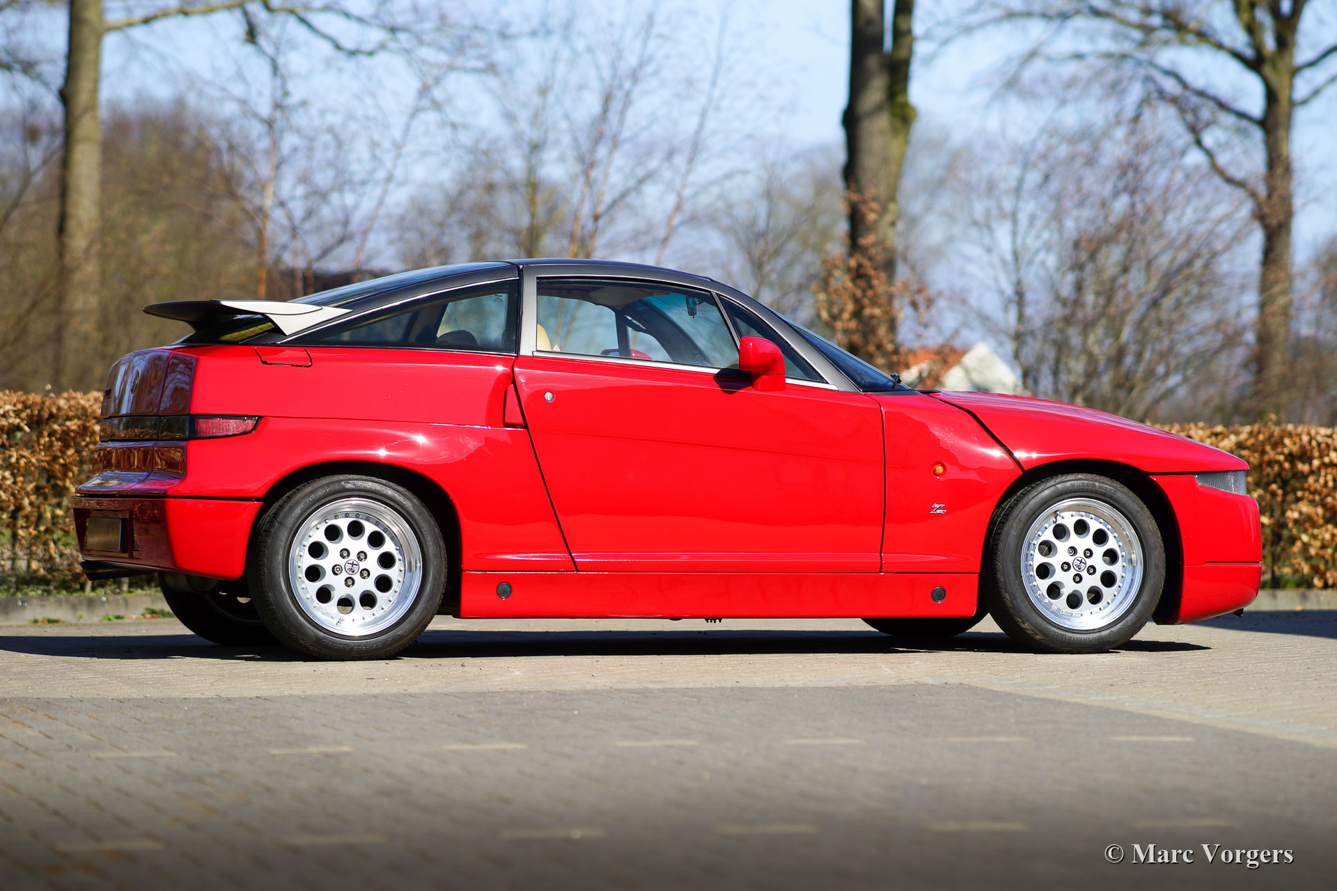 Alfa Romeo SZ Zagato, jaar 1991. Kleur rood (Rosso Alfa 130) gecombineerd met een beige lederen interieur en bijpassend beige tapijt. Deze prachtige Alfa Romeo SZ werd nieuw verkocht in Italië. Van 1989 tot 1993 zijn er van deze “limited-edition” slechts 1036 exemplaren gebouwd. De auto is in 2001 in Nederland geïmporteerd met slechts 10.000 kilometer op de teller. De Nederlandse eigenaar heeft de afgelopen 20 jaar enorm genoten van de auto, nu staat de teller op 53.000 kilometer. De SZ is zeer goed onderhouden en wordt geleverd met een map gevuld met onderhoudsfacturen. In 2014 is de distributieriem vernieuwd. Deze Alfa Romeo SZ verkeert in een zeer goede conditie. Het interieur is als nieuw, gebruikssporen zijn terug te vinden op het frontpaneel onder de voorbumper (steenslag) en op de SZ-aanduiding op de achterzijde (enig verfverlies). Deze Alfa Romeo SZ is een plaatje, deze SZ toont alle originele details en de auto rijdt perfect. Het motorgeluid en het uitlaatgeluid zijn prachtig en verslavend! De auto is voorzien van een Sony geluidssysteem, JBL Grand Touring Amplifier, JBL speakers en een JBL subwoofer. Dit is een iconisch Alfa Romeo-model met de bijnaam "Il Mostro", het Monster!