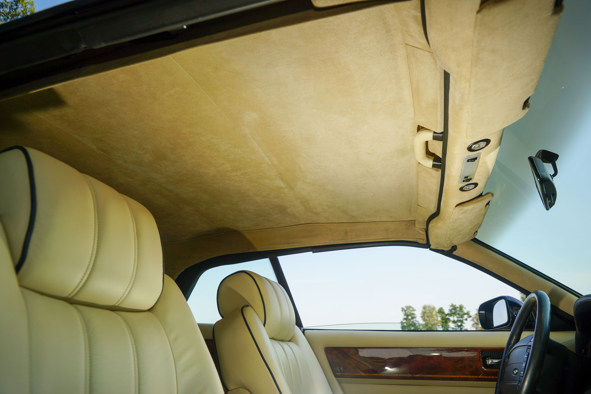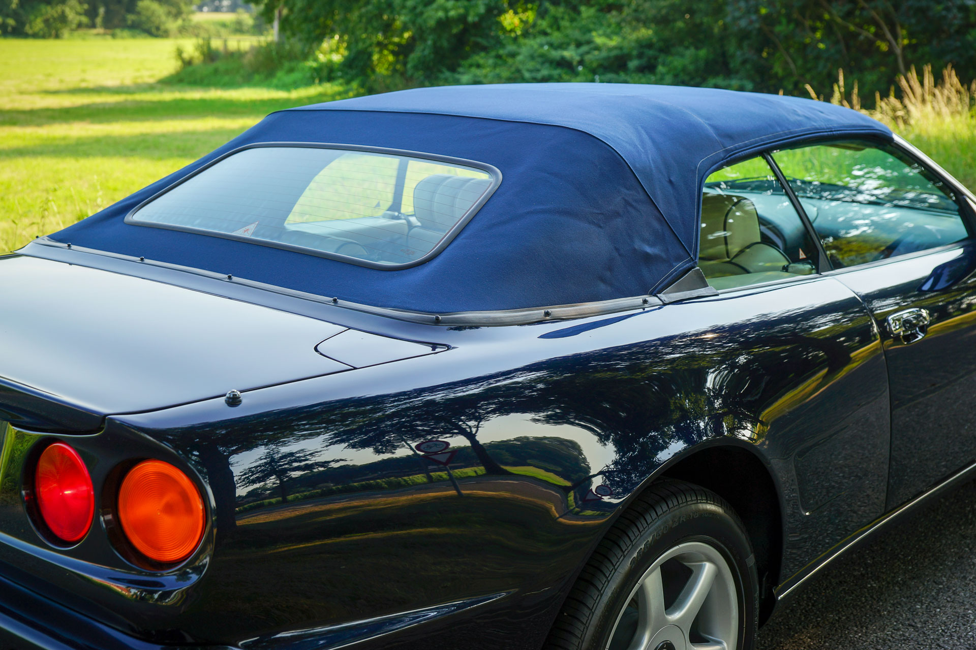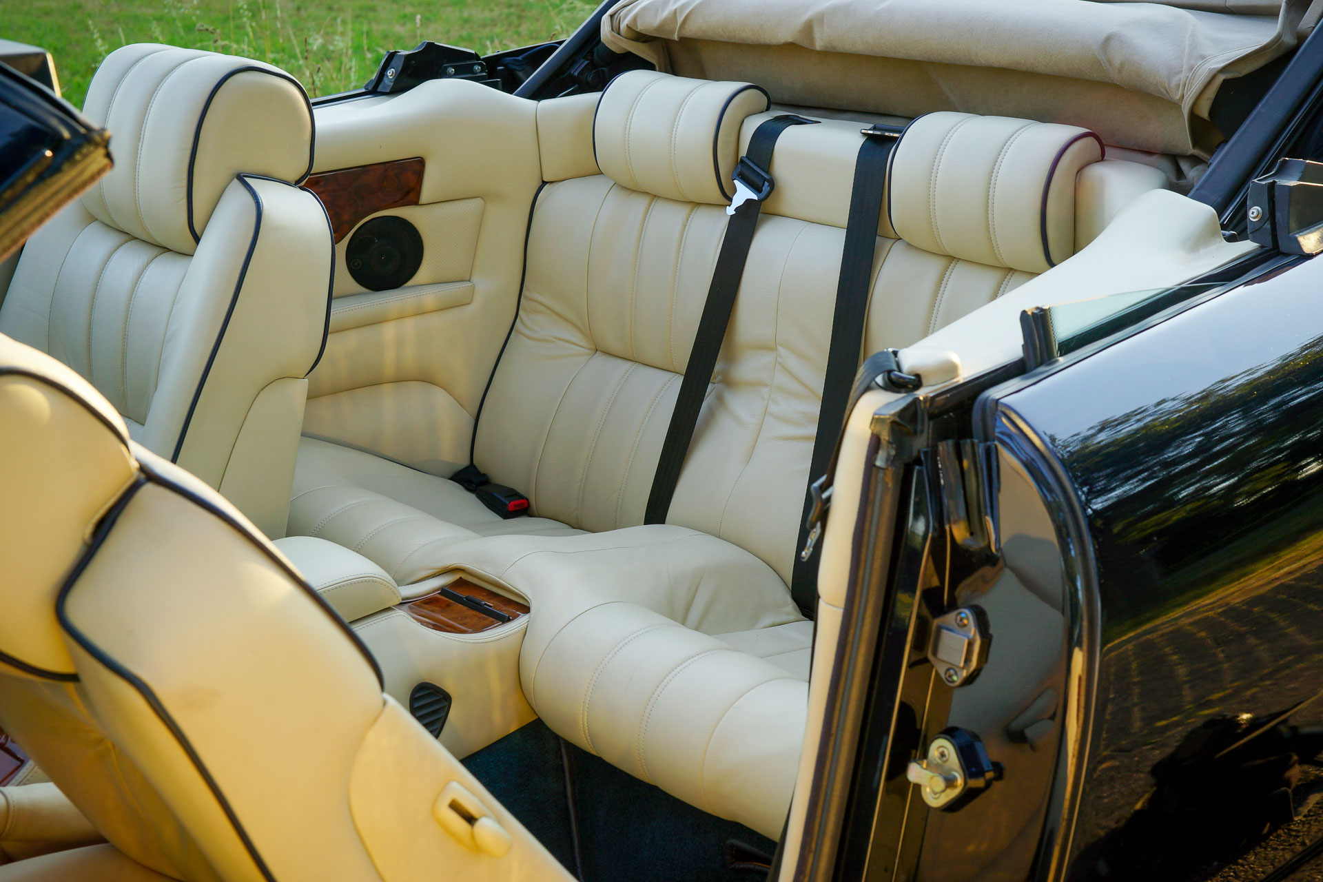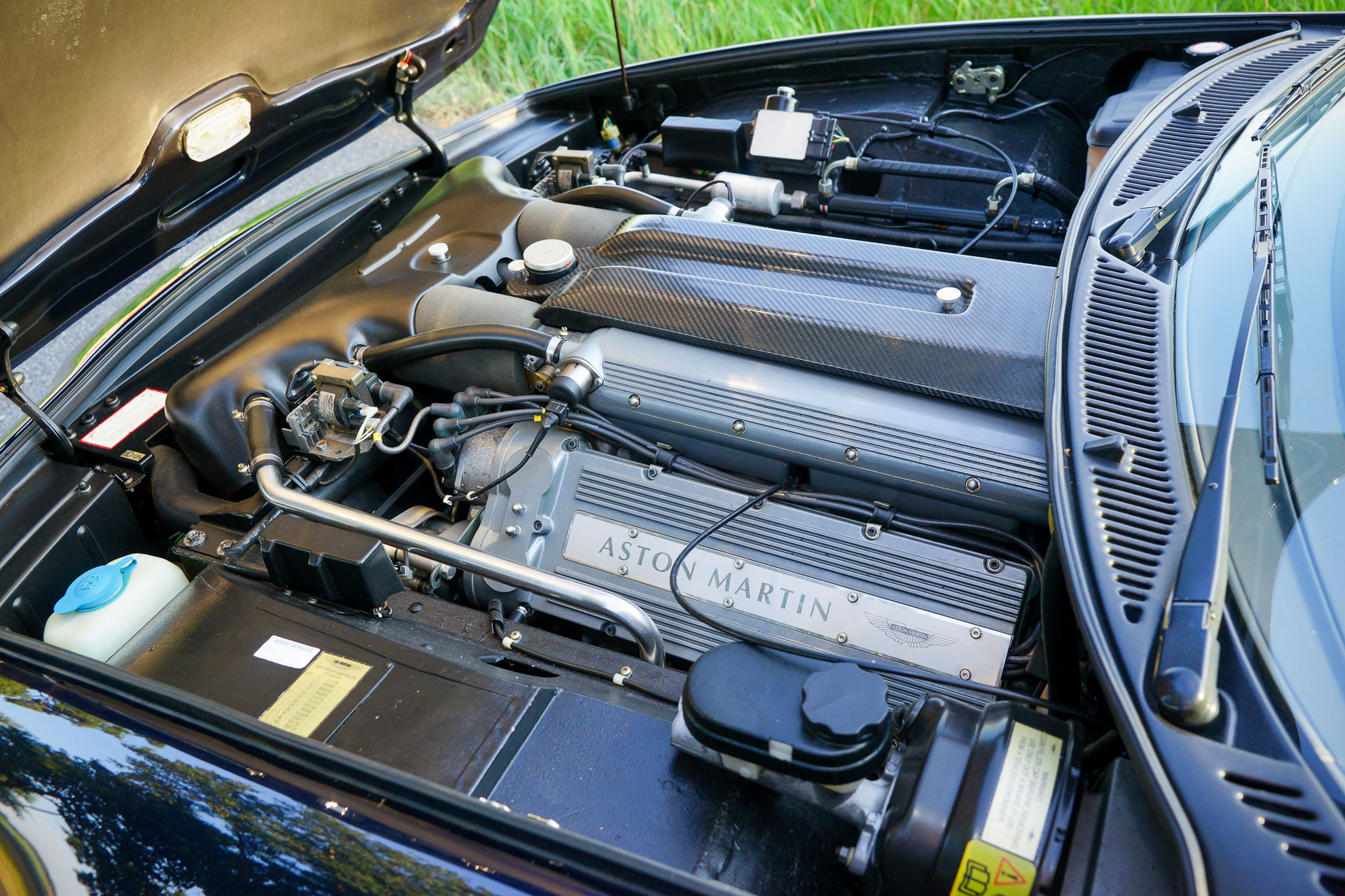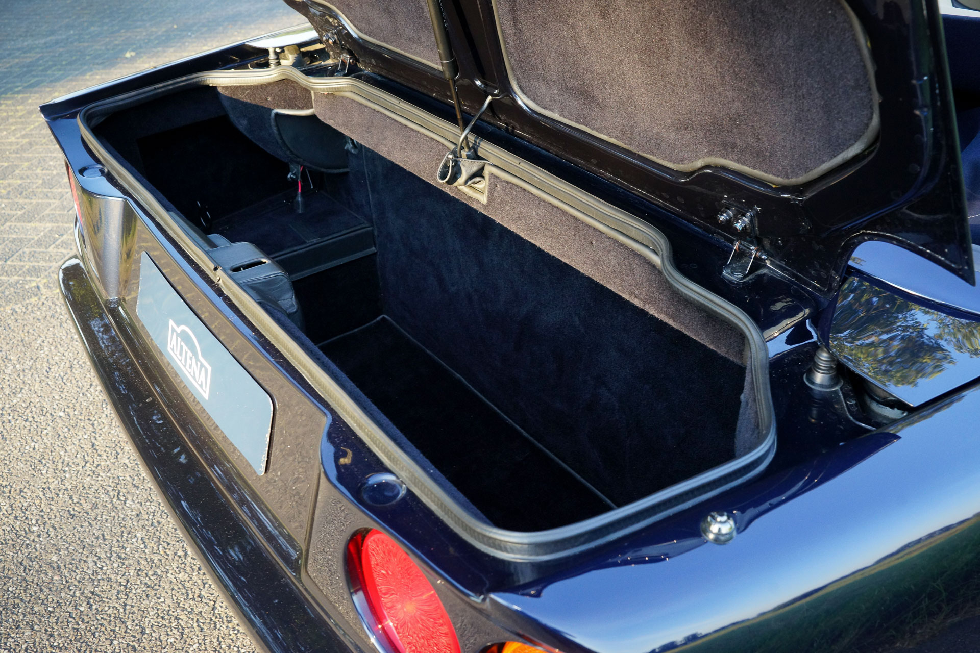 (lichtbeige) lederen interieur afgezet met donkerblauwe piping. Donkerblauw tapijt, donkerblauwe mohair softtop en een donkerblauwe leren kapafdekking. Dit is een zeldzame linksgestuurde Aston Martin V8 Volante. De automobiel heeft vanaf nieuw slechts 38.000 kilometer gereden en de auto verkeert in een sublieme originele topconditie! De auto is voorzien van opties als elektrisch bedienbare zijruiten, een elektrisch bedienbaar dak, stoelen met geheugenfunctie, stoelverwarming, een stereo-installatie en nog veel meer luxe. Deze prachtige Aston Martin rijdt perfect, de V8-motor heeft veel vermogen en klinkt indrukwekkend. De automatische versnellingsbak schakelt soepel, stil en nauwkeurig. De auto wordt compleet geleverd met de originele gebruikershandleiding en documentatie. Dit is een topexemplaar!