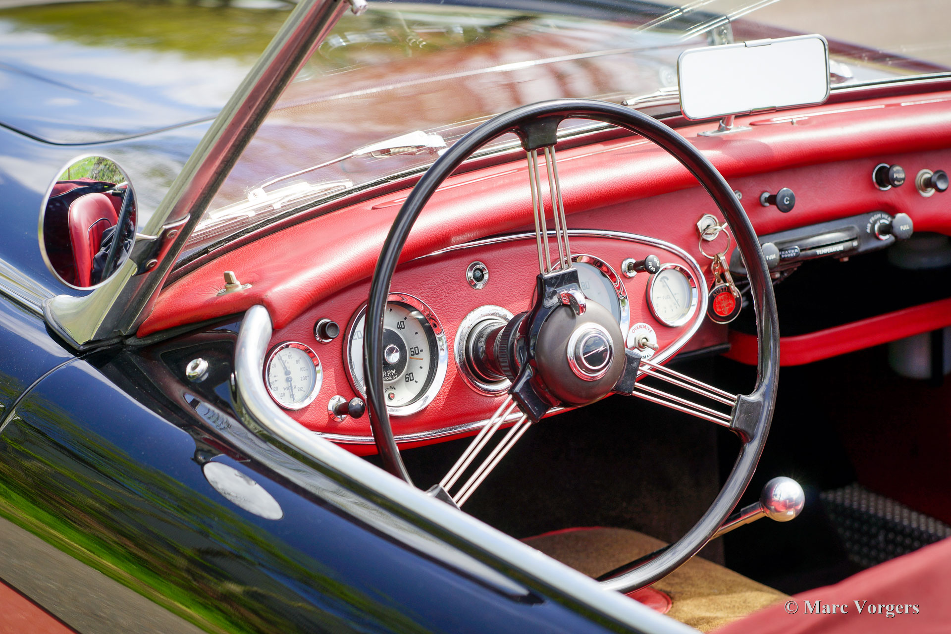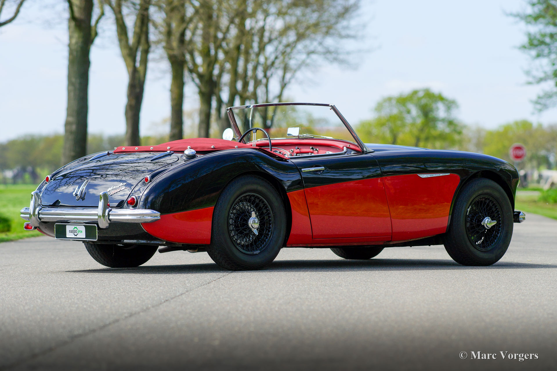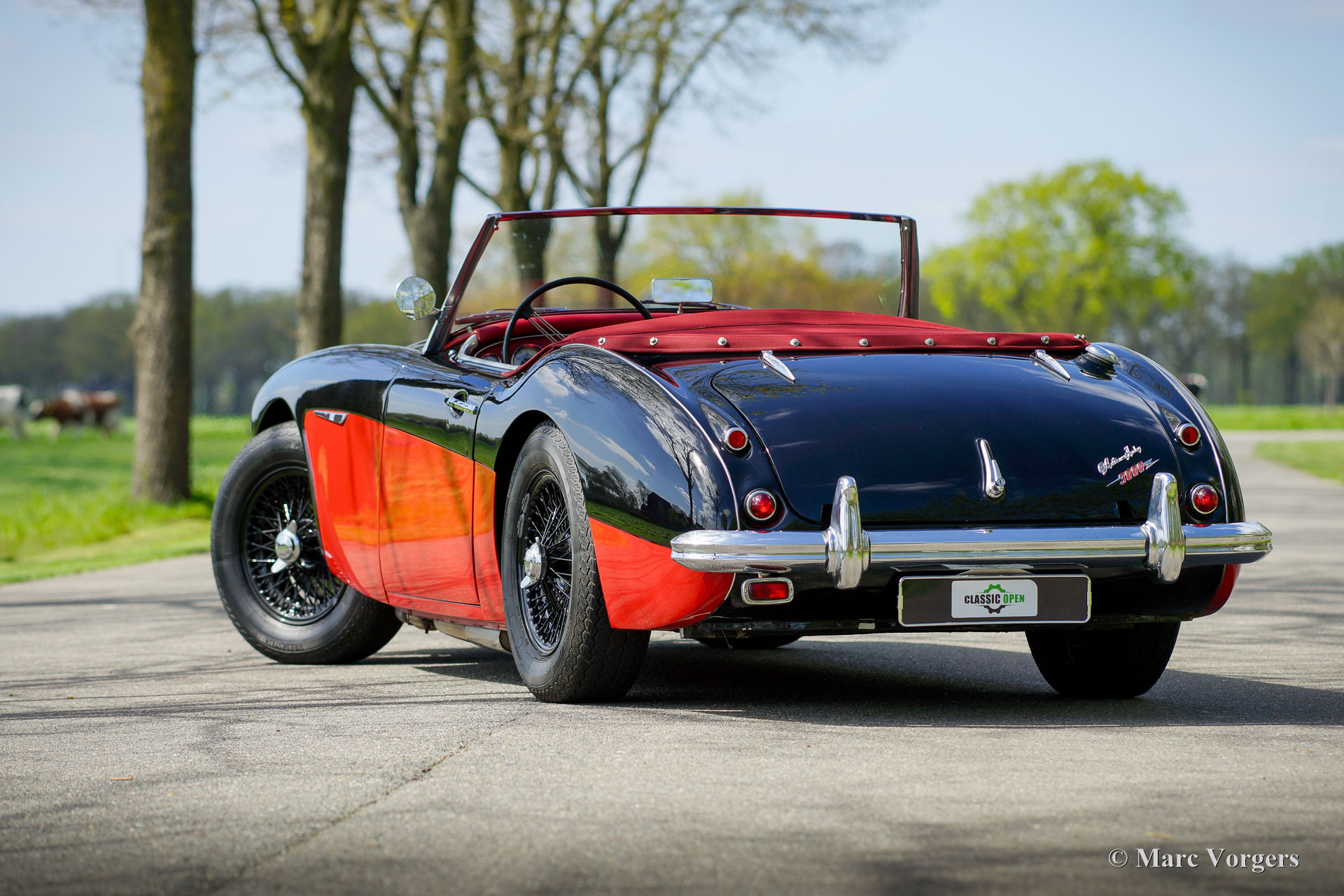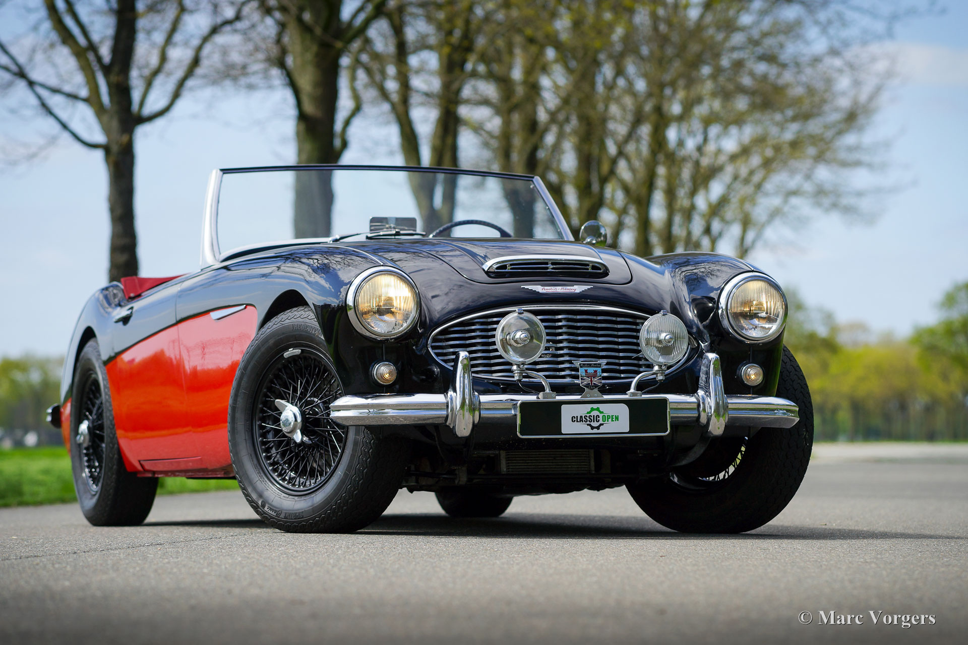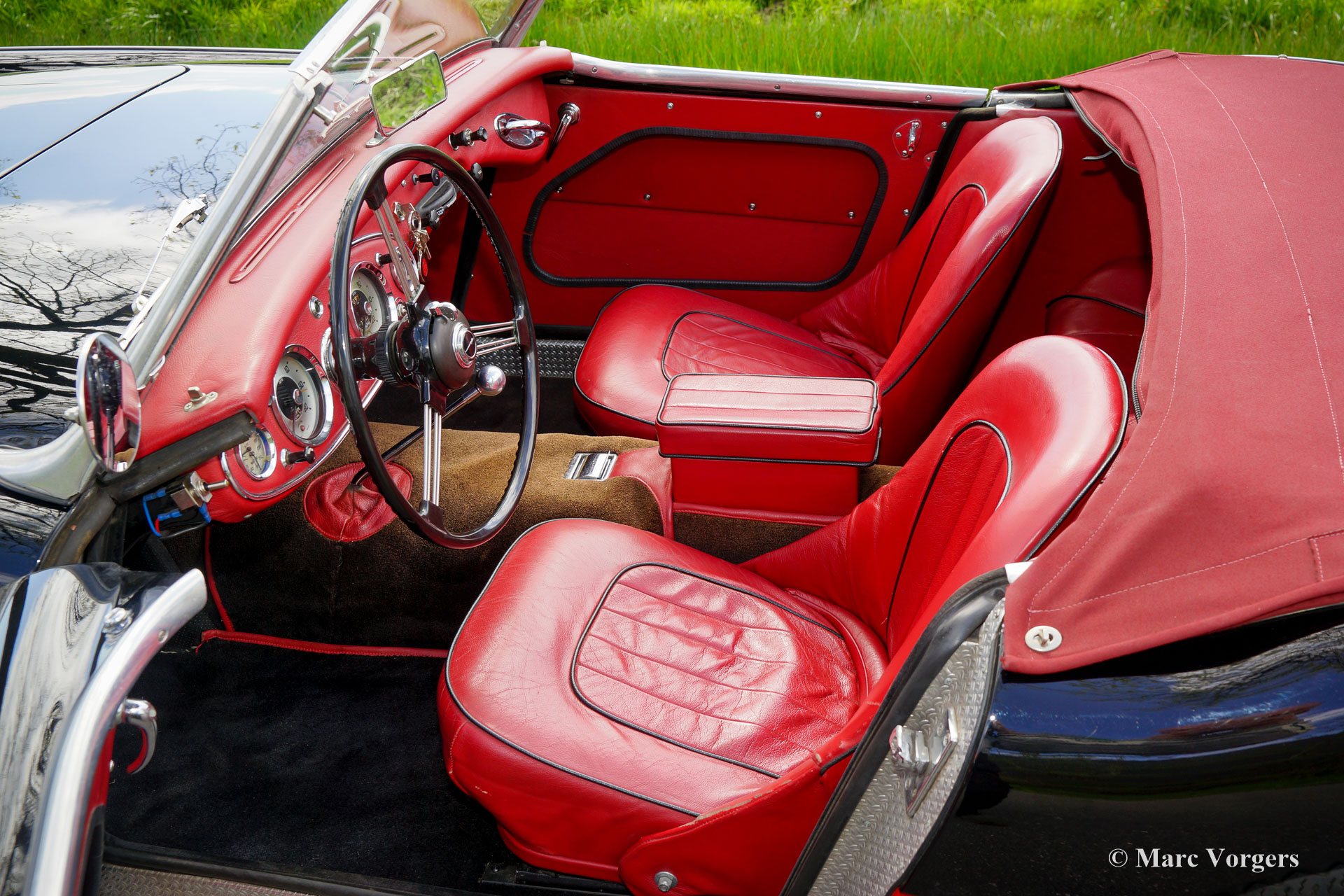Austin Healey 3000 MK I, jaar 1959. Kleur zwart boven rood gecombineerd met een roodlederen interieur afgewerkt met zwarte biezen. Rode mohair soft-top en een rode mohair tonneau cover. Deze magnifieke ‘Big Healey’ is in het recente verleden uitgebreid gerestaureerd en gereviseerd. De automobiel verkeert in een excellente staat en de auto rijdt perfect! De auto toont prachtig door de zwart met rode ‘two-tone’ kleurstelling gecombineerd met zwarte spaakwielen en het rode interieur. De Austin Healey 3000 is een van legendarische Britse sportauto's die een prachtige vormgeving combineren met de stoere grom van een zwaar zes-in-lijn motorblok. De auto is voorzien van een zij-uitlaat die zorgt voor een magnifieke soundtrack! Verder is deze Austin Healey voorzien van extra Lucas verstralers (SFT576 breedstraler en een SLR576 verstraler), verchroomde ‘knock on’ wielmoeren, overdrive, elektronische ontsteking, een wisselstroomdynamo en een elektrische koelventilator. Dit is een prachtige Austin Healey 3000 MK I in een uitstekende conditie. Deze auto is klaar voor elk avontuur in de handen van een trotse nieuwe eigenaar!