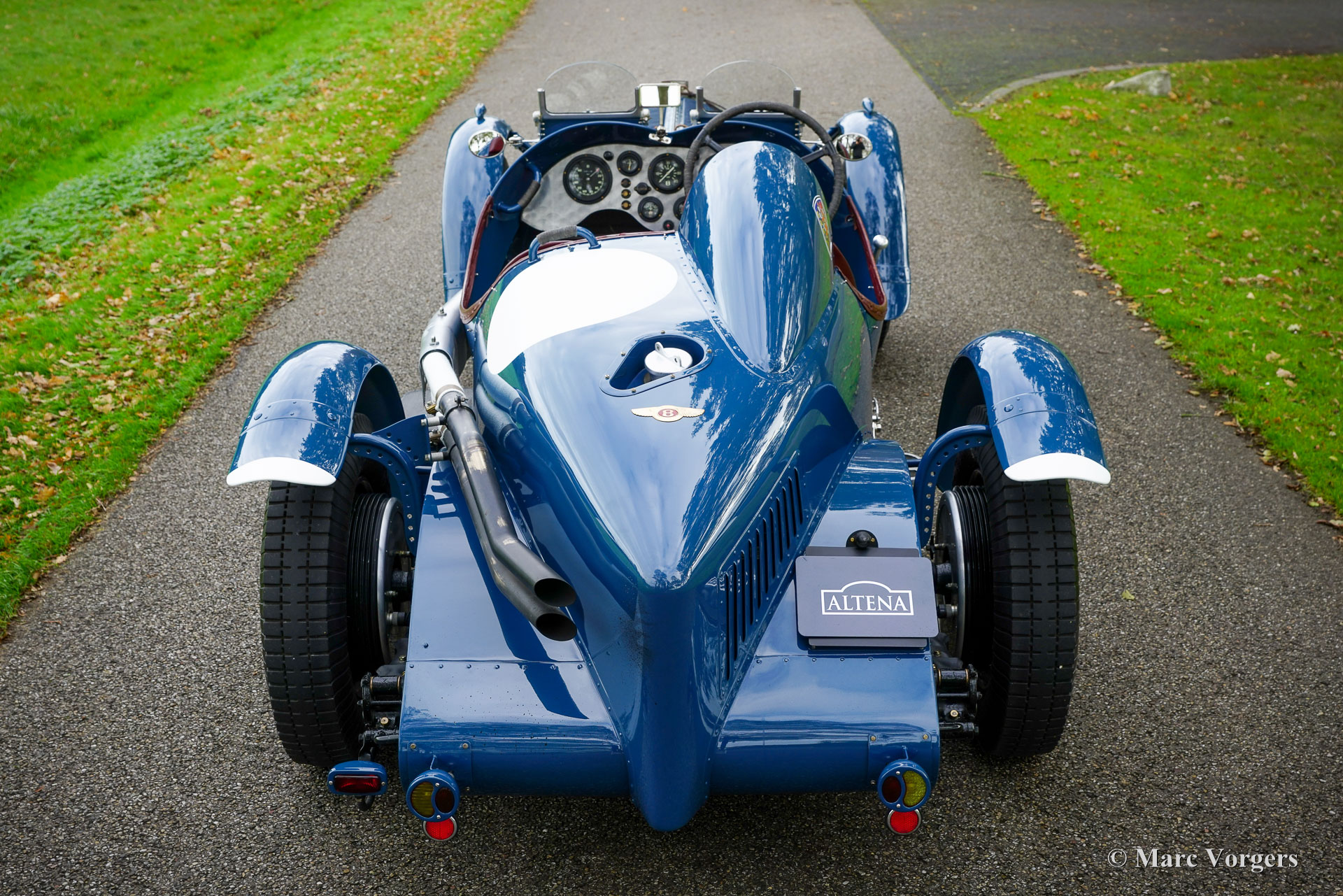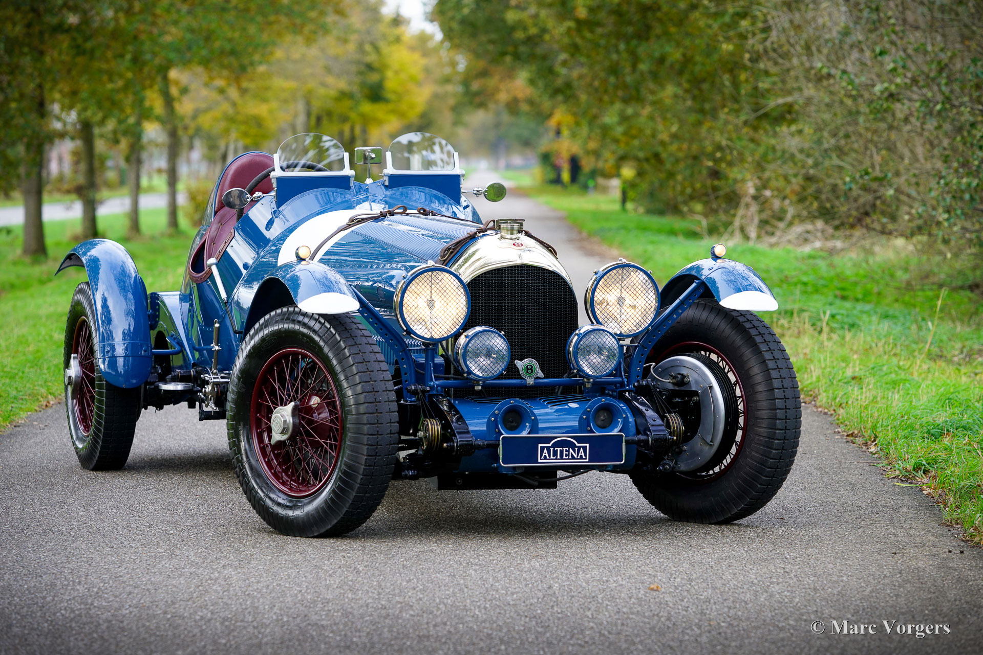 Bentley 3/8 Racer Special, bouwjaar chassis 1948. Deze indrukwekkende Bentley Special is met de hand gebouwd door Racing Green Engineering uit South Wales U.K. en is voltooid in 2013. Kleur blauw met met donkerrode spaakwielen, en een zwart chassis. Interieur met zwarte rubberen vloerbekleding en kuipstoelen bekleed met donkerood leder. Deze spectaculaire machine is gebaseerd op een Bentley Mk VI-chassis uit 1948 dat volledig werd gerestaureerd en versterkt om plaats te bieden aan de eveneens volledig herbouwde Bentley B81 6516 cc achtcilinder lijnmotor en de (volledig gesynchroniseerde) handgeschakelde Bentley-versnellingsbak met vier versnellingen. De carrosserie is een meesterwerk van vakmanschap. Het ontwerp is geïnspireerd op de lijnen en details van vooroorlogse racewagens en prachtig hand vervaardigd door de vakmensen van Racing Green Engineering. De bouw en afwerking van deze machine zijn van de beste kwaliteit die u in de klassieke auto-branche zult vinden. Deze Bentley verkeert in een sublieme en zo goed als nieuwe conditie en de auto heeft 2800 kilometer gereden sinds de aflevering in 2013. De rijervaring prikkelt al uw zintuigen; de grote achtcilinder lijnmotor trekt als een locomotief en het uitlaatgeluid klinkt als een zwaar onweer. Het verhoogde zicht rondom en het zicht over de machtige motorkap en voorspatborden geeft u het gevoel een gevechtsvliegtuigpiloot op de weg te zijn. Deze Racing Green Engineering Bentley Special rijdt, schakelt, remt en stuurt buitengewoon goed en gemakkelijk voor zo'n grote, zware en krachtige machine. De auto bevat ook enkele praktische kenmerken; het interieur biedt veel ruimte voor bestuurder en bijrijder en een grote bagageruimte die toegankelijk is van achter de stoelen. Deze Bentley Special wordt geleverd met een complete historie. De auto is geregistreerd in de EU en kan worden geëxporteerd naar en geregistreerd in elk land ter wereld. Altena Classic Service is officieel servicepartner van Racing Green Engineering, wij kunnen u helpen met al uw vragen en wensen met betrekking tot deze indrukwekkende machines.