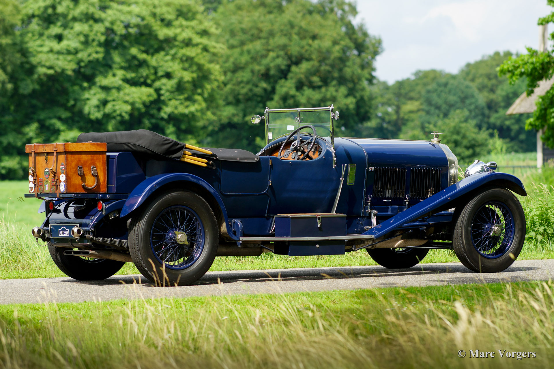 Bentley 6 ½ Liter 4-zits tourer, jaar 1926.Kleur blauw gecombineerd met een muisgrijs lederen interieur en muisgrijs tapijt. Zwarte kap en zwarte mohair tonneau cover. In november 1926 werd deze majestueuze Bentley 6 ½ Liter met chassis WK2661 geleverd aan een Major R. Creyke in de UK. De automobiel was voorzien van een Weyman type saloon body gebouwd door H.J. Mulliner. De Bentley verbleef lange tijd in Engeland voordat deze naar Zweden werd gebracht door de nieuwe eigenaar. In de jaren 1960 werd de saloon body door R.C. Moss in de UK vervangen door een Vanden Plas 4-zits tourerbody zoals op de Le Mans Speed Six modellen. WK2661 verscheen in 1970 op de Kensington Gardens Parade in Londen voor het eerst met de 4-zits tourer carrosserie. In december 1993 is de Bentley door de bekende Londense dealer Gregor Fisken aan een Nederlander verkocht. De auto werd in 1994 in Nederland geregistreerd. De Nederlandse eigenaar genoot van deze indrukwekkende automobiel op concours-elegances en historische rally's tot aan de Bentley International Tour of South Africa in het jaar 2001. In 2007 werd de carrosserie gerestaureerd en in In 2010 is de motor volledig gereviseerd voor € 50.000. Tijdens het proces besloot de eigenaar om twee carburateurs te laten monteren, waardoor het vermogen steeg tot ongeveer 160 pk bij 3.500 tpm. Door de jaren heen is de Bentley in onderhoud geweest bij van Laar Classic Cars, onderhoudsfacturen zijn aanwezig. In 2019 werd de Bentley verkocht. Momenteel verkeert de Bentley 6 ½ Litre met chassis WK2661 in een prachtige en zeer goede vintage conditie en de auto rijdt indrukwekkend. Het uitlaatgeluid is fantastisch en de zescilinder lijnmotor levert heel veel koppel. De mechanica voelt ijzersterk aan en de versnellingsbak schakelt perfect wanneer op de juiste wijze ‘double de-clutch’ toegepast wordt. De carrosserie en het interieur vertonen een prachtig patina (normale gebruiks- en ouderdomssporen door goed gebruik en goede verzorging) die de Bentley een perfecte vintage uitstraling geven. Mechanisch is WK2661 een super originele Bentley 6 ½ Litre, de twee carburateurs (in plaats van de Smith-Bentley BVS 50) en de ene in plaats van twee ontstekingsmagneten zijn modificaties zoals te zien op de Speed Six. Daarnaast is de motor voorzien van een moderne oliefilter modificatie. Uitgerust met de Vanden Plas type 4-zits Tourer carrosserie is deze Bentley 6 ½ Liter met chassis WK2661 is een prachtige machine in de geest van de legendarische Le Mans Speed Sixes. Van 1926 tot eind 1928 werden slechts 284 Bentley 6 ½ Litre chassis gebouwd. Deze Bentley 6 ½ Litre staat ingeschreven in het Bentley Register.