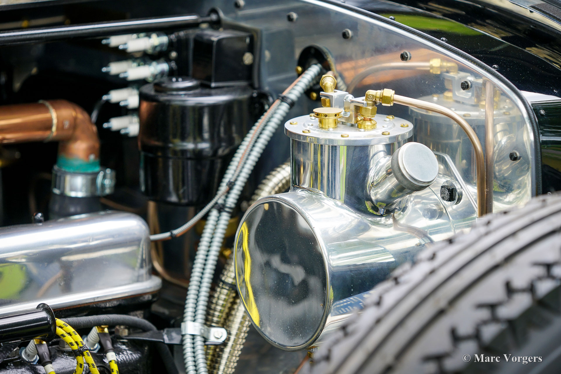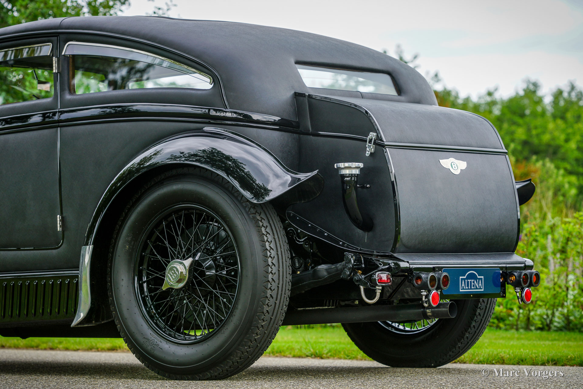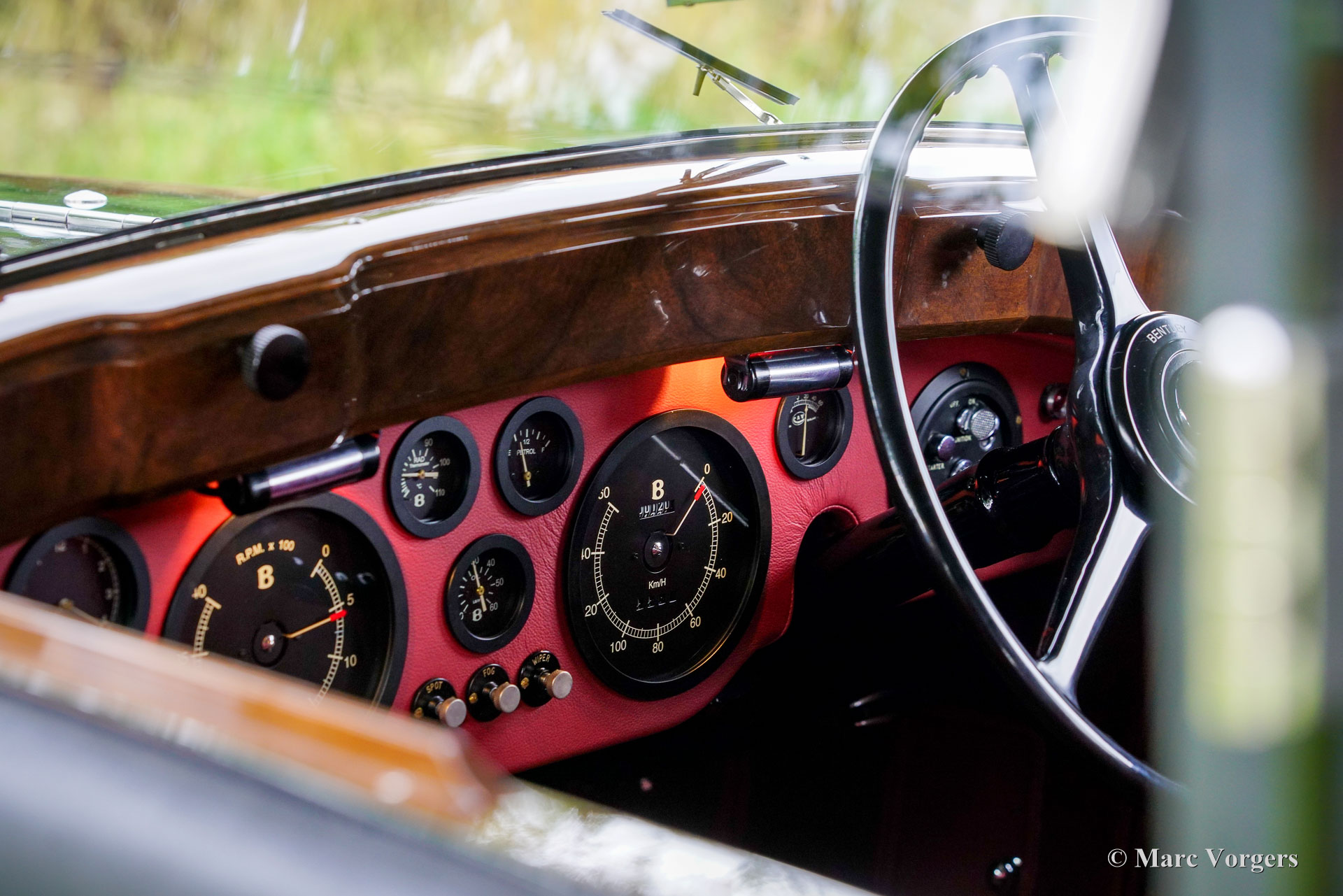 Bentley ‘Blue Train’ gebouwd door Racing Green Engineering, jaar chassis 1949. Deze prachtige Bentley is een replica van de legendarische ‘one-off’ Bentley Speed Six uit 1930 met een tweedeurs coupé carrosserie door Gurney Nutting. De originele auto is afgebeeld op een schilderij van Terence Cuneo dat het ‘duel’ tussen de Bentley Speed Six en de ‘Blue Train’ van Nice naar Calais toont, dat gewonnen werd door de Bentley*.