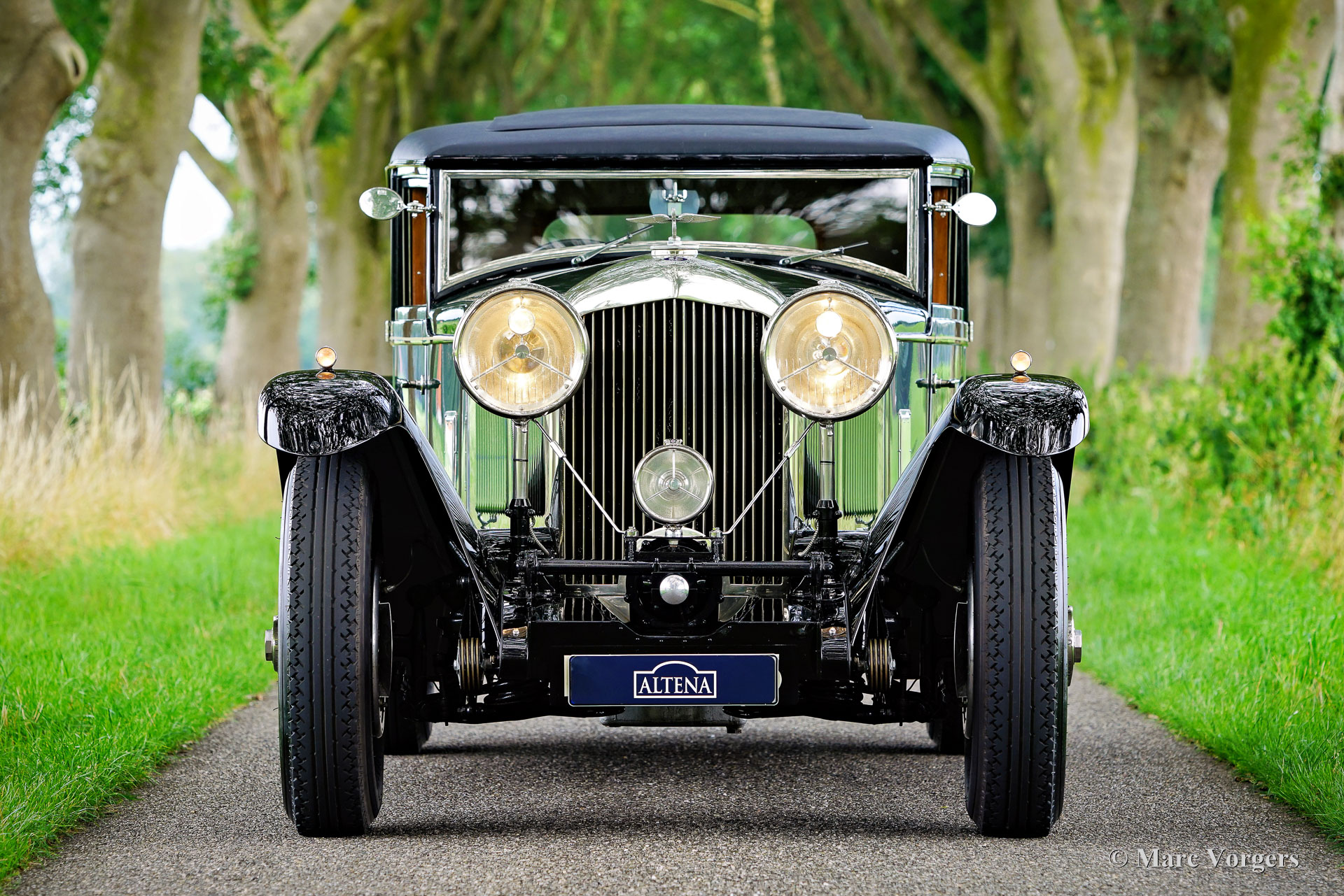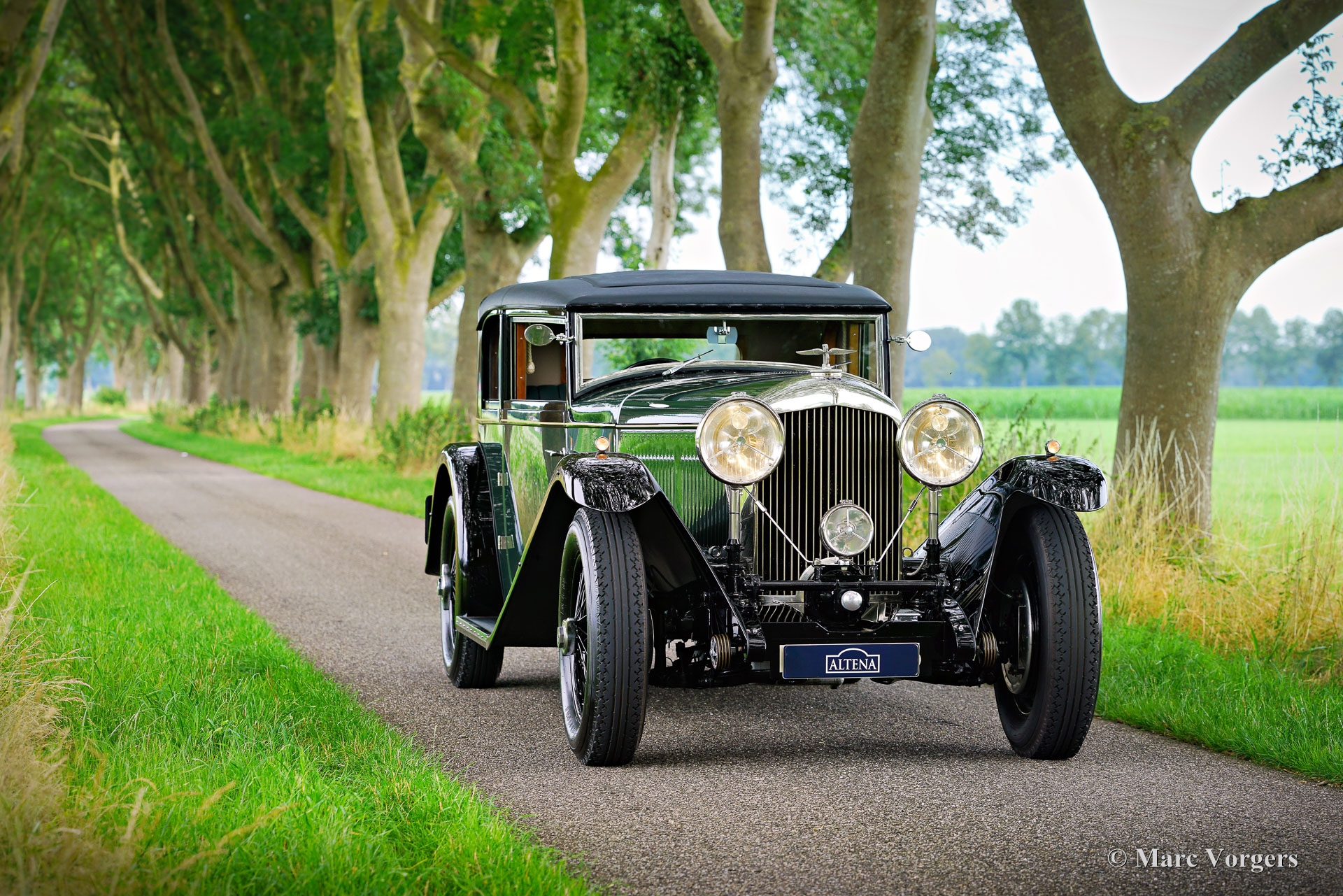 Bentley “Mayfair” special, bouwjaar chassis 1950. Kleur ‘two-tone’: donkergroene carrosserie gecombineerd met een zwart dak, zwarte spatborden en zwarte spaakwielen. Mosgroen lederen interieur en bijpassend wollen tapijt. Deze indrukwekkende Bentley “Mayfair” werd gebouwd door het gerenommeerde bedrijf Racing Green Engineering (RGE) in Wales, VK. De Bentley is gebaseerd op een volledig gerestaureerd en herbouwd Bentley MK VI chassis uit 1950, uitgerust met een volledig herbouwde B81 6516 cc achtcilinder lijnmotor. De carrosserie werd vakkundig met de hand gebouwd door de bekwame RGE-vakmensen tot de hoogst mogelijke normen van perfectie. De “Mayfair” tweedeurs vierzits coupé carrosserie werd met de hand gebouwd zoals dat in de jaren 1920 en 1930 door de firma Mayfair carrosseriebouwers werd gedaan, met een essenhouten frame en aluminium panelen. De gesloten carrosserie biedt perfecte geluidsdemping en een prachtige luxe afwerking. Een geweldige optie is het grote schuifdak dat op verzoek extra lucht en licht biedt. De Bentley MK VI werd ‘The Silent Sports Car’ genoemd en was de beste op de markt met een volledig gesynchroniseerde 4-versnellingsbak en hydraulische trommelremmen. De topklasse RGE-bouw voegt een krachtigere 6,5 liter achtcilinder lijnmotor, moderner gebruiksgemak, betere handling, meer comfort en grote betrouwbaarheid toe, gecombineerd met de mooiste vintage looks! Sinds de voltooiing van de bouw heeft de auto 2000 kilometer gereden in handen van de eerste eigenaar. Deze imposante machine is perfect onderhouden en verzorgd; de auto verkeert in NIEUWSTAAT! Deze fijne Bentley-special is uitgerust met 21-inch spaakwielen geschoeid met Firestone-banden. De perfect gevormde stoelen zijn ideaal geplaatst, zodat ook lange bestuurders en passagiers voldoende beenruimte hebben. De rijervaring van deze prachtige Bentley is fantastisch en indrukwekkend. Het imposante uiterlijk, de hoge zitpositie, het uitzicht over de lange motorkap, het motorgeluid... Al deze indrukken dragen bij aan een unieke klassieke rijervaring. Altena Classic Service is een officiële Racing Green Engineering partner/dealer, zij bieden advies en service om optimaal te genieten van uw exclusieve Bentley. Deze Bentley kan worden geïmporteerd naar elk Europees land en wordt geleverd met een compleet historiebestand. Dit is een machtige Bentley “Mayfair” van Racing Green Engineering; de auto is klaar om met volle teugen genoten te worden!