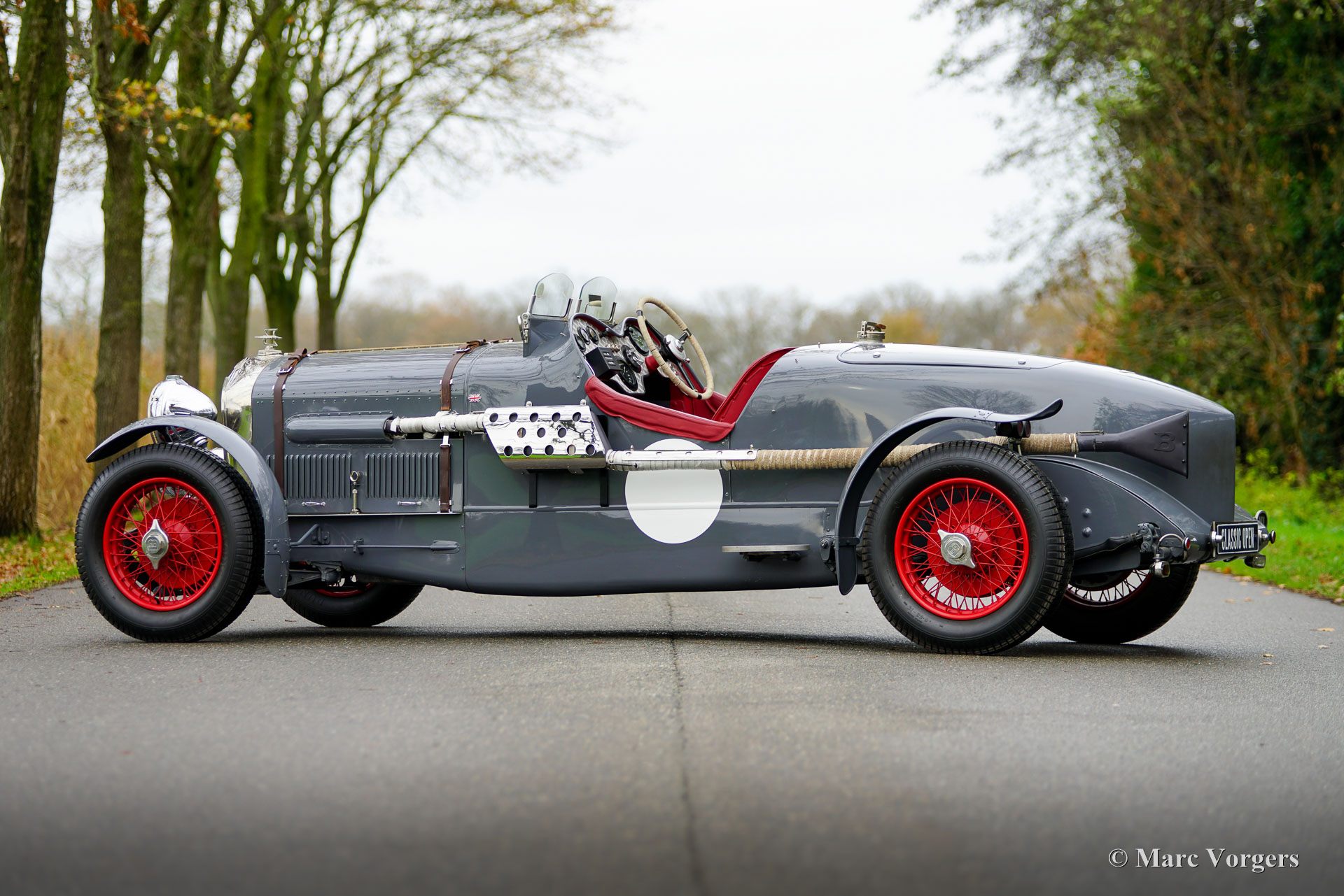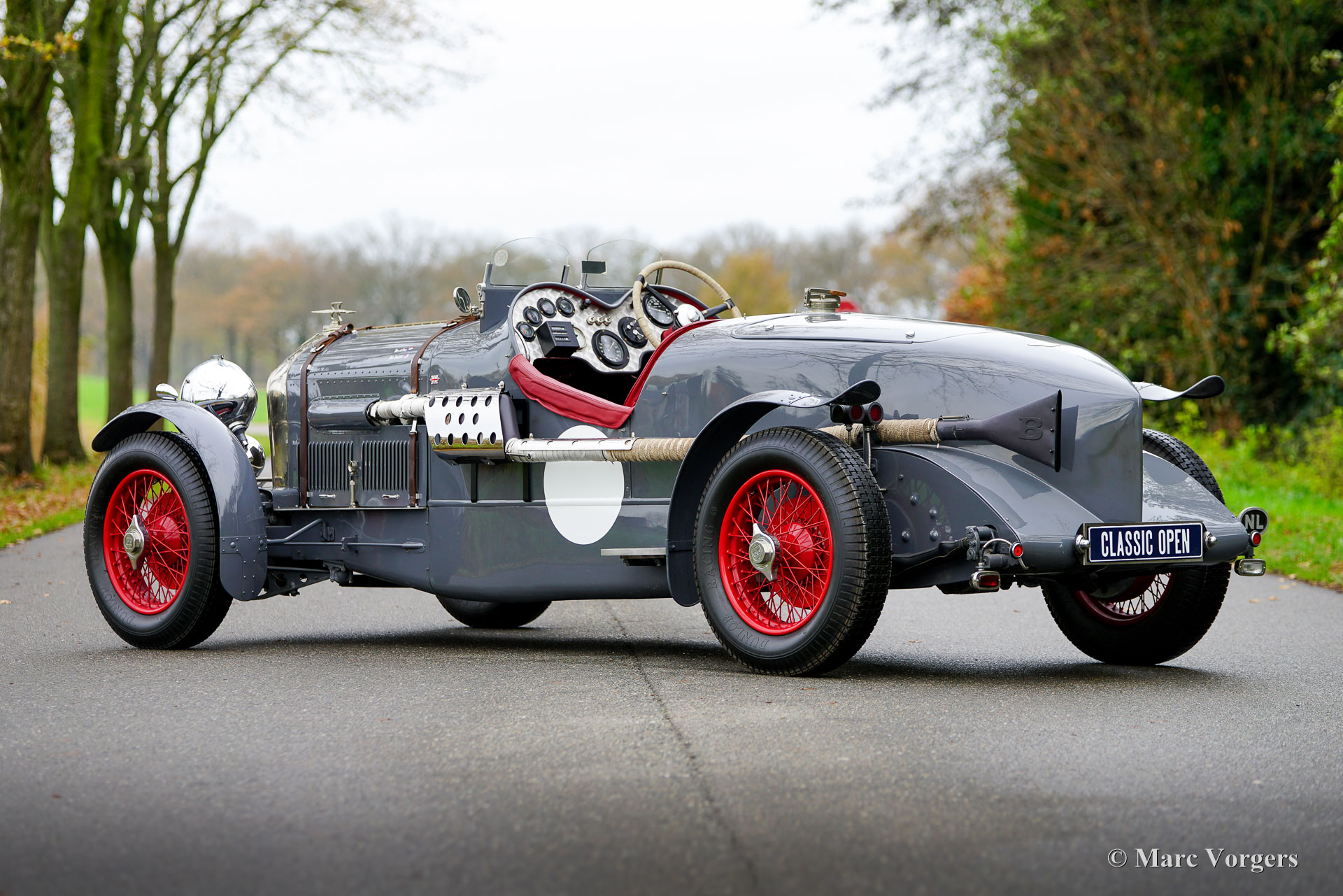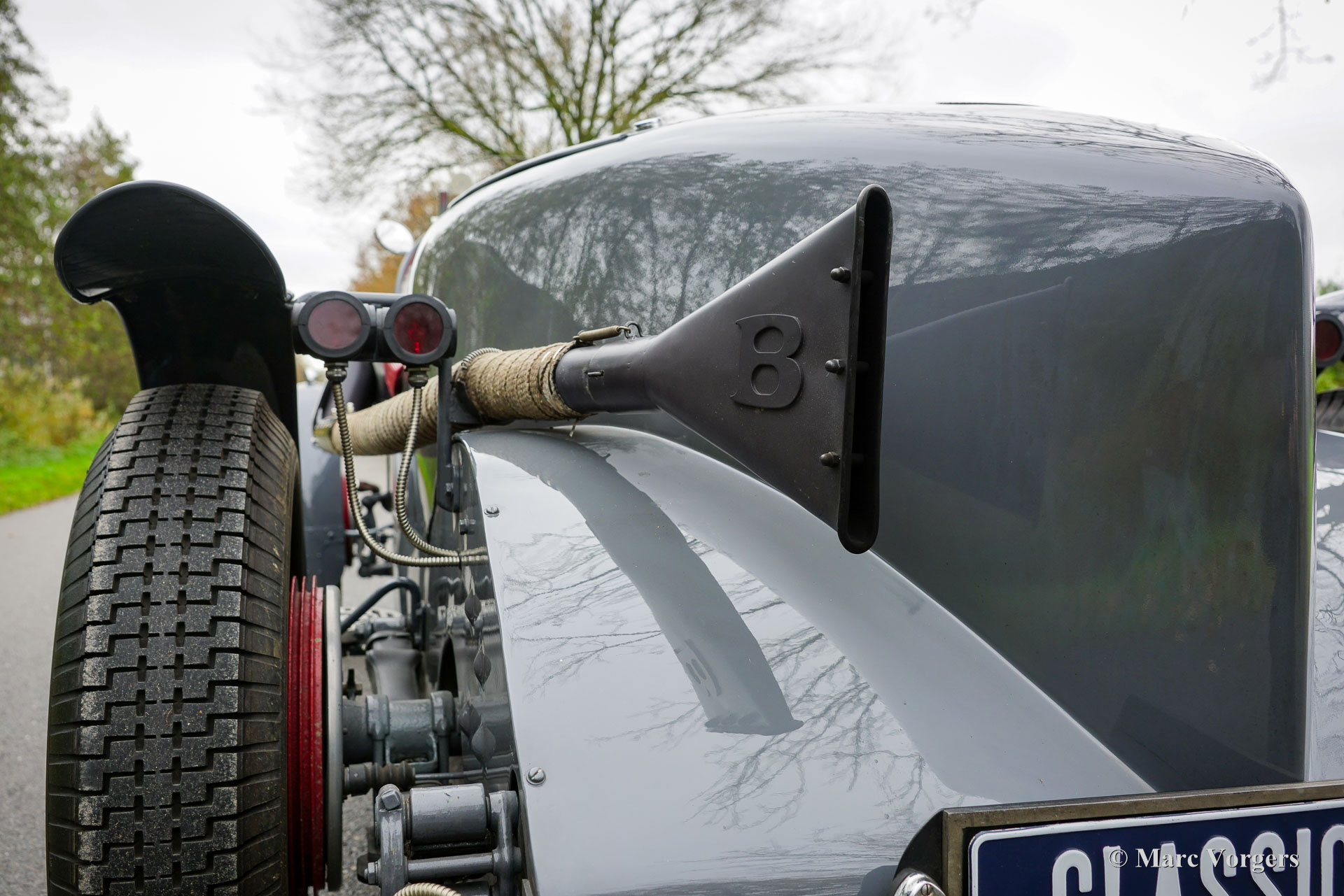 Bentley ‘Old Number One’ special, chassis 1947. Chassisnummer B172AK. Carrosseriekleur grijs gecombineerd met rode spaakwielen. Interieur bekleed met rood leer en bijpassend rood wollen tapijt. Deze prachtige Bentley ‘Old Number One’ replica werd gebouwd op een origineel Bentley Mk VI chassis uit 1947. De auto werd gebouwd door Vintage Car Serry (Serry Exclusive) in Hilversum, Nederland. Dit gerenommeerde bedrijf bouwt al tien jaar op maat gemaakte recreaties van Bentley's legendarische Le Mans-winnende Speed Six ‘Old Number One’ uit 1929 - 1930. Deze indrukwekkende auto werd gebouwd met authentieke en volledig gereviseerde Bentley MK VI mechanica (4,25 liter Bentley B60 zes-in-lijn motor en Bentley 4-versnellingsbak), prachtig handgemaakte aluminium carrosserie en perfect vervaardigde lederen en wollen bekleding voor het interieur. Dit schitterende exemplaar werd in 2016 opgeleverd en in 2017 bij de RDW geregistreerd. Sindsdien heeft de auto slechts één zorgvuldige eigenaar gekend die er 4981 mijl met volle teugen van heeft genoten. Deze fraaie Bentley special is gebouwd en afgewerkt volgens zeer hoge normen en verkeert in een uitstekende staat! Omdat deze special is gebaseerd op het sublieme Bentley Mk VI chassis en de mechanische onderdelen (die in de jaren 40 tot de beste in de branche behoorden), zijn de handling en bediening van deze auto aangenaam en gemakkelijk in vergelijking met het origineel uit 1929. De open rijervaring is magnifiek en de krachtige brul uit de uitlaat met Brooklands demper en fish-tail is verslavend! Het uitzicht op en over het aluminium dashboard met een reeks meters is indrukwekkend en geeft je het gevoel een gevechtspiloot te zijn. Het interieur biedt voldoende ruimte voor een lange bestuurder en bijrijder. Achterin vindt u een ruime kofferbak waar het reservewiel is ondergebracht en waar u uw bagage kunt opbergen. De unieke Bentley Speed Six ‘Old Number One’ is een van de meest iconische auto's uit het ‘Bentley Boys’-tijdperk. Deze prachtige handgemaakte aluminium replica, met een origineel Bentley-chassis en mechanische componenten, brengt de spanning en het heldendom van de Le Mans ‘Bentley Boys’ naar de wereld van een avontuurlijke nieuwe eigenaar!
